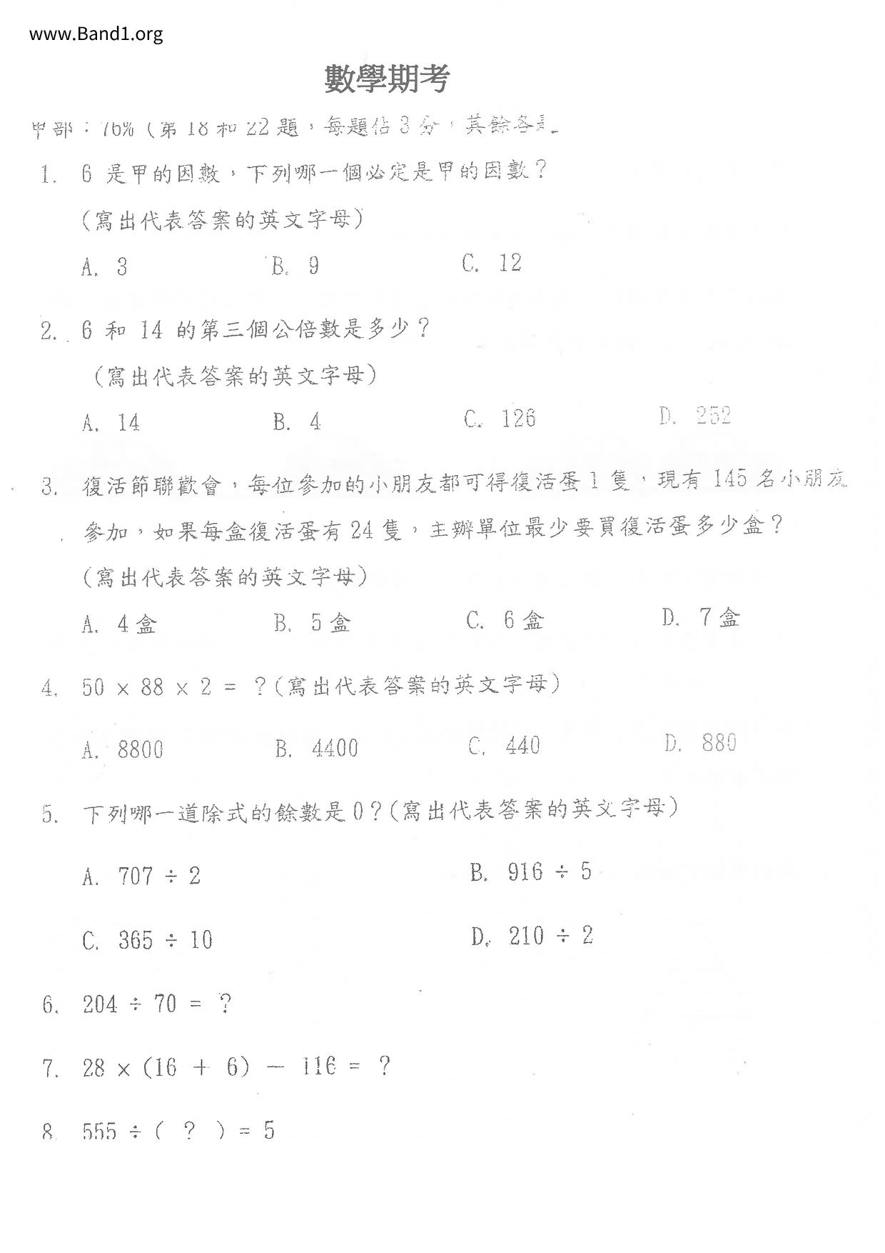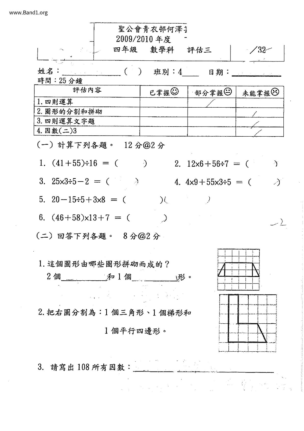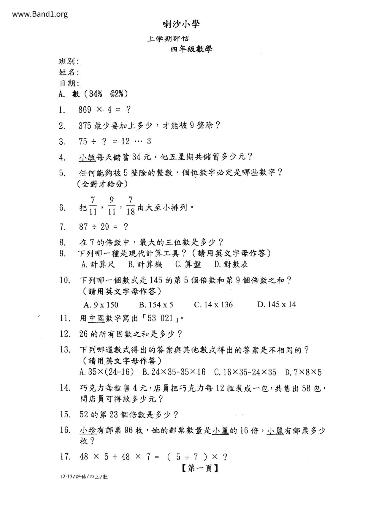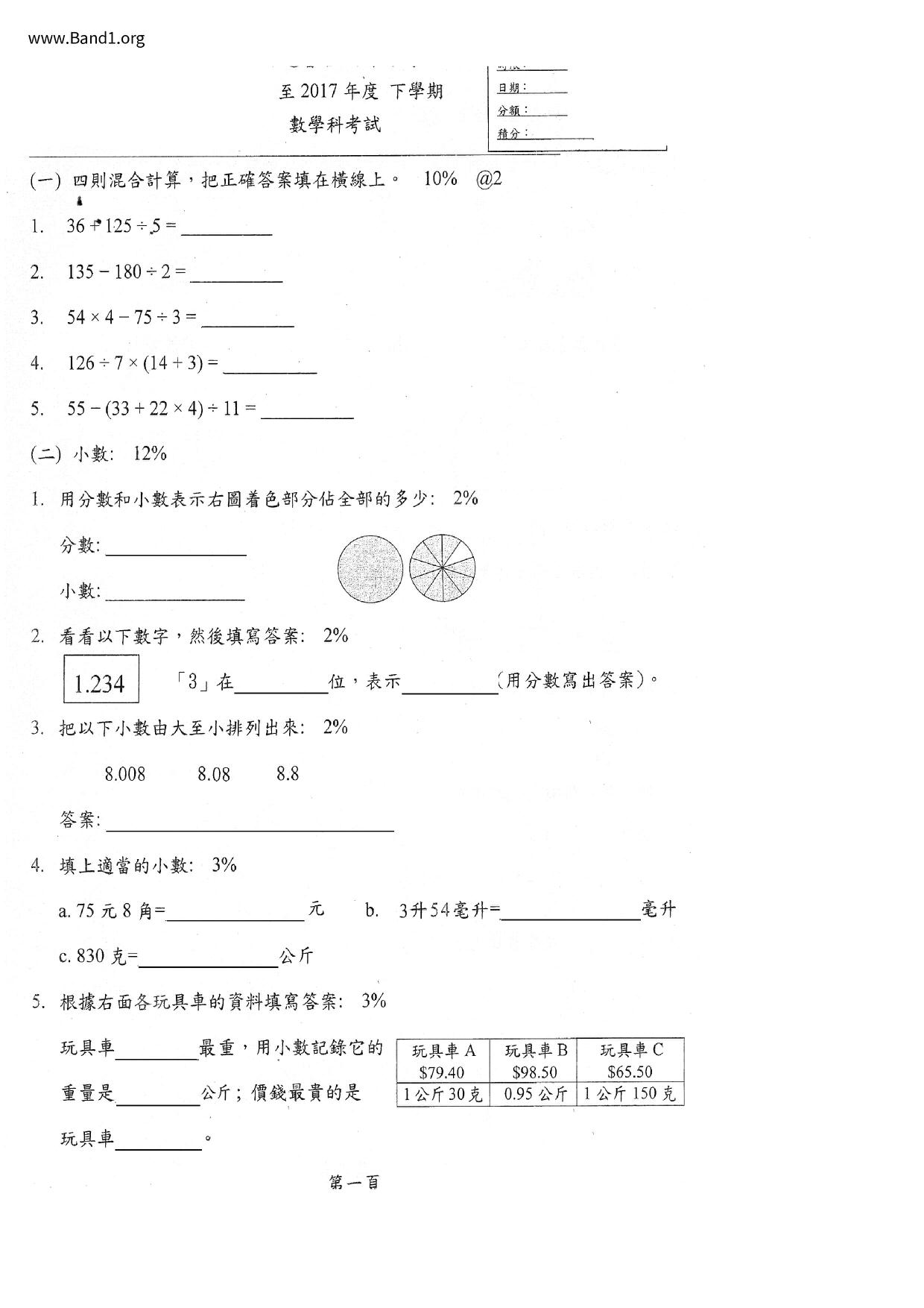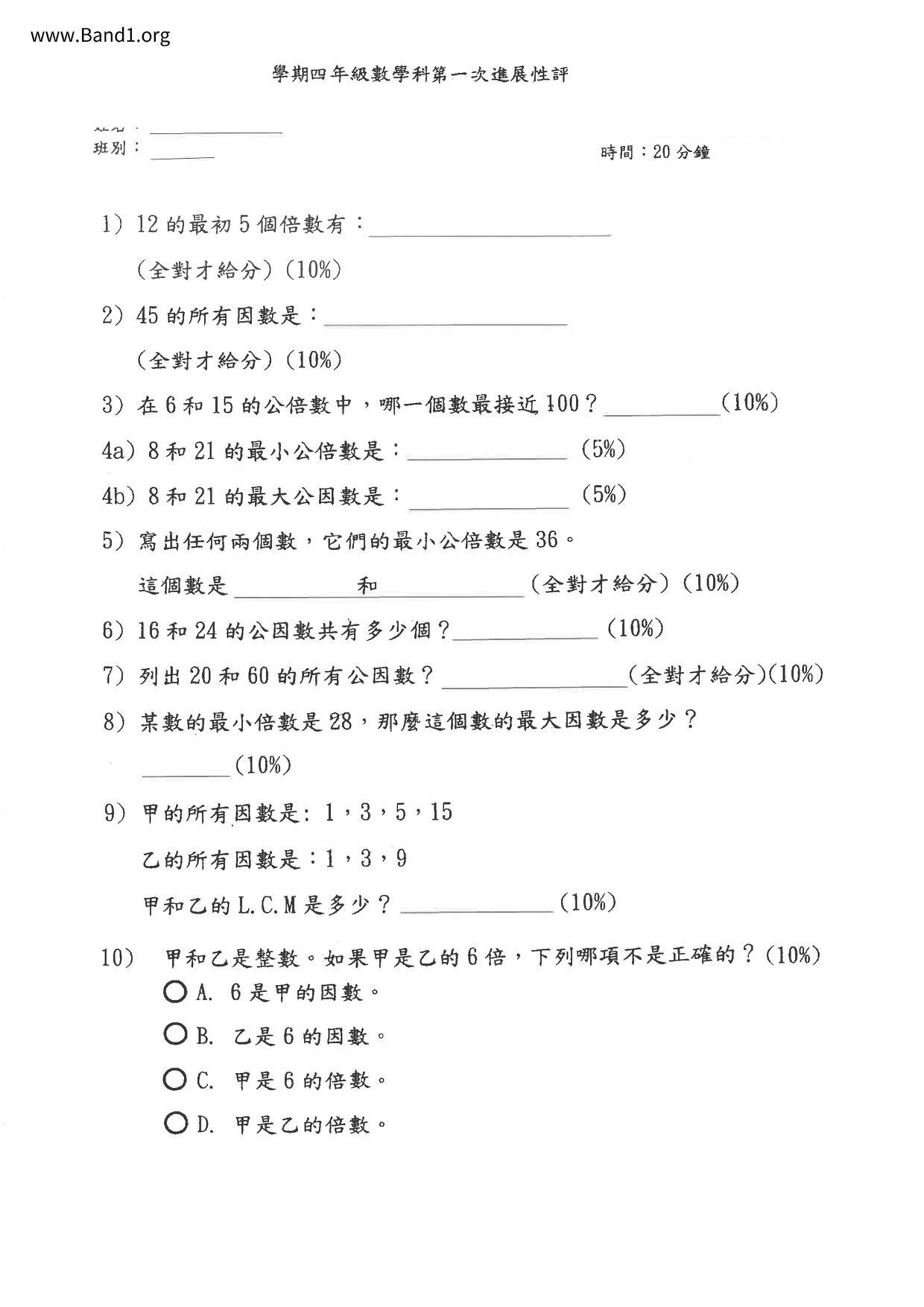 小四 數學 香港九龍塘基督教中華宣道會台山陳元喜小學