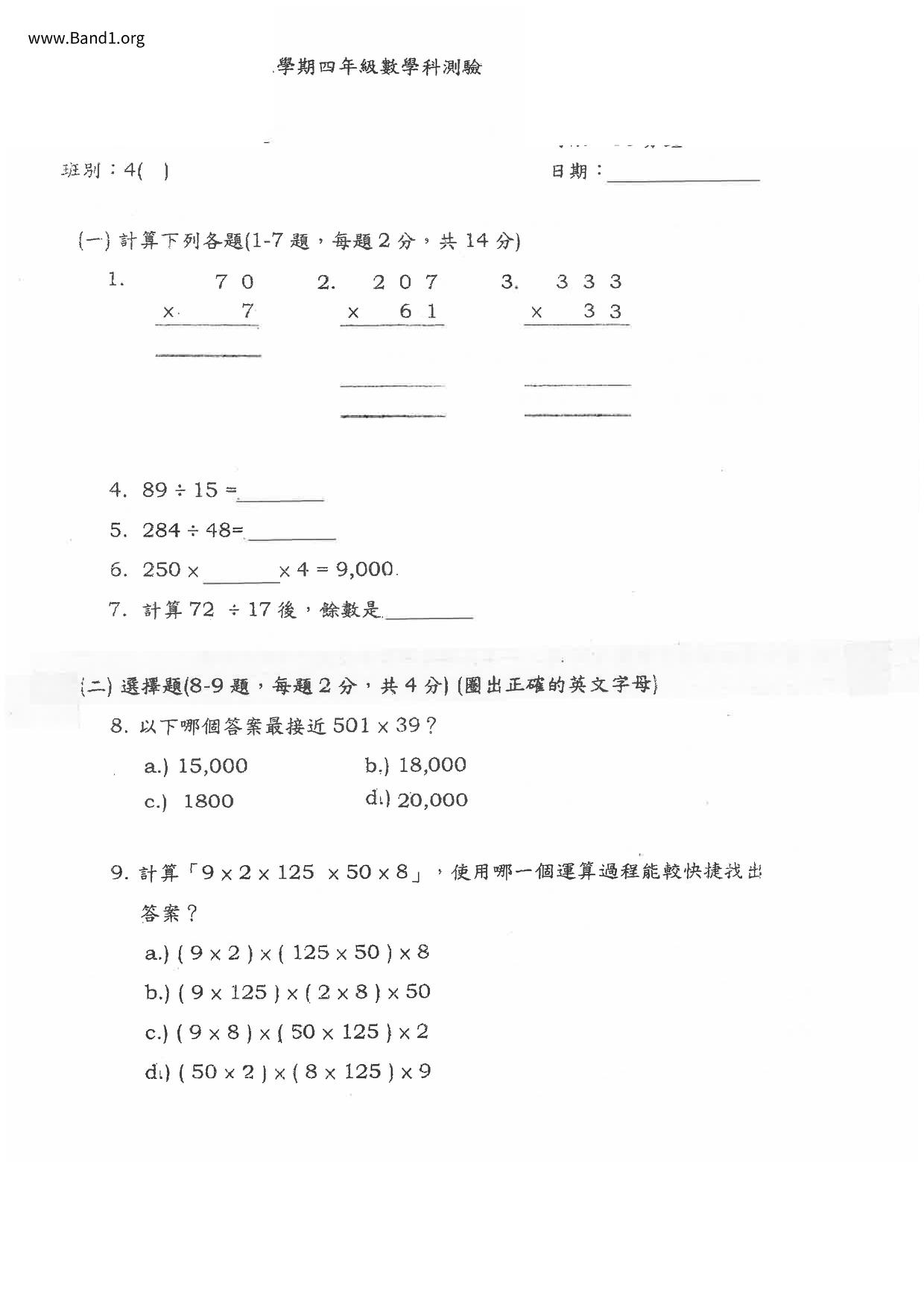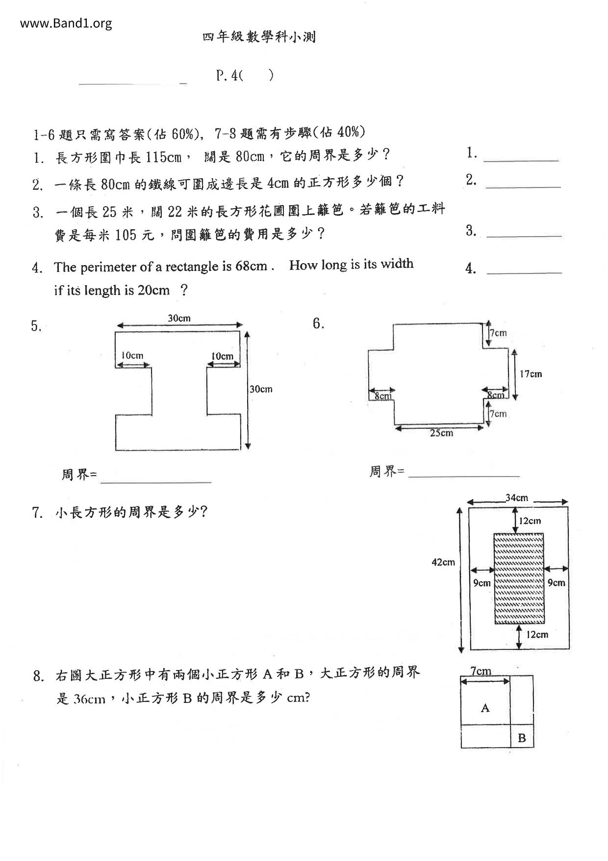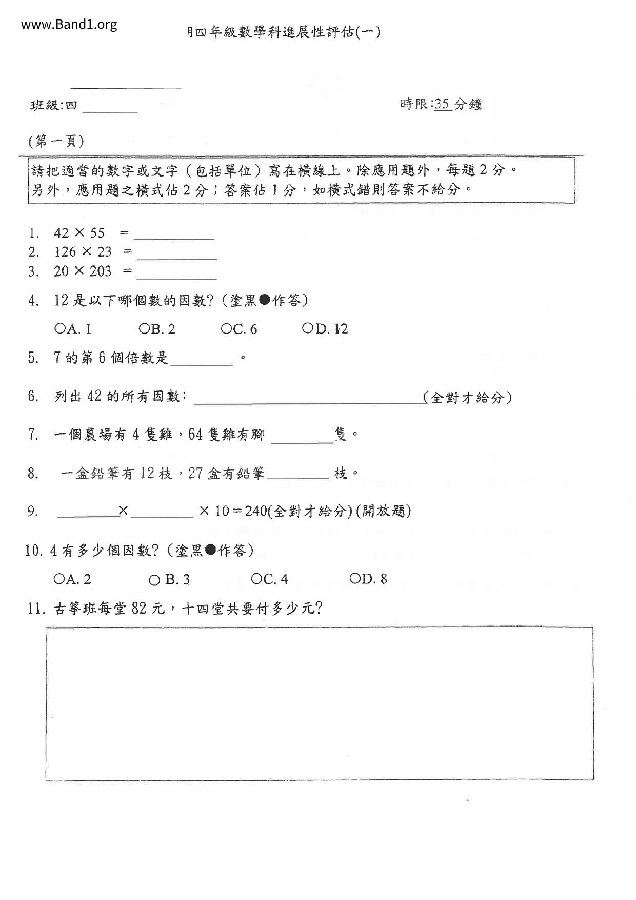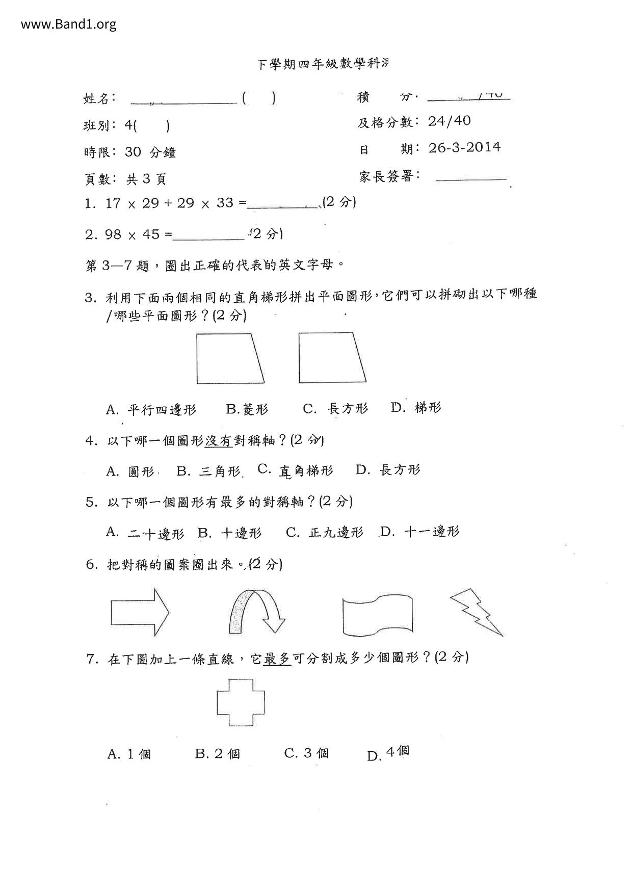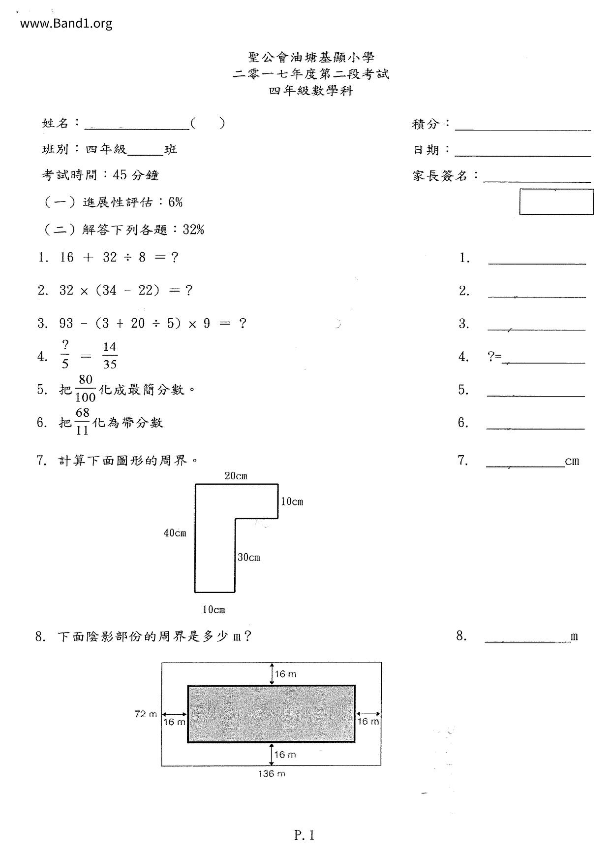 小四 數學 香港九龍塘基督教中華宣道會台山陳元喜小學