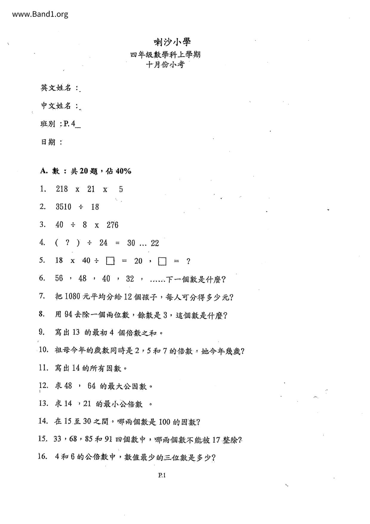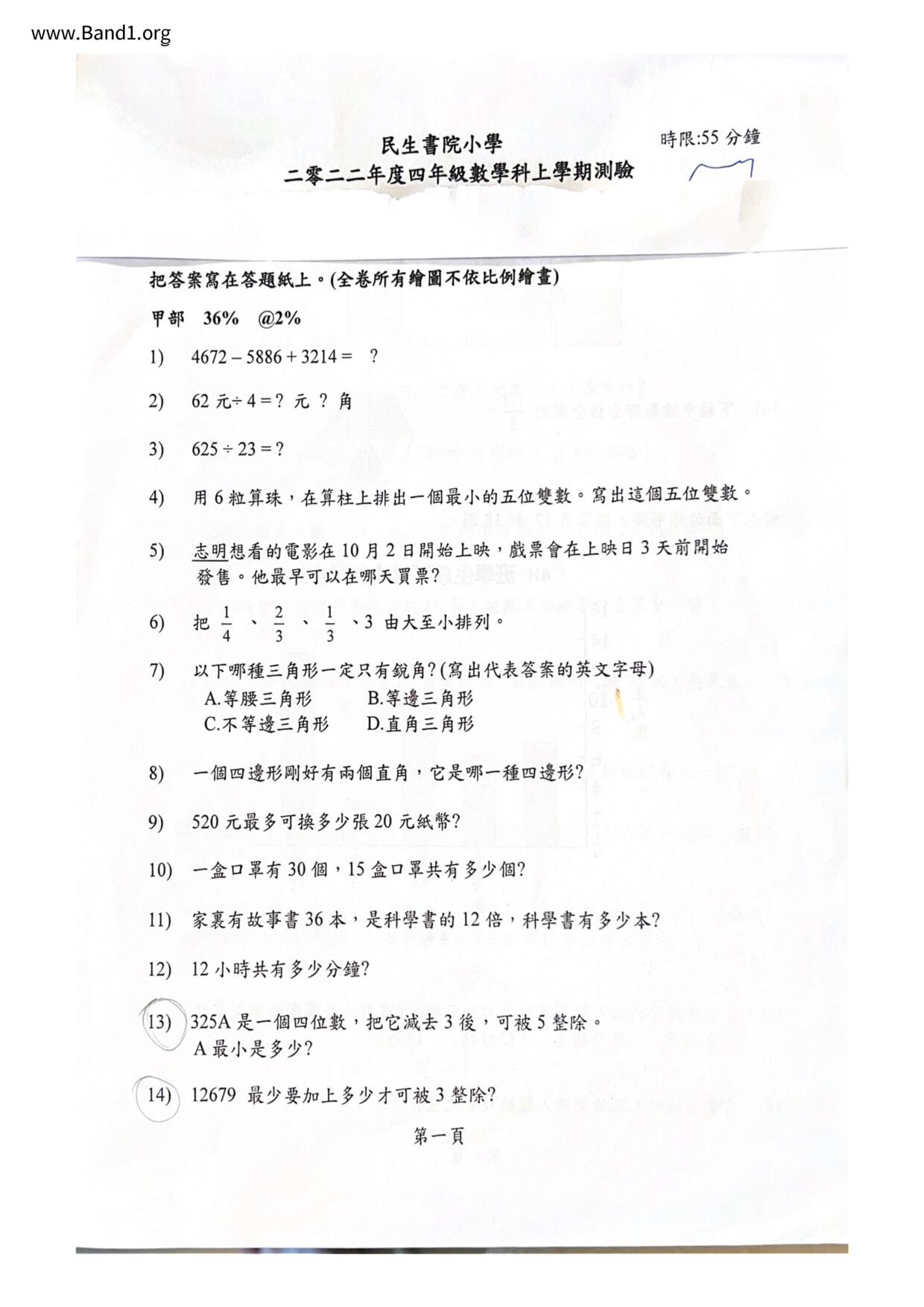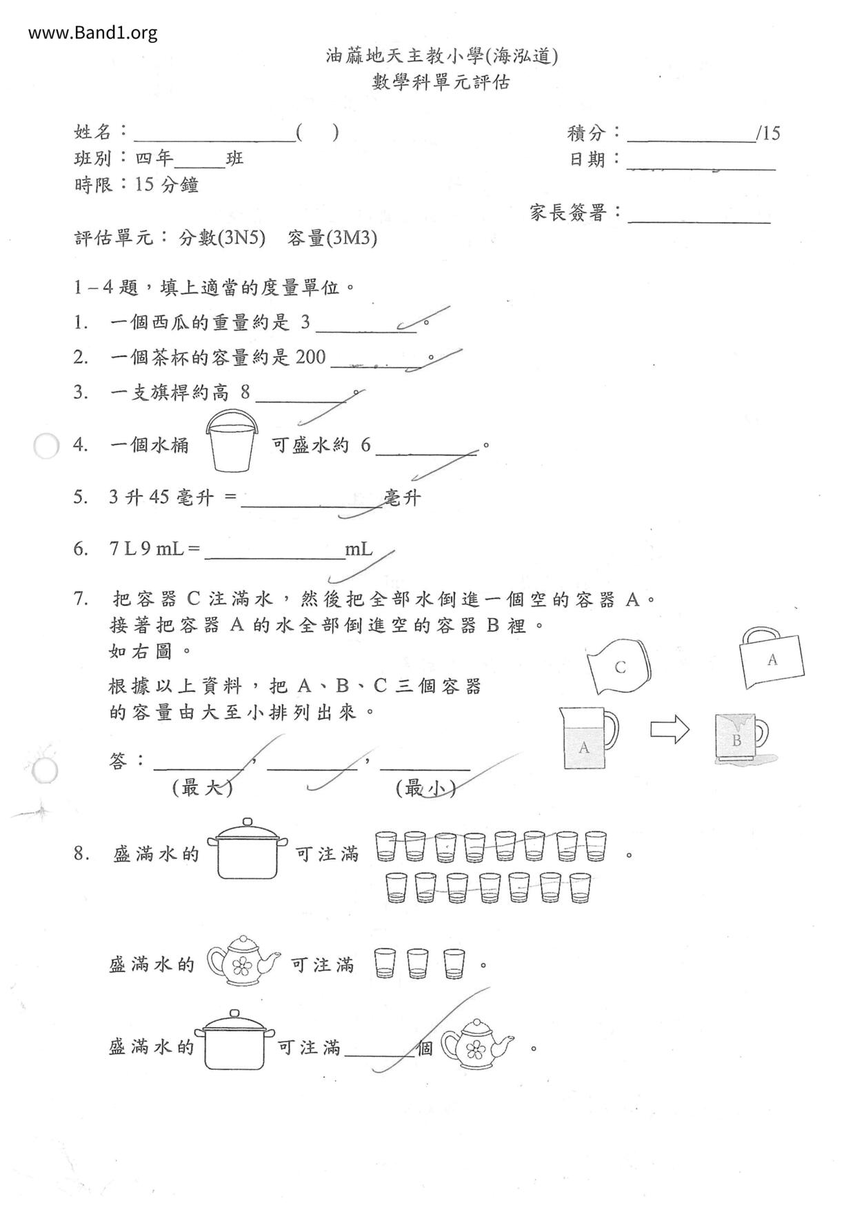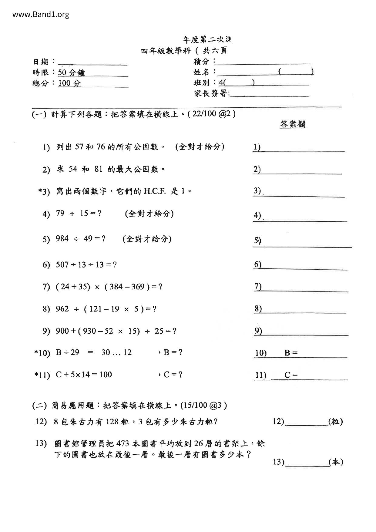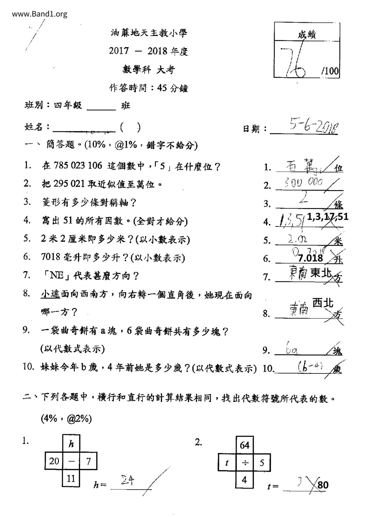 小四 數學 香港九龍塘基督教中華宣道會台山陳元喜小學