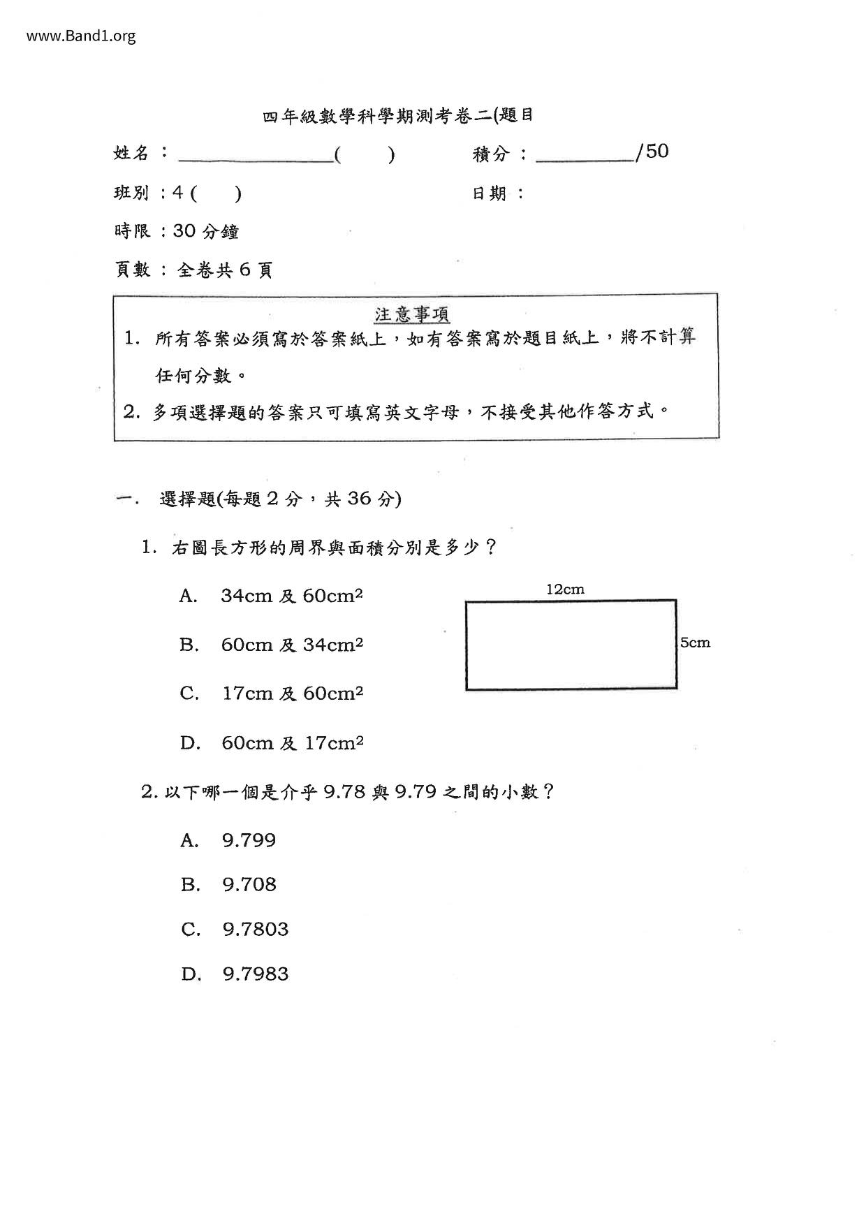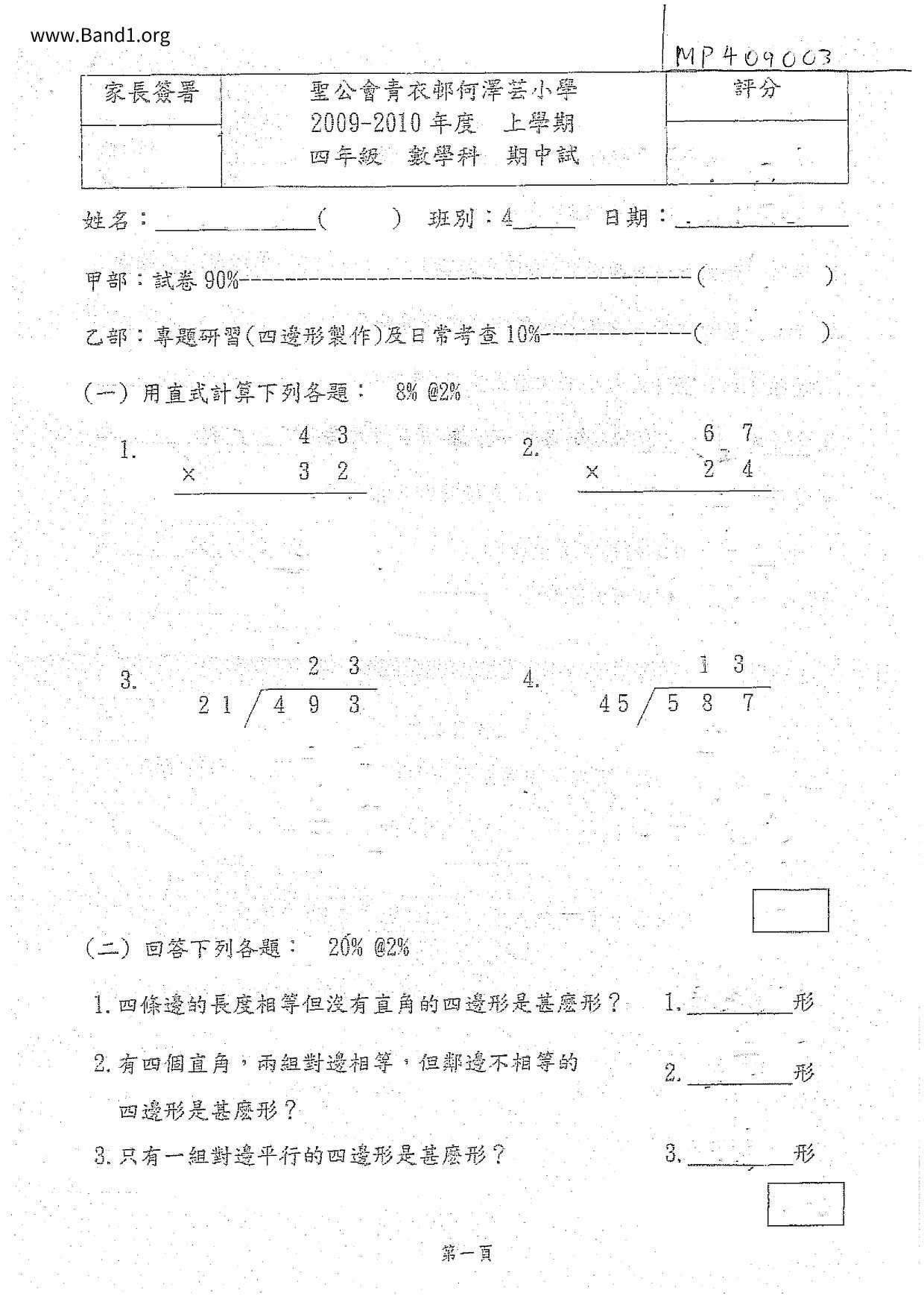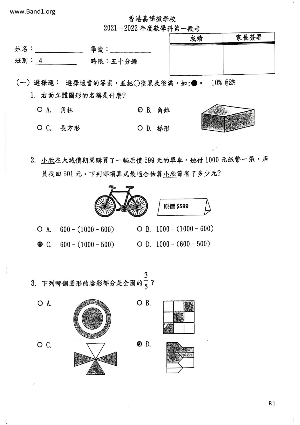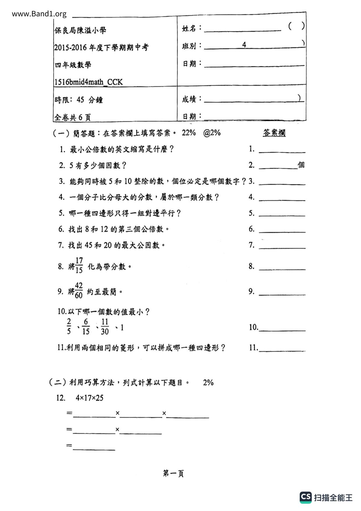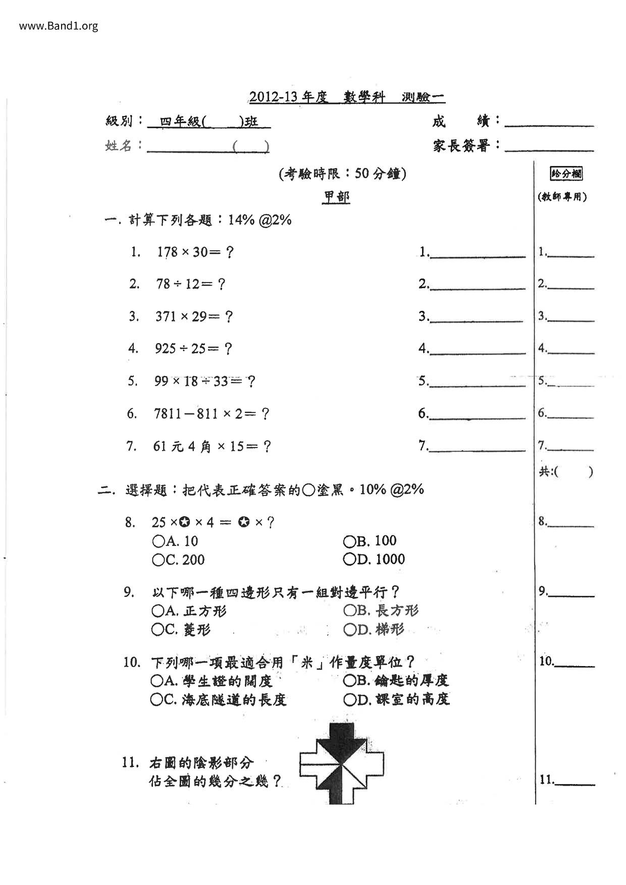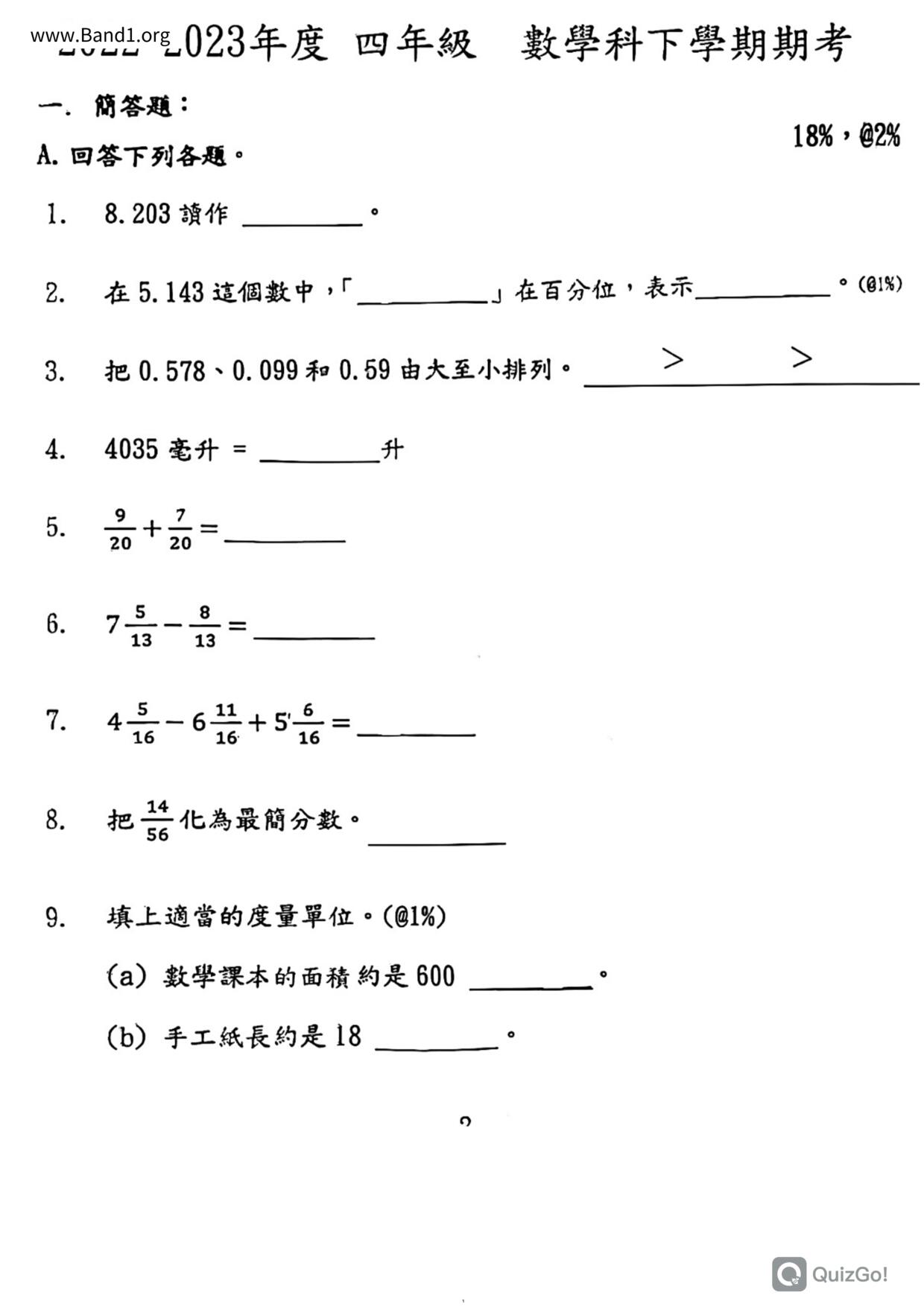 小四 數學 香港九龍塘基督教中華宣道會台山陳元喜小學