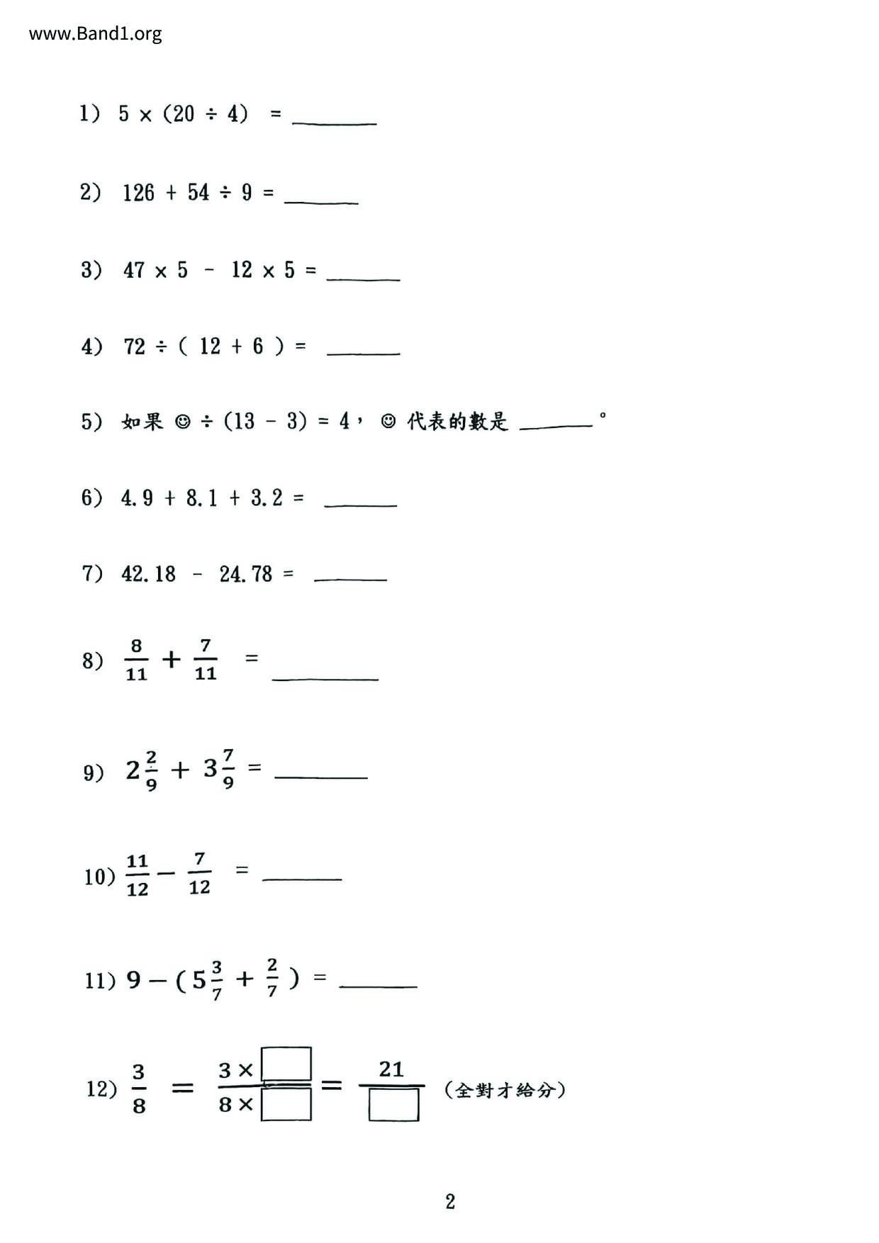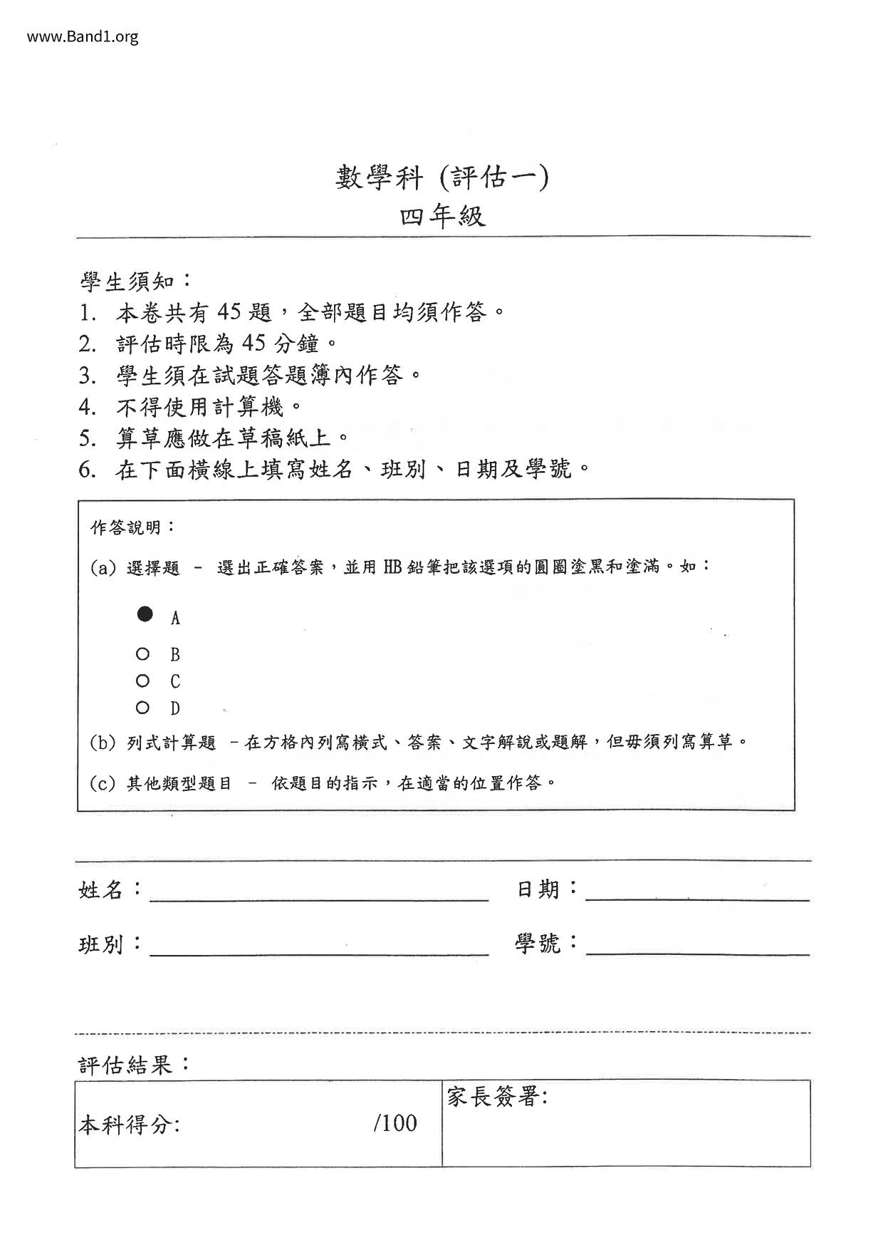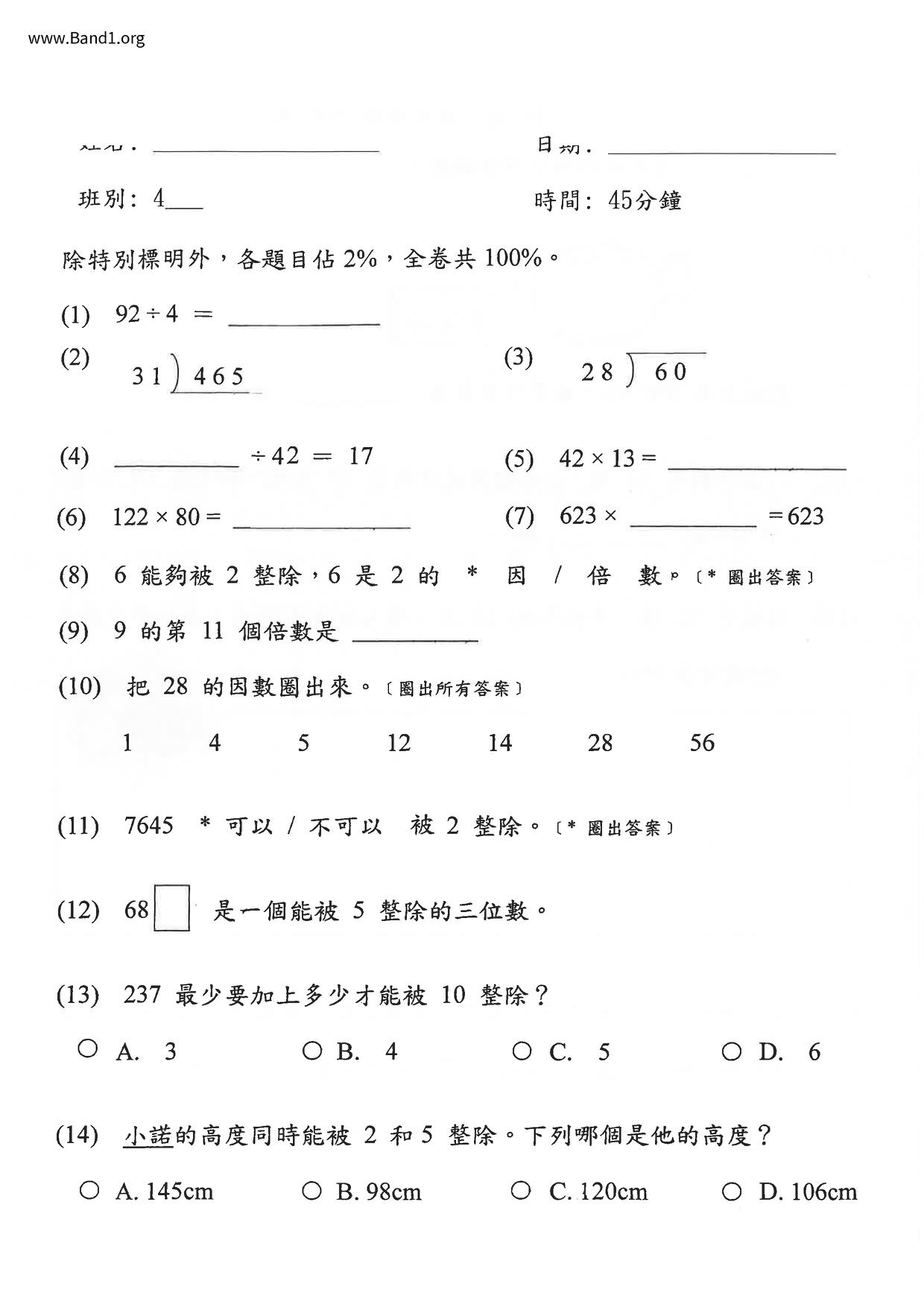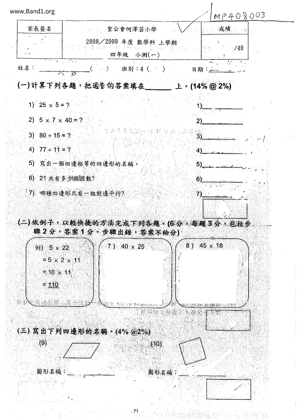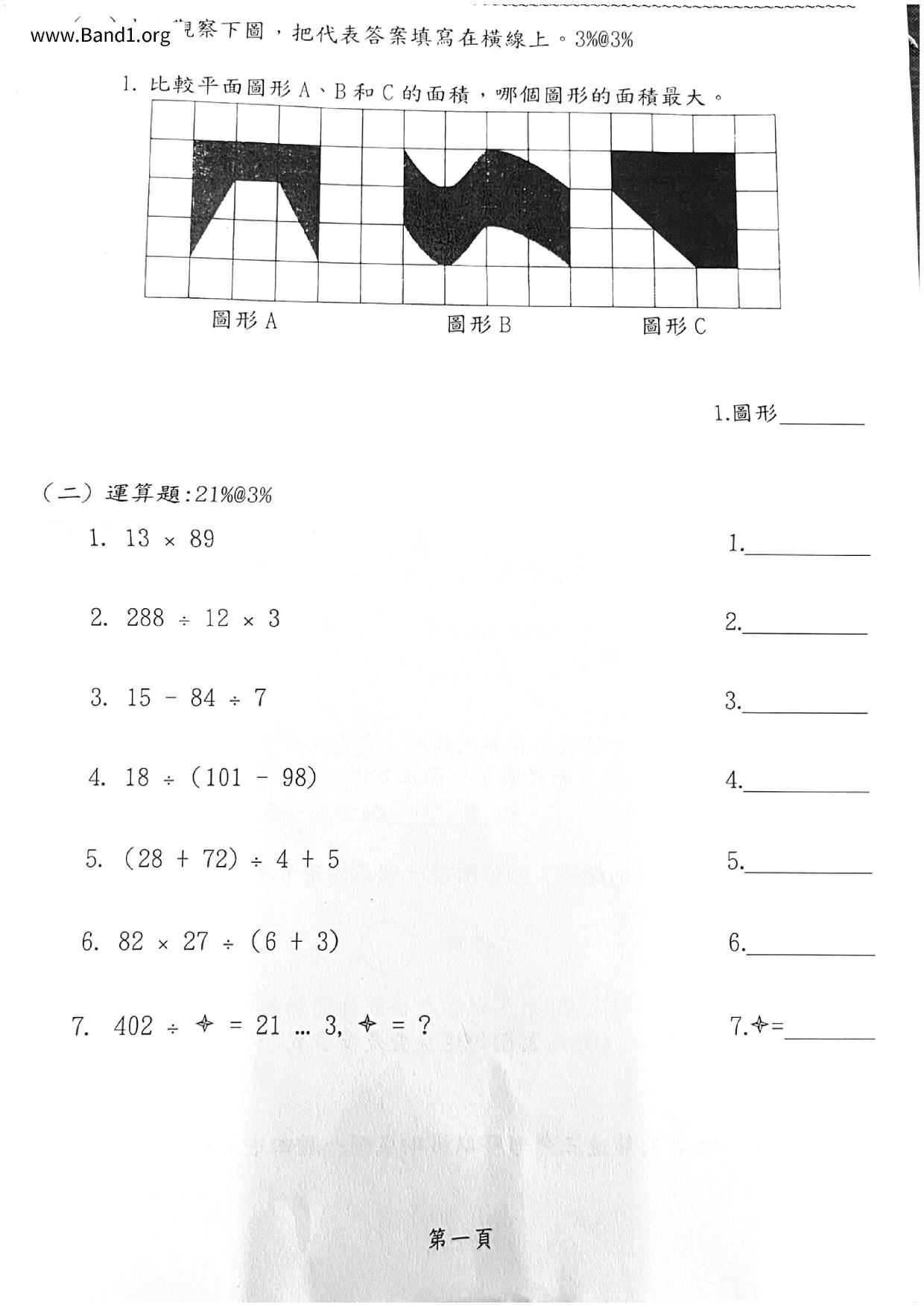 小四 數學 香港九龍塘基督教中華宣道會台山陳元喜小學