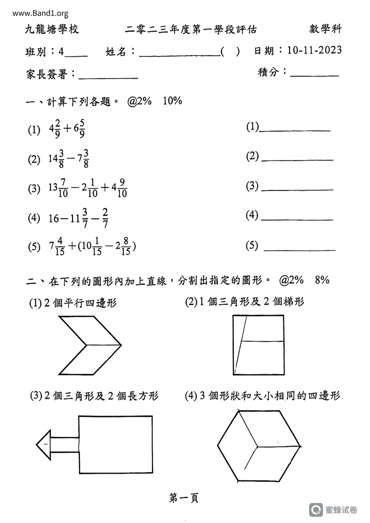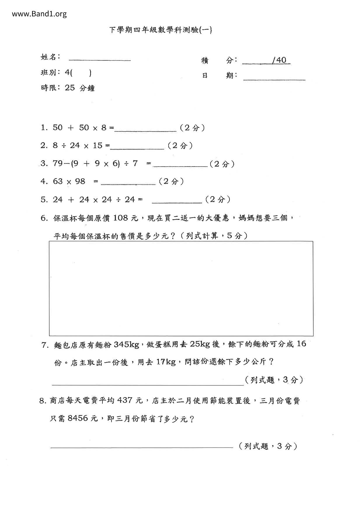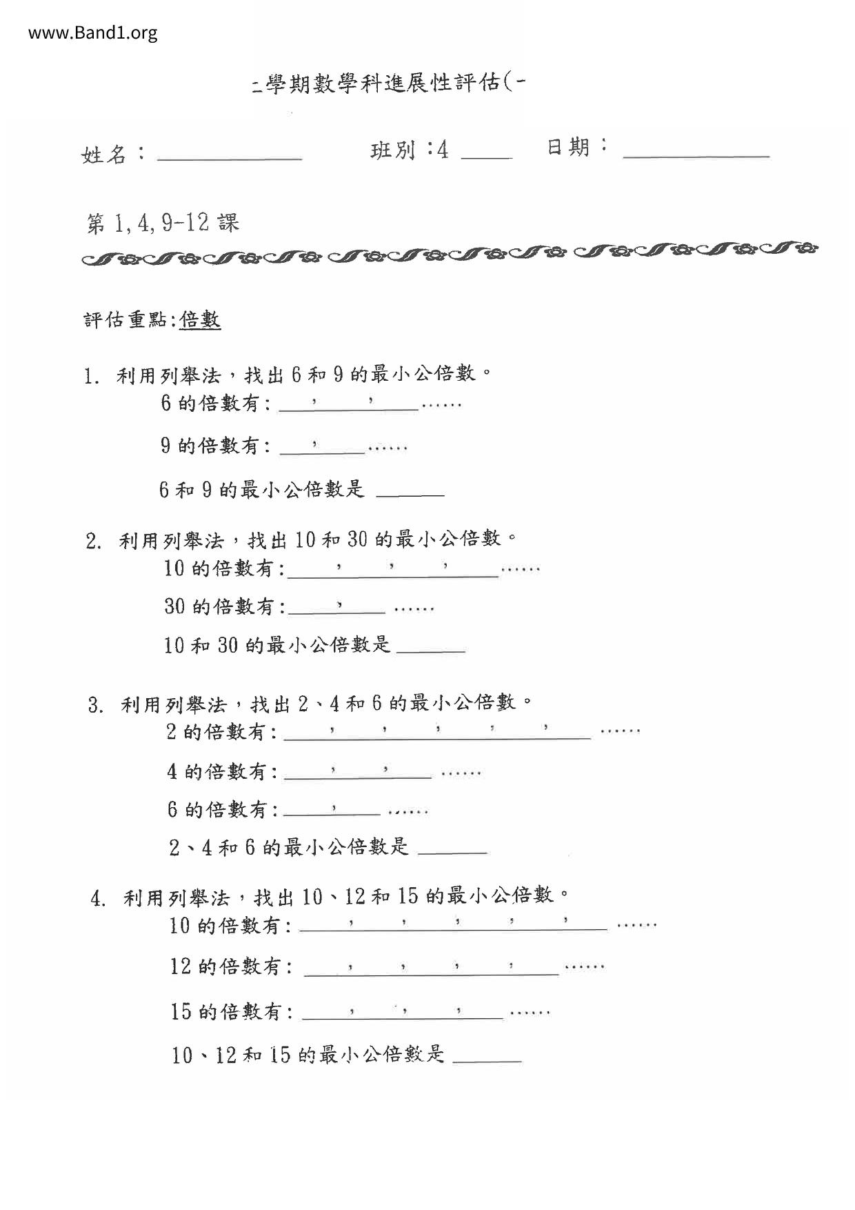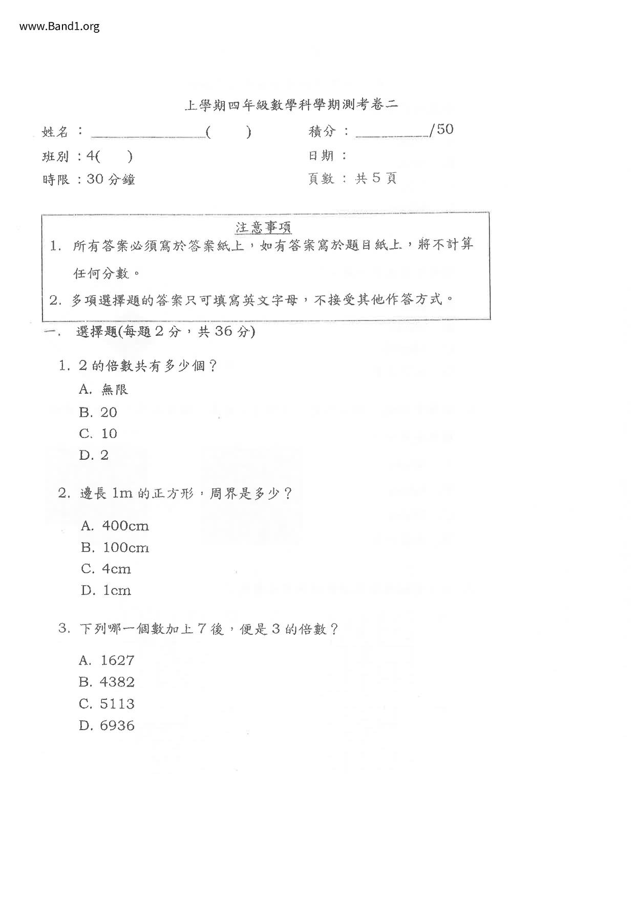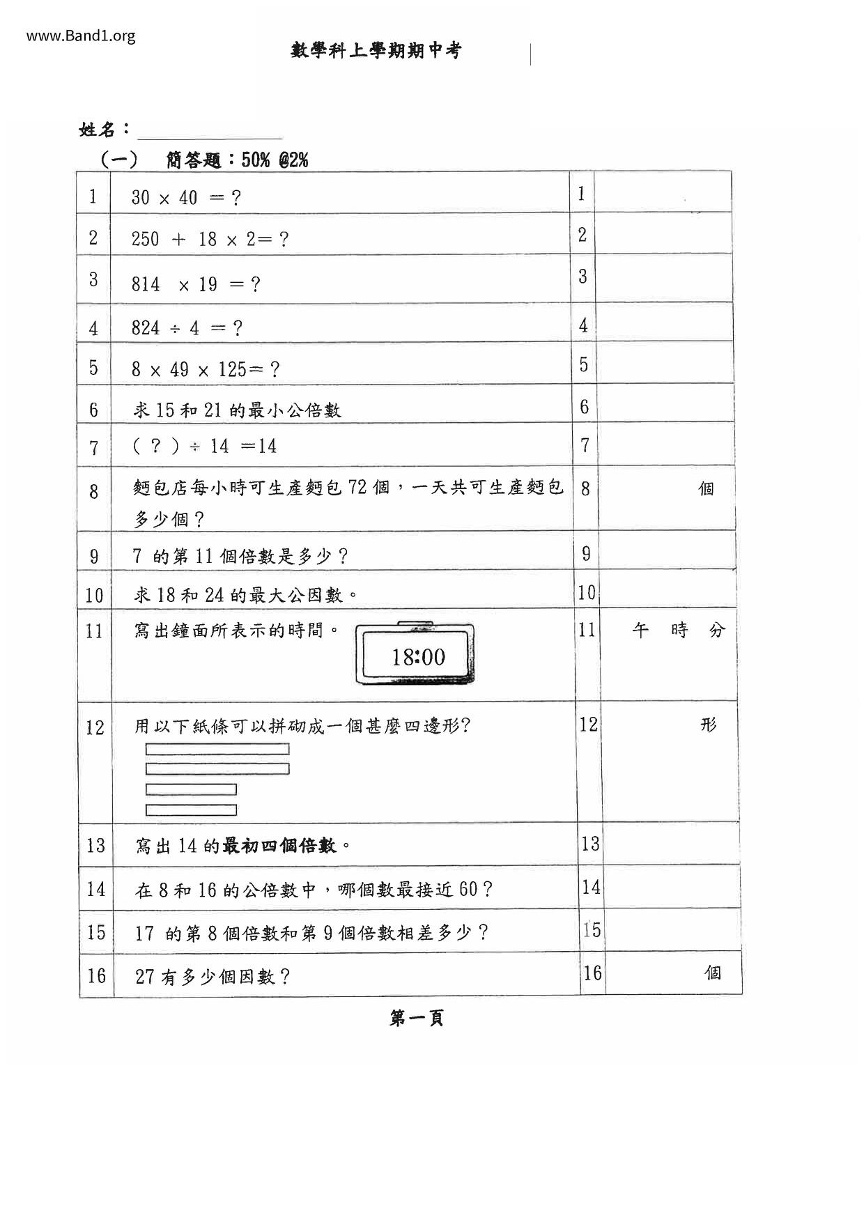 小四 數學 香港九龍塘基督教中華宣道會台山陳元喜小學