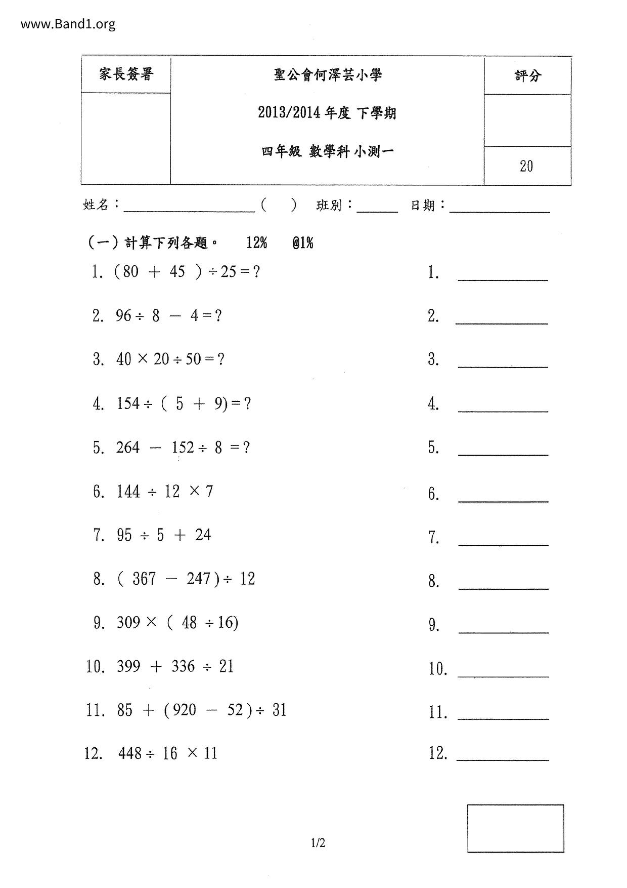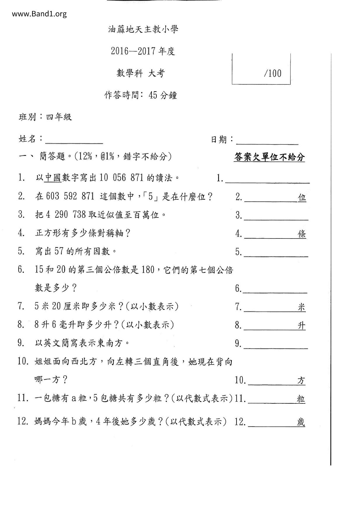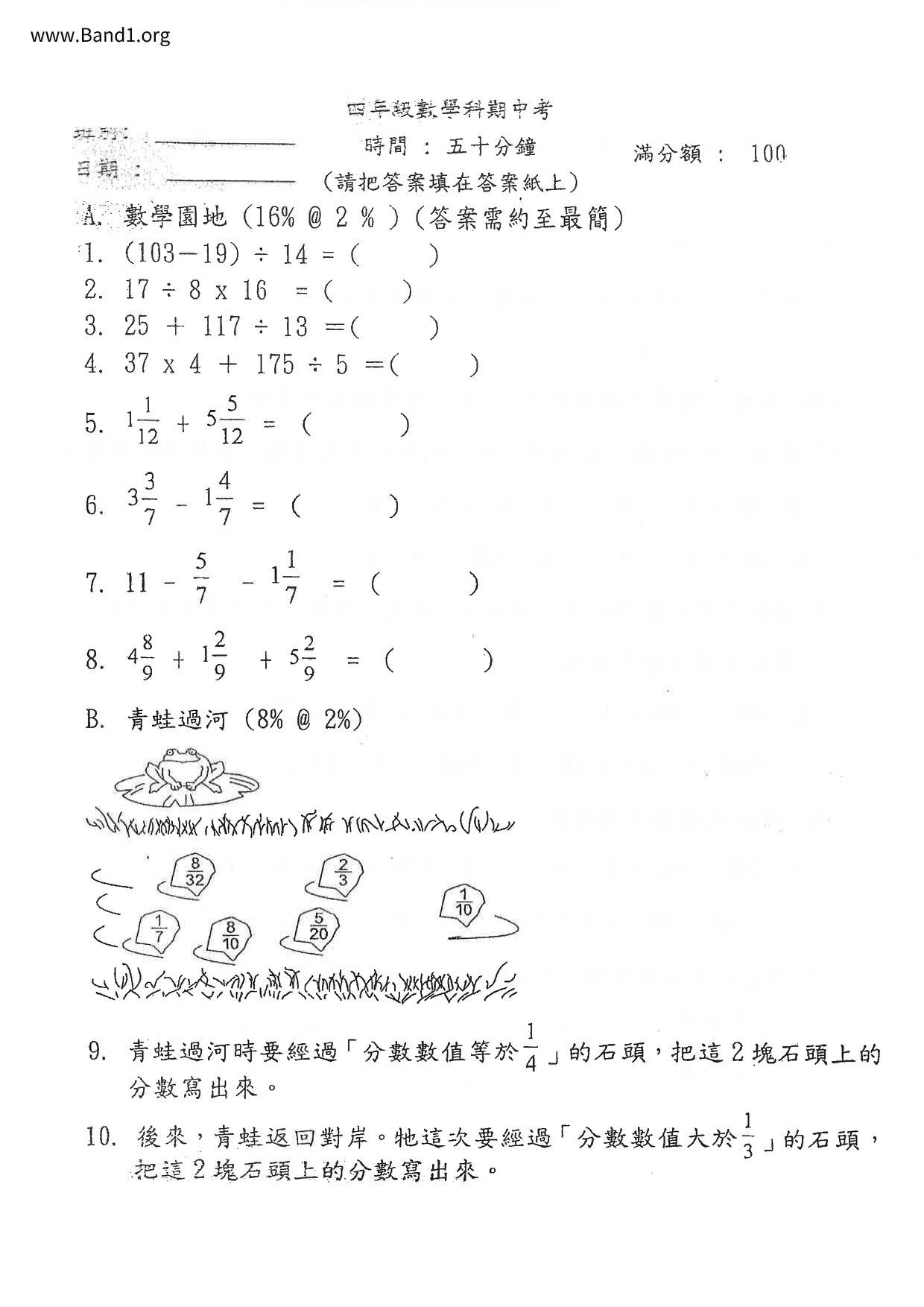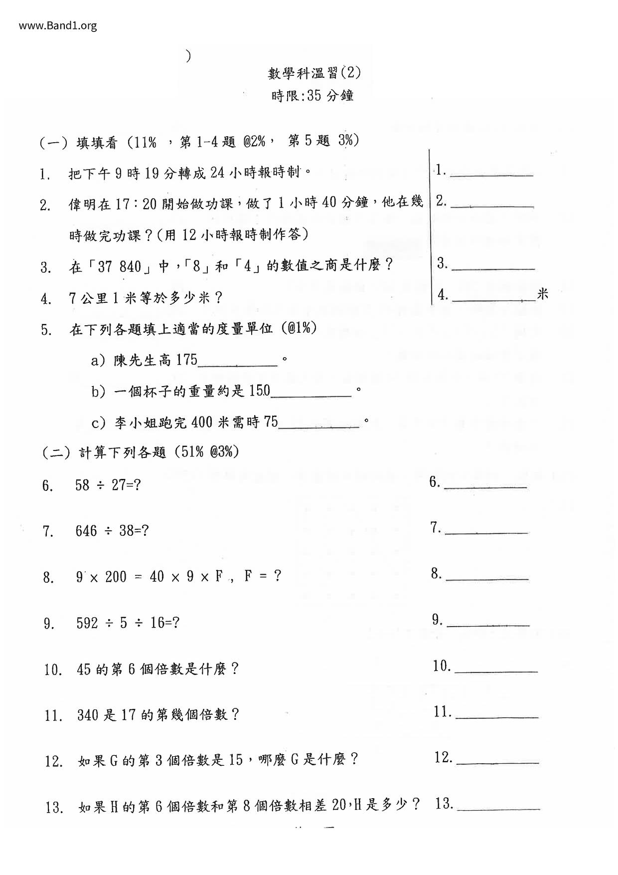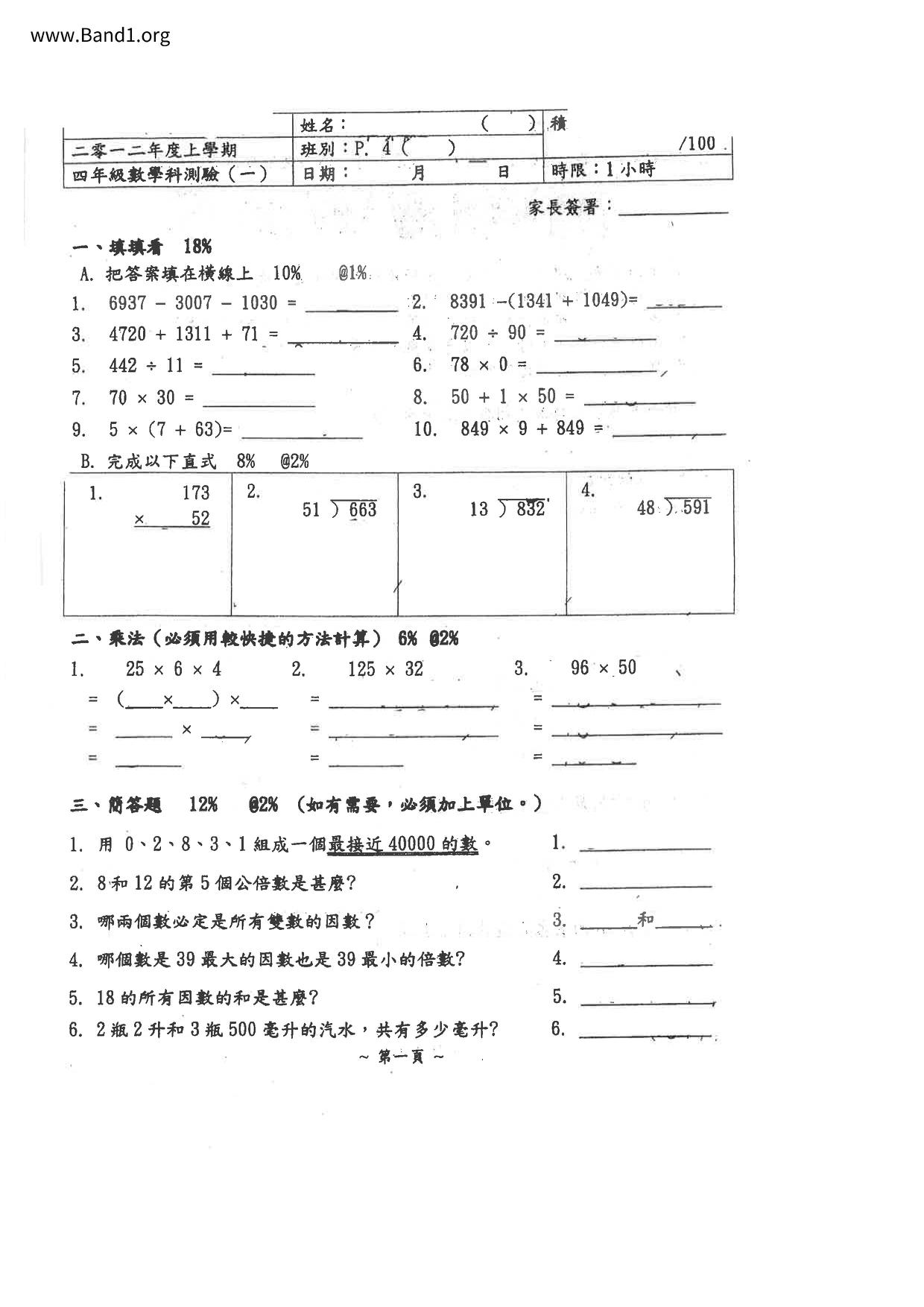 小四 數學 香港九龍塘基督教中華宣道會台山陳元喜小學