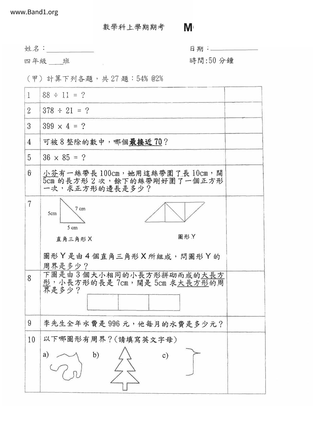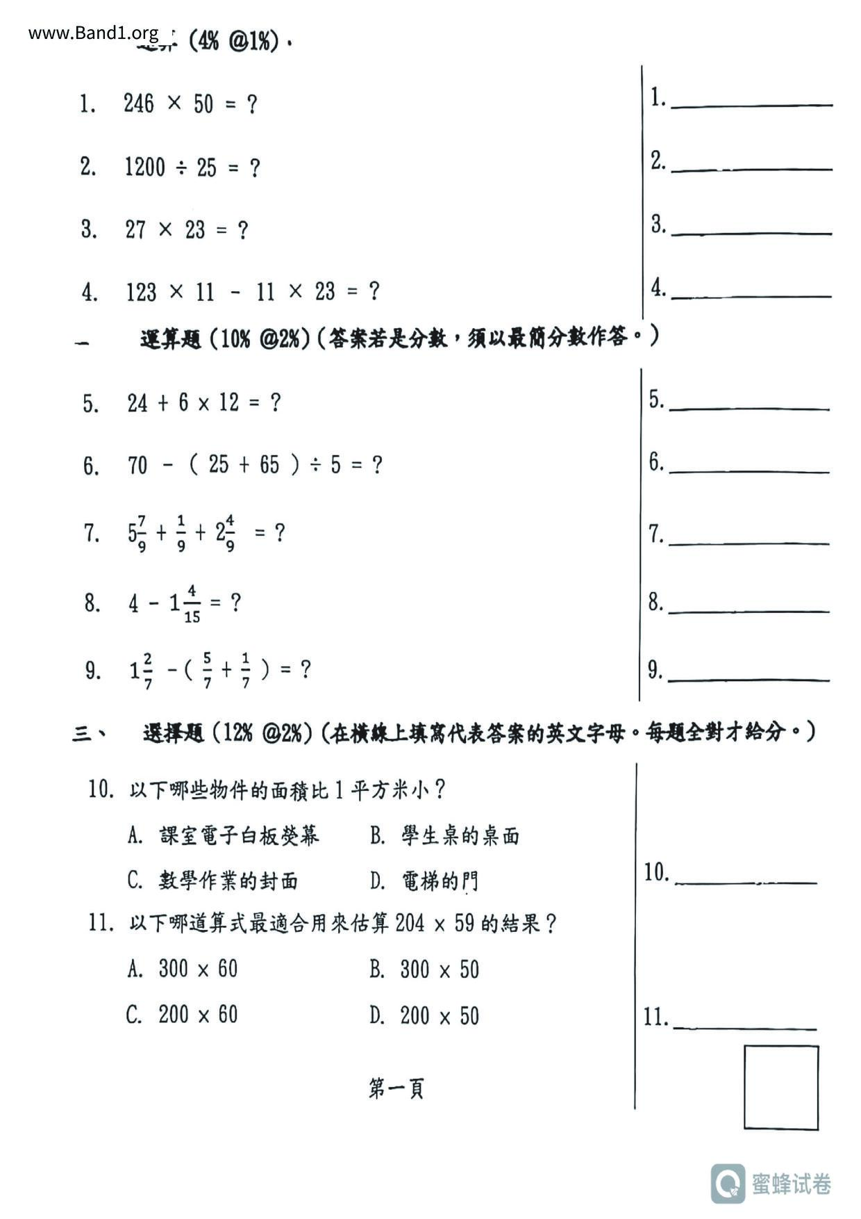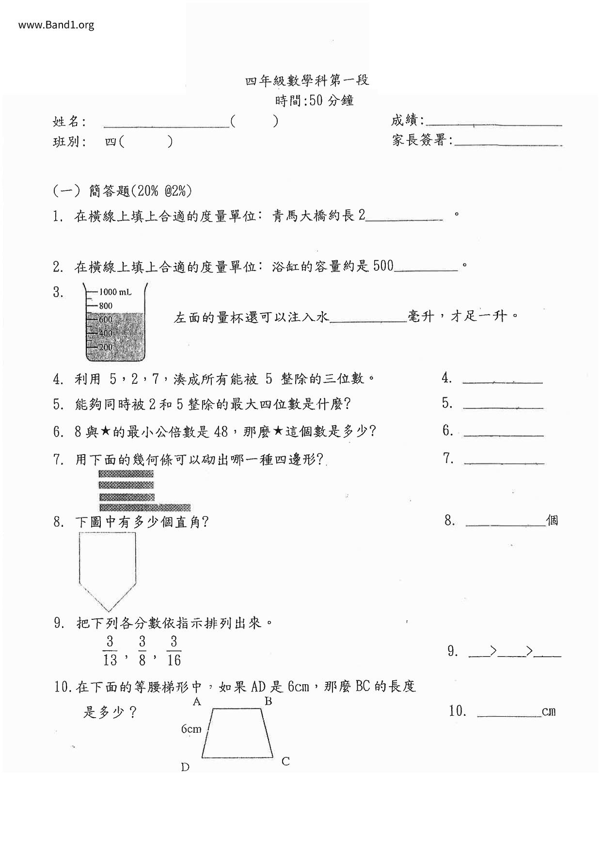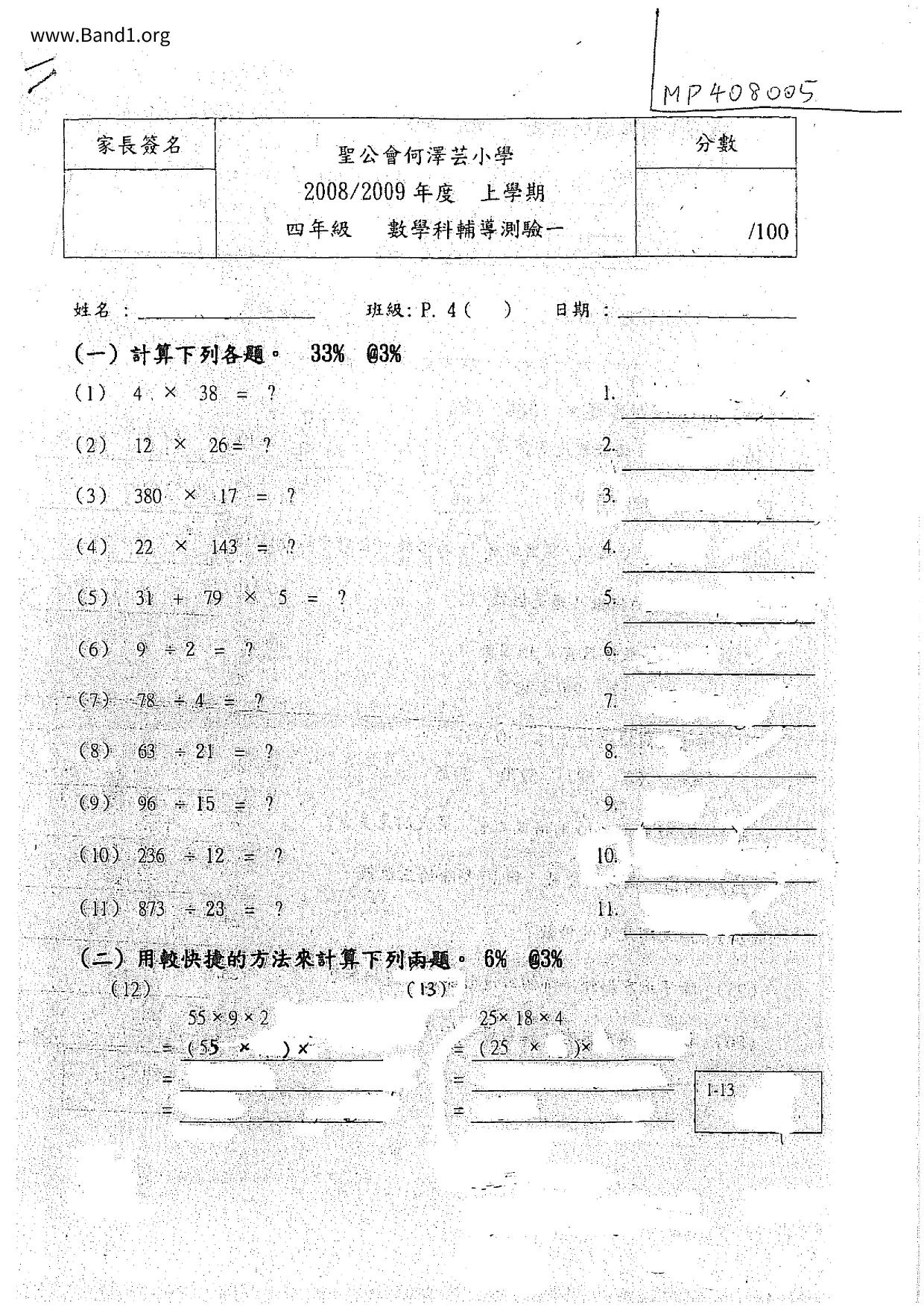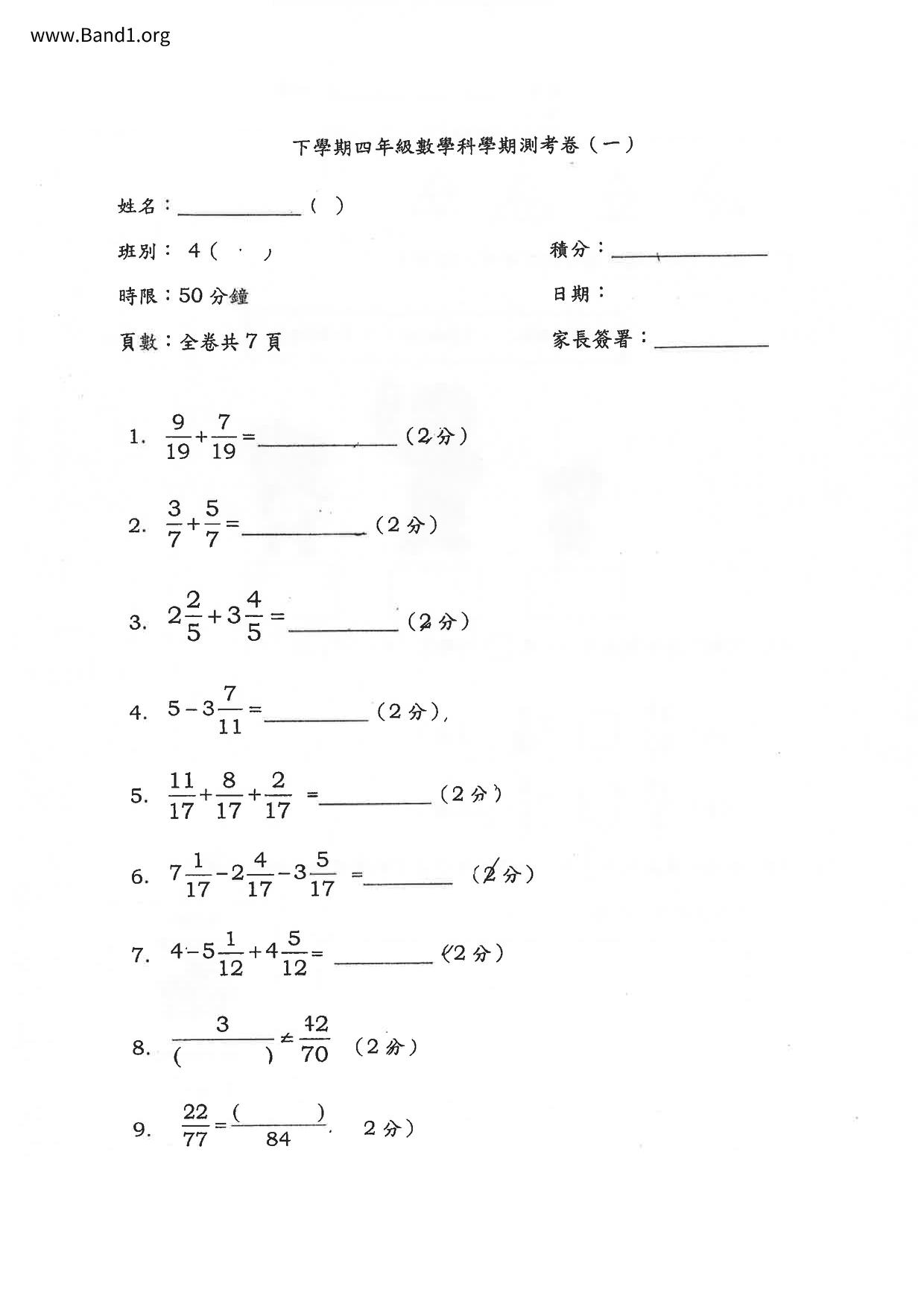 小四 數學 香港九龍塘基督教中華宣道會台山陳元喜小學