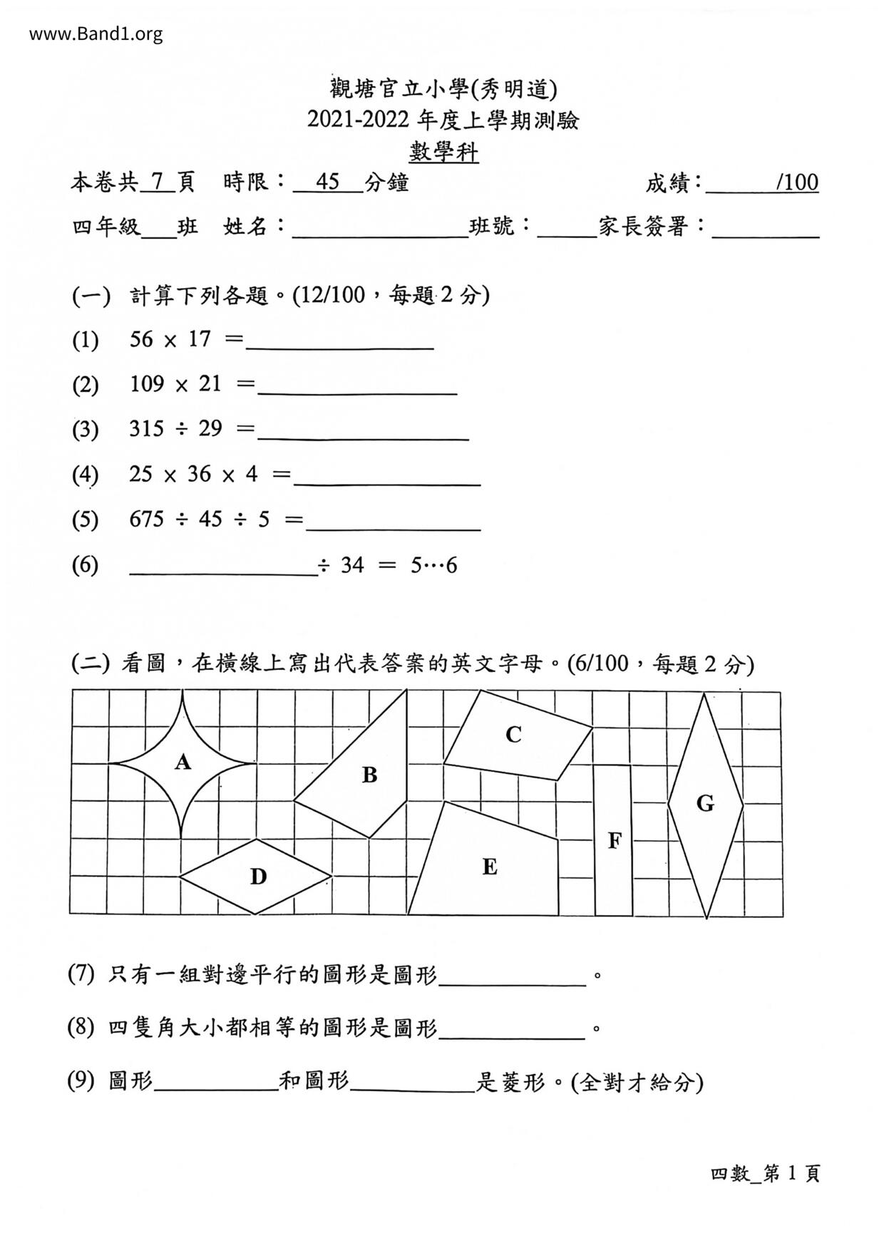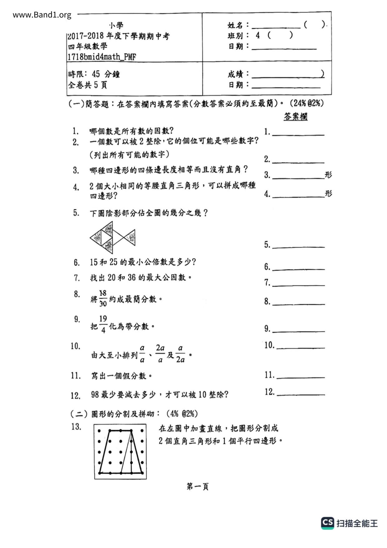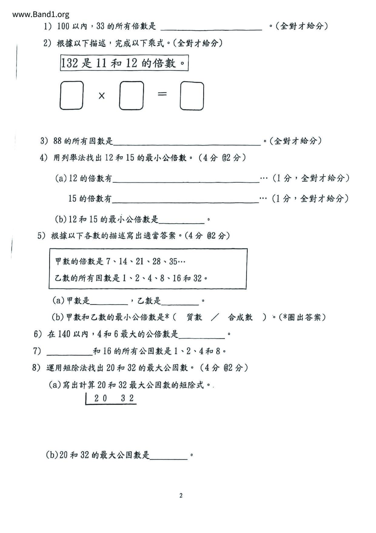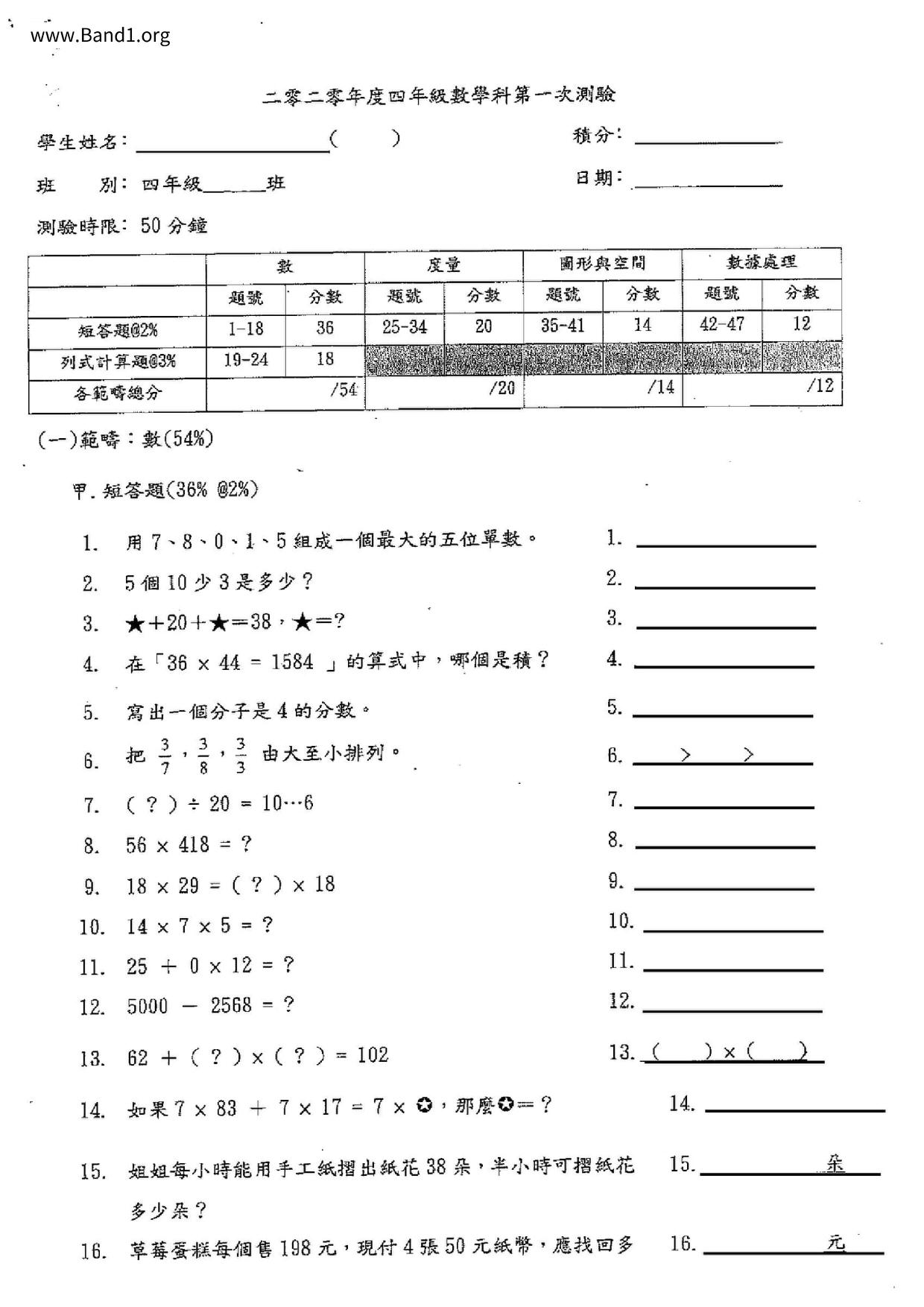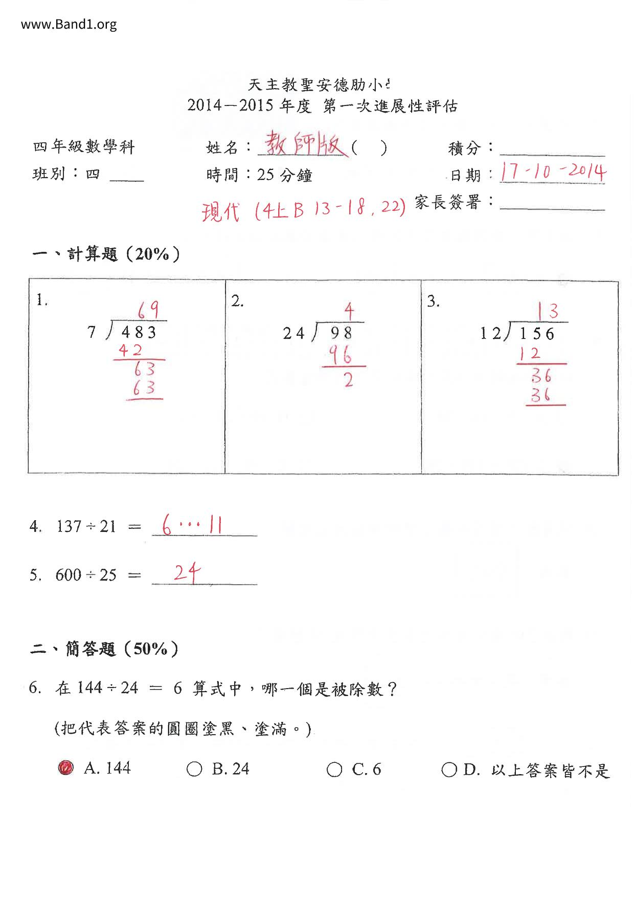 小四 數學 香港九龍塘基督教中華宣道會台山陳元喜小學