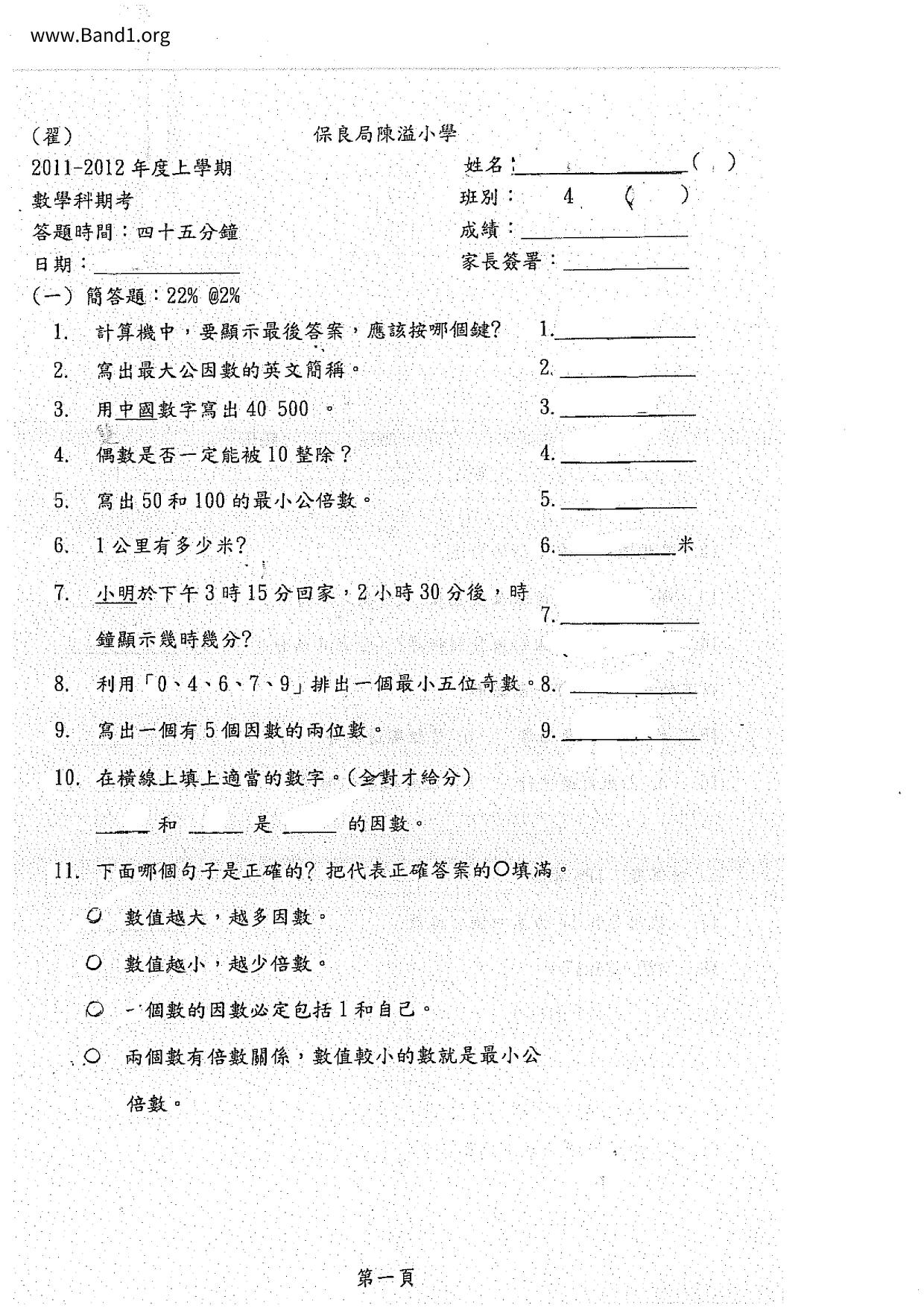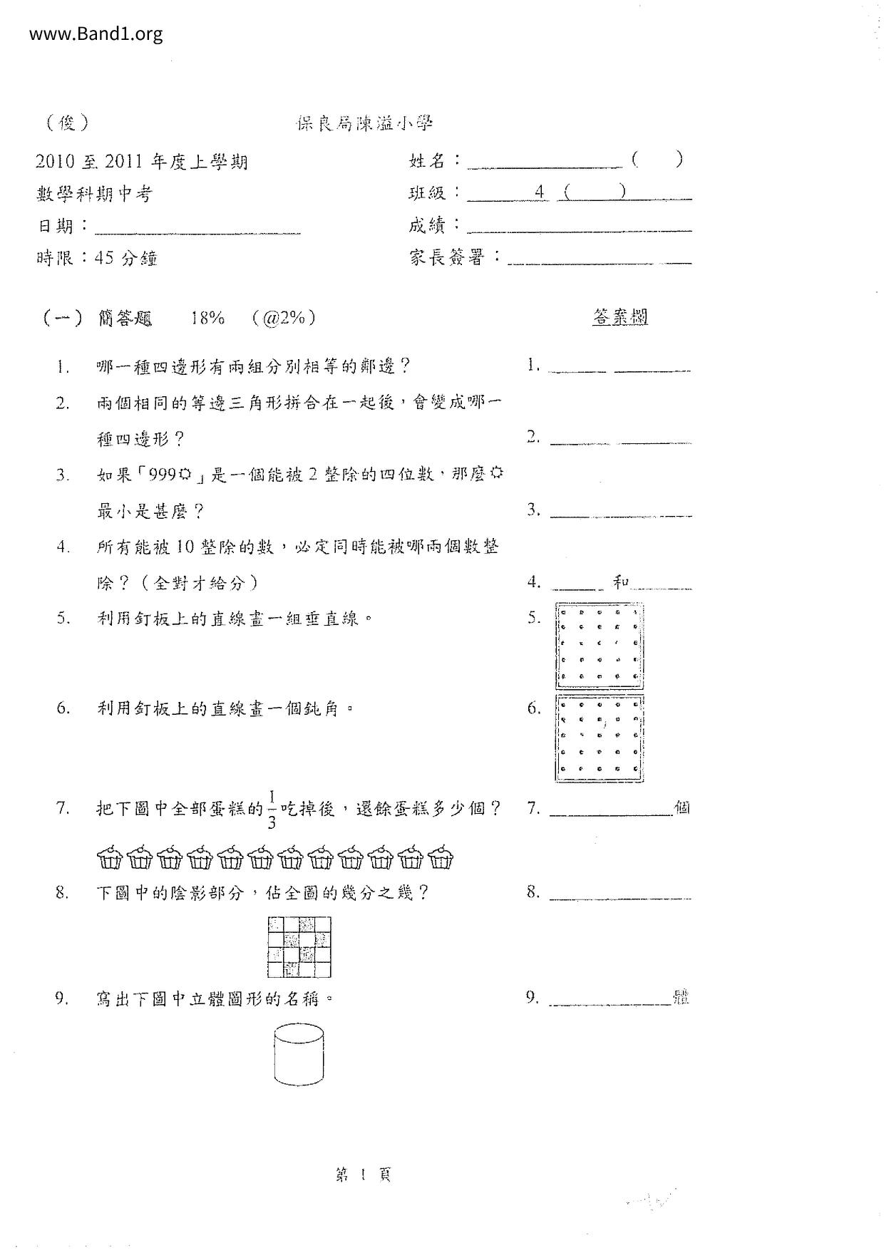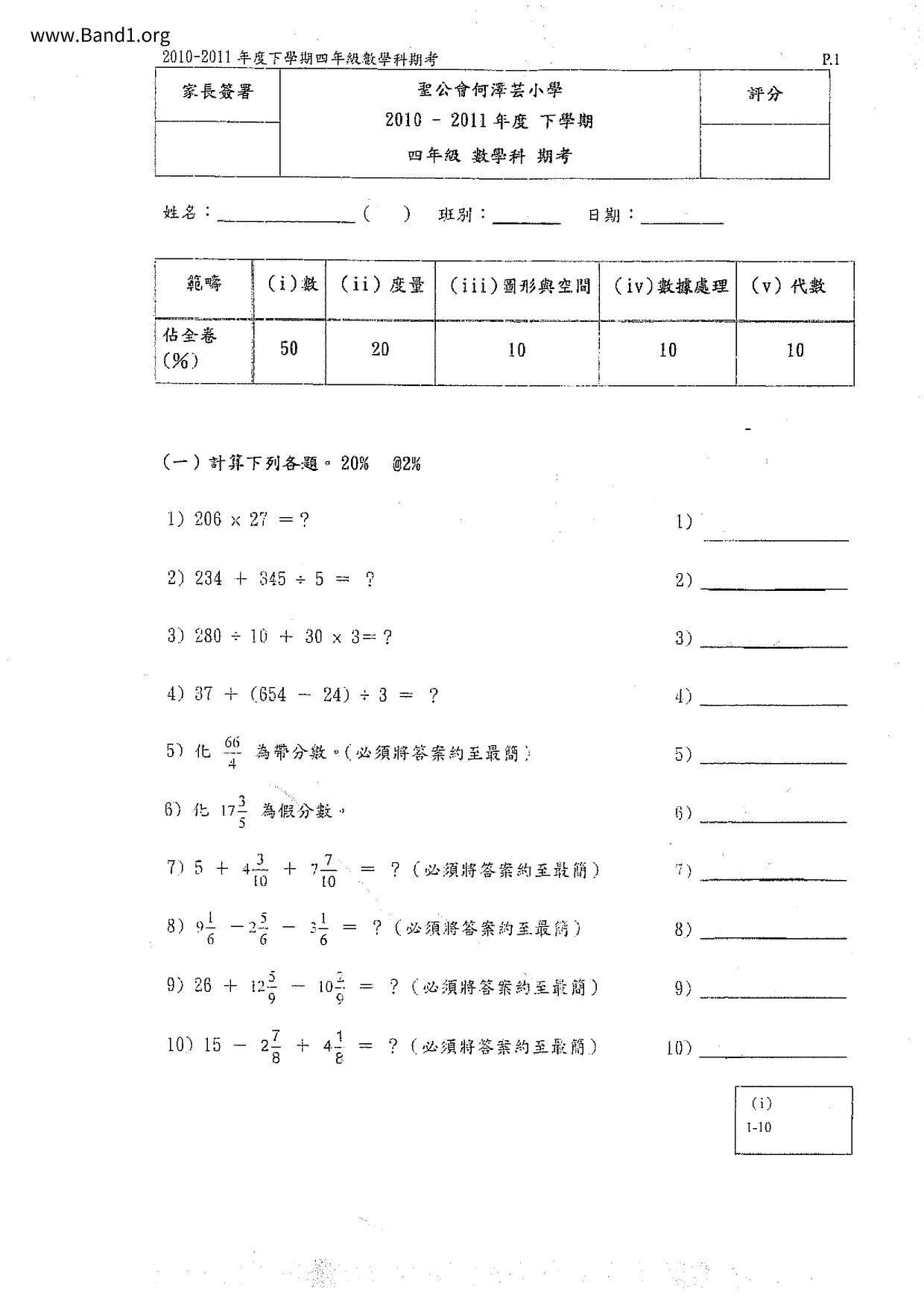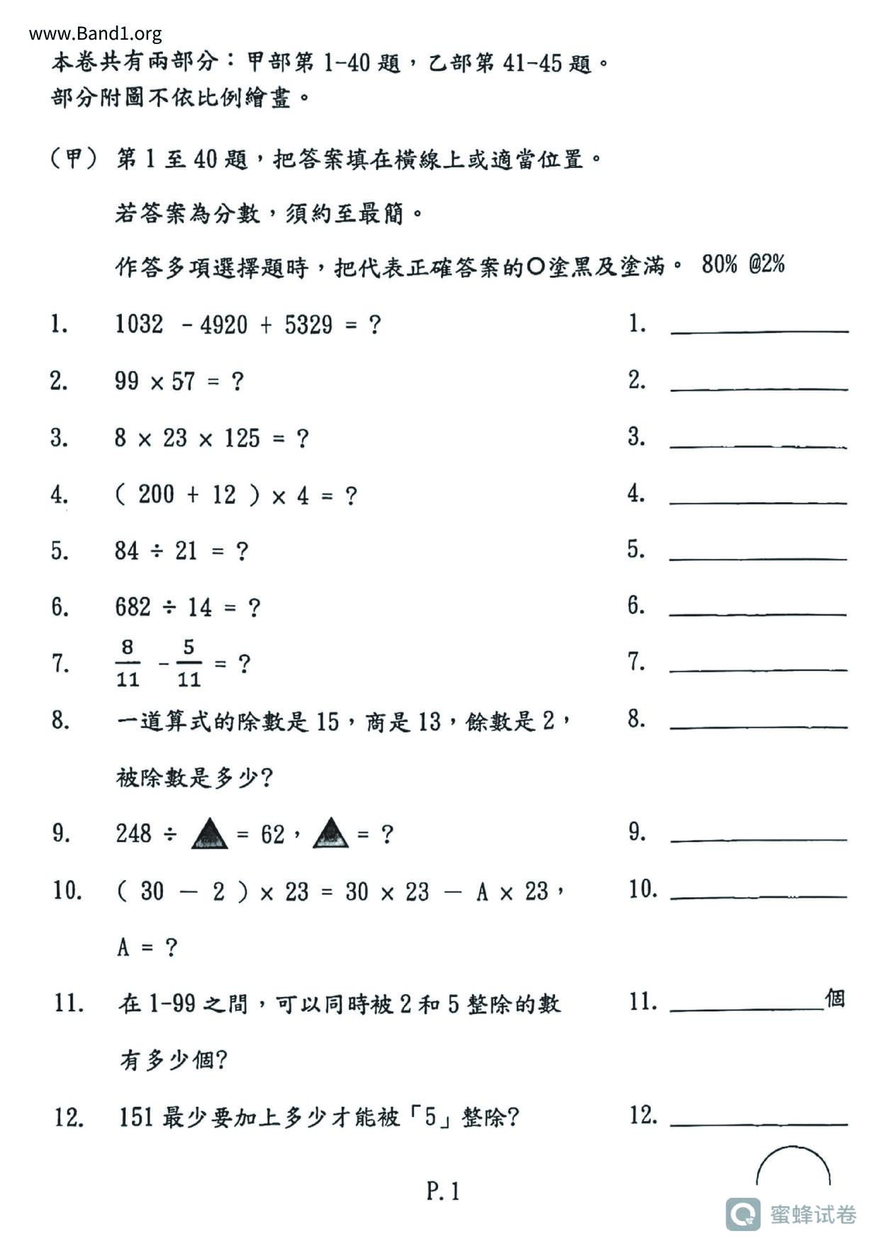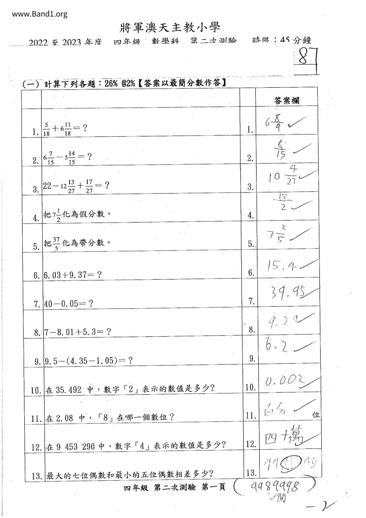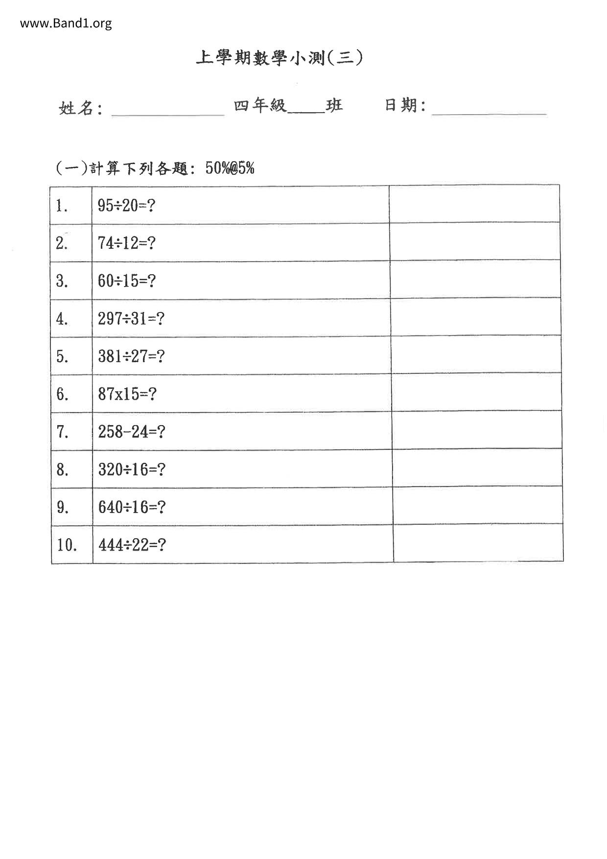 小四 數學 香港九龍塘基督教中華宣道會台山陳元喜小學