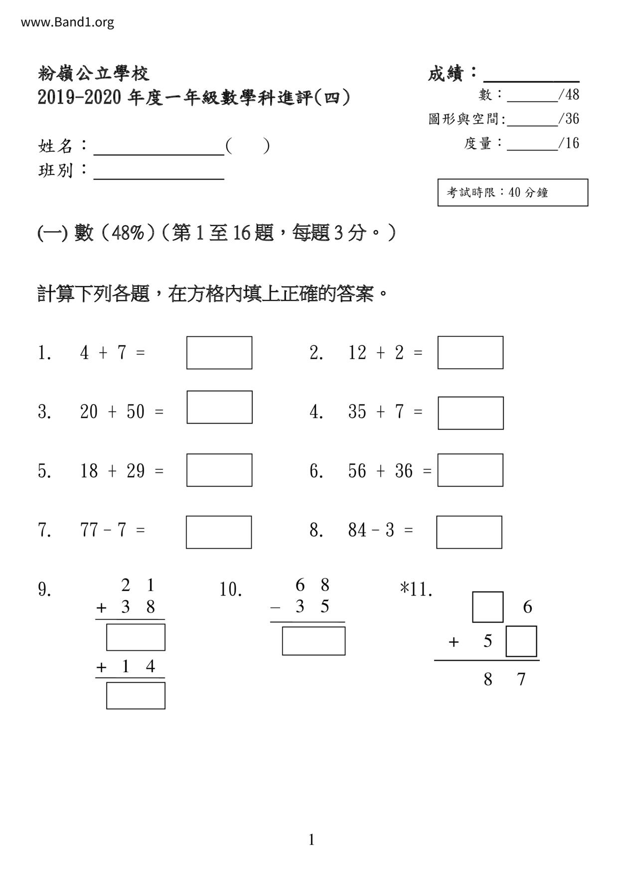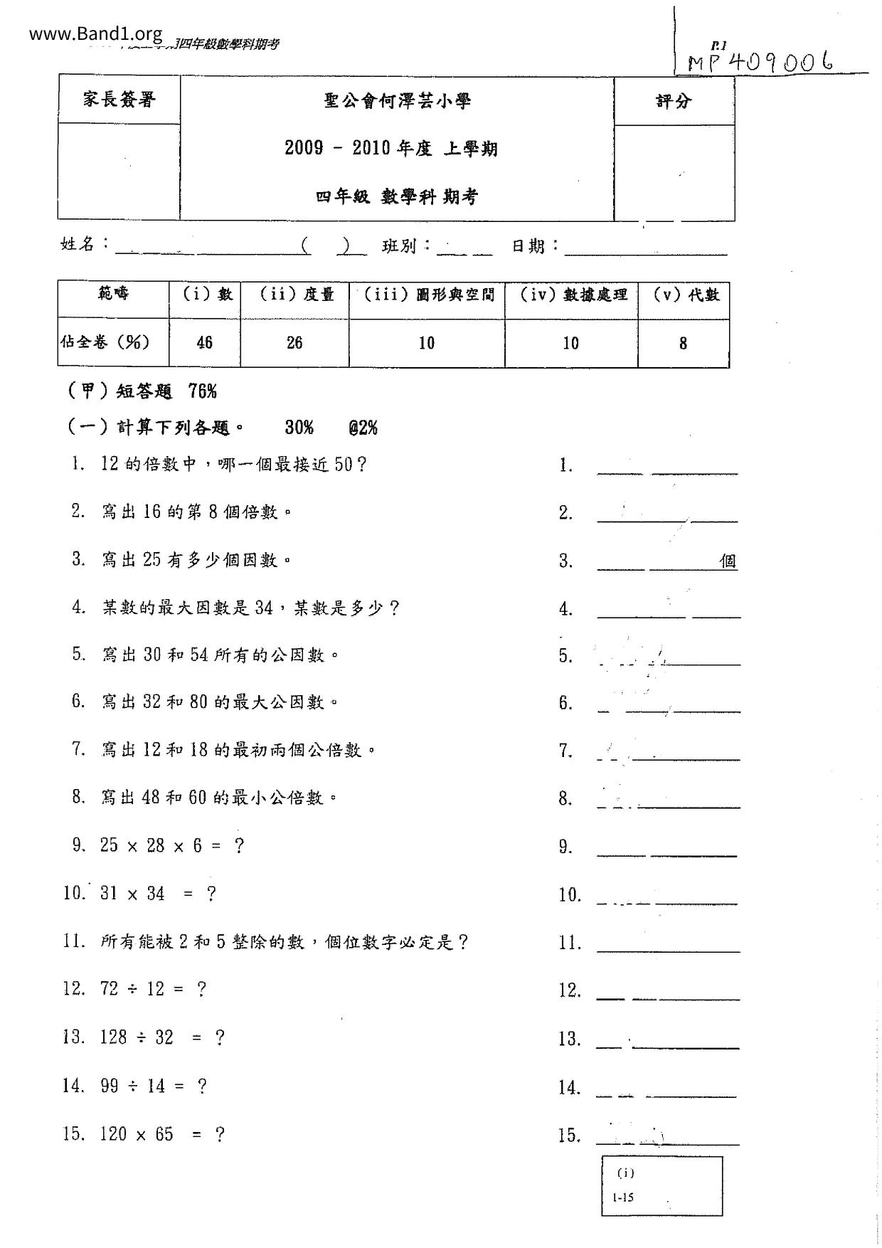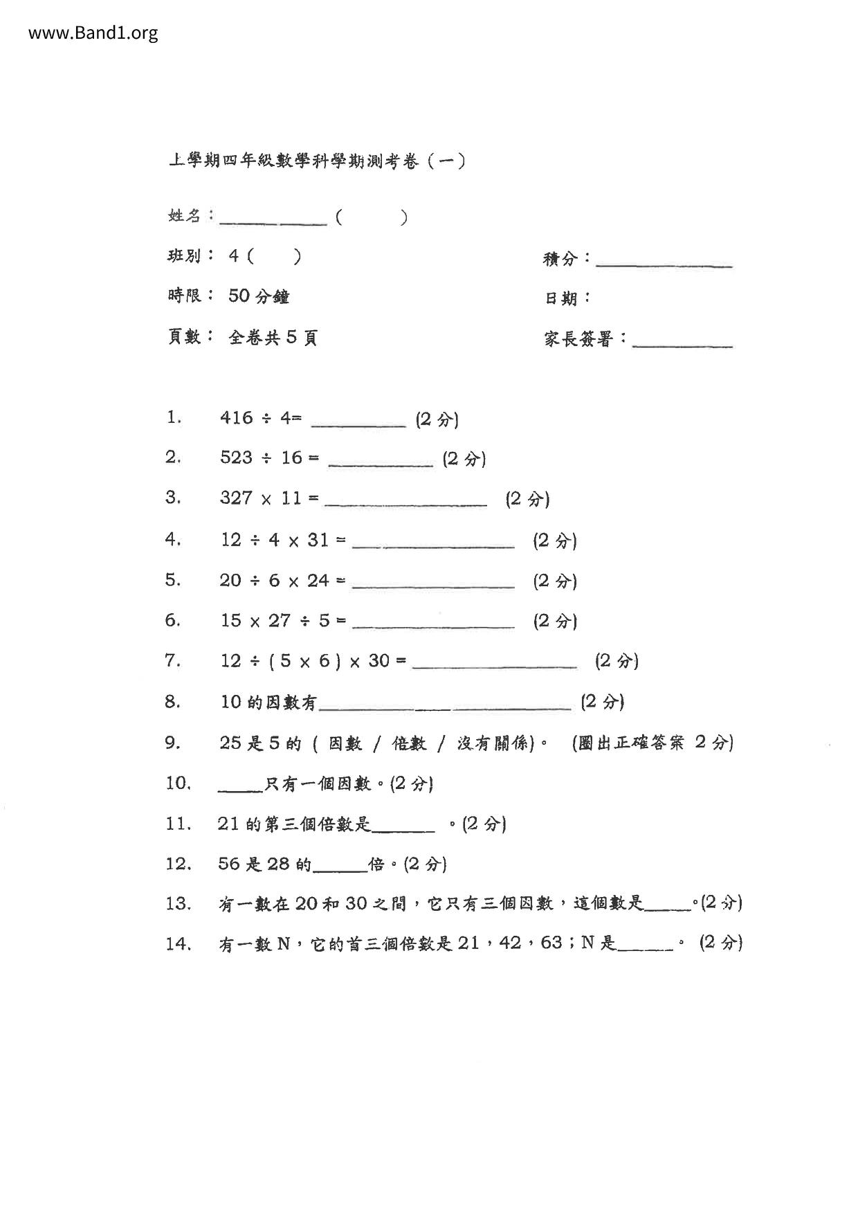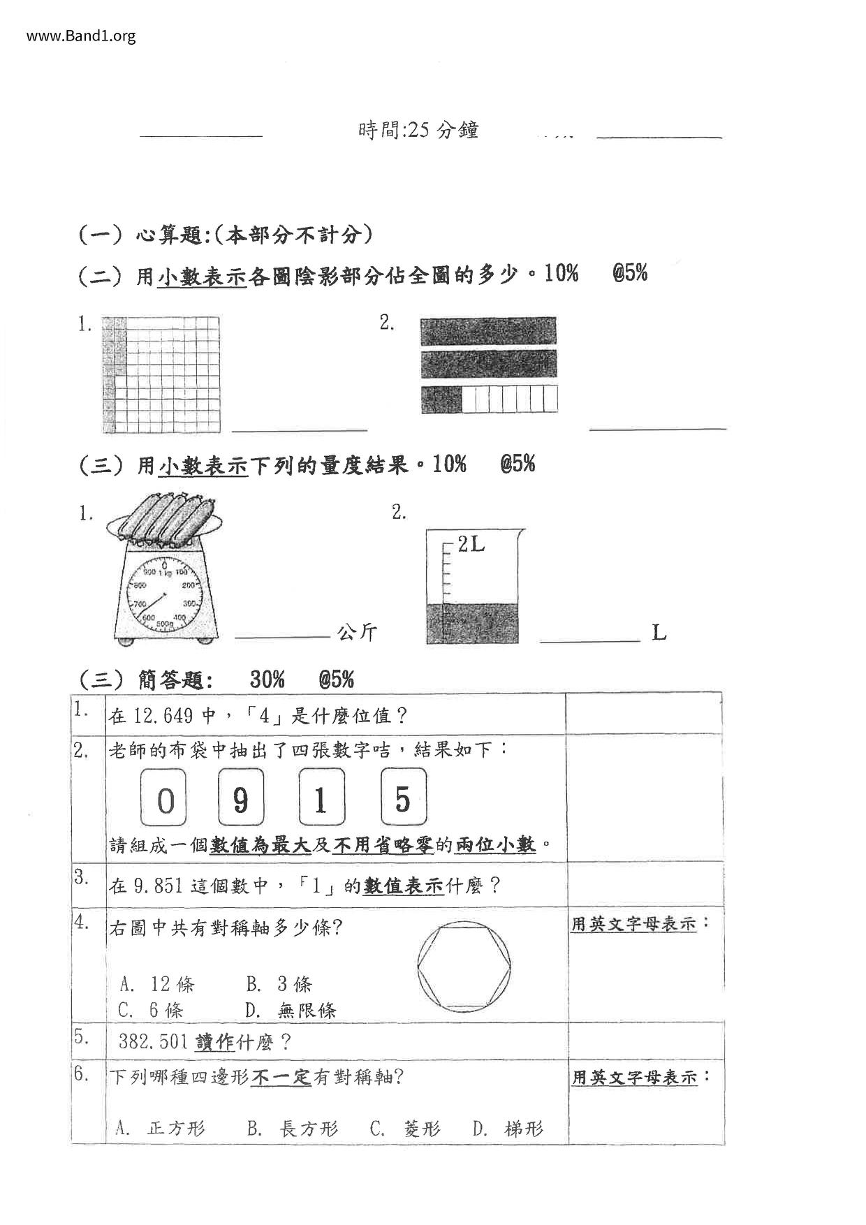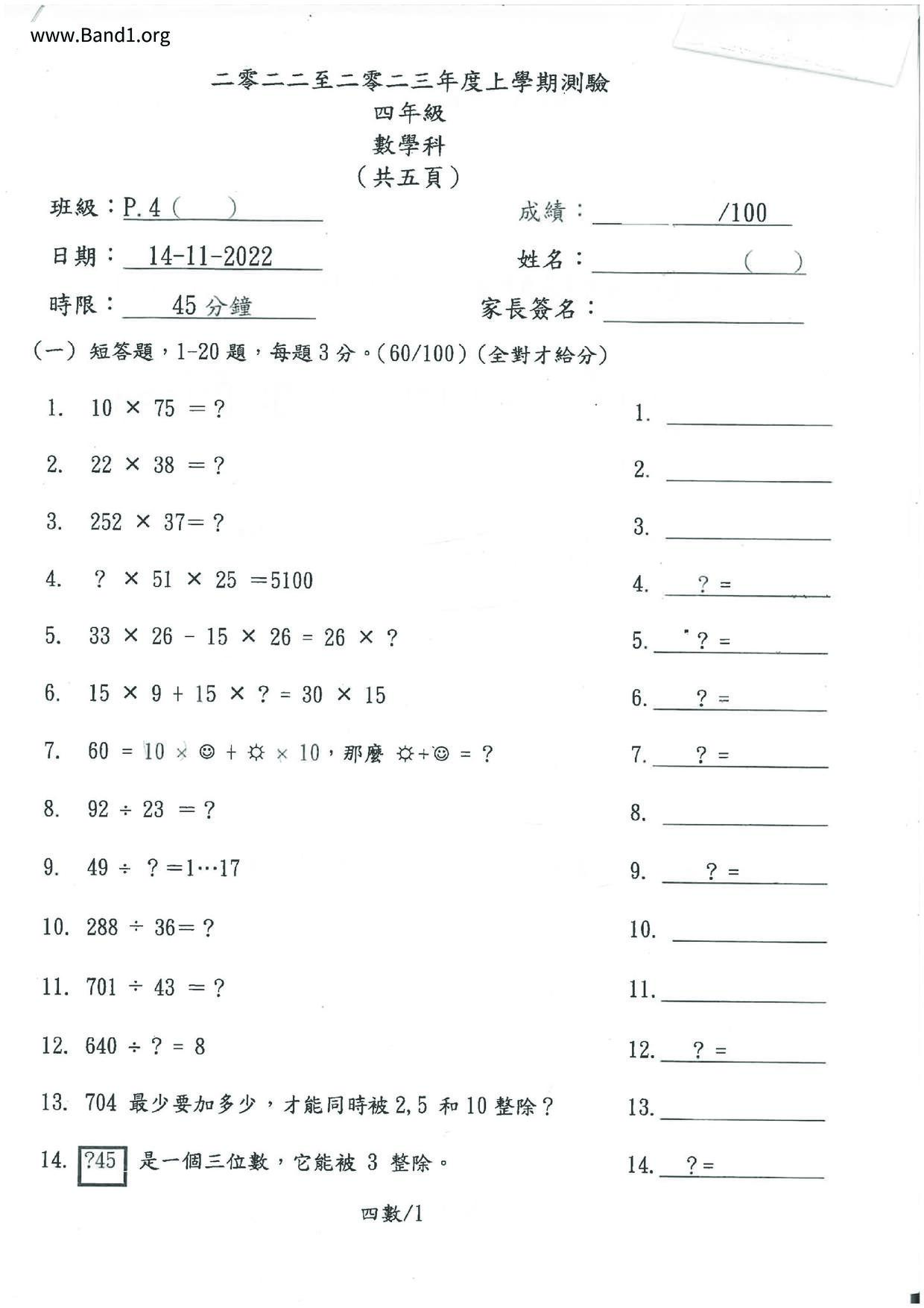 小四 數學 香港九龍塘基督教中華宣道會台山陳元喜小學