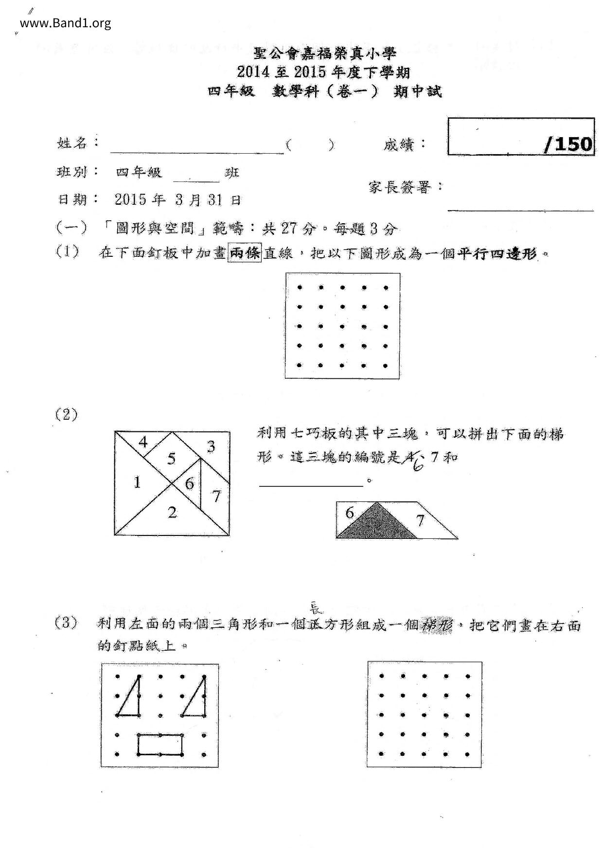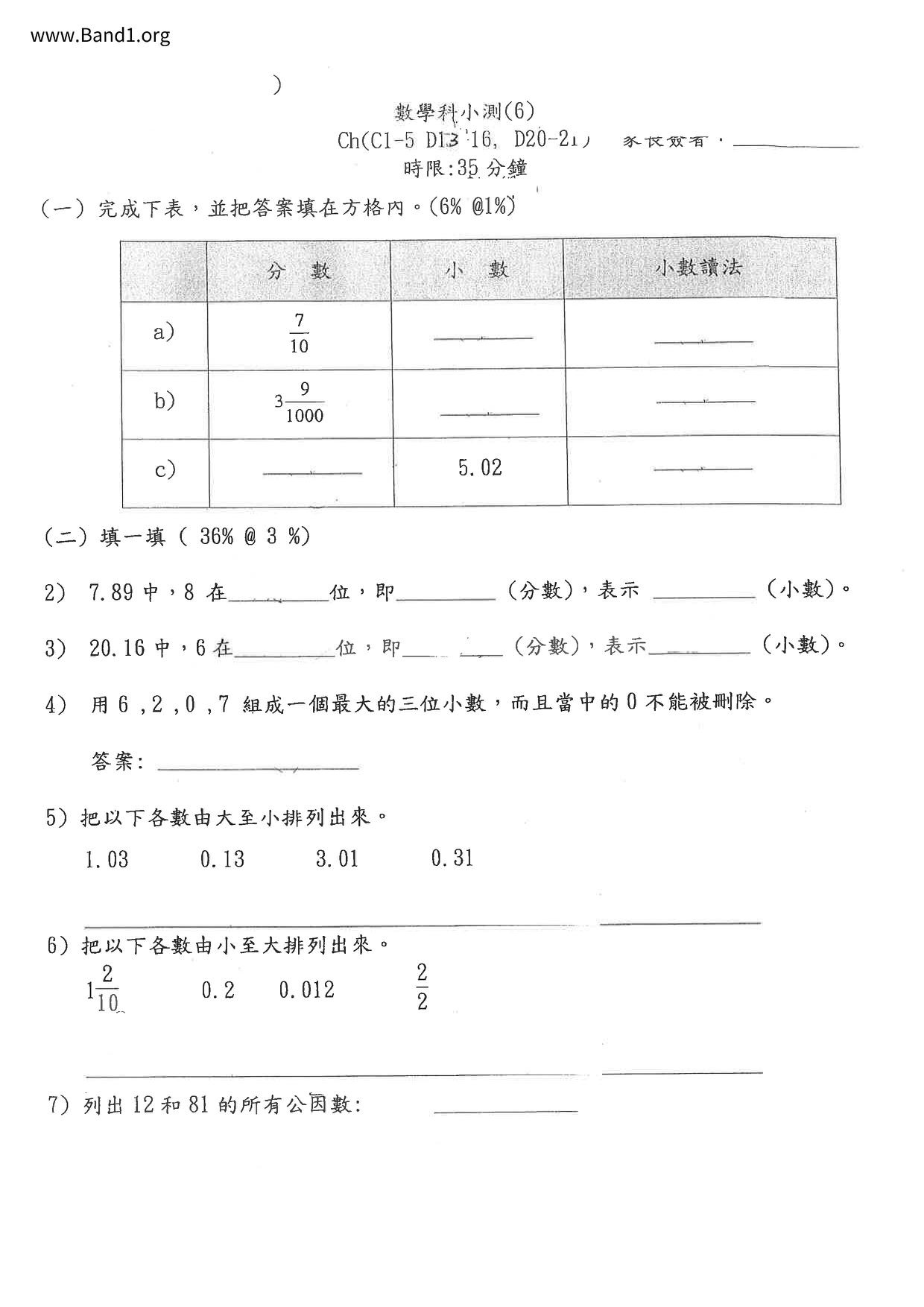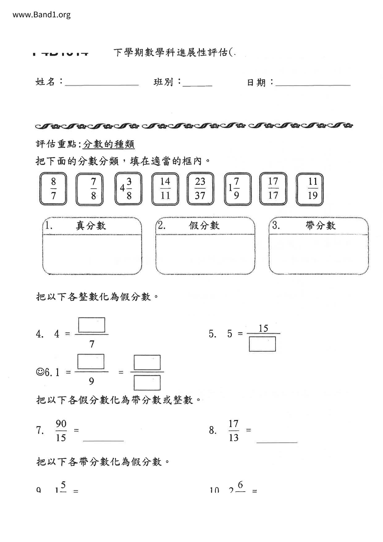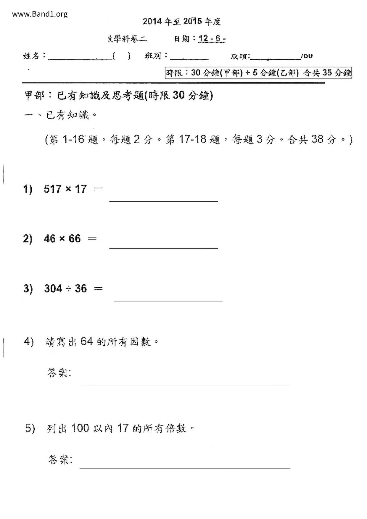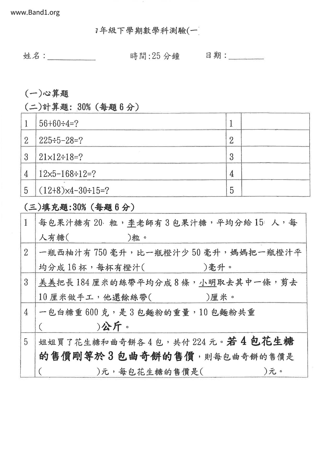 小四 數學 香港九龍塘基督教中華宣道會台山陳元喜小學
