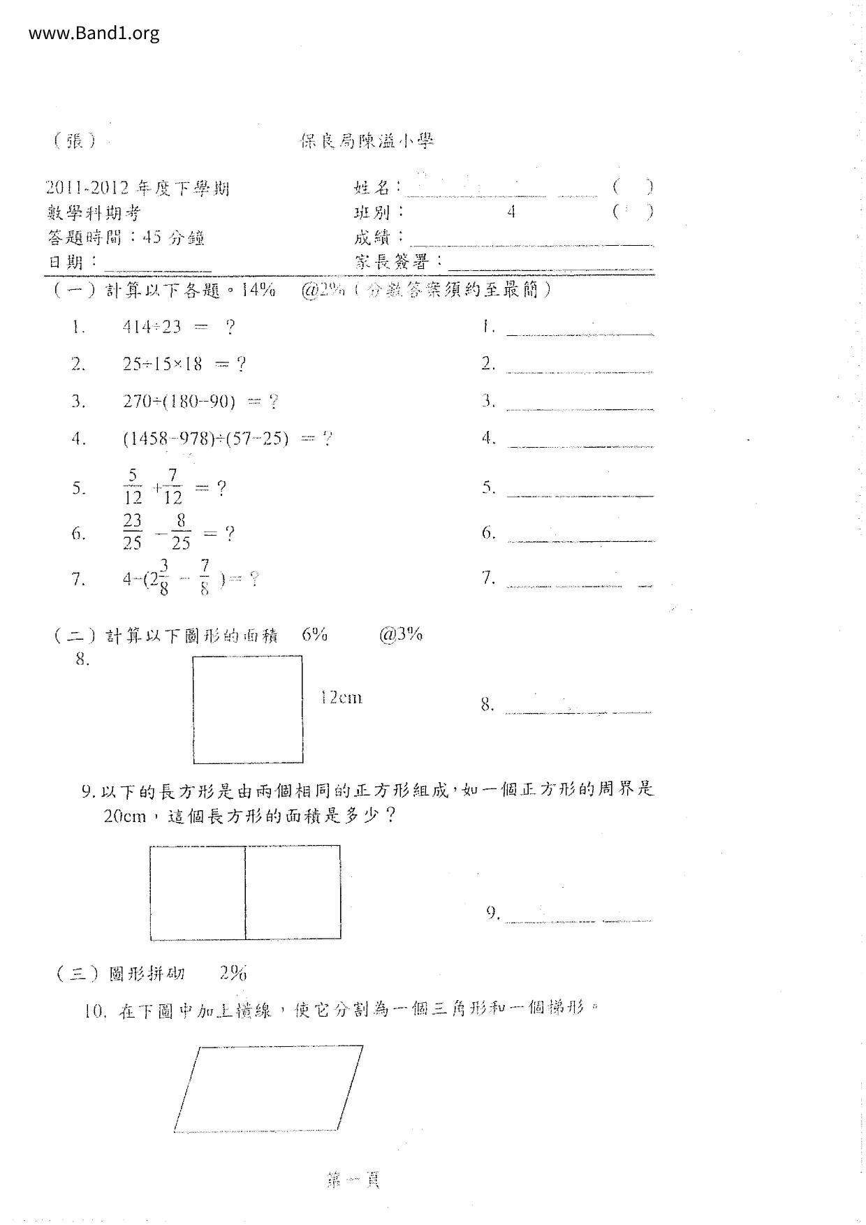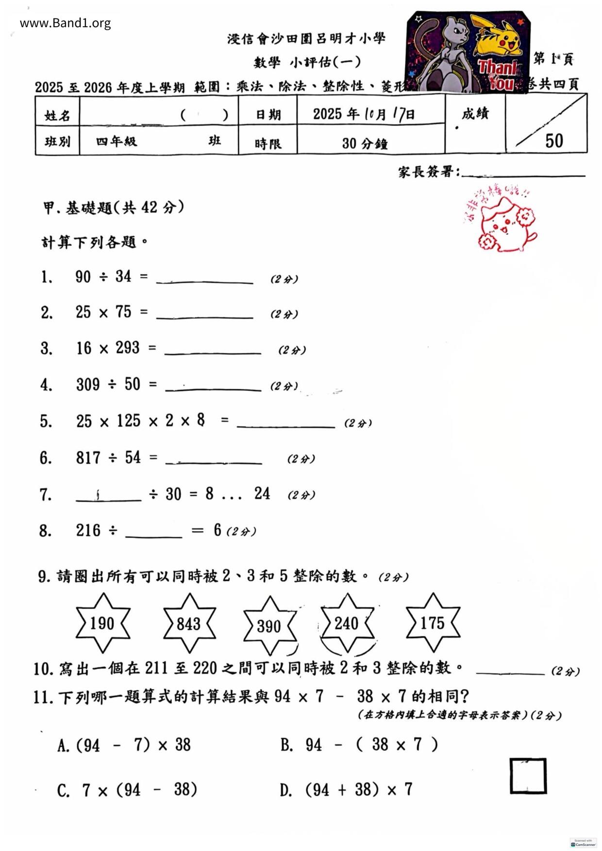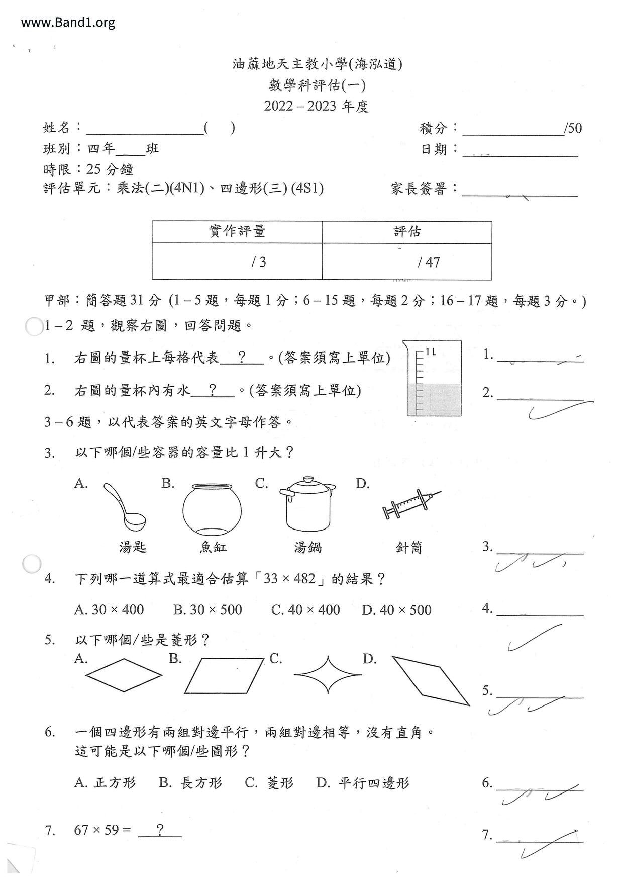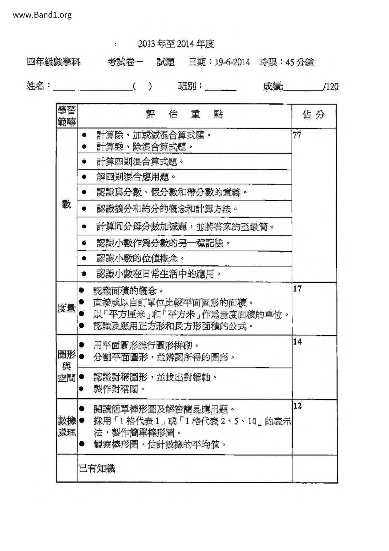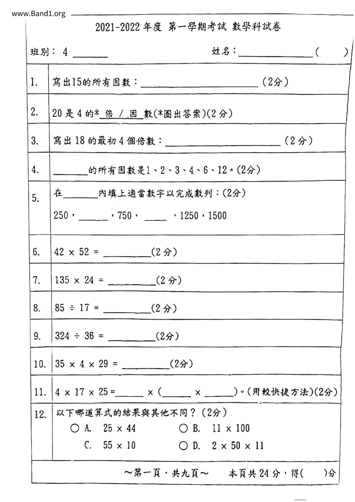 小四 數學 香港九龍塘基督教中華宣道會台山陳元喜小學