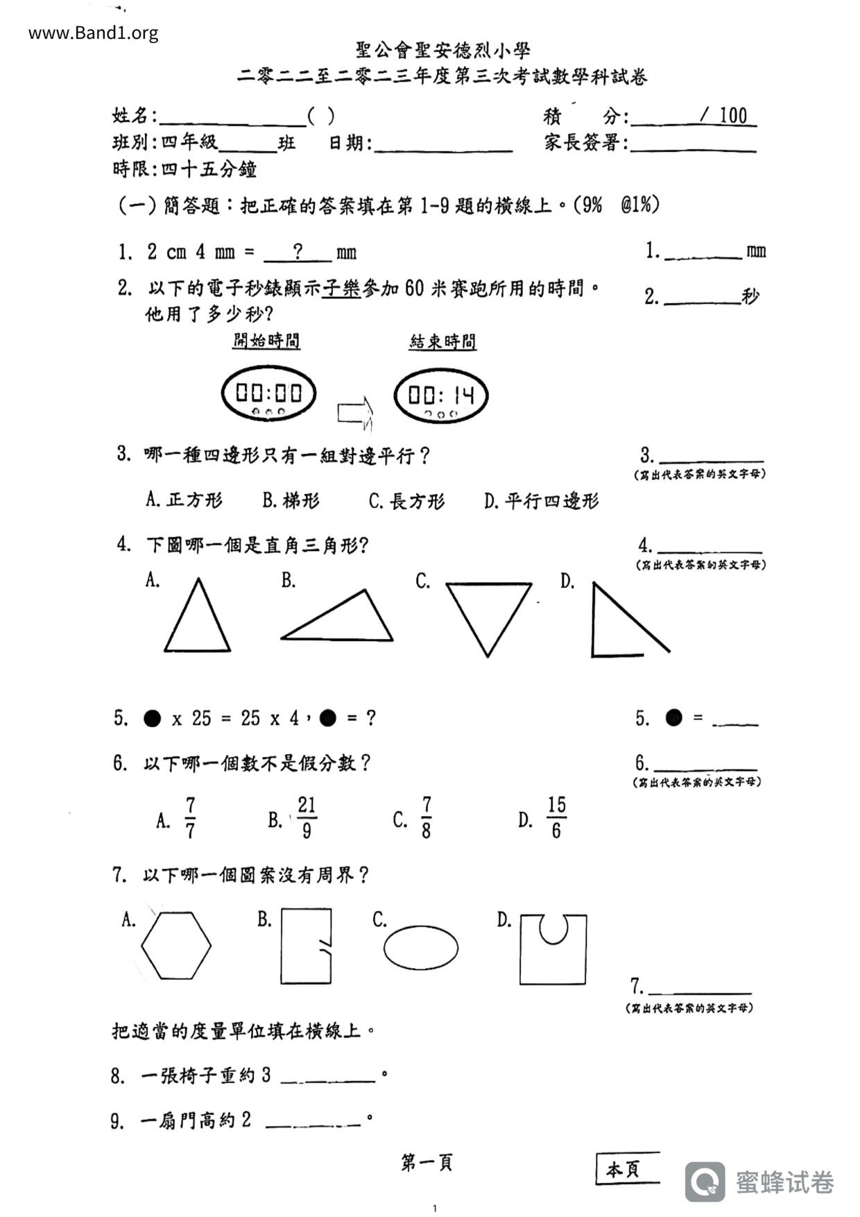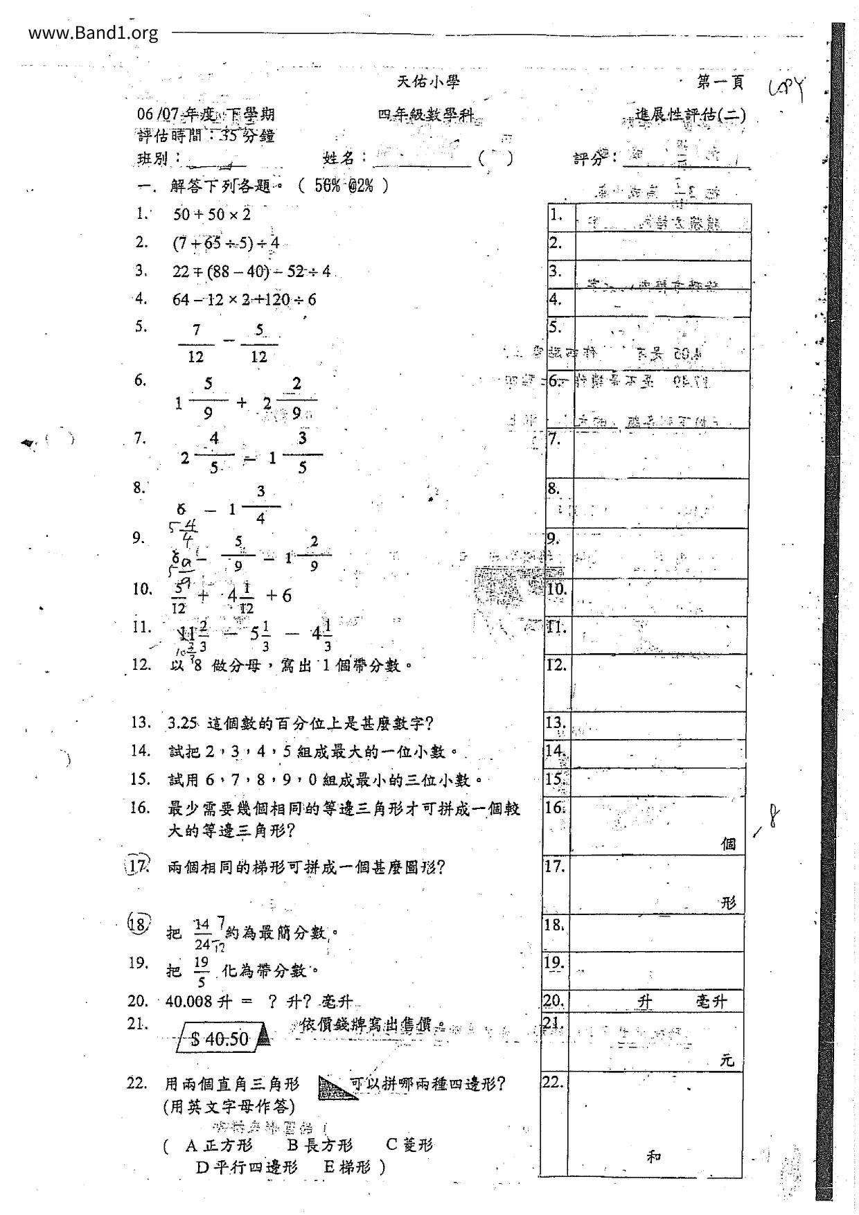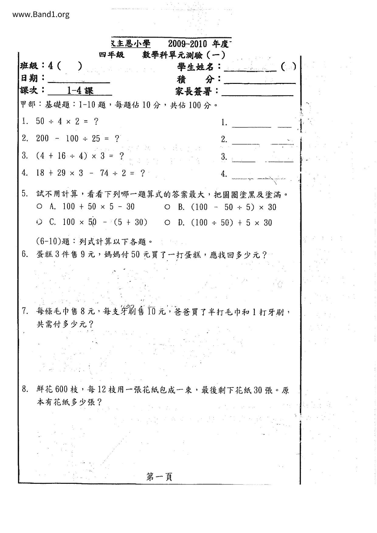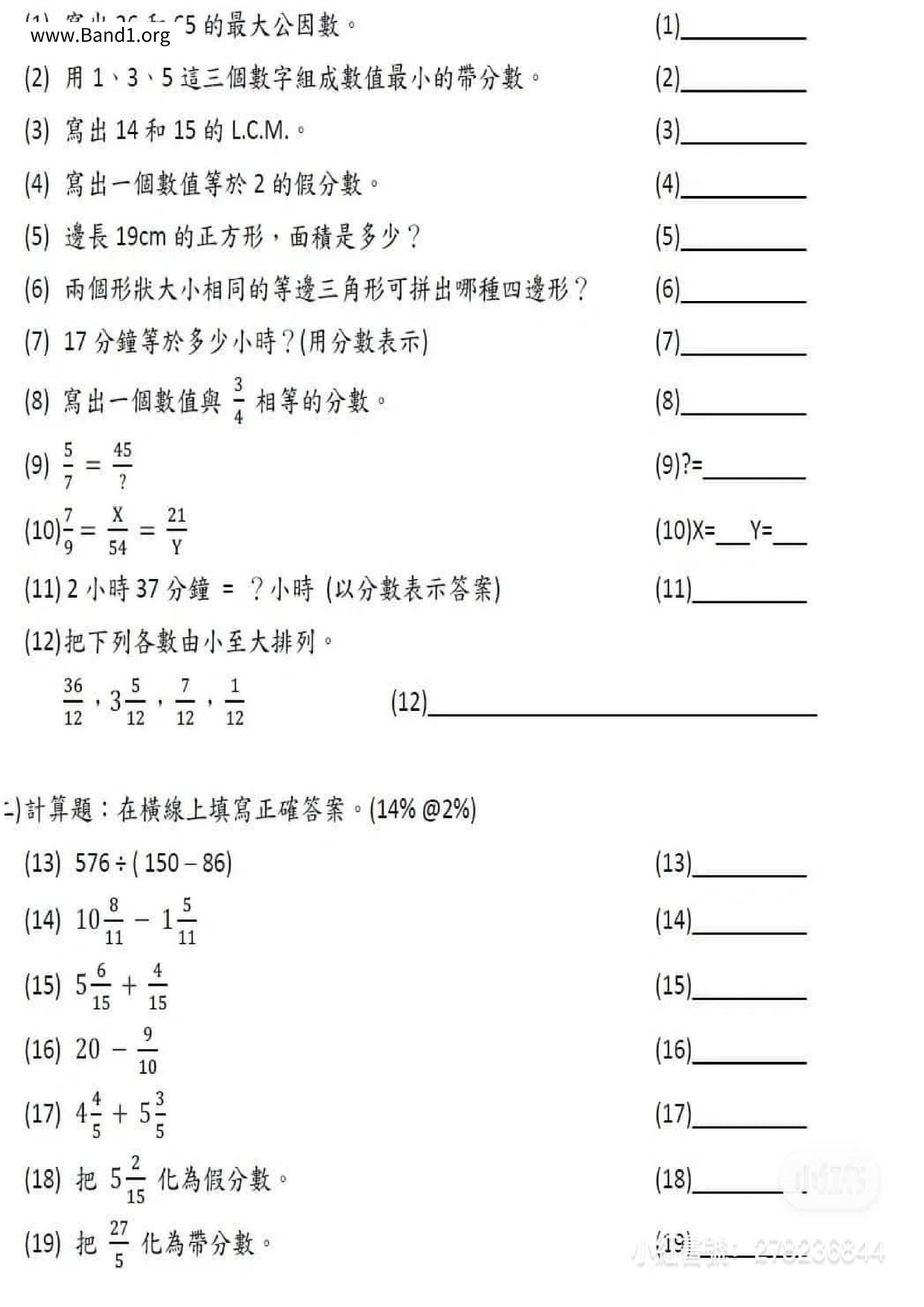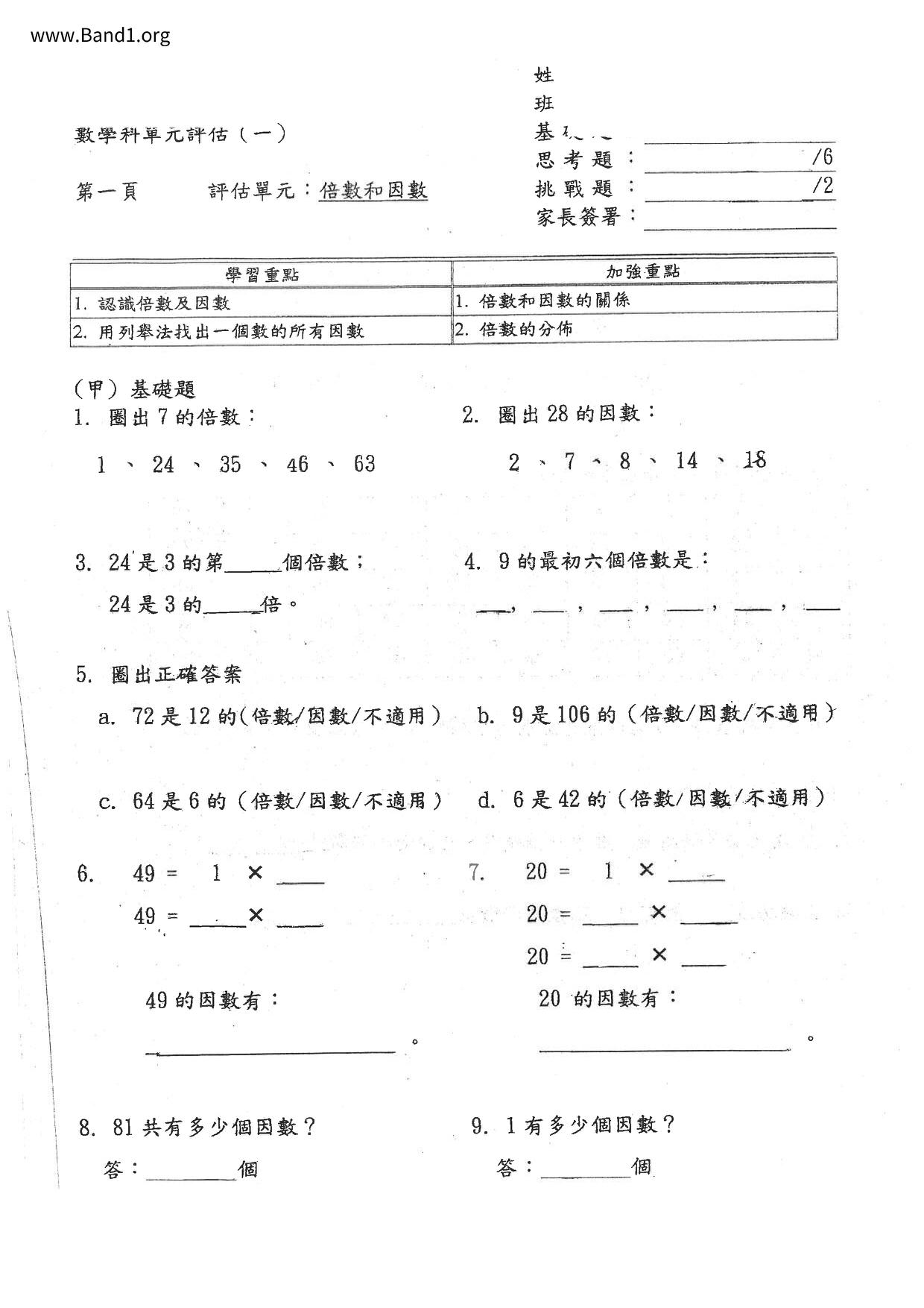 小四 數學 香港九龍塘基督教中華宣道會台山陳元喜小學