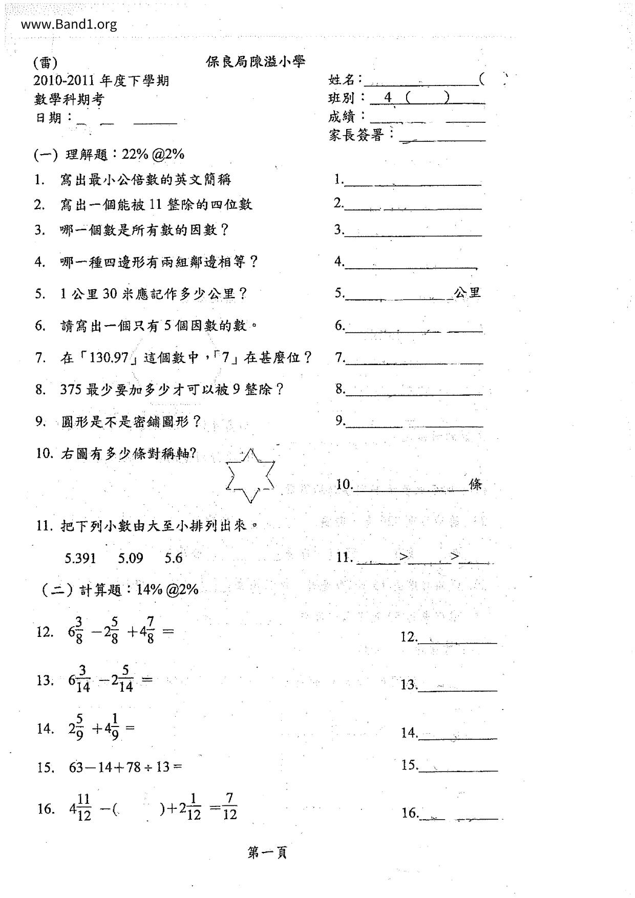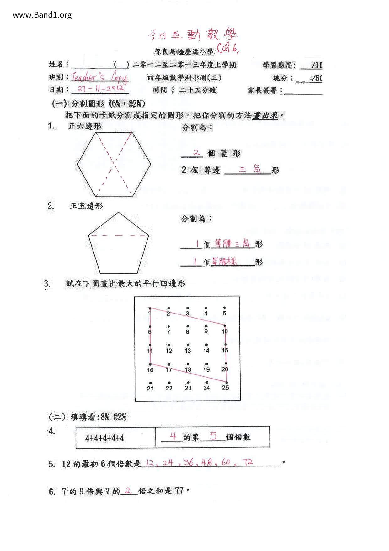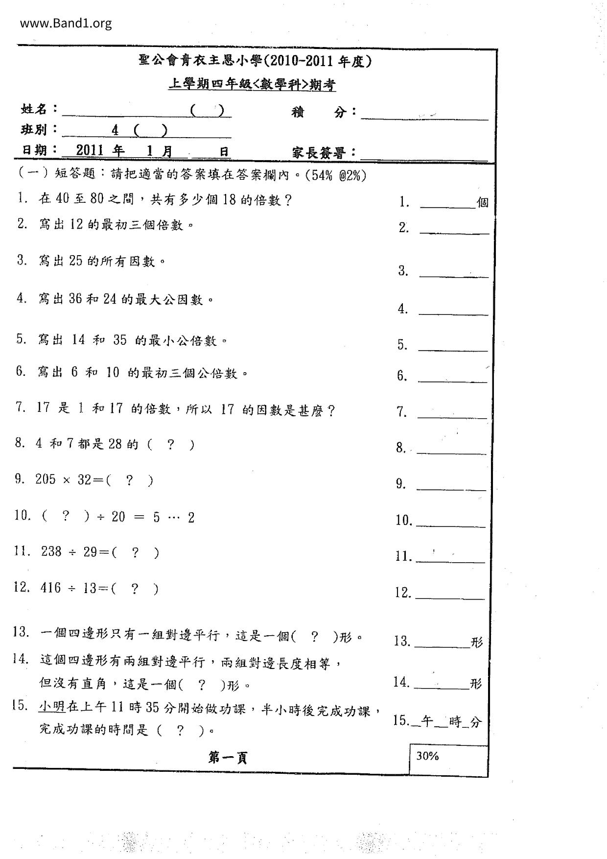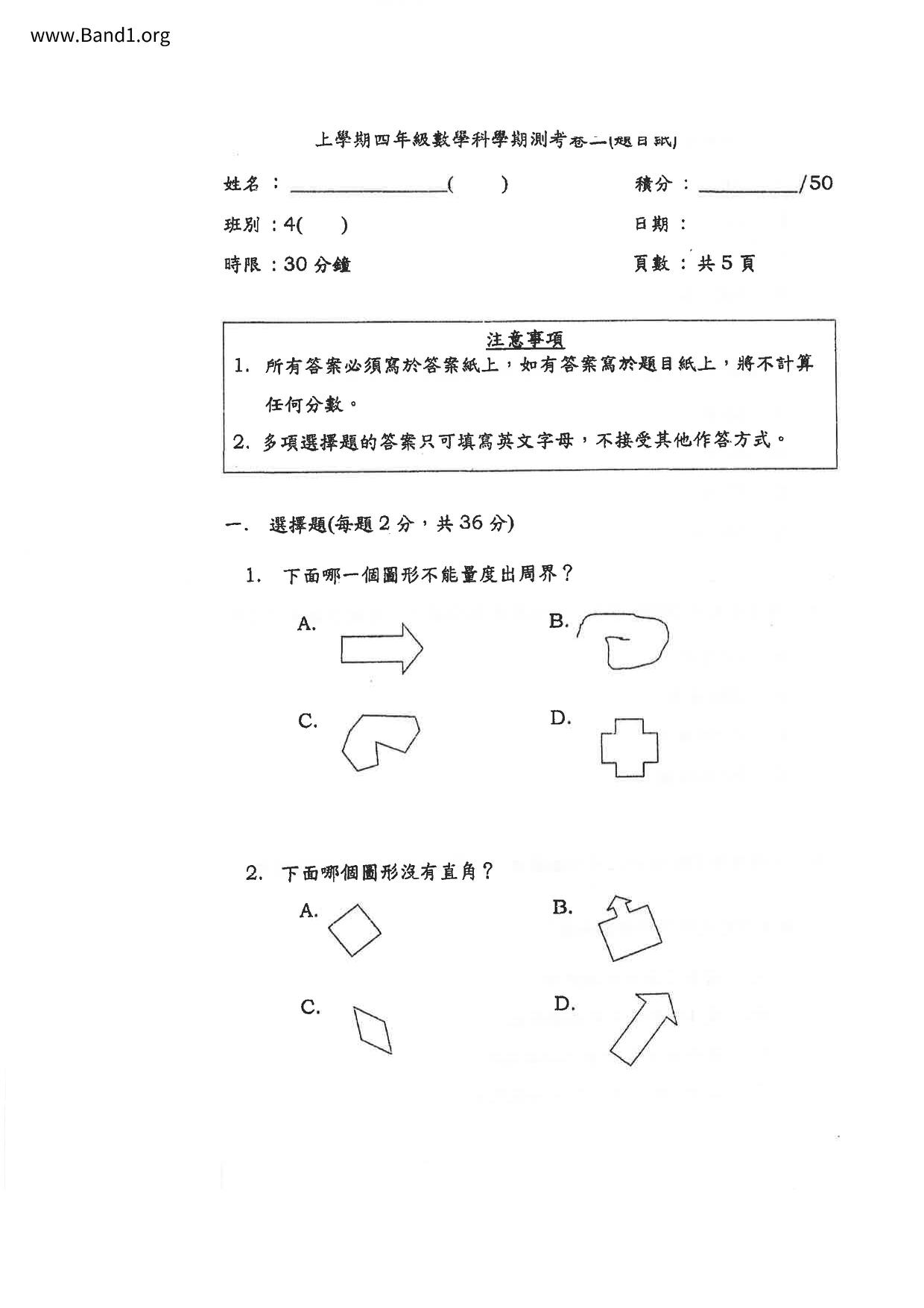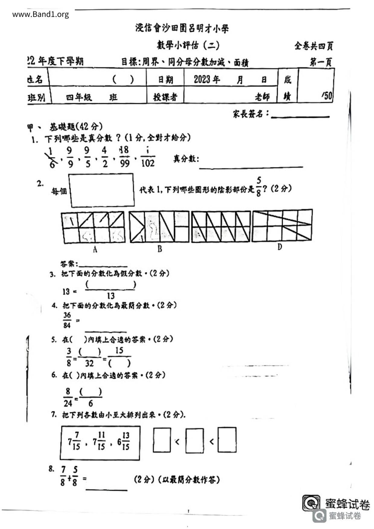 小四 數學 香港九龍塘基督教中華宣道會台山陳元喜小學