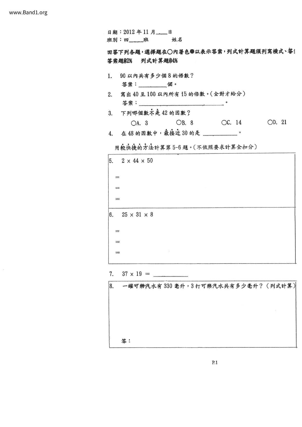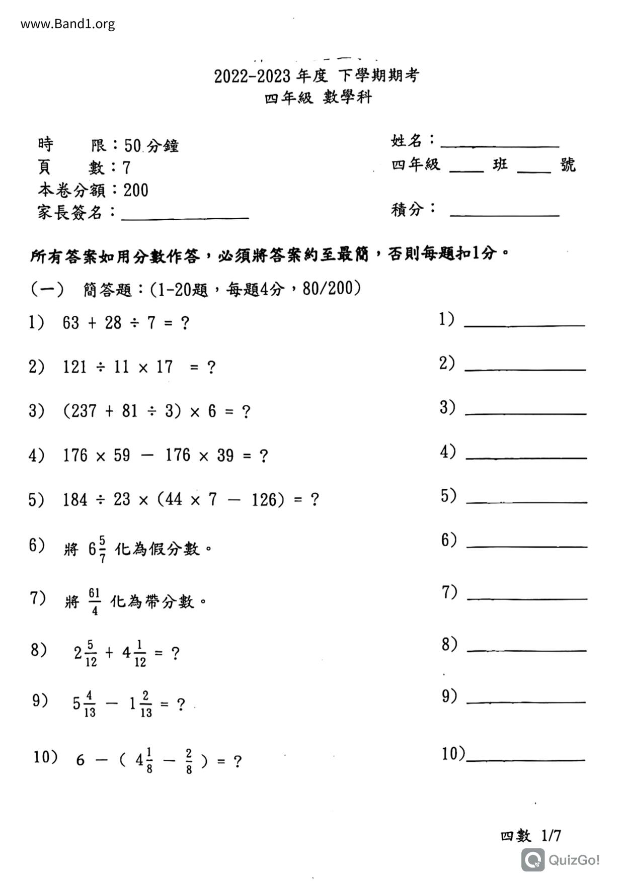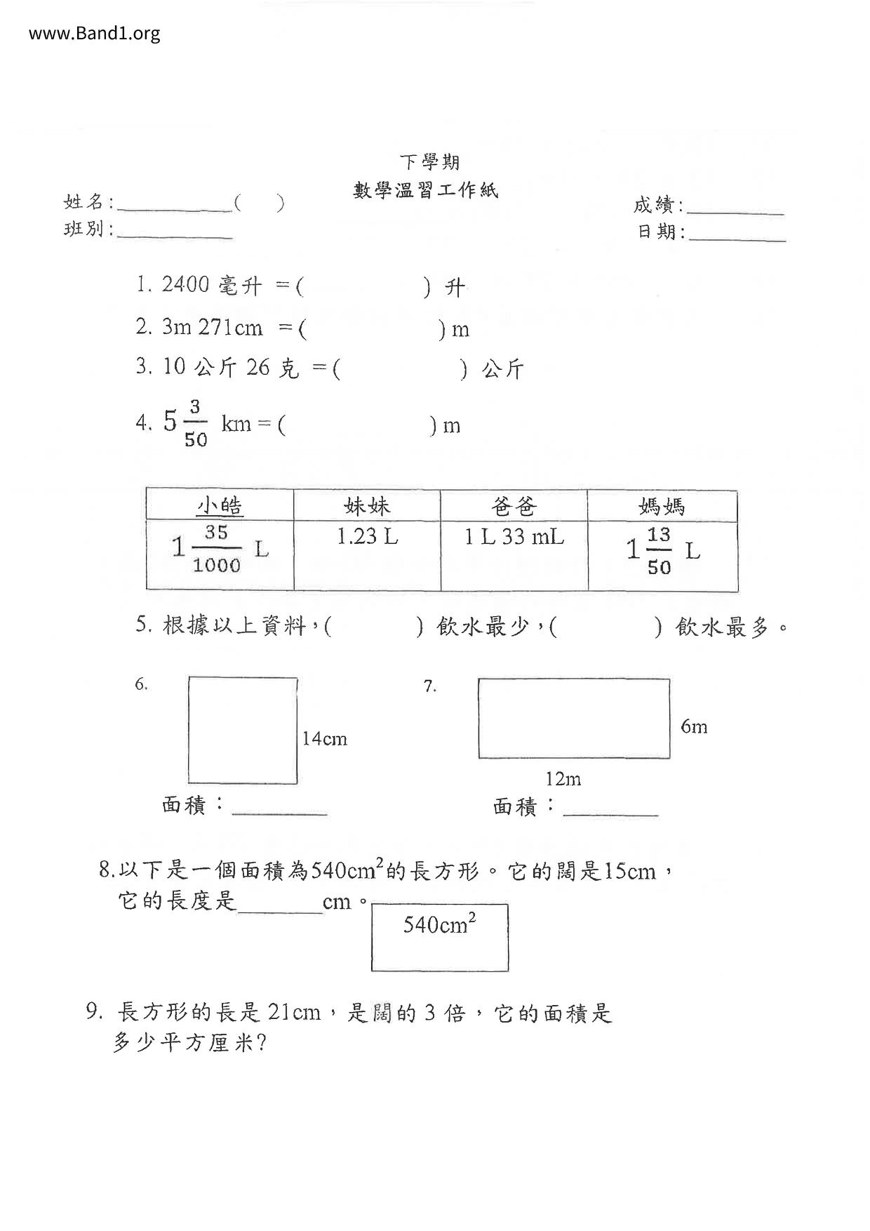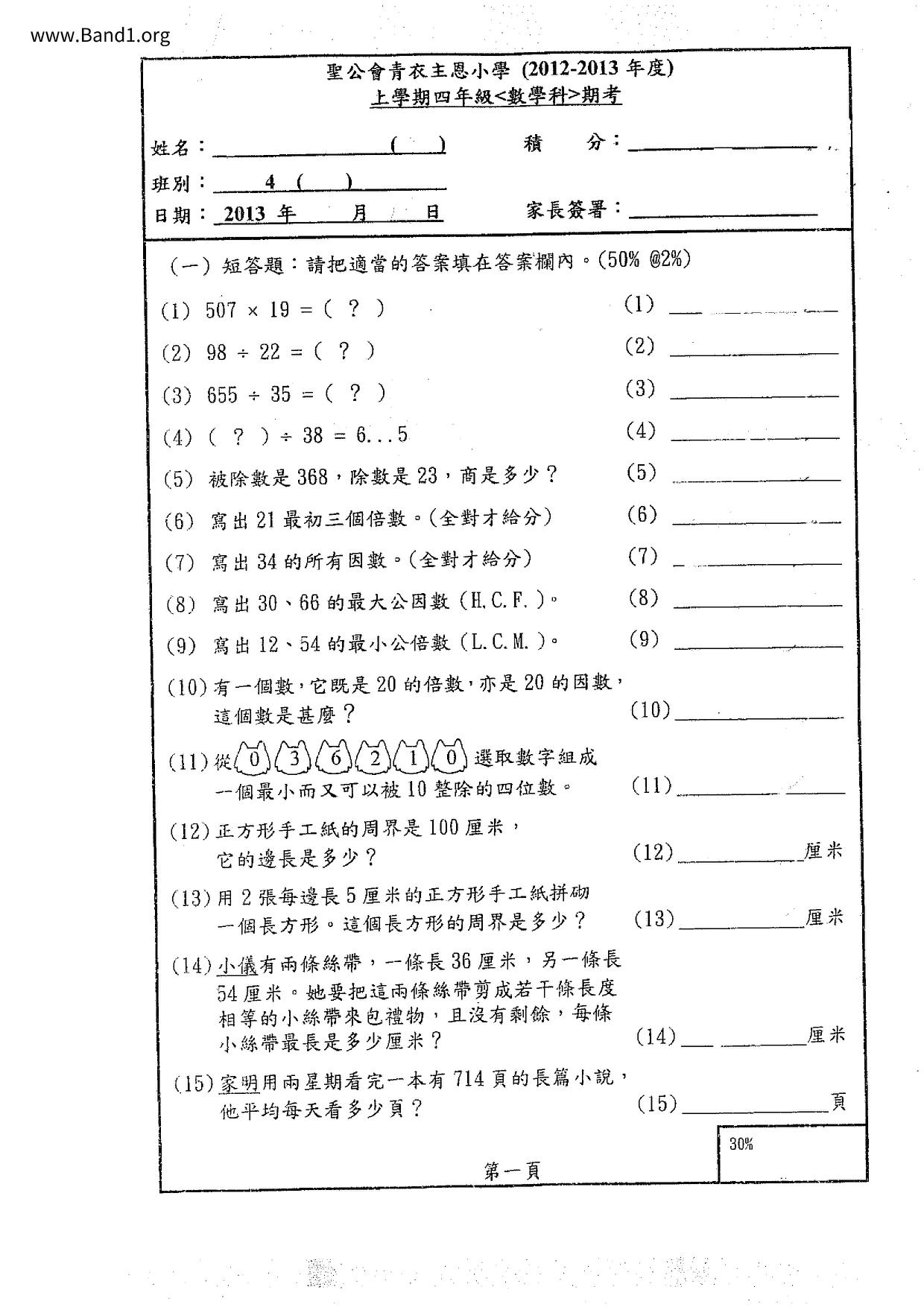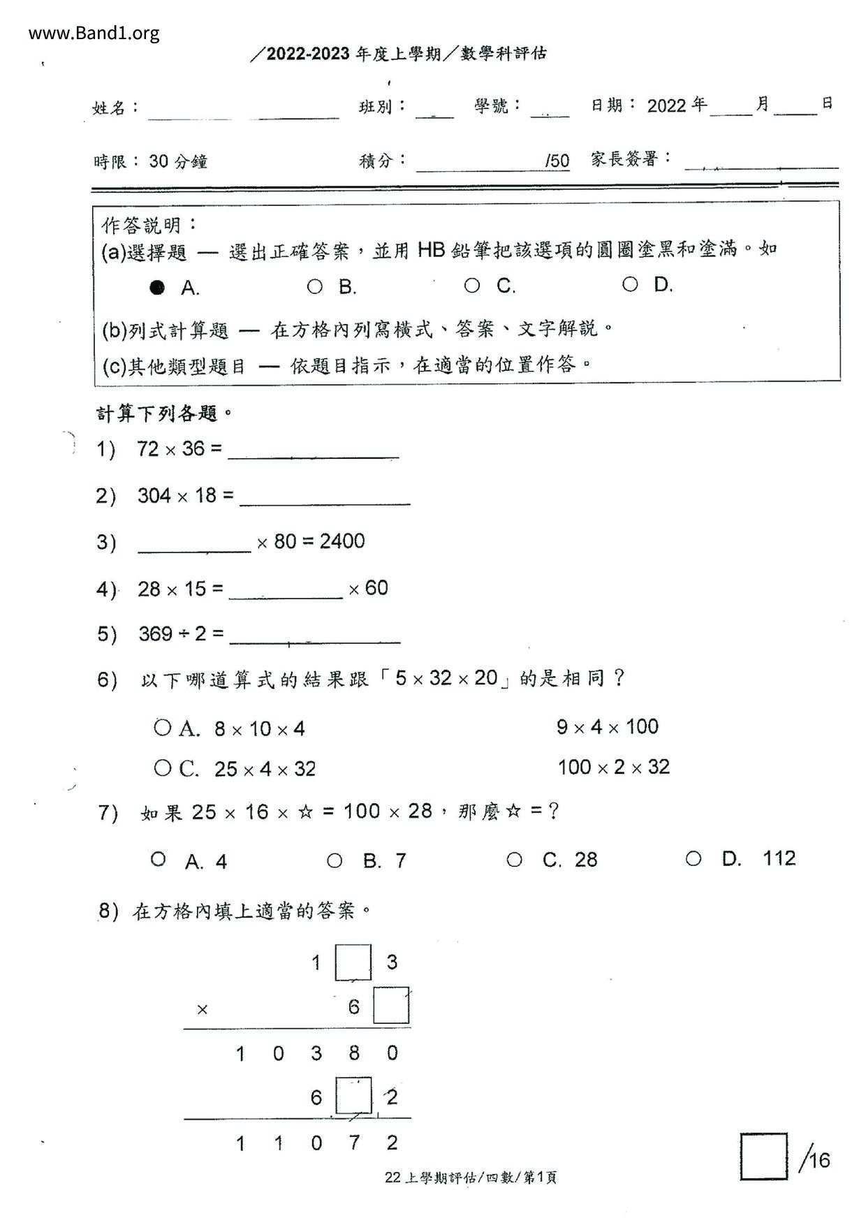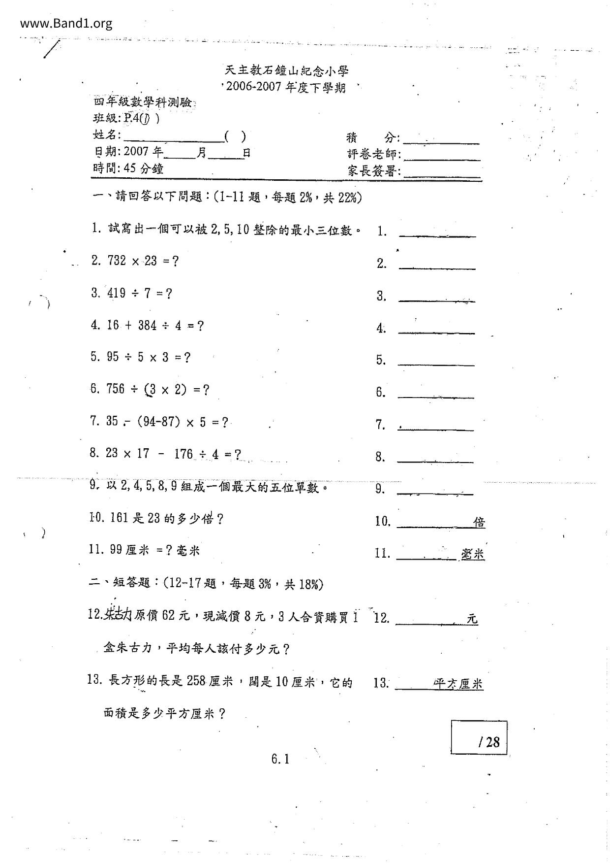 小四 數學 香港九龍塘基督教中華宣道會台山陳元喜小學