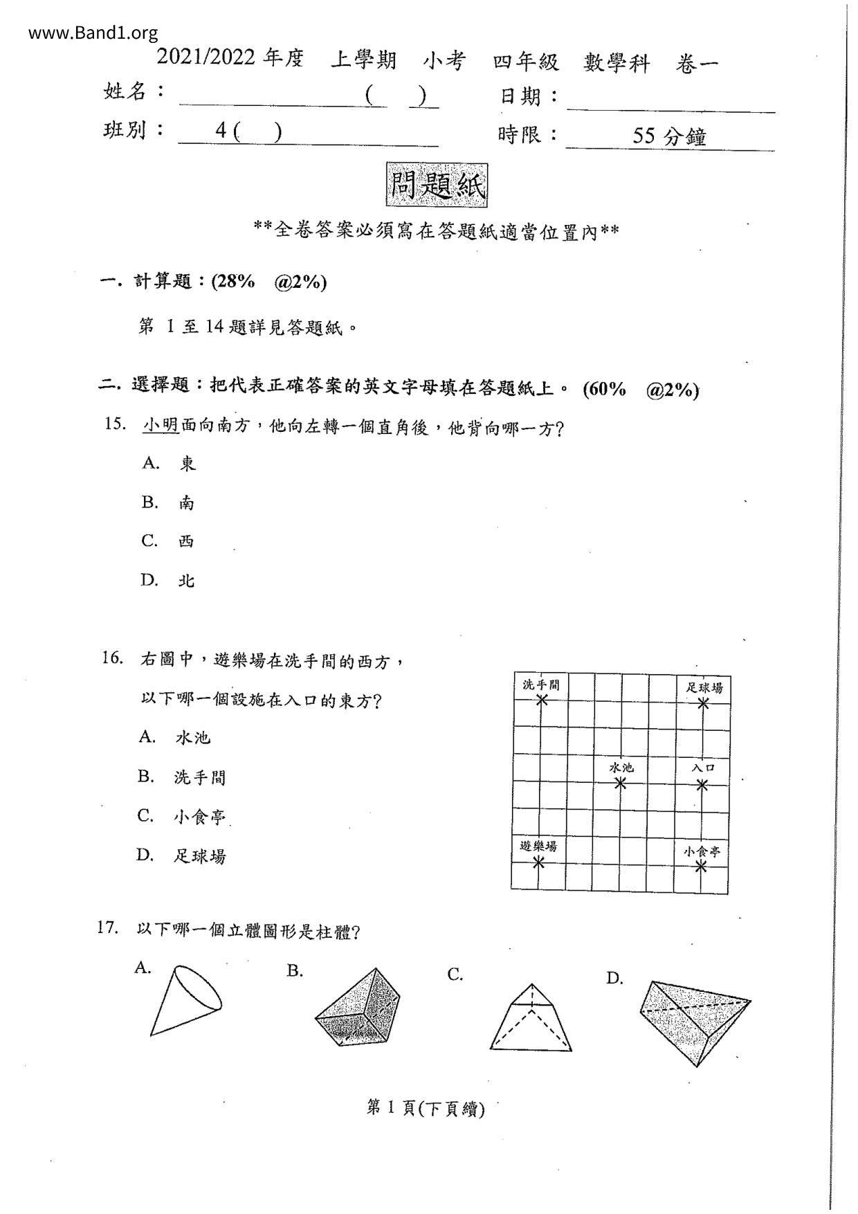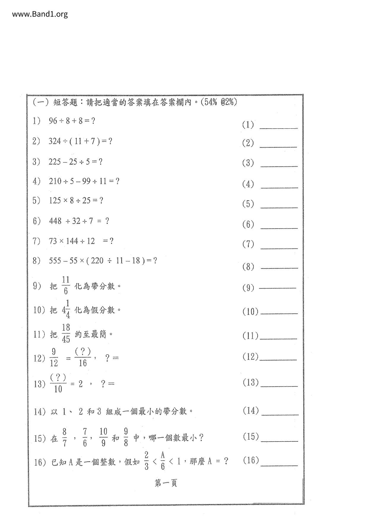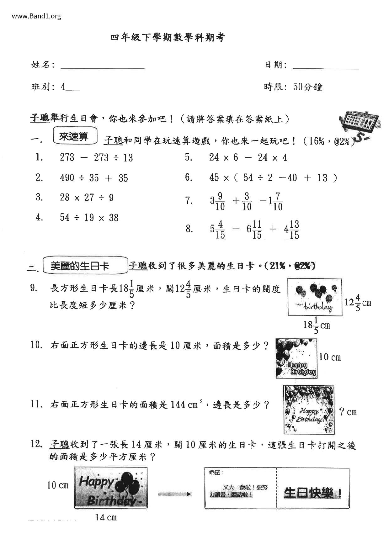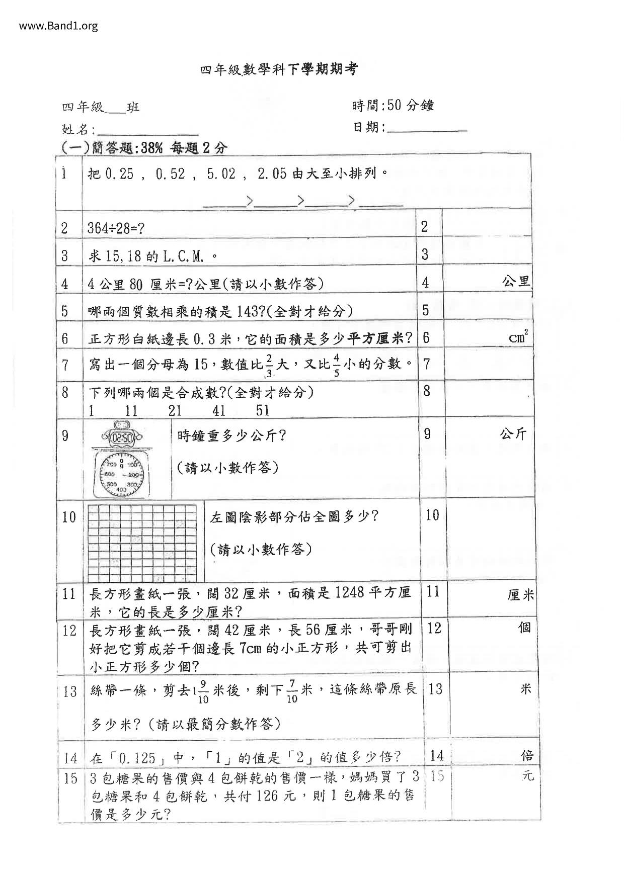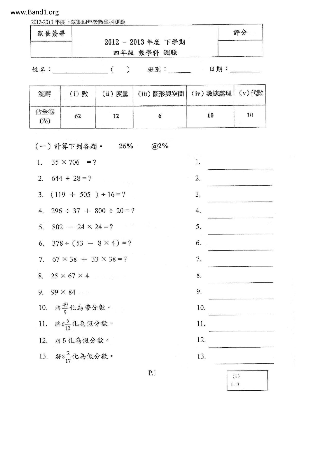 小四 數學 香港九龍塘基督教中華宣道會台山陳元喜小學