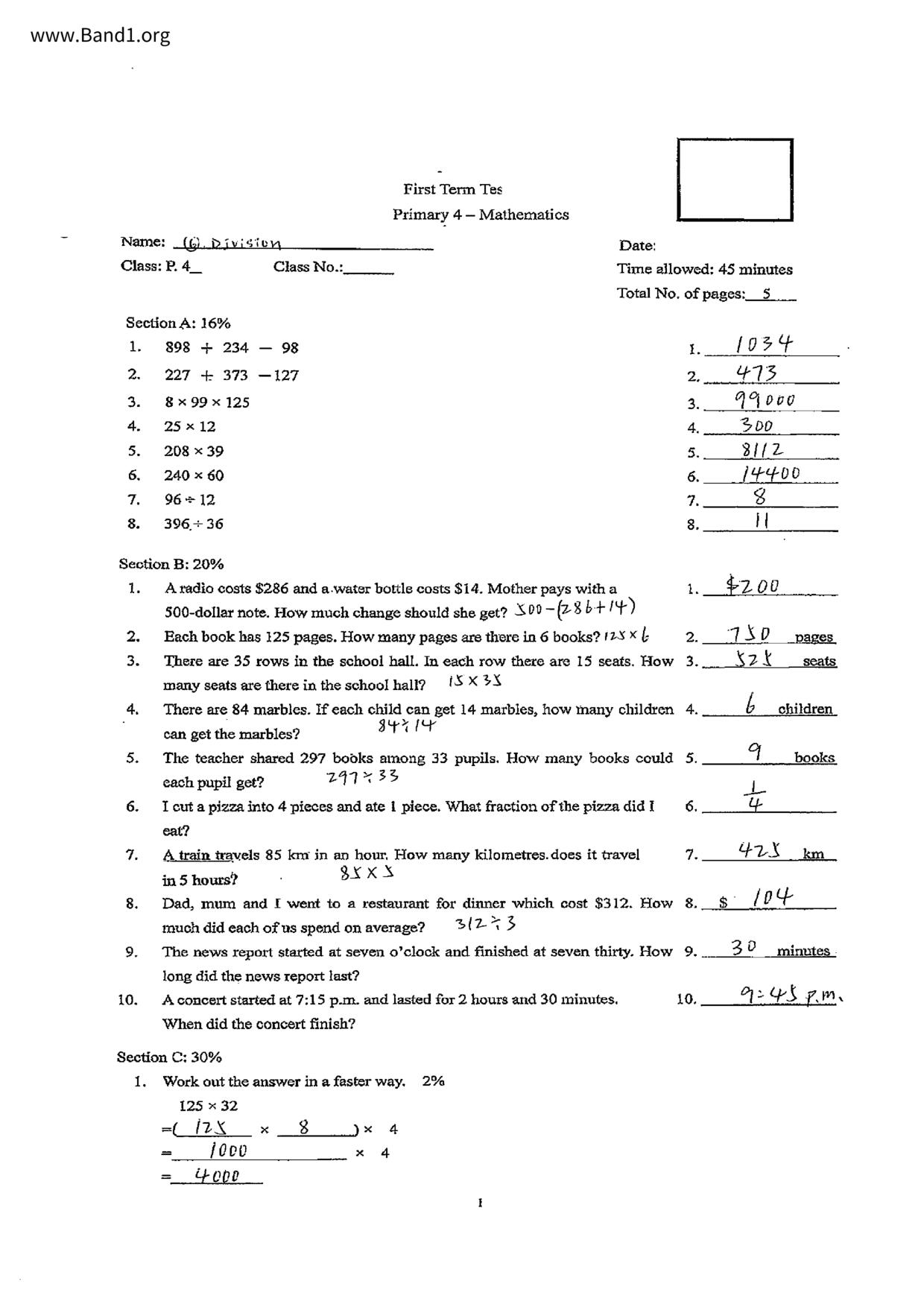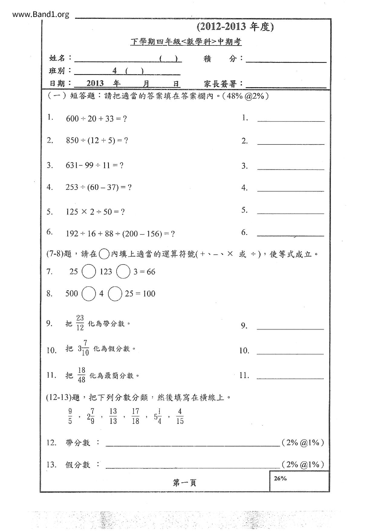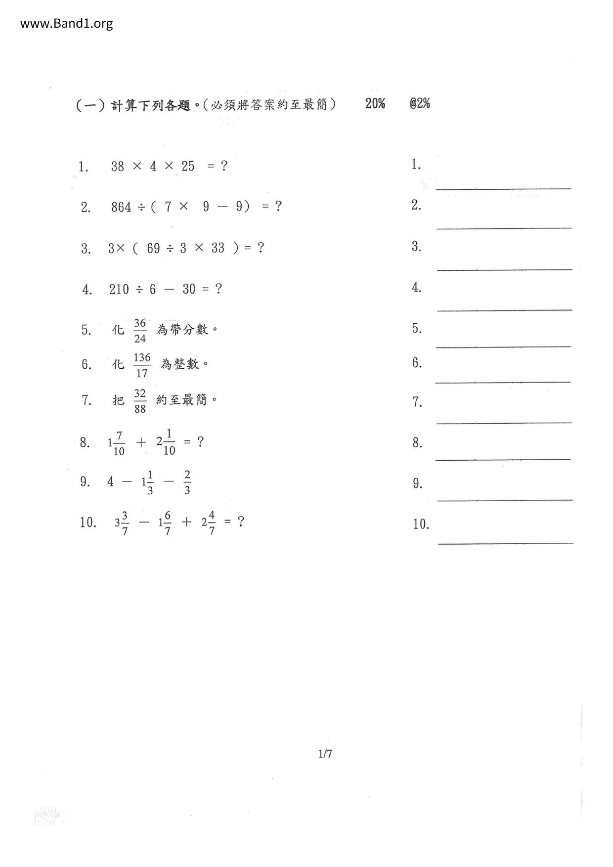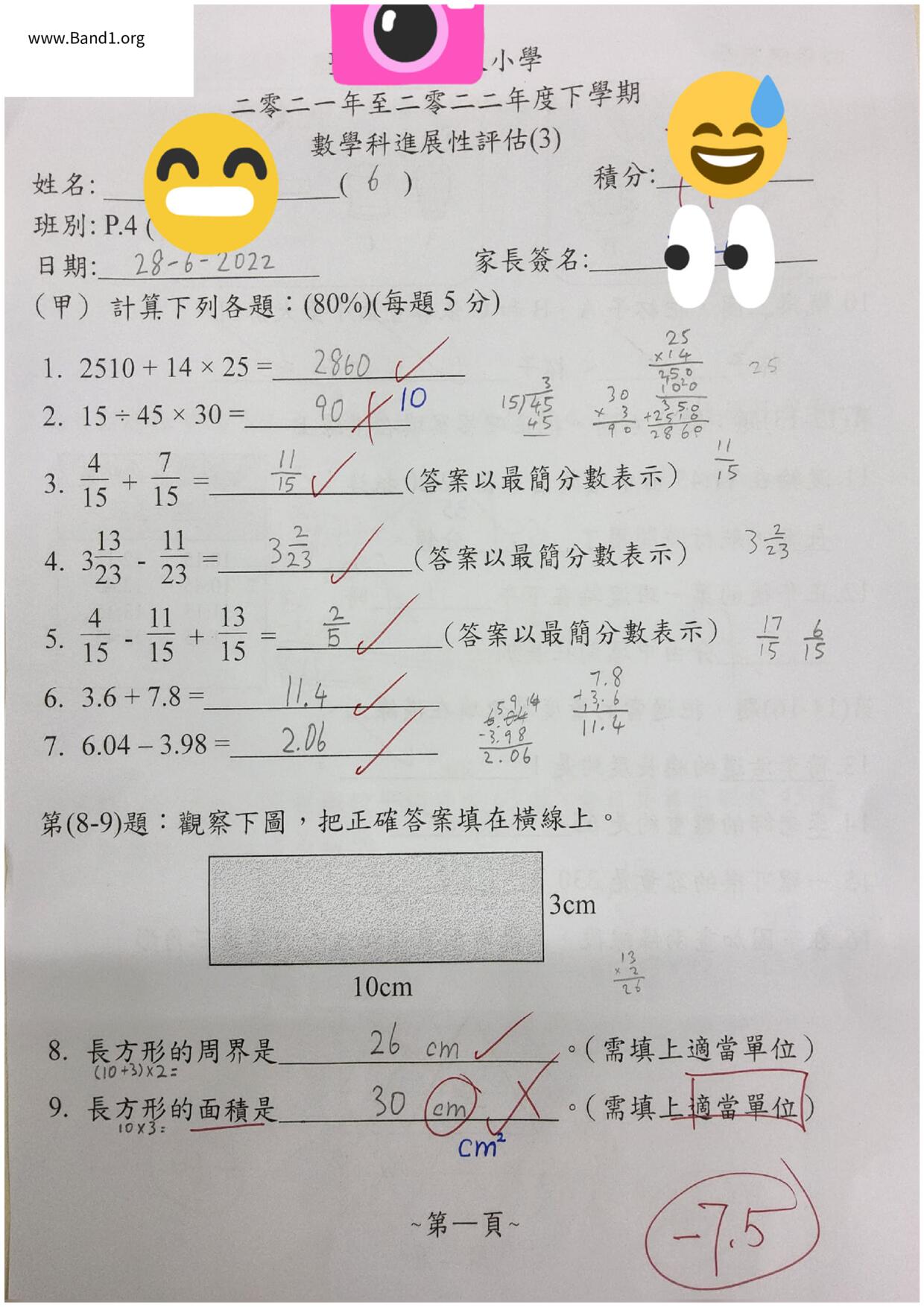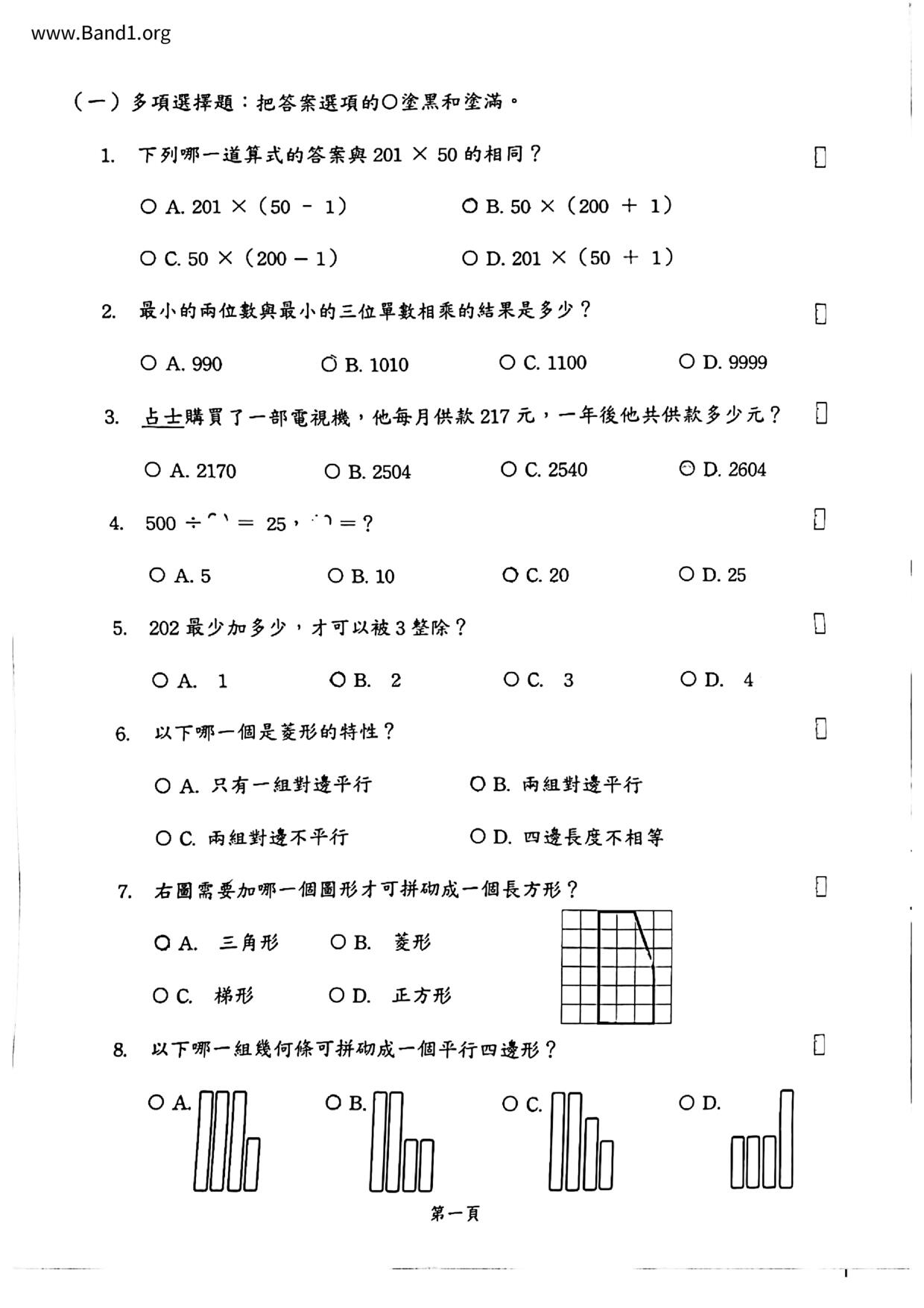 小四 數學 香港九龍塘基督教中華宣道會台山陳元喜小學