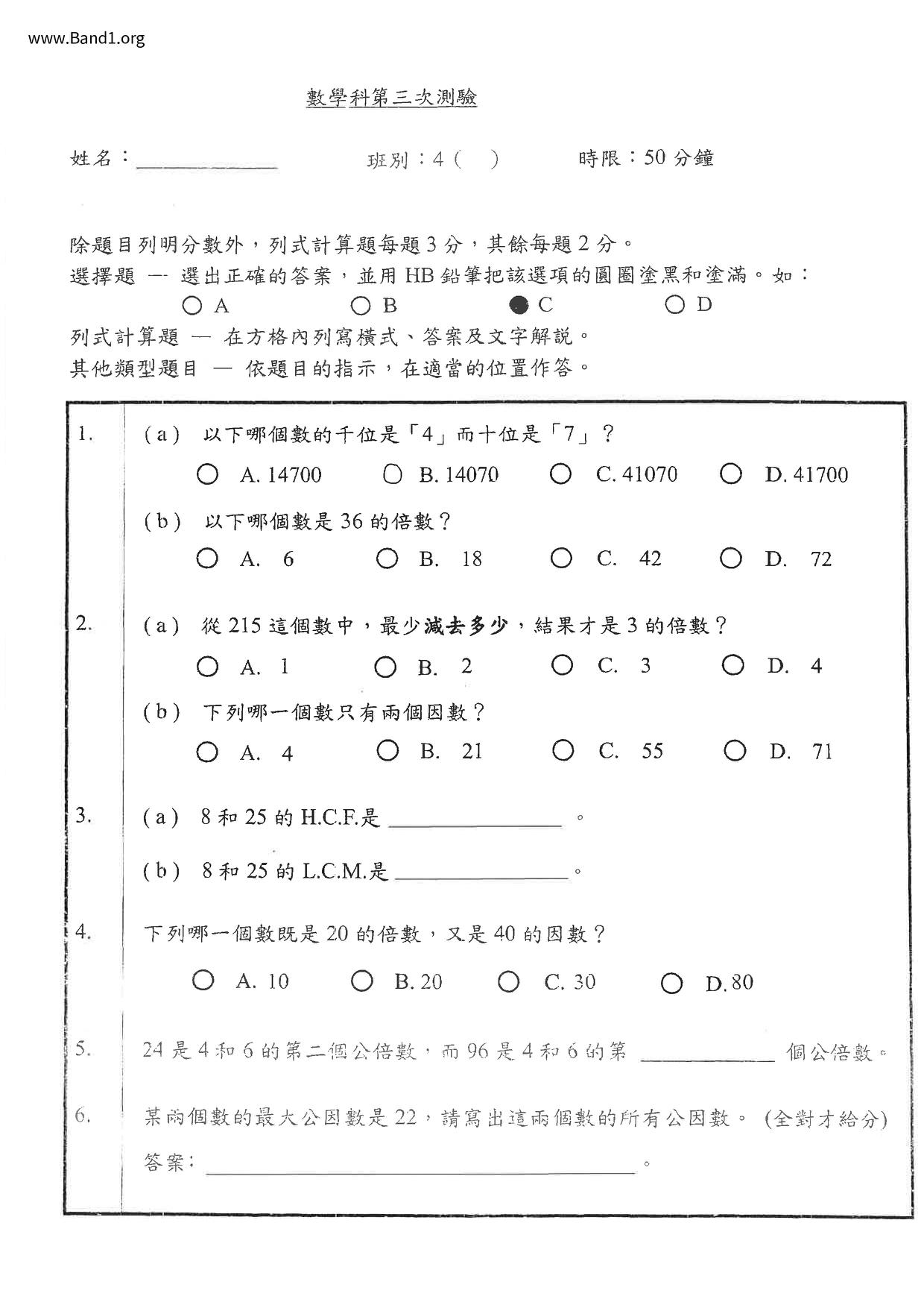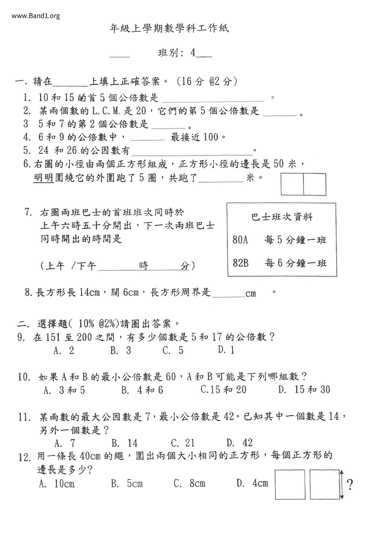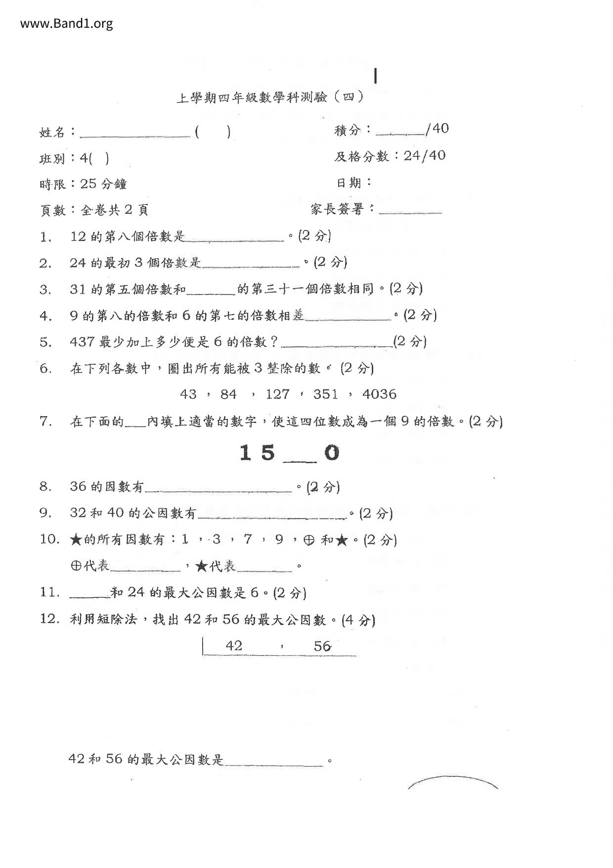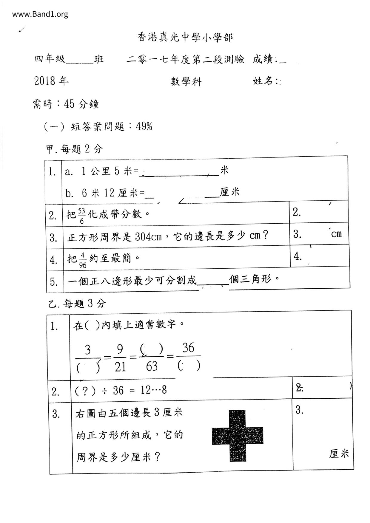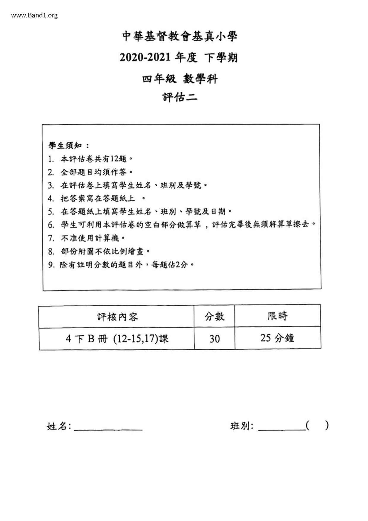 小四 數學 中華基督教會灣仔堂基道小學(九龍城)