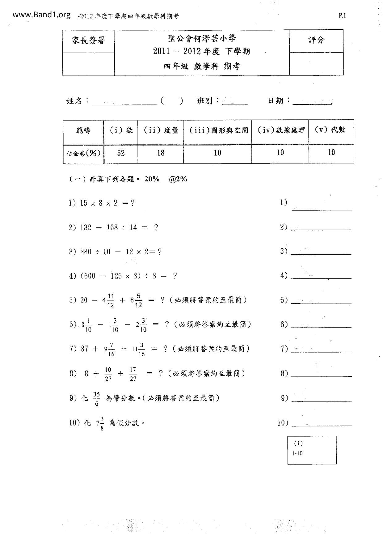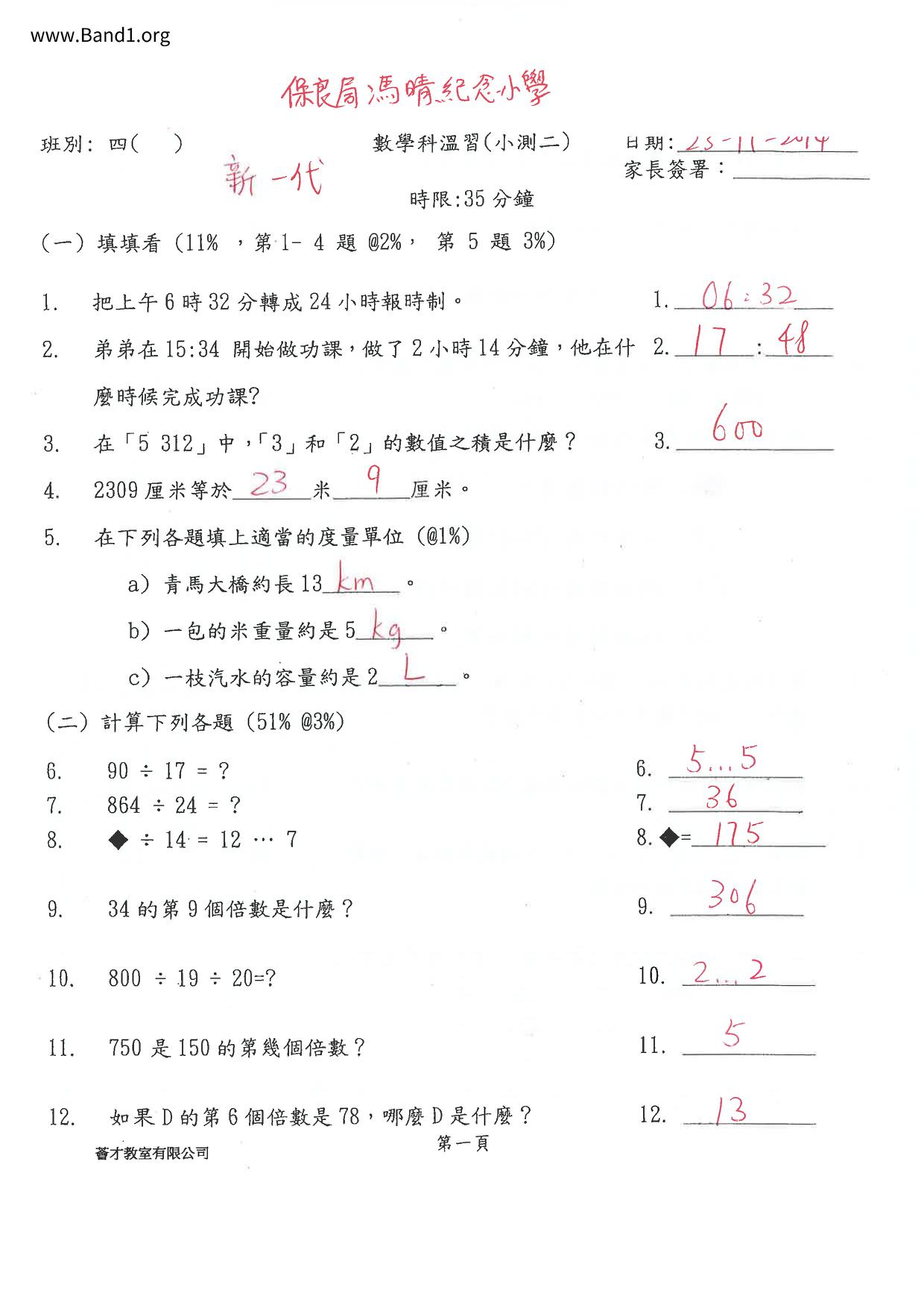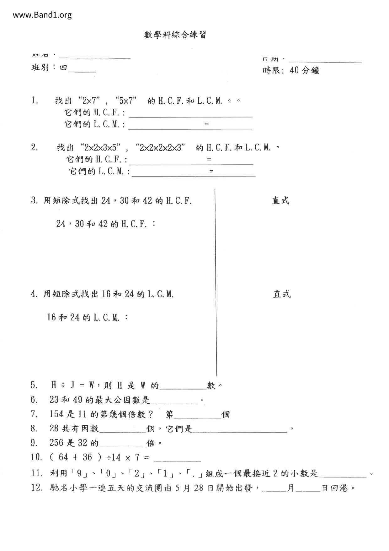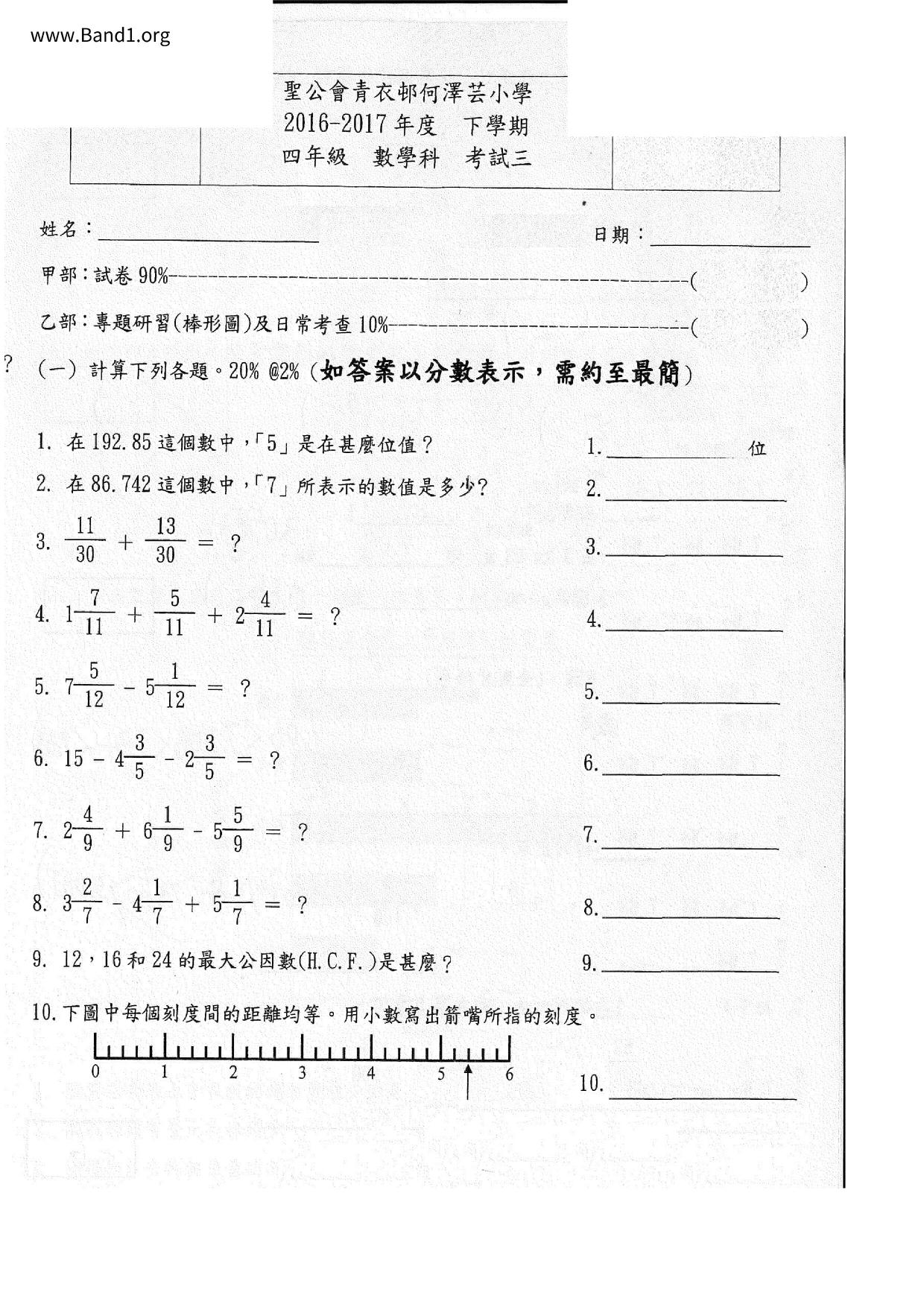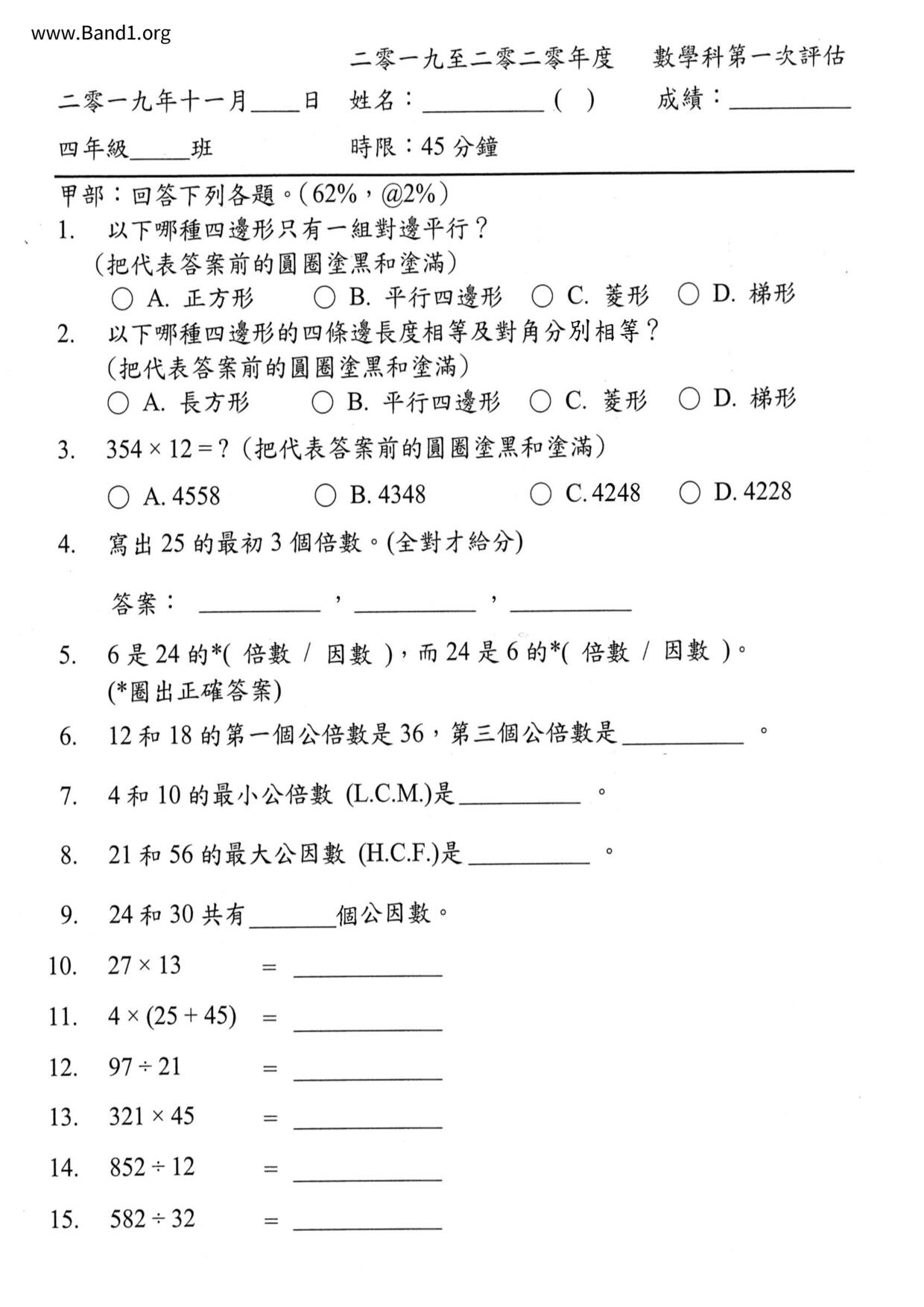 小四 數學 中華基督教會灣仔堂基道小學(九龍城)
