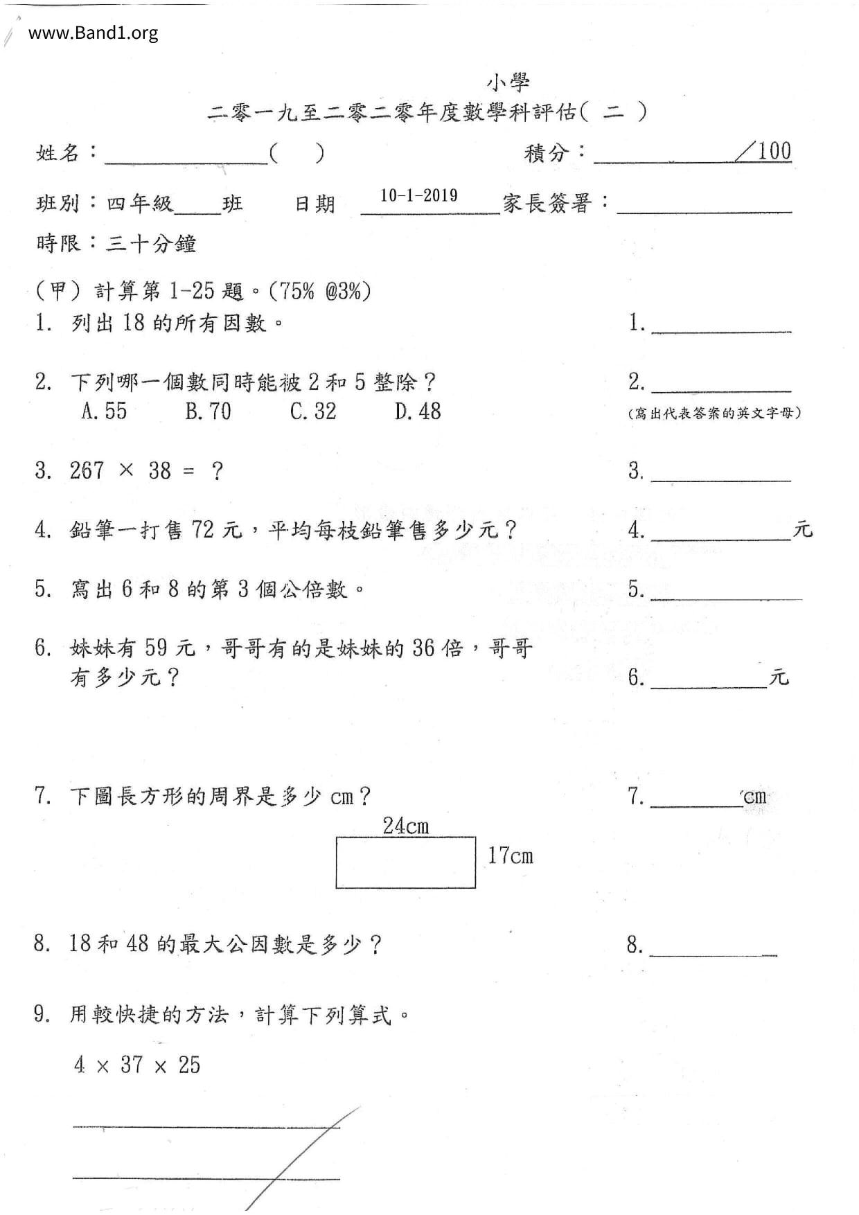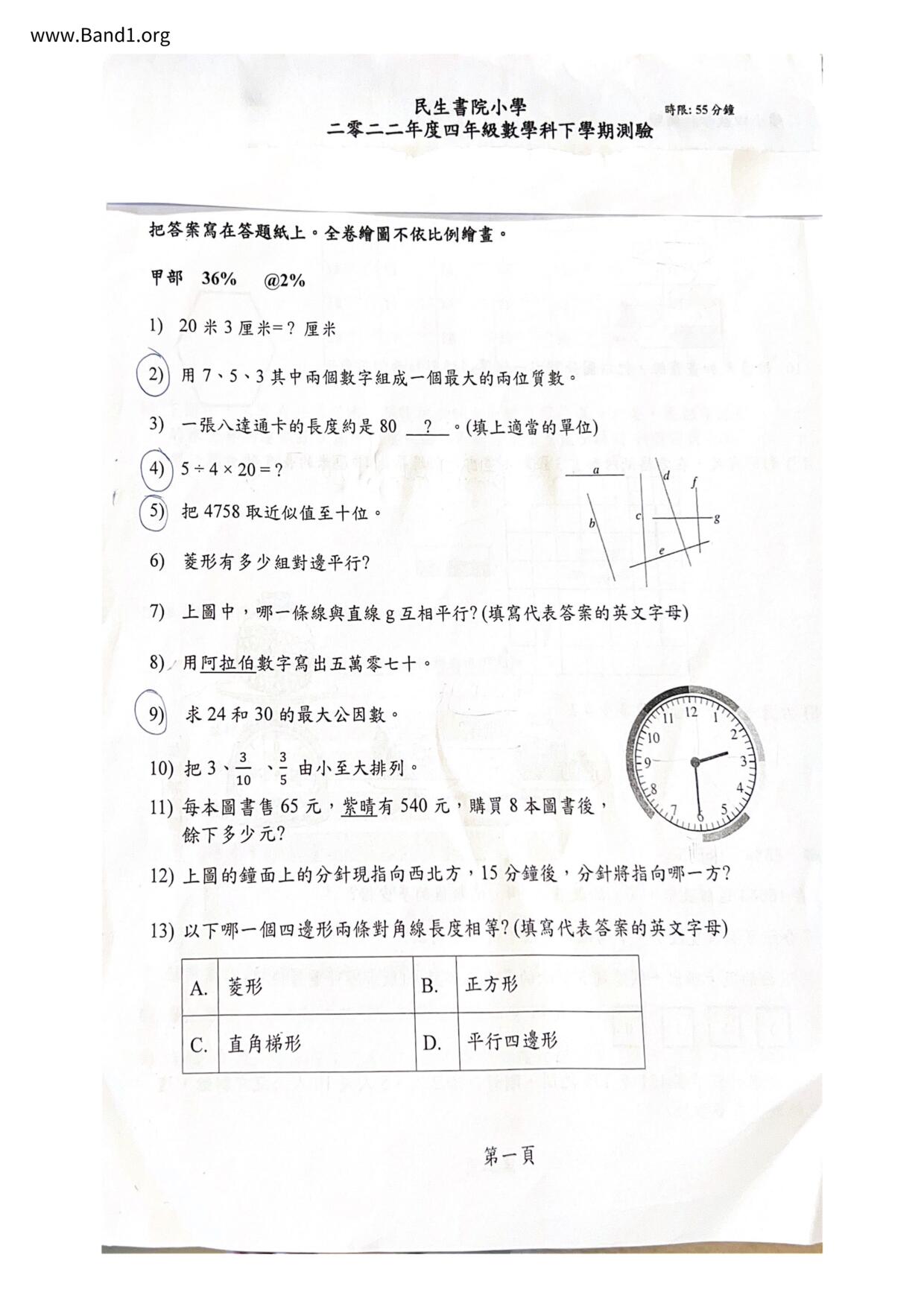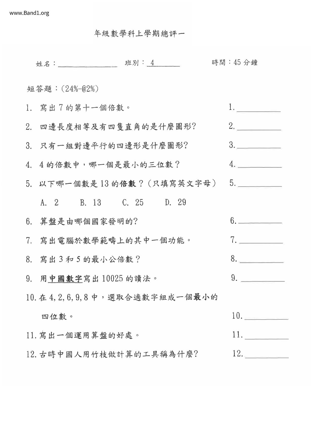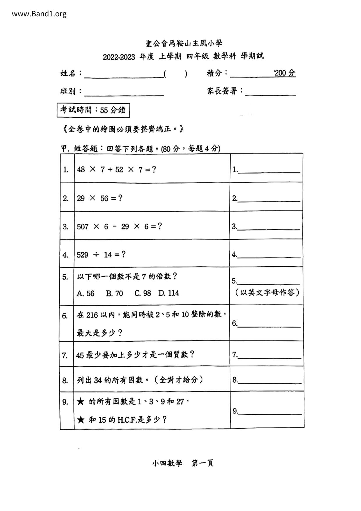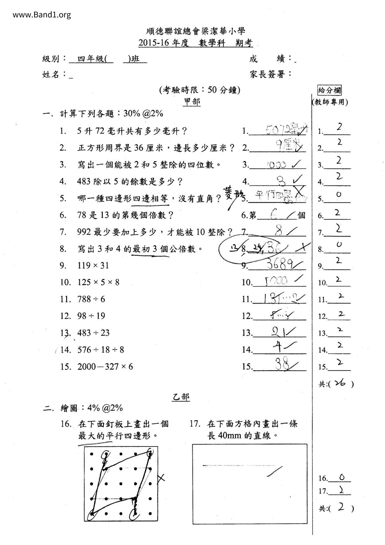 小四 數學 中華基督教會灣仔堂基道小學(九龍城)