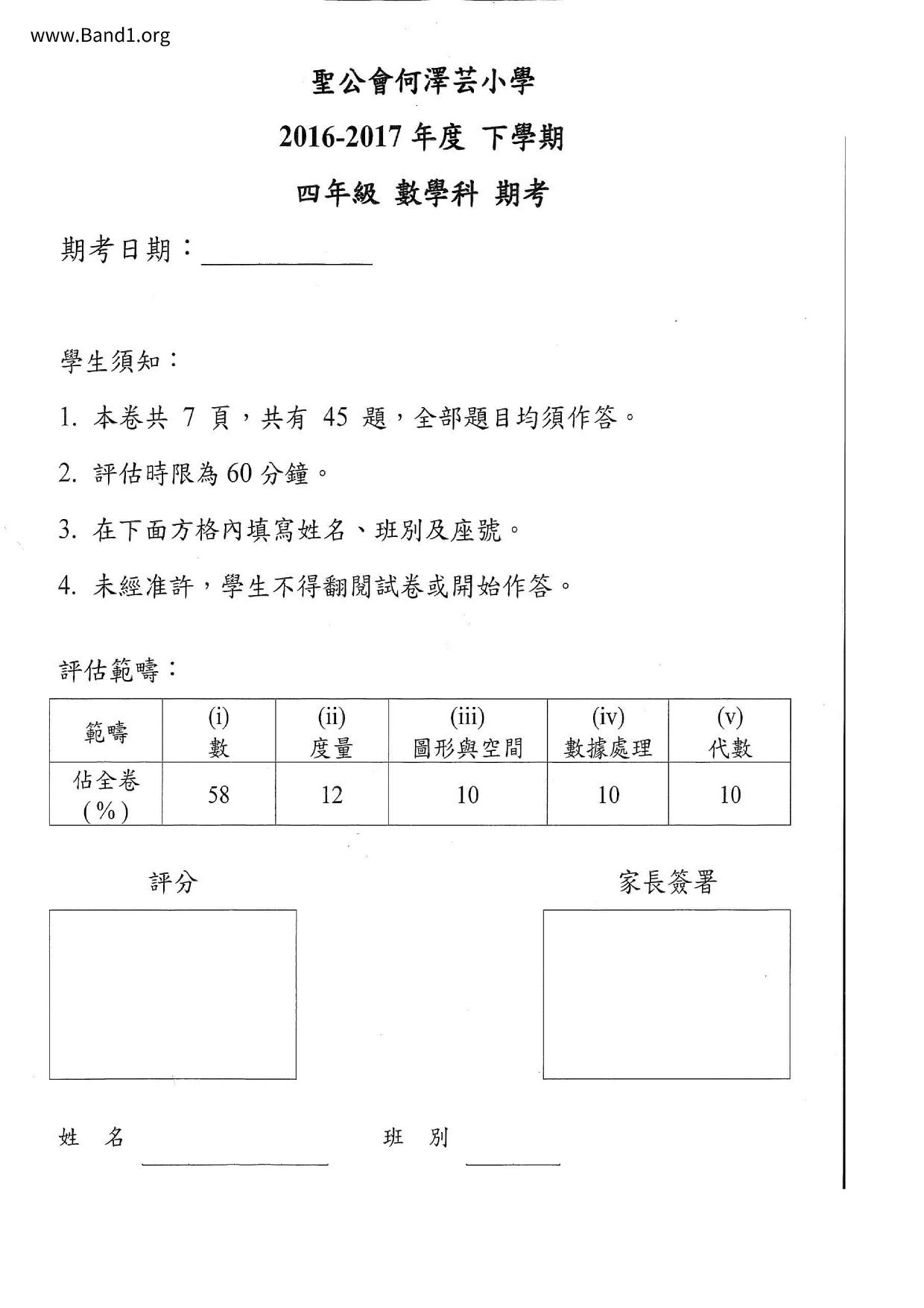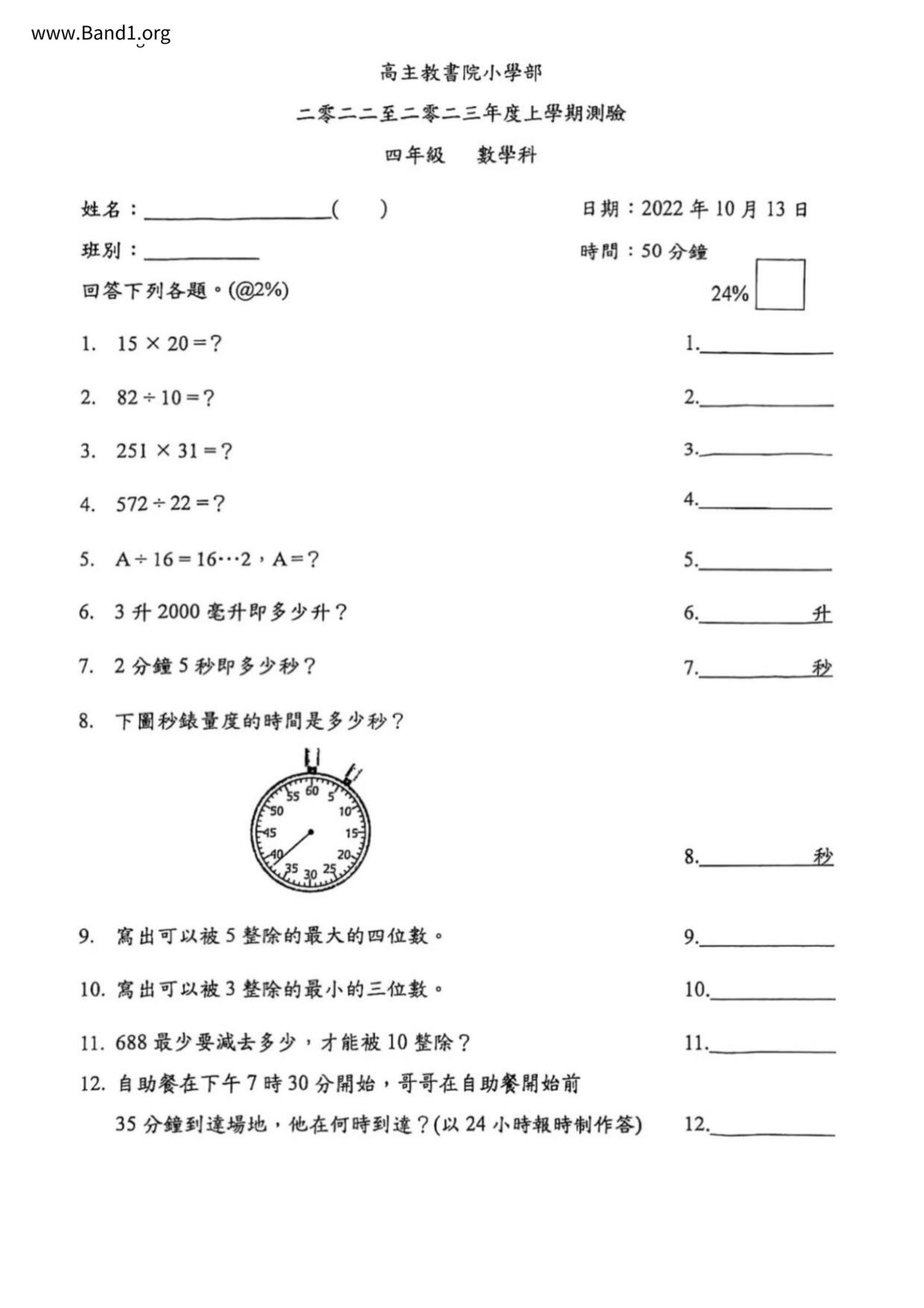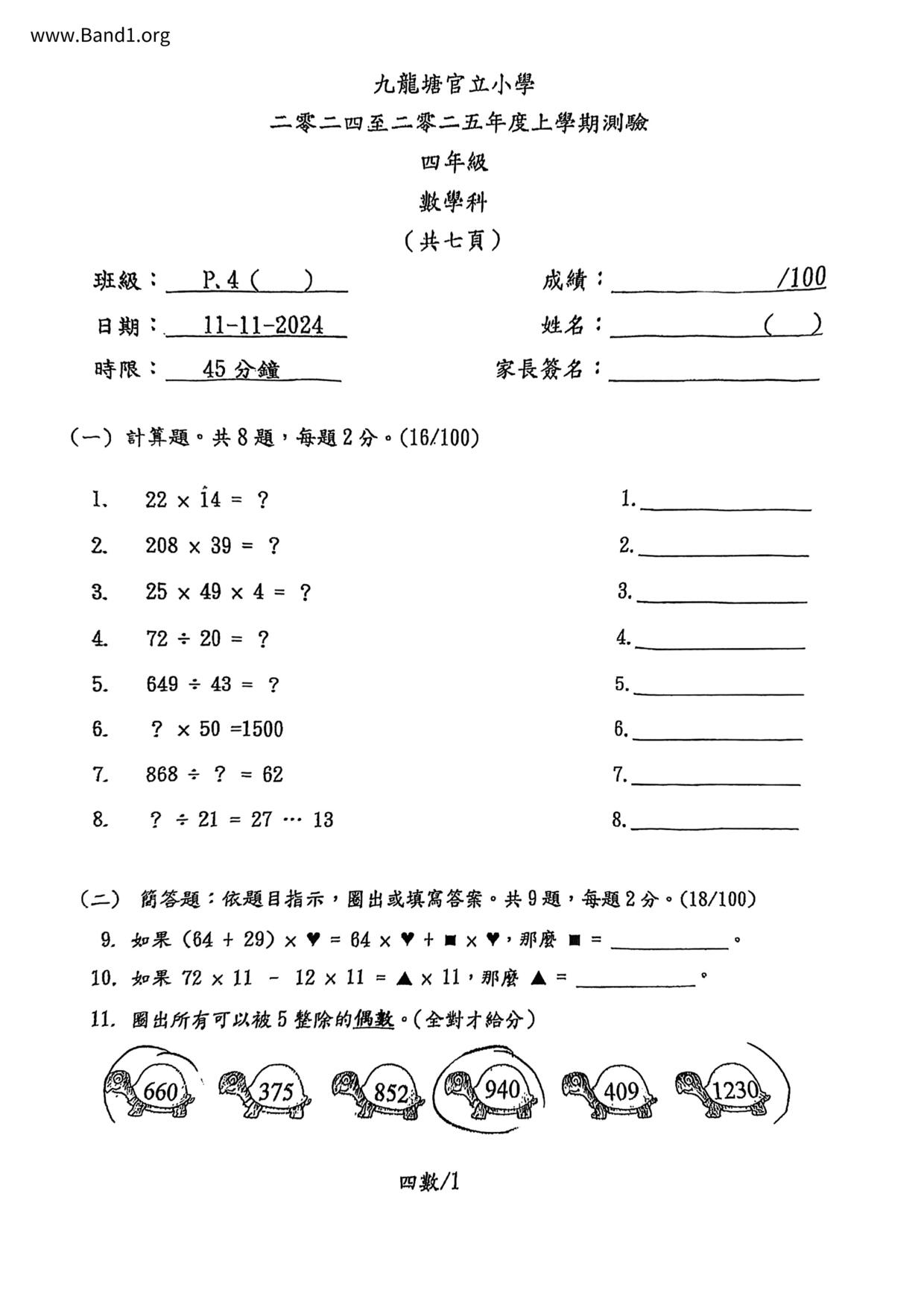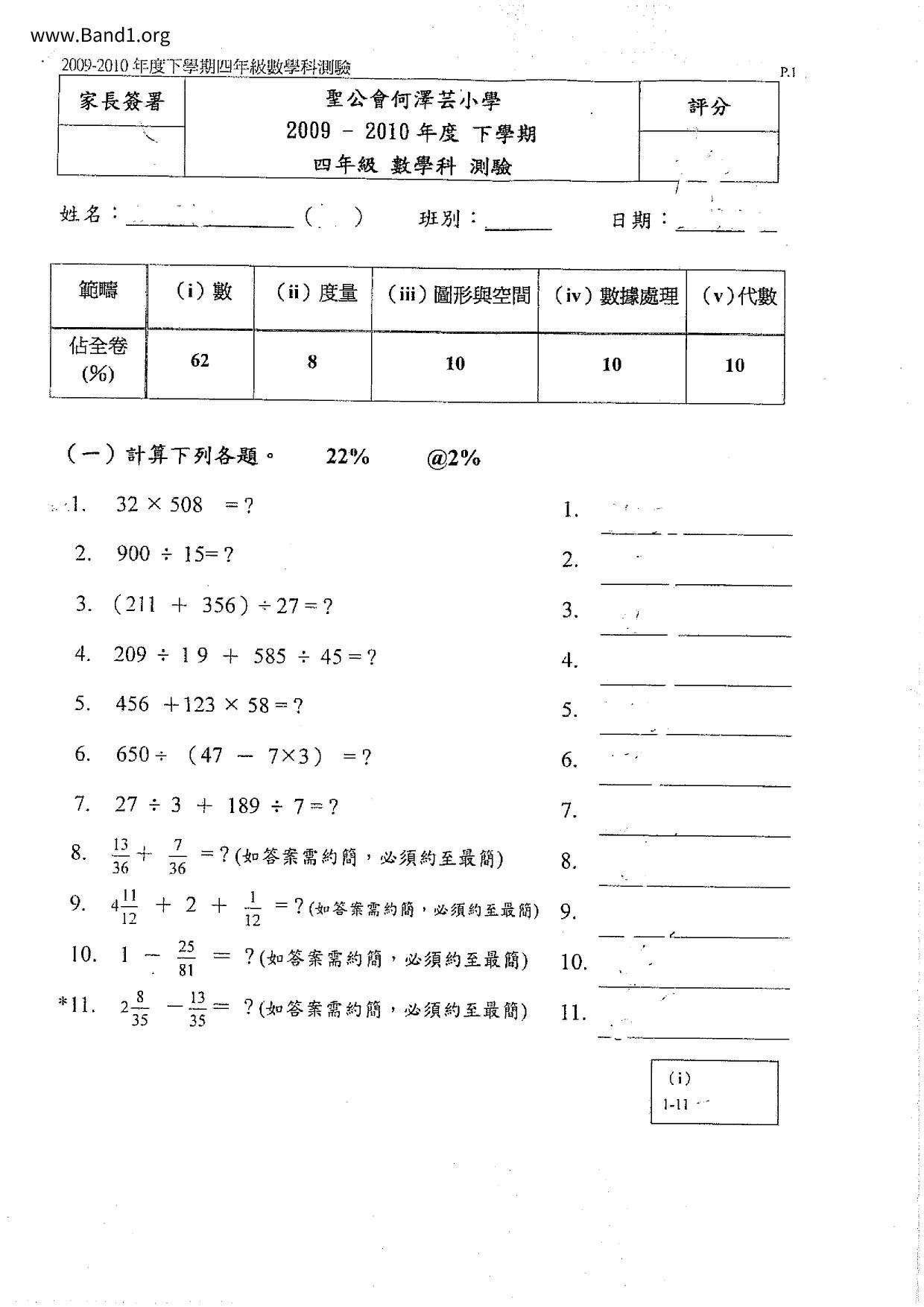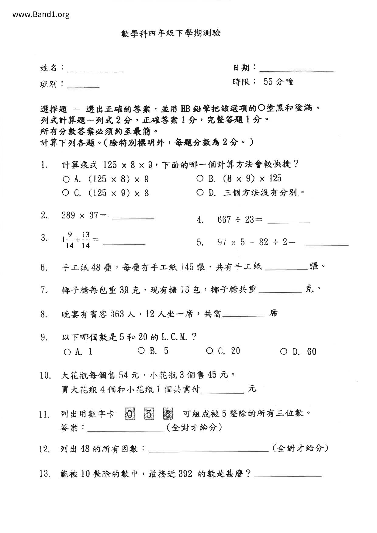小四 數學 中華基督教會灣仔堂基道小學(九龍城)