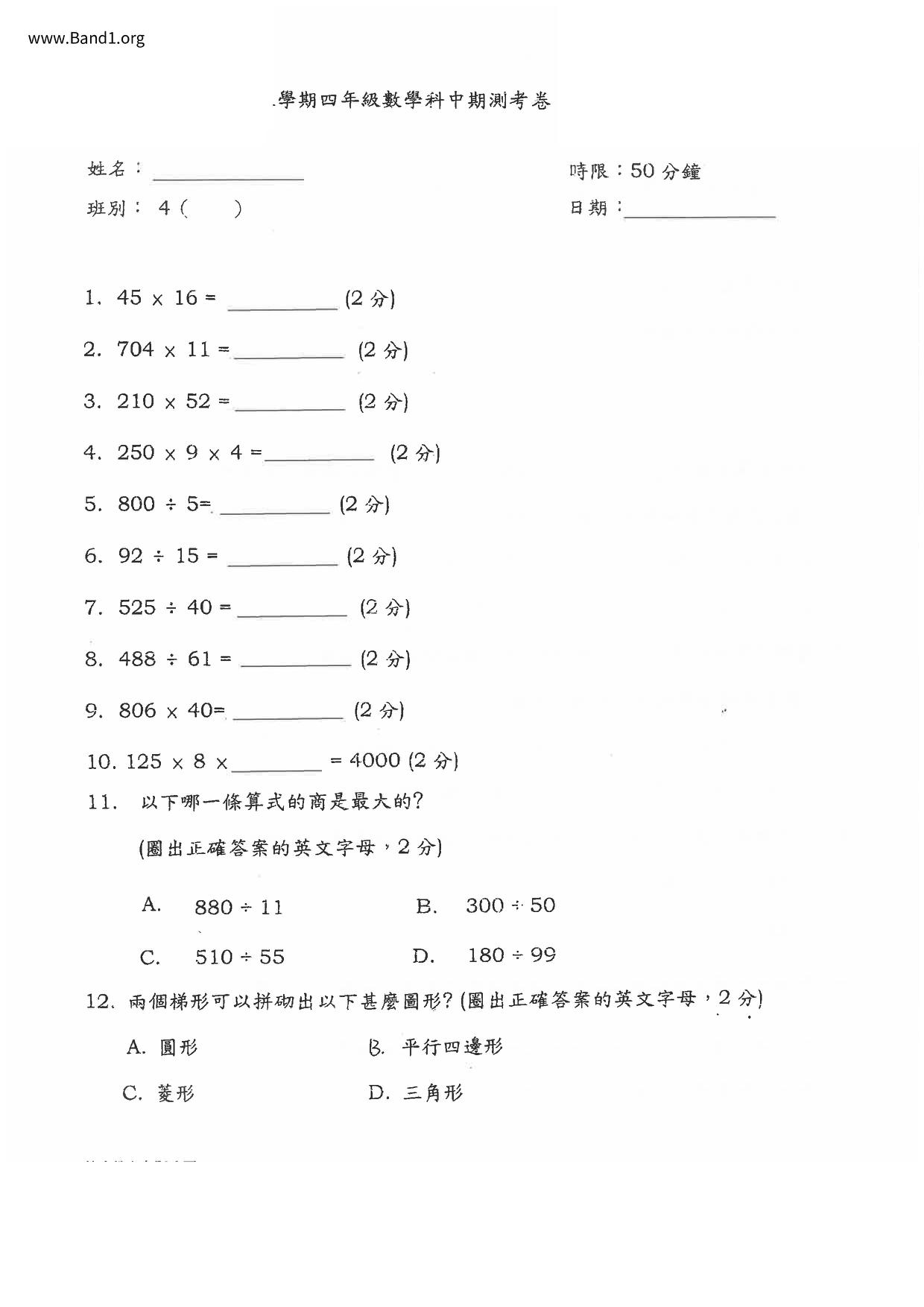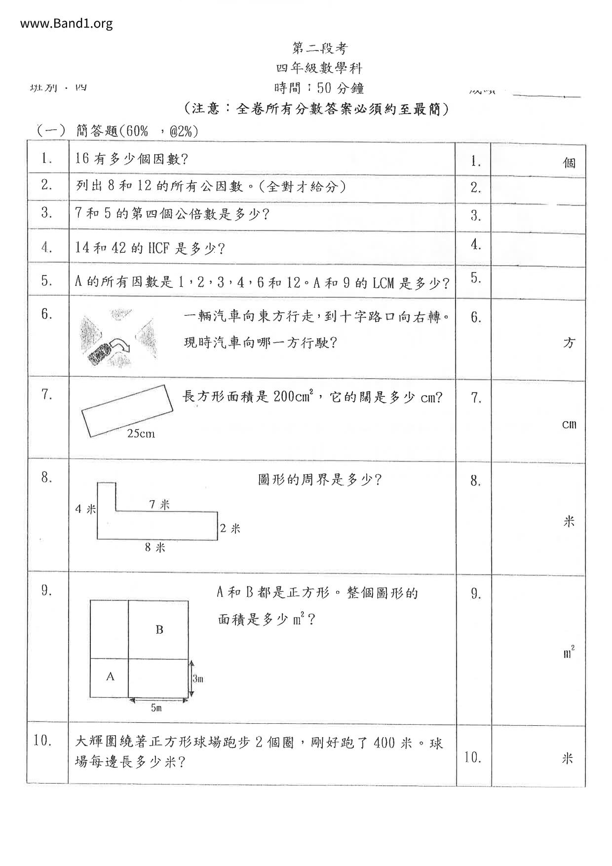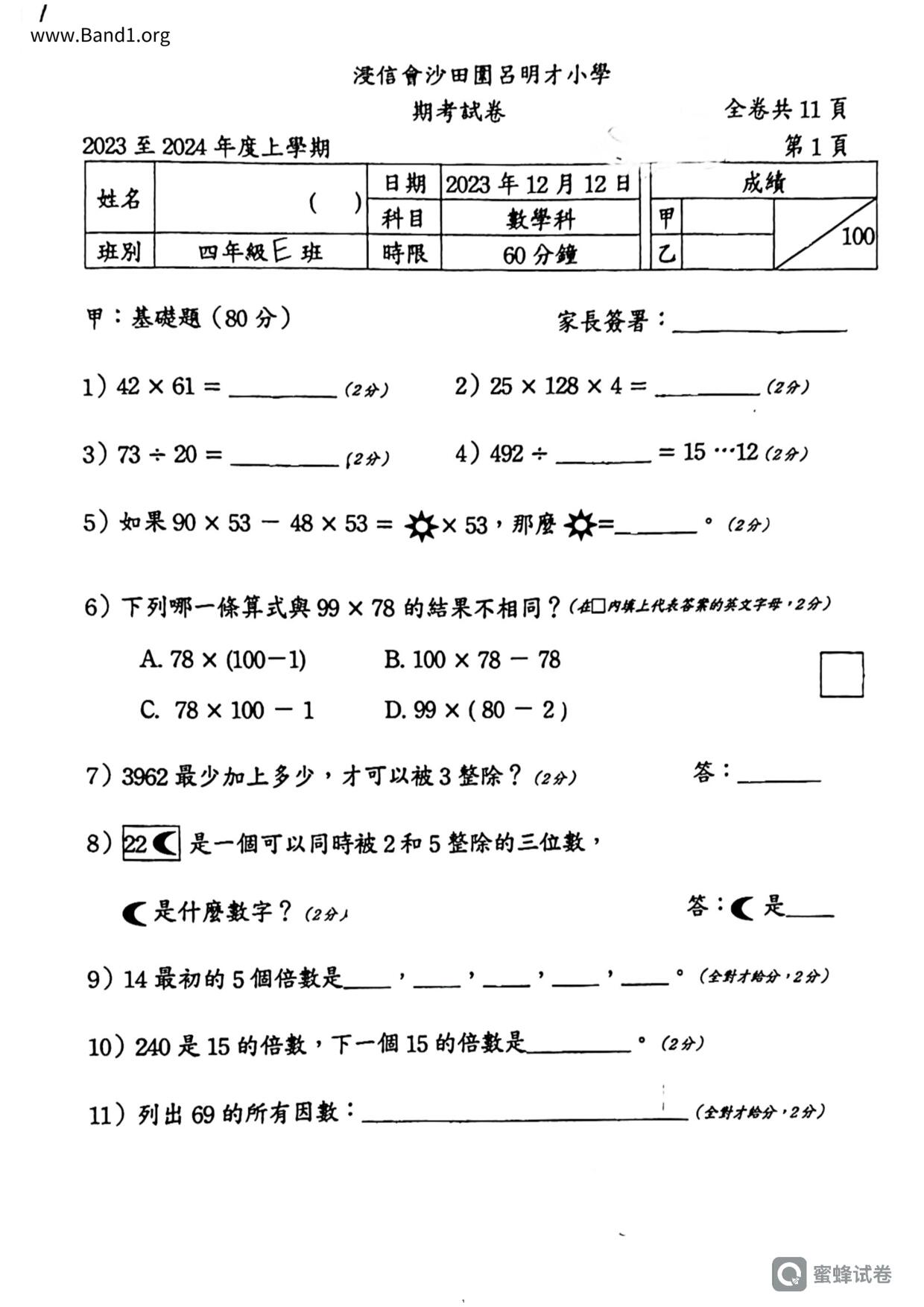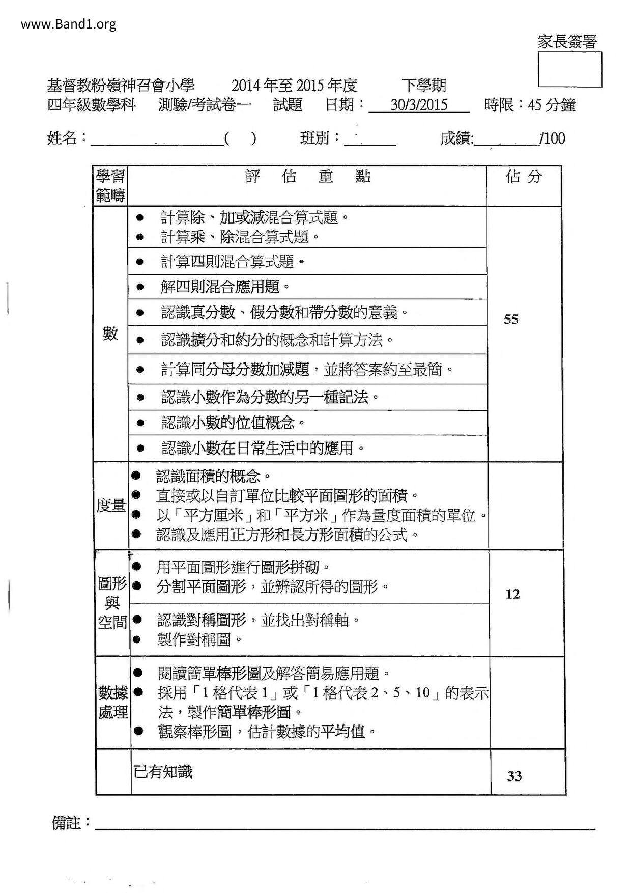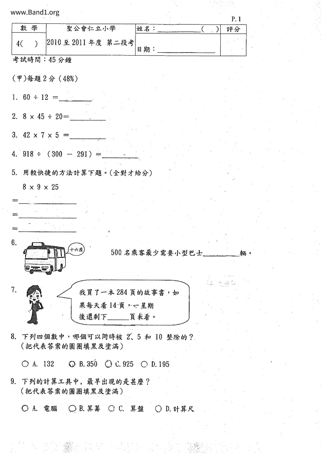 小四 數學 中華基督教會灣仔堂基道小學(九龍城)