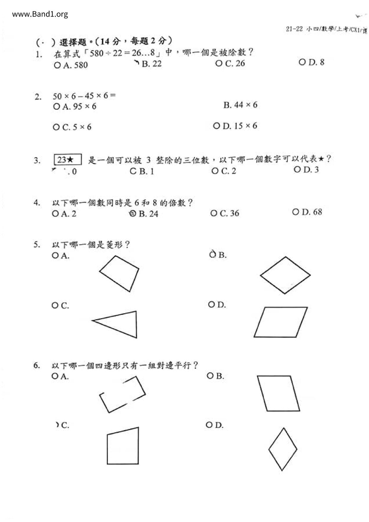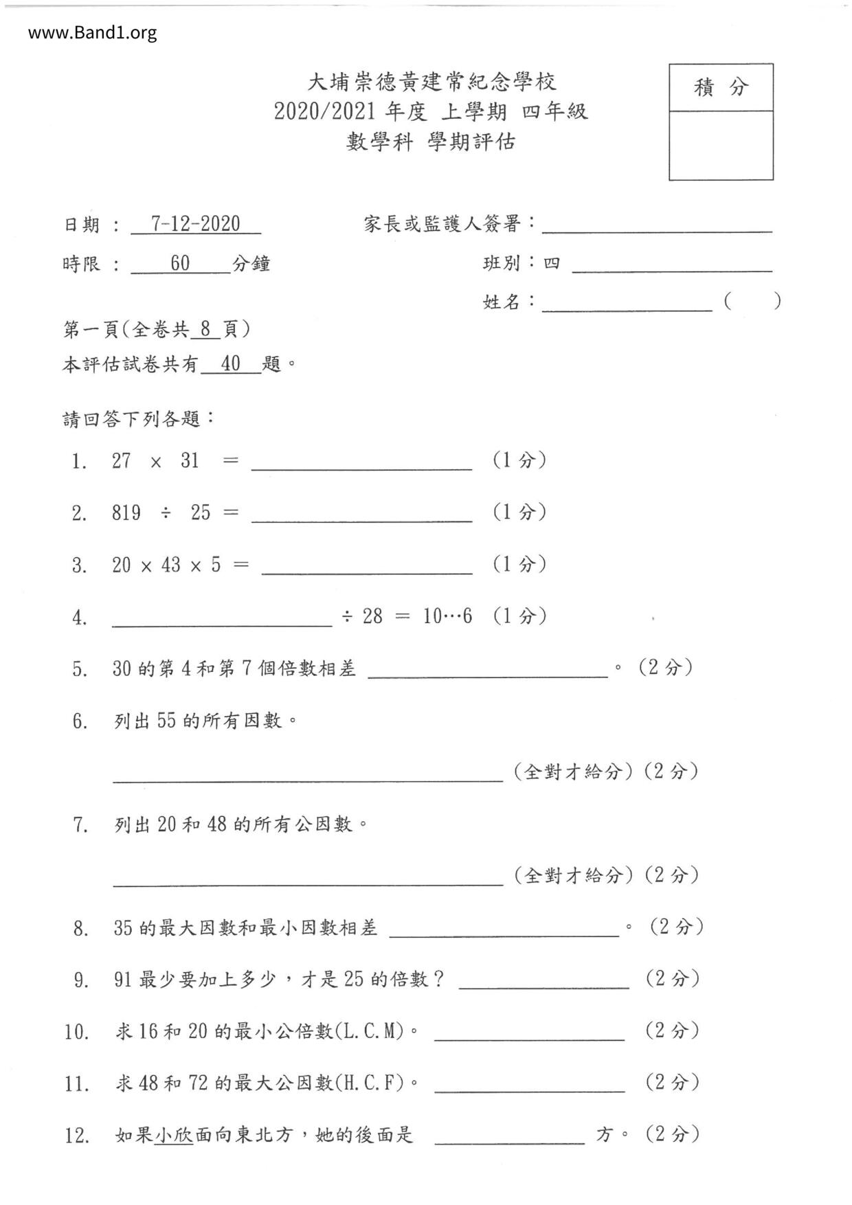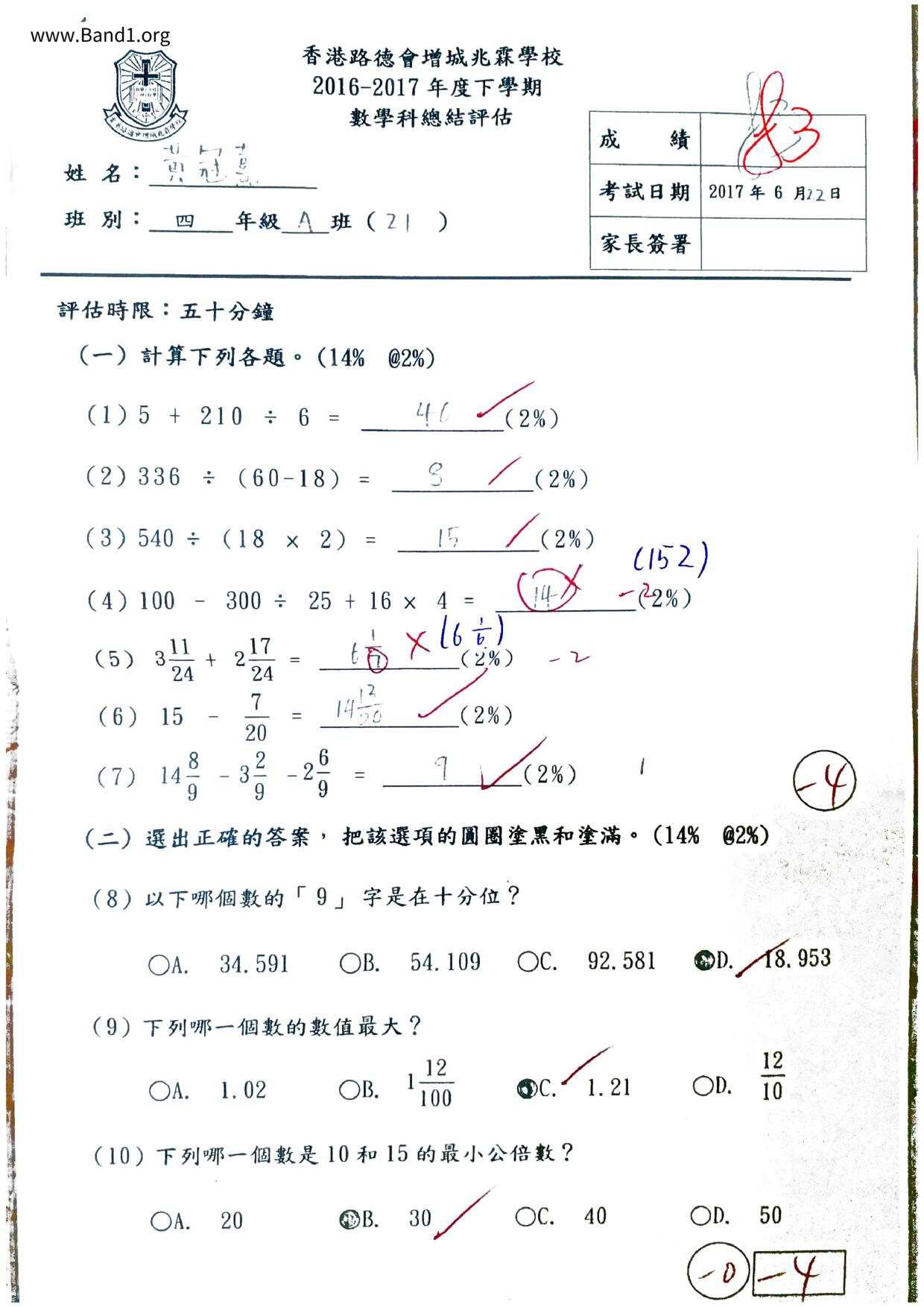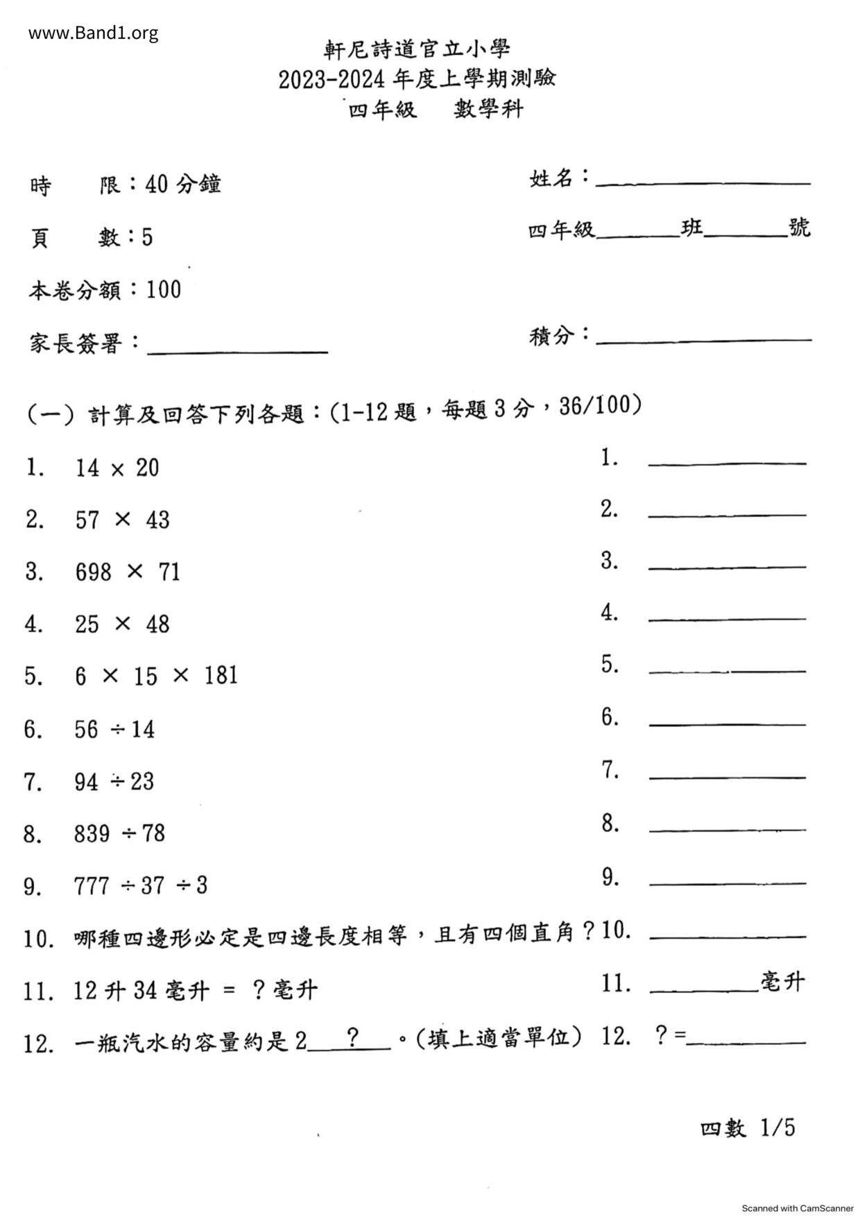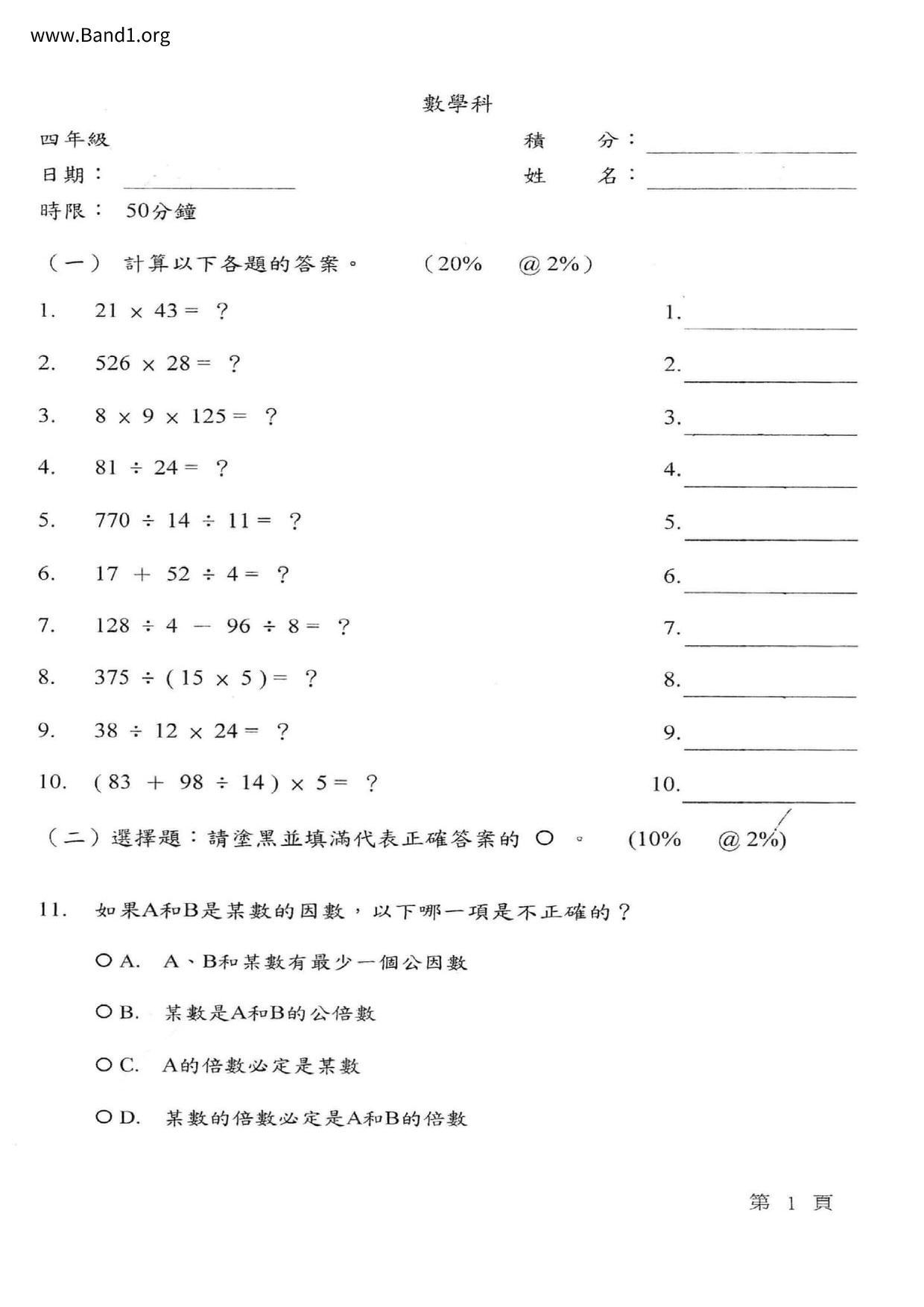 小四 數學 中華基督教會灣仔堂基道小學(九龍城)