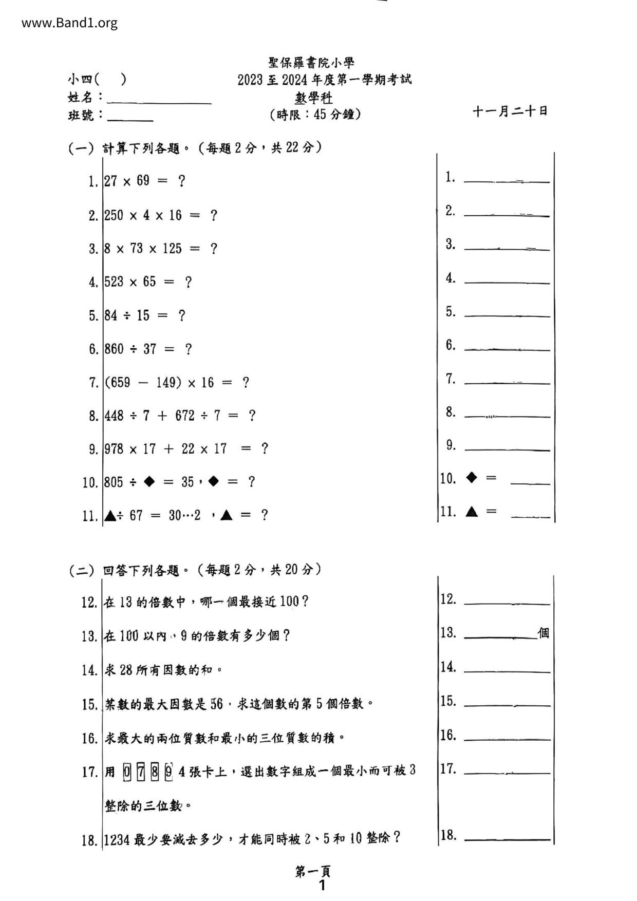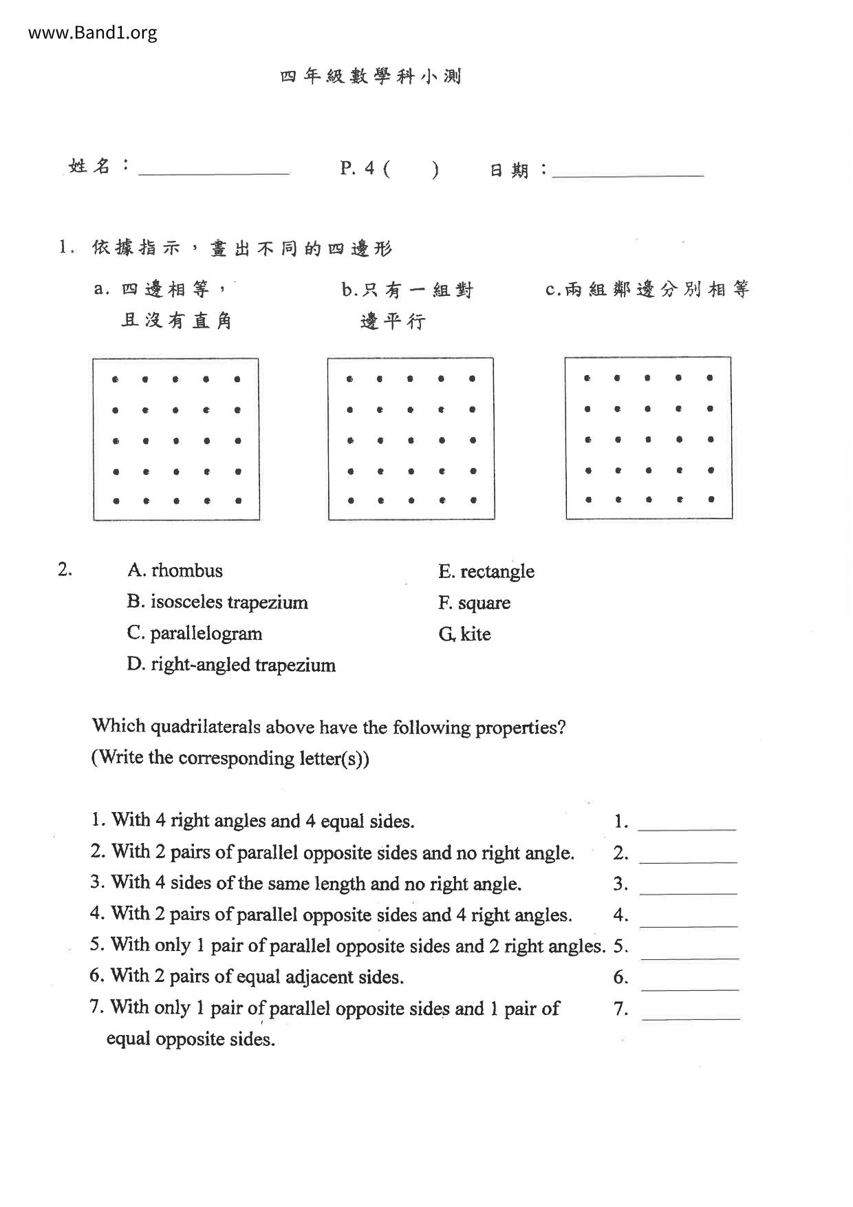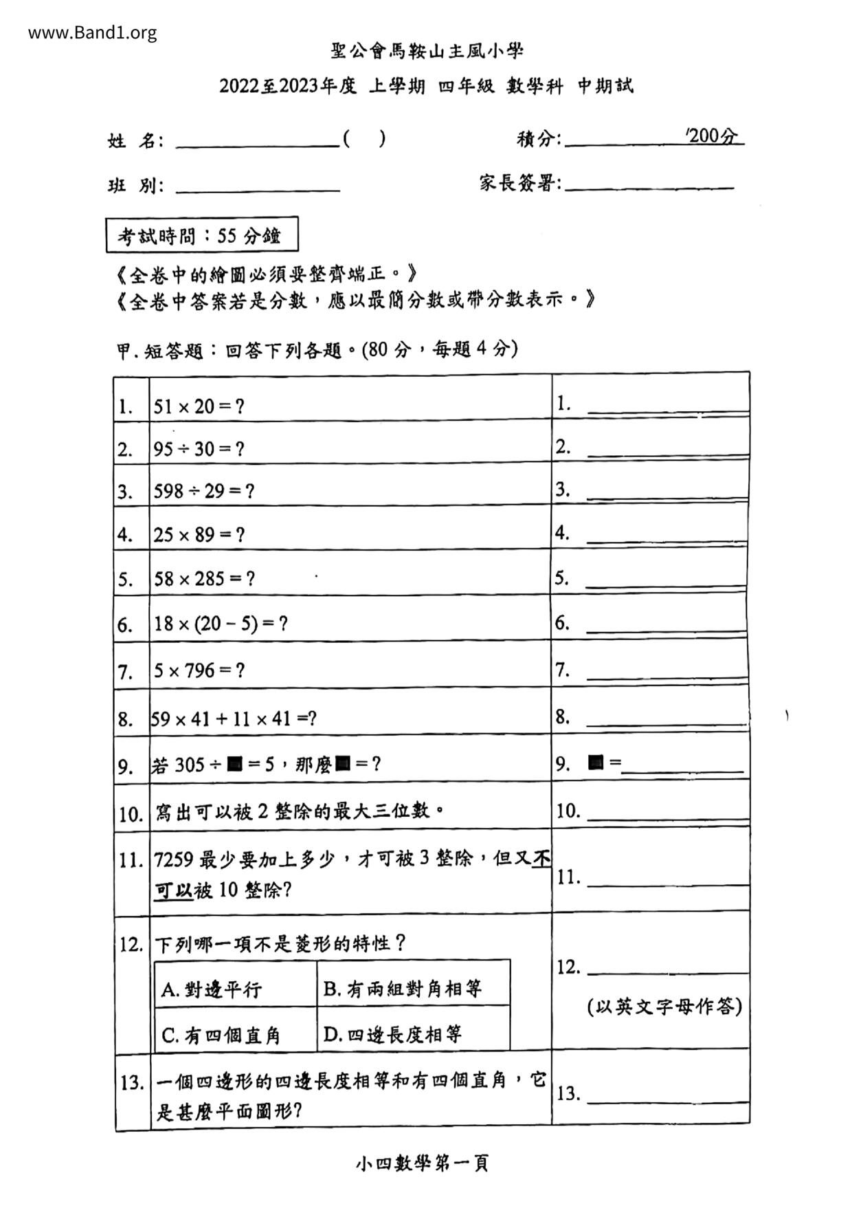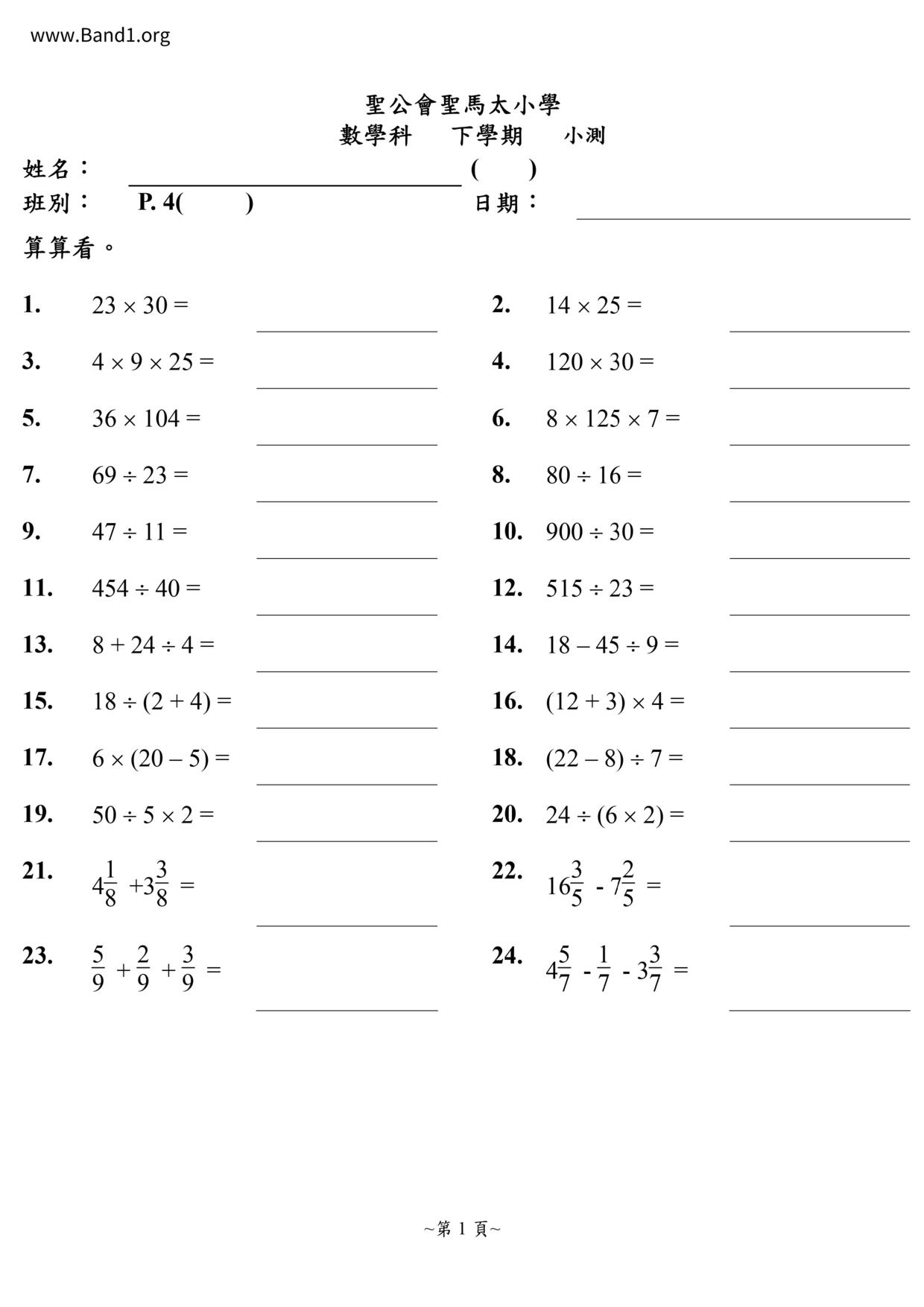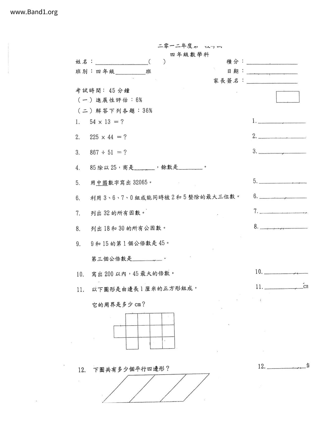 小四 數學 中華基督教會灣仔堂基道小學(九龍城)