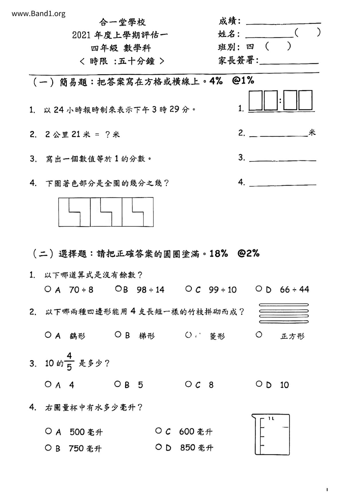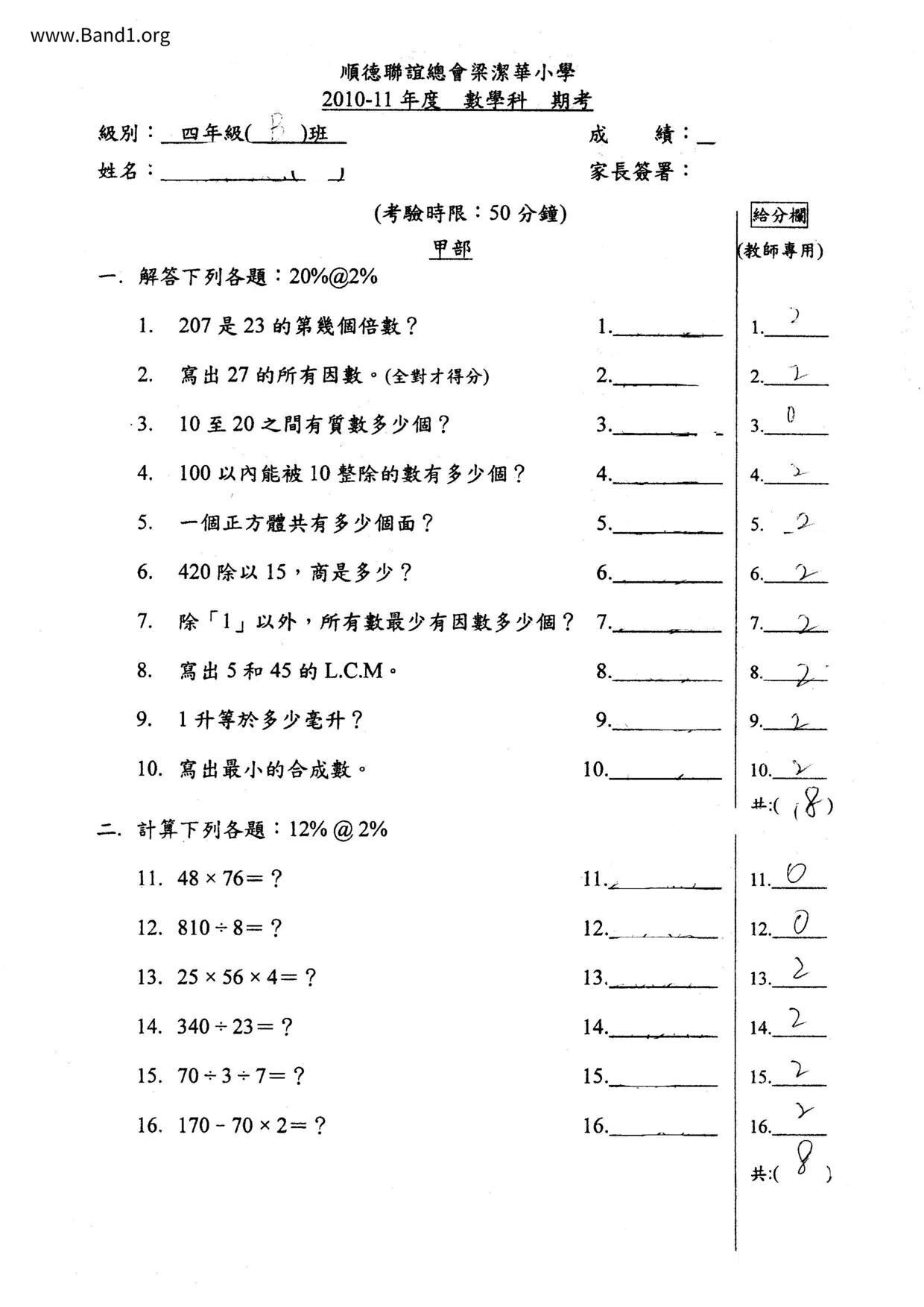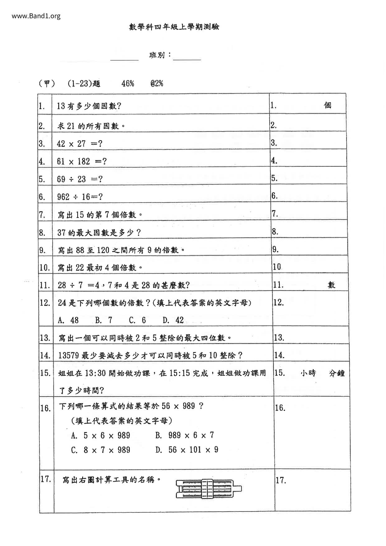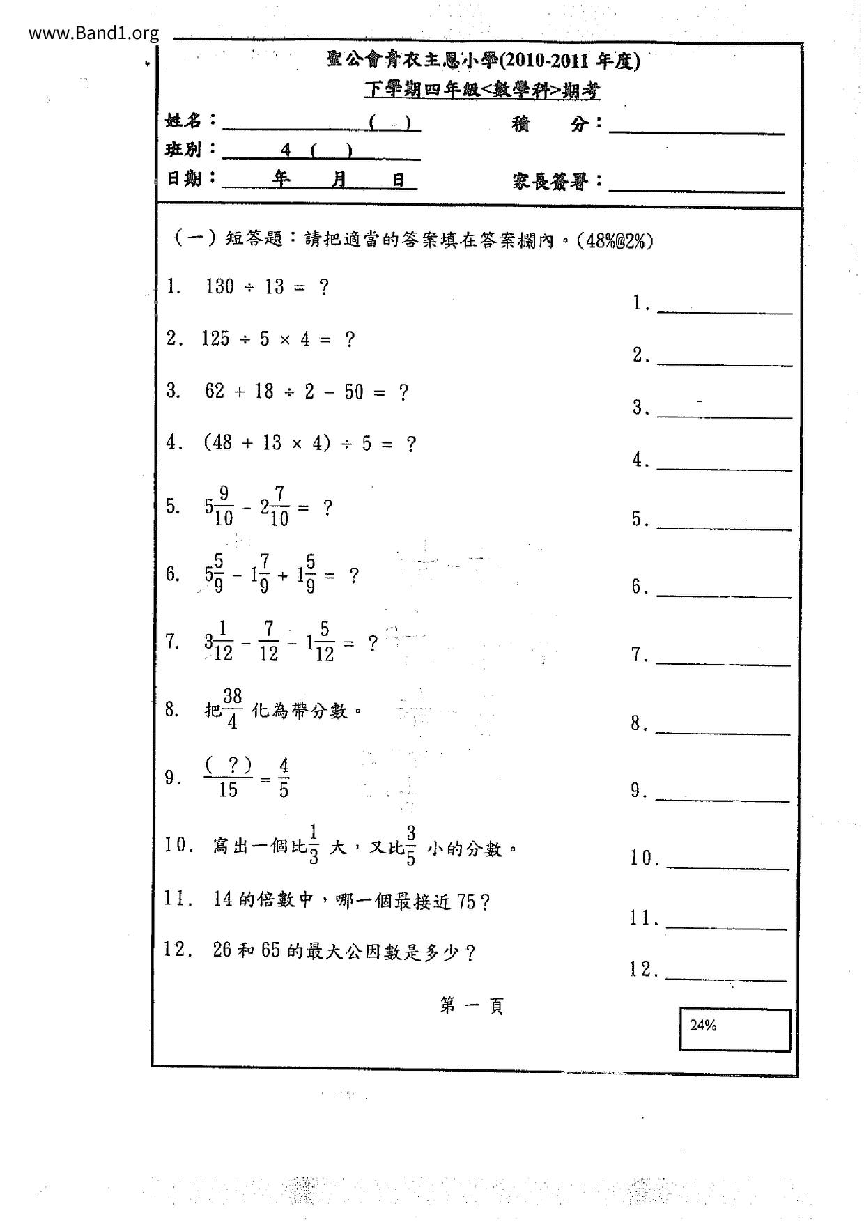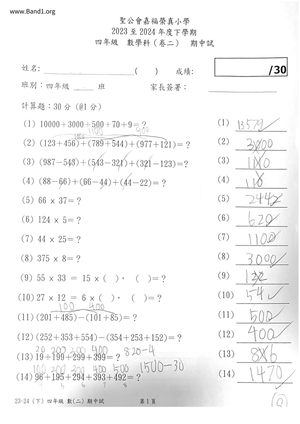小四 數學 中華基督教會灣仔堂基道小學(九龍城)