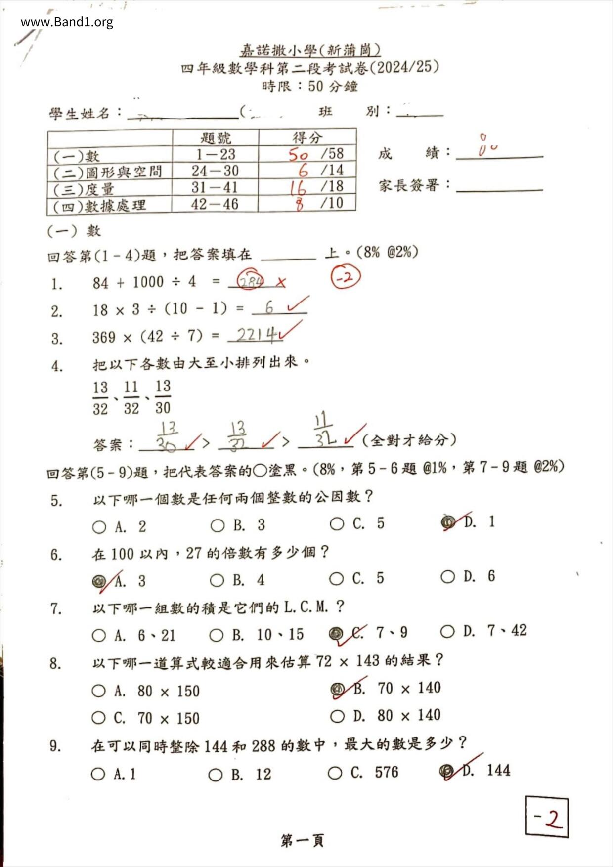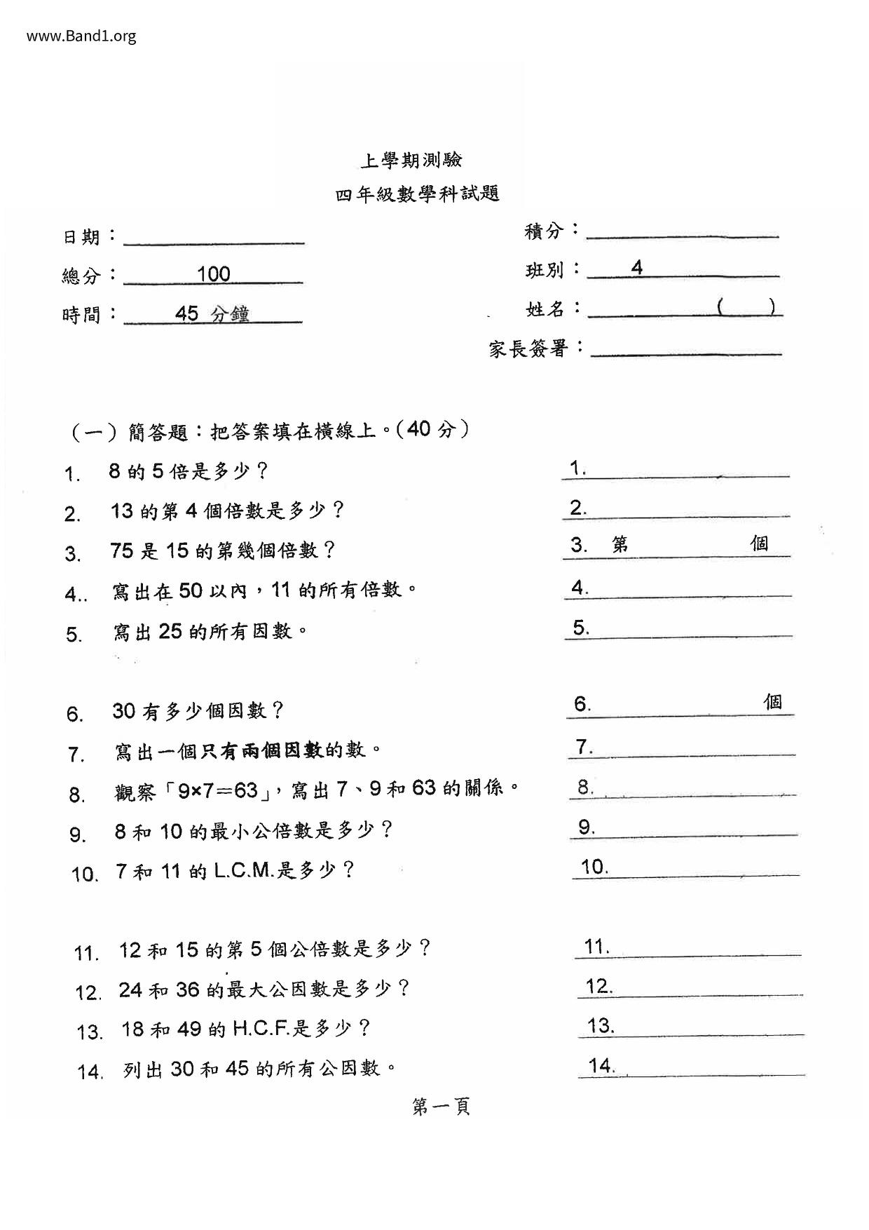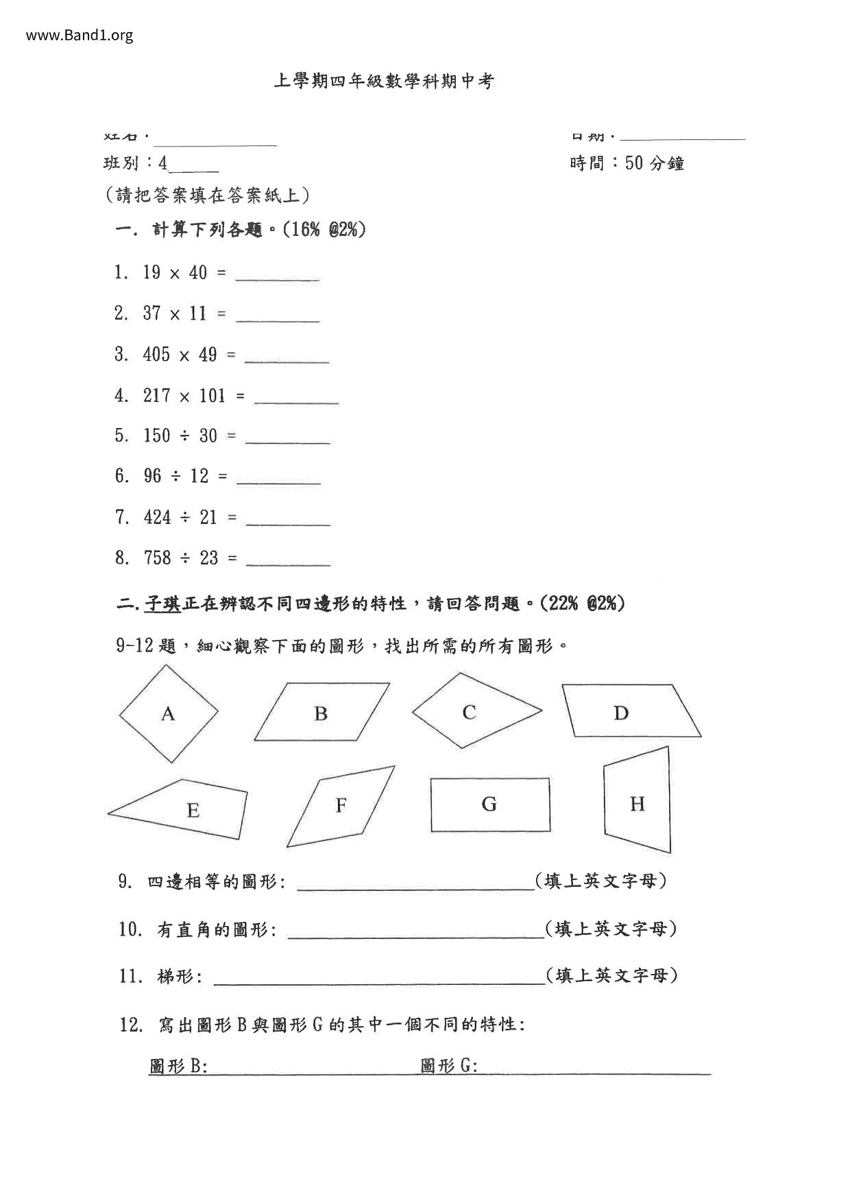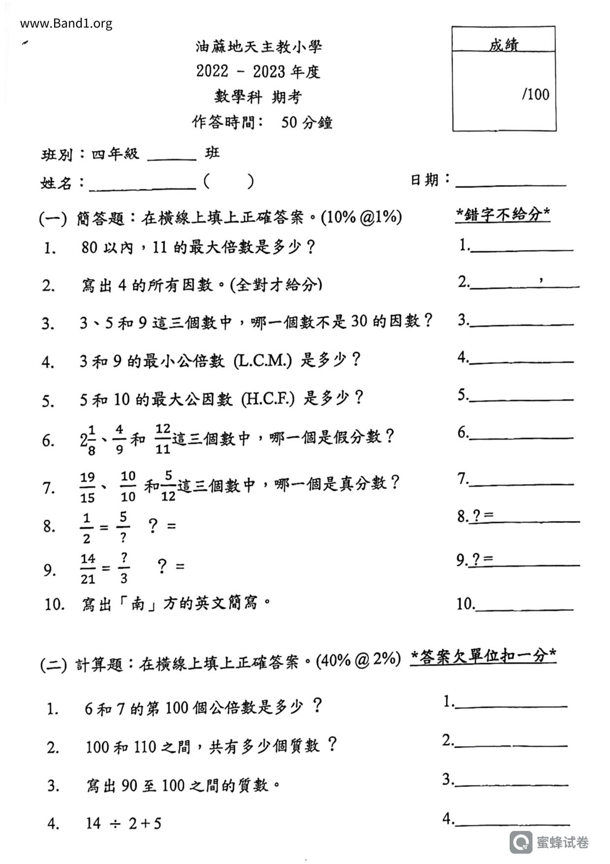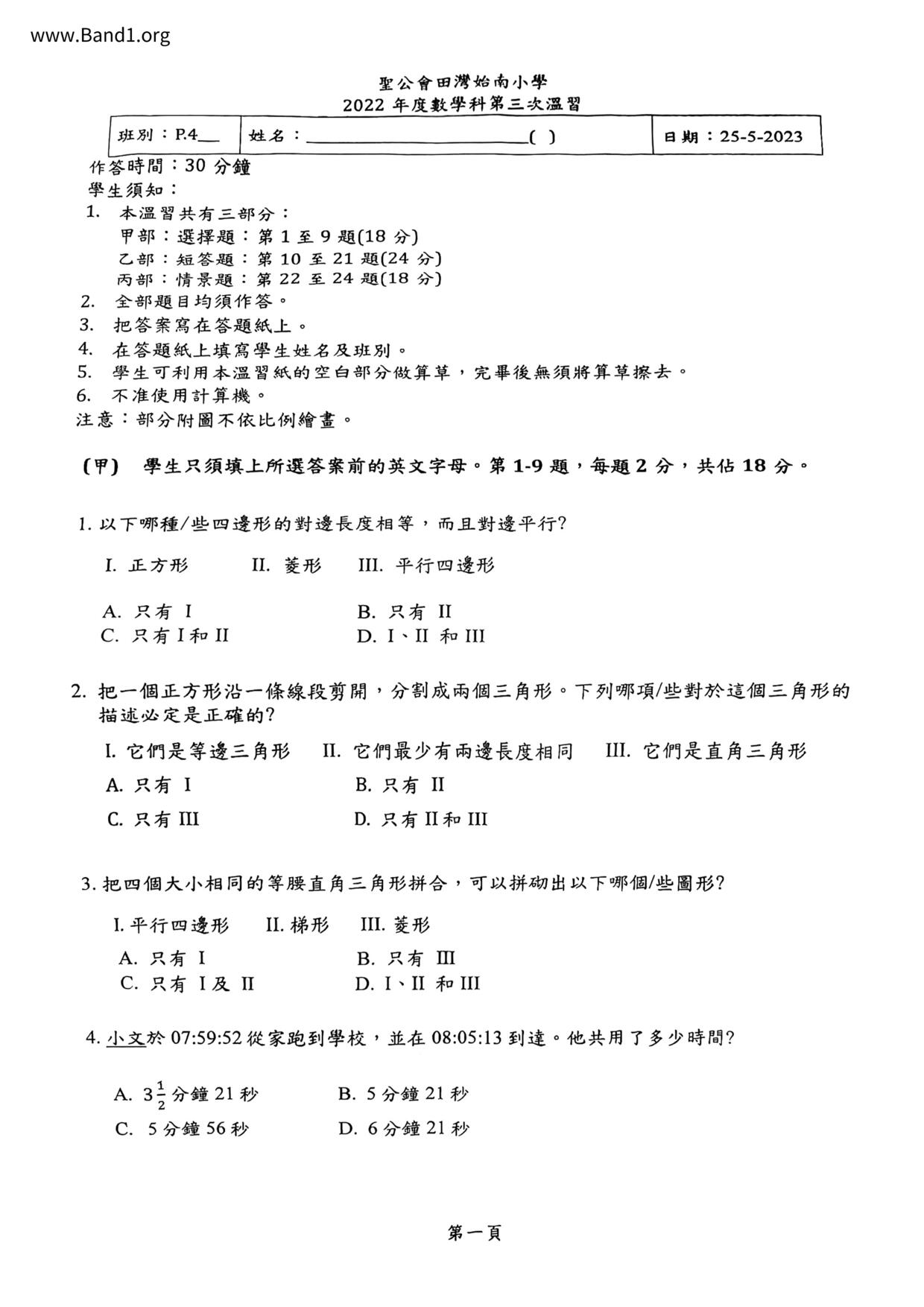 小四 數學 中華基督教會灣仔堂基道小學(九龍城)