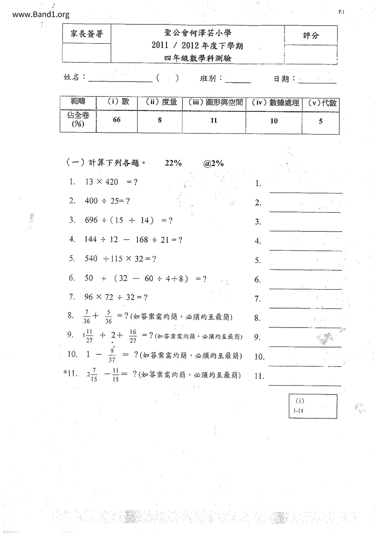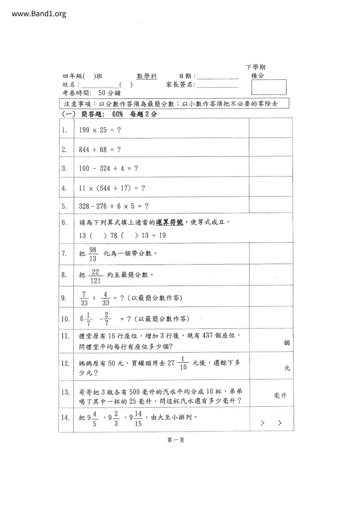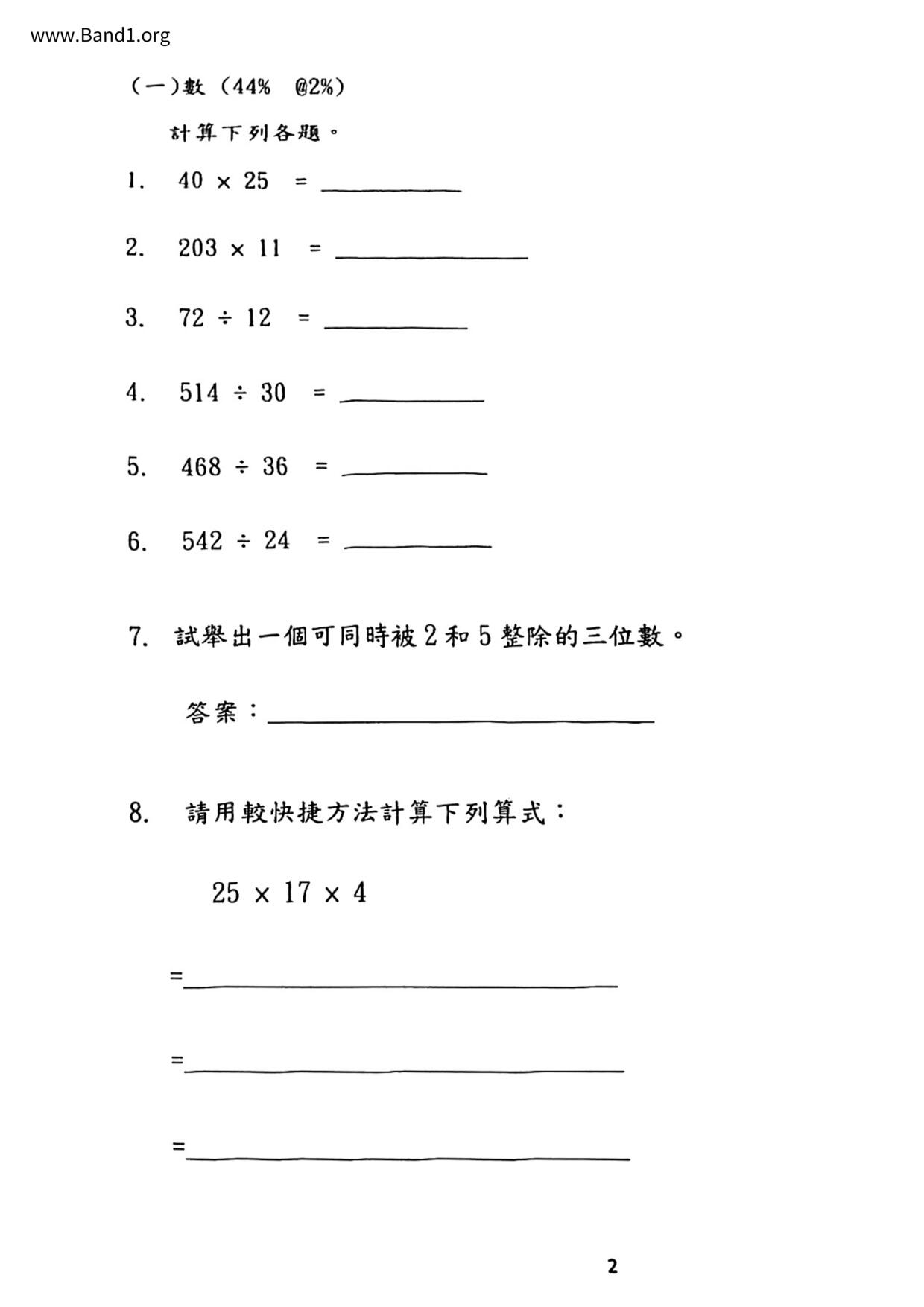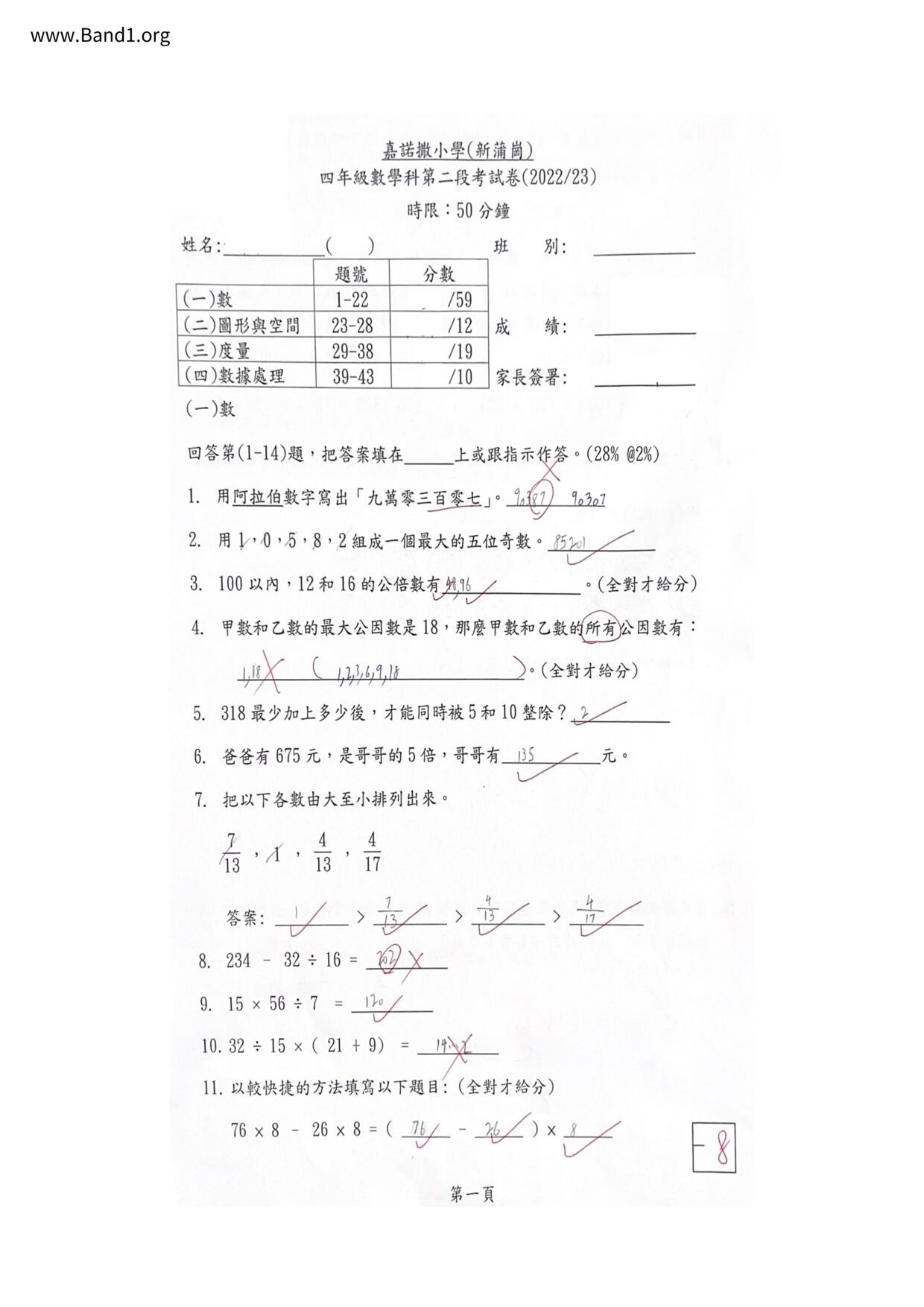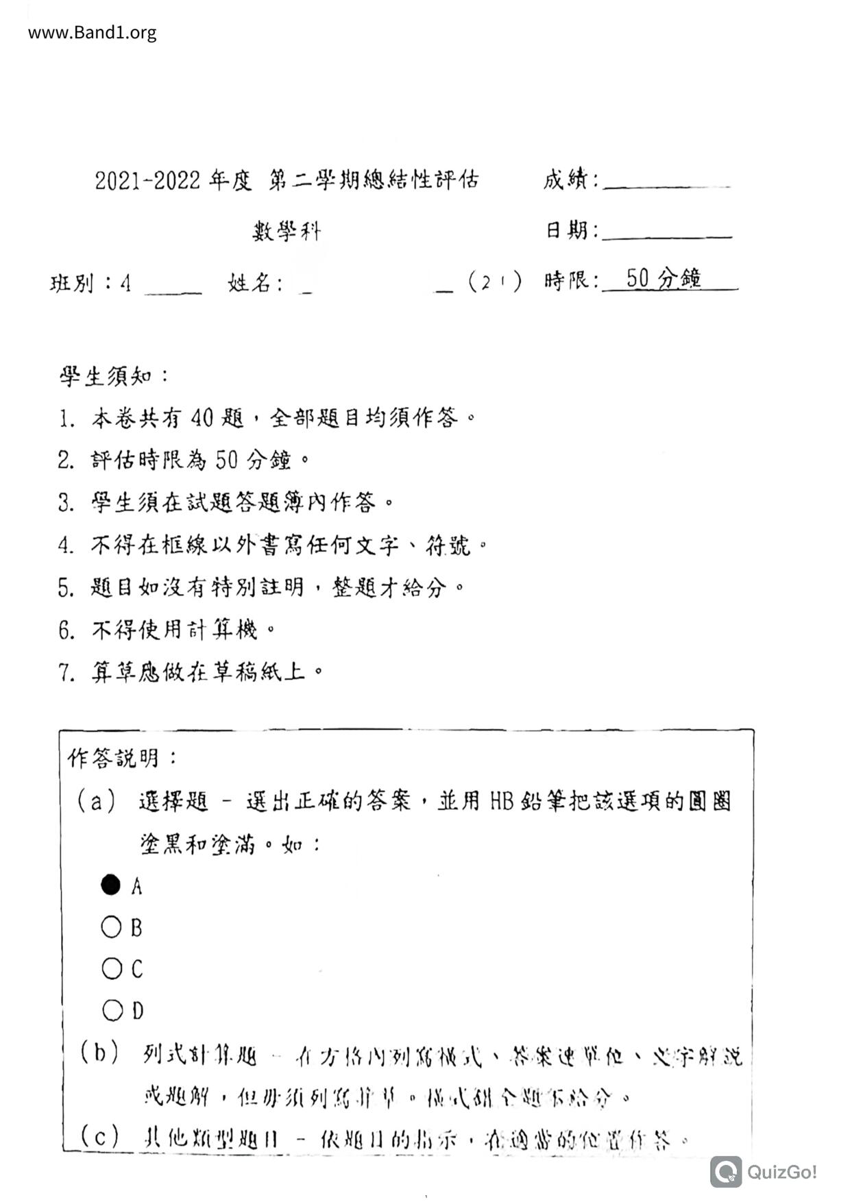 小四 數學 中華基督教會灣仔堂基道小學(九龍城)