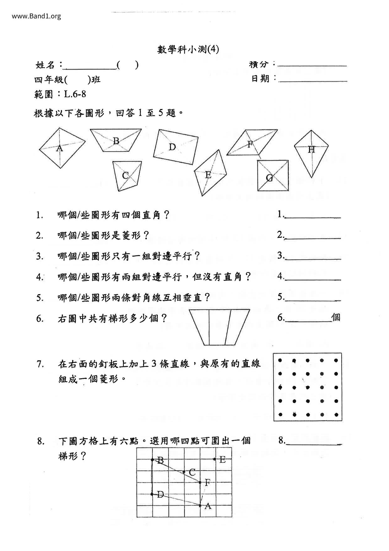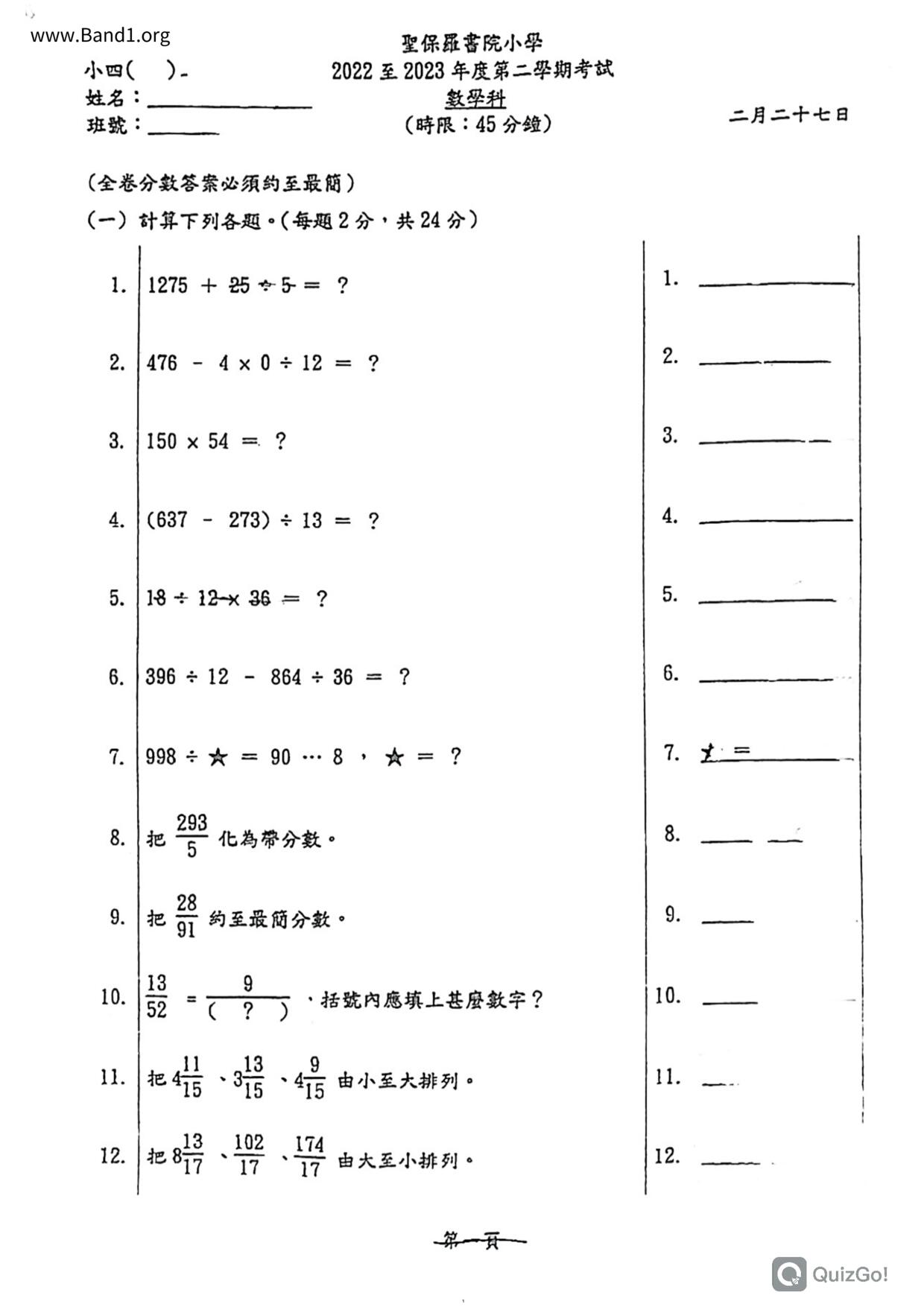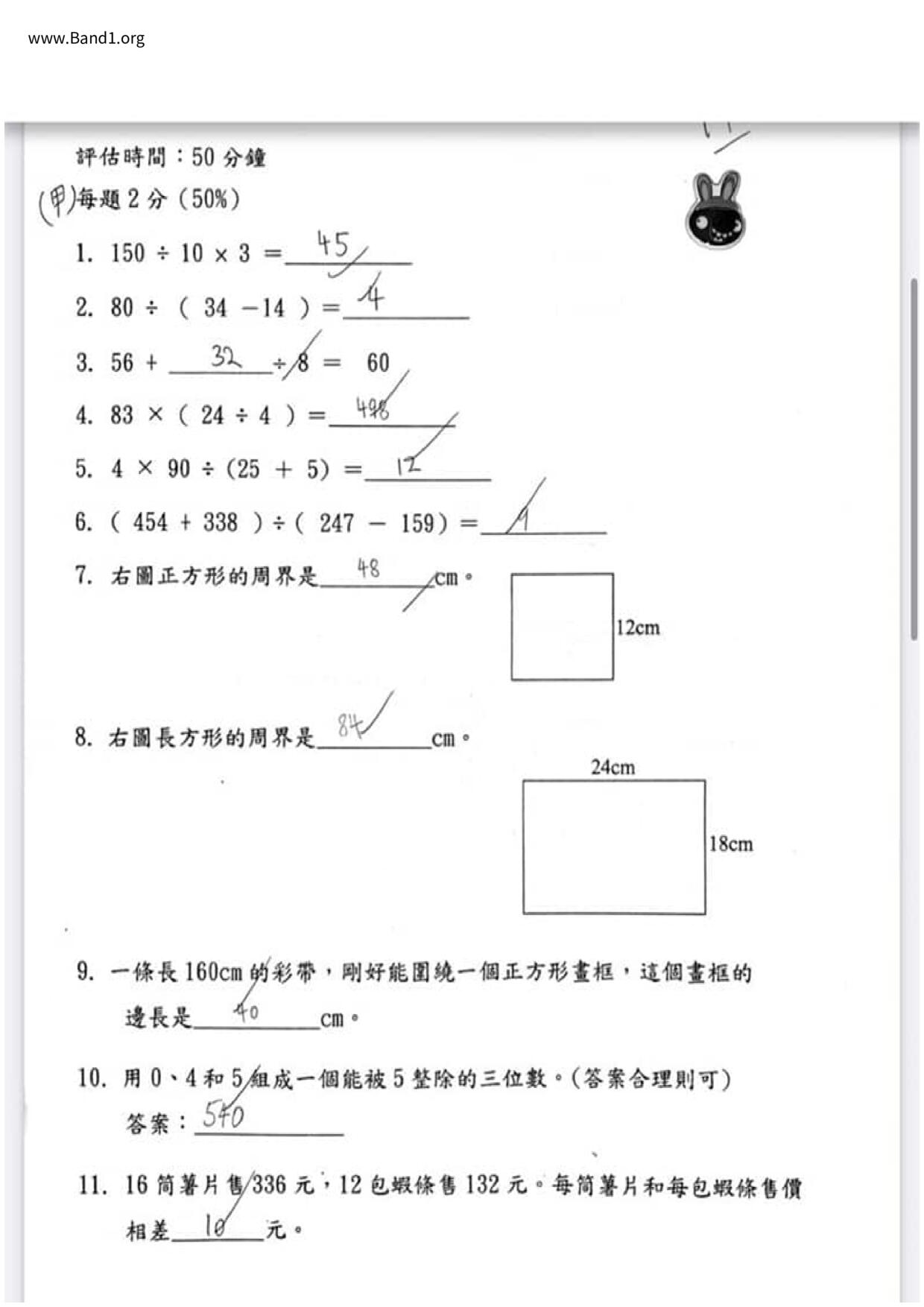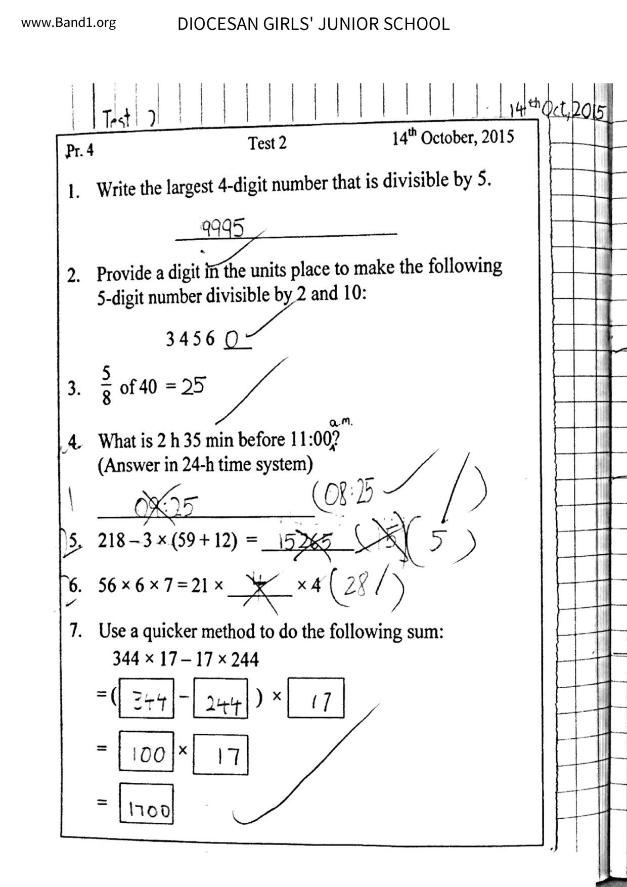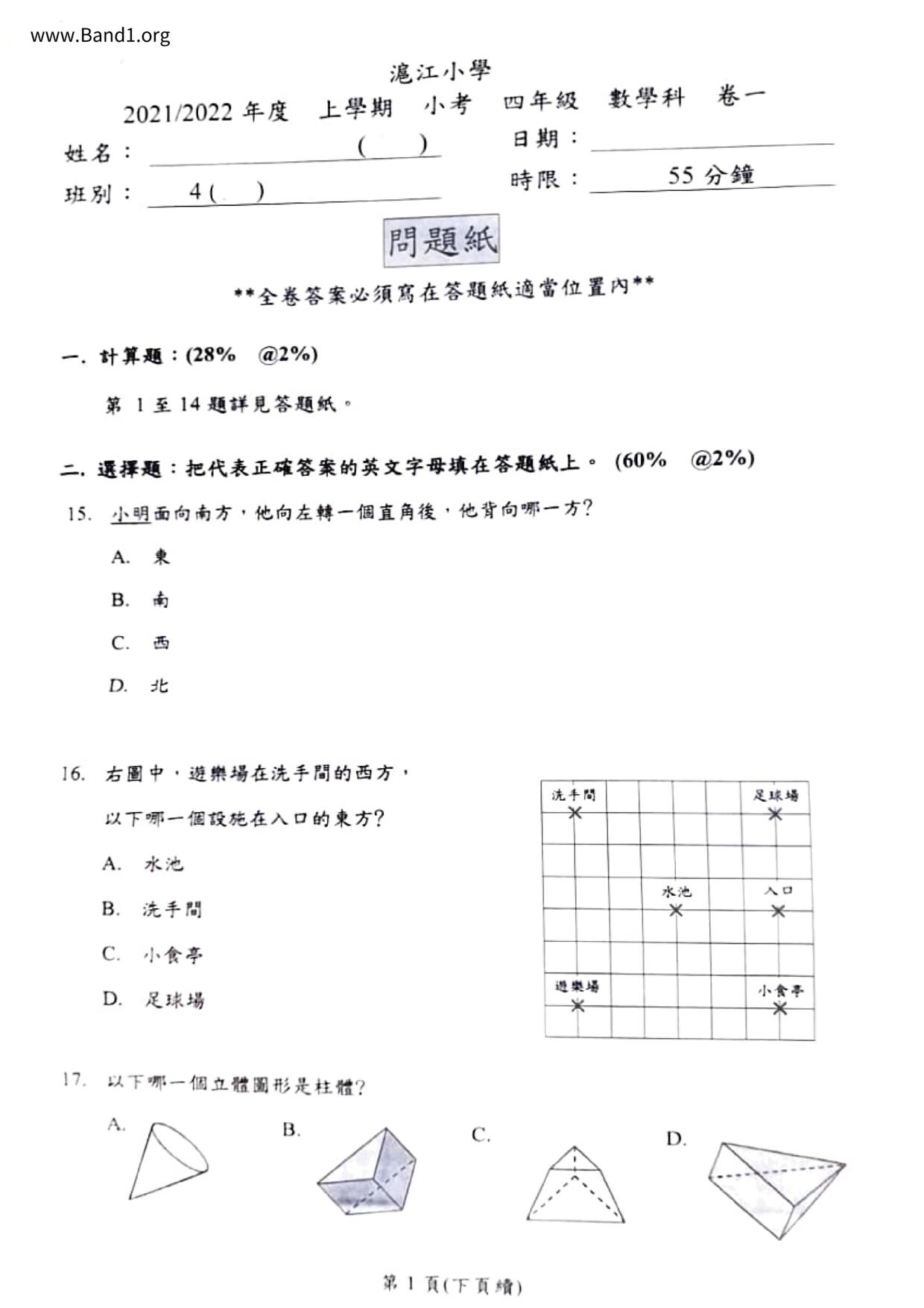 小四 數學 中華基督教會灣仔堂基道小學(九龍城)