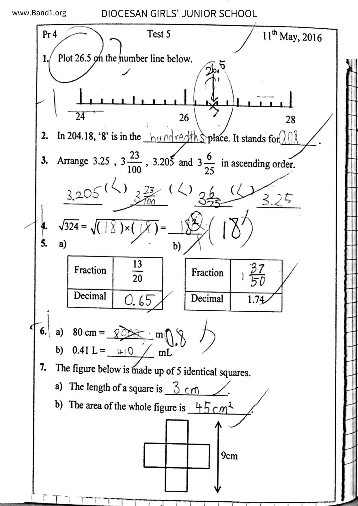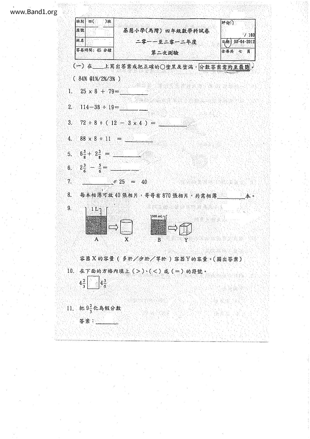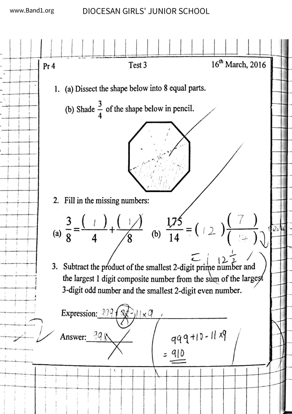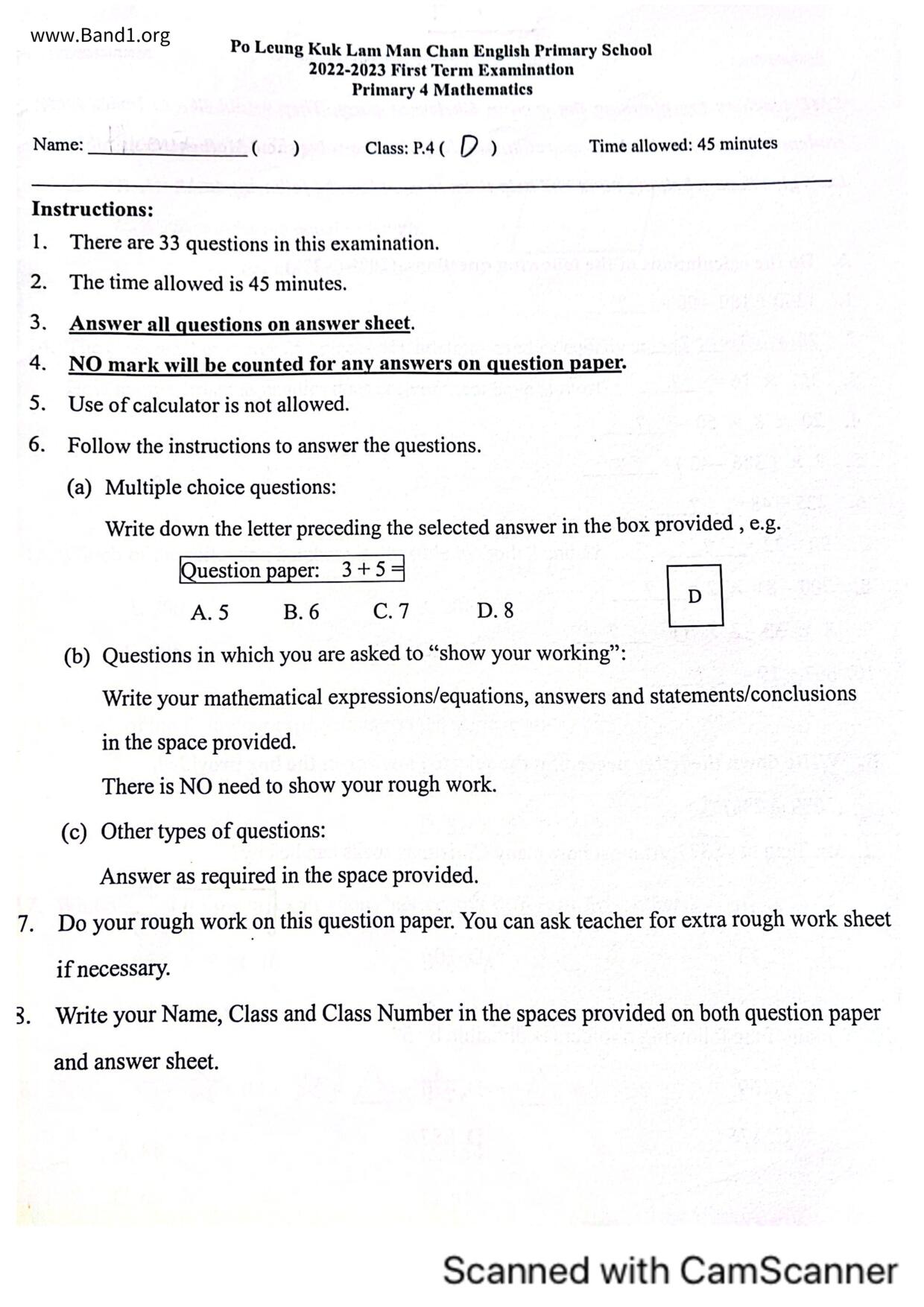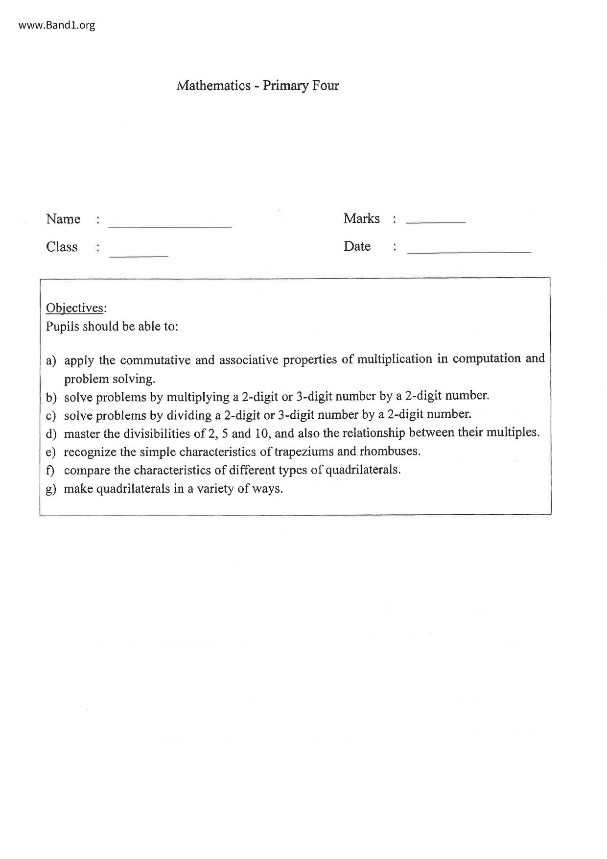 小四 數學 中華基督教會灣仔堂基道小學(九龍城)
