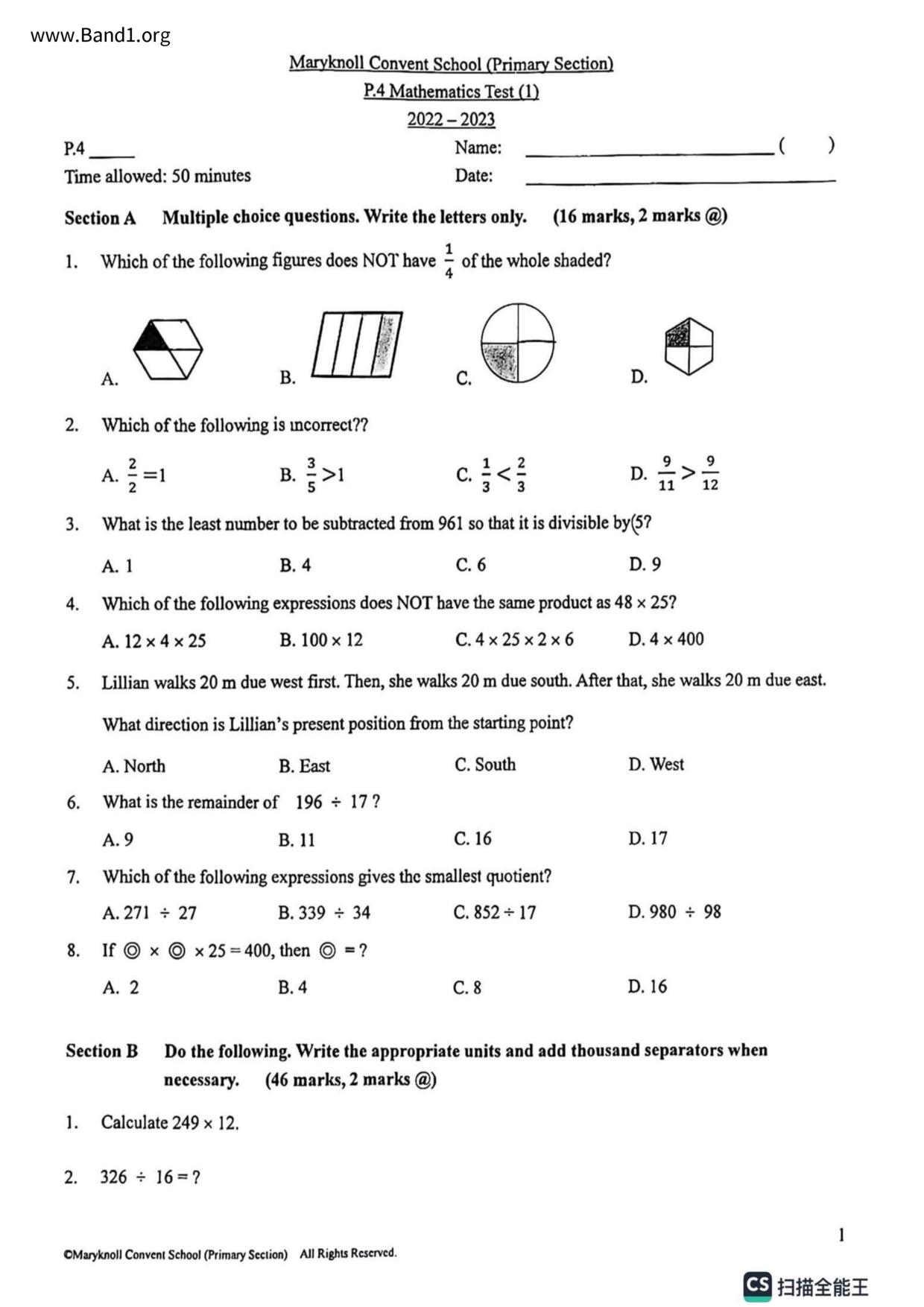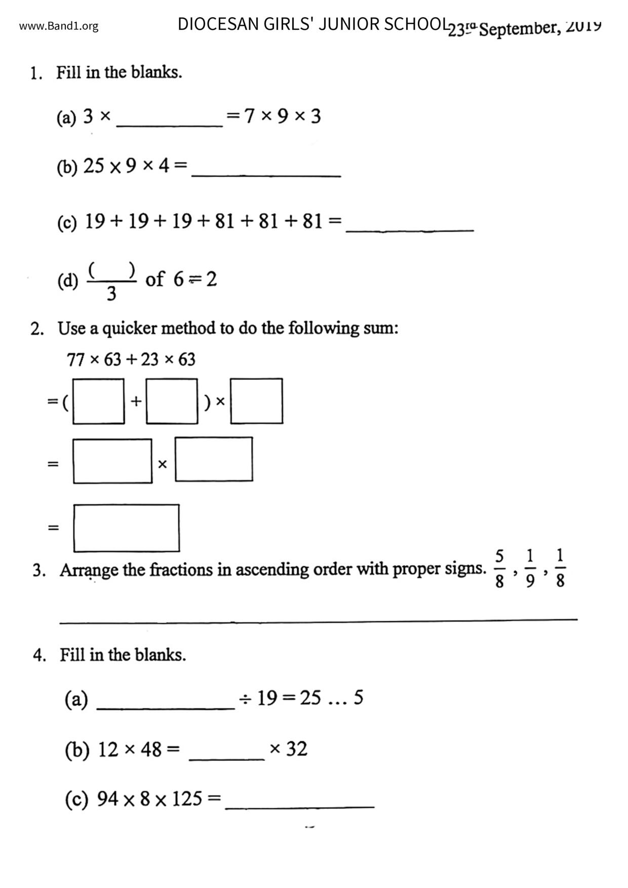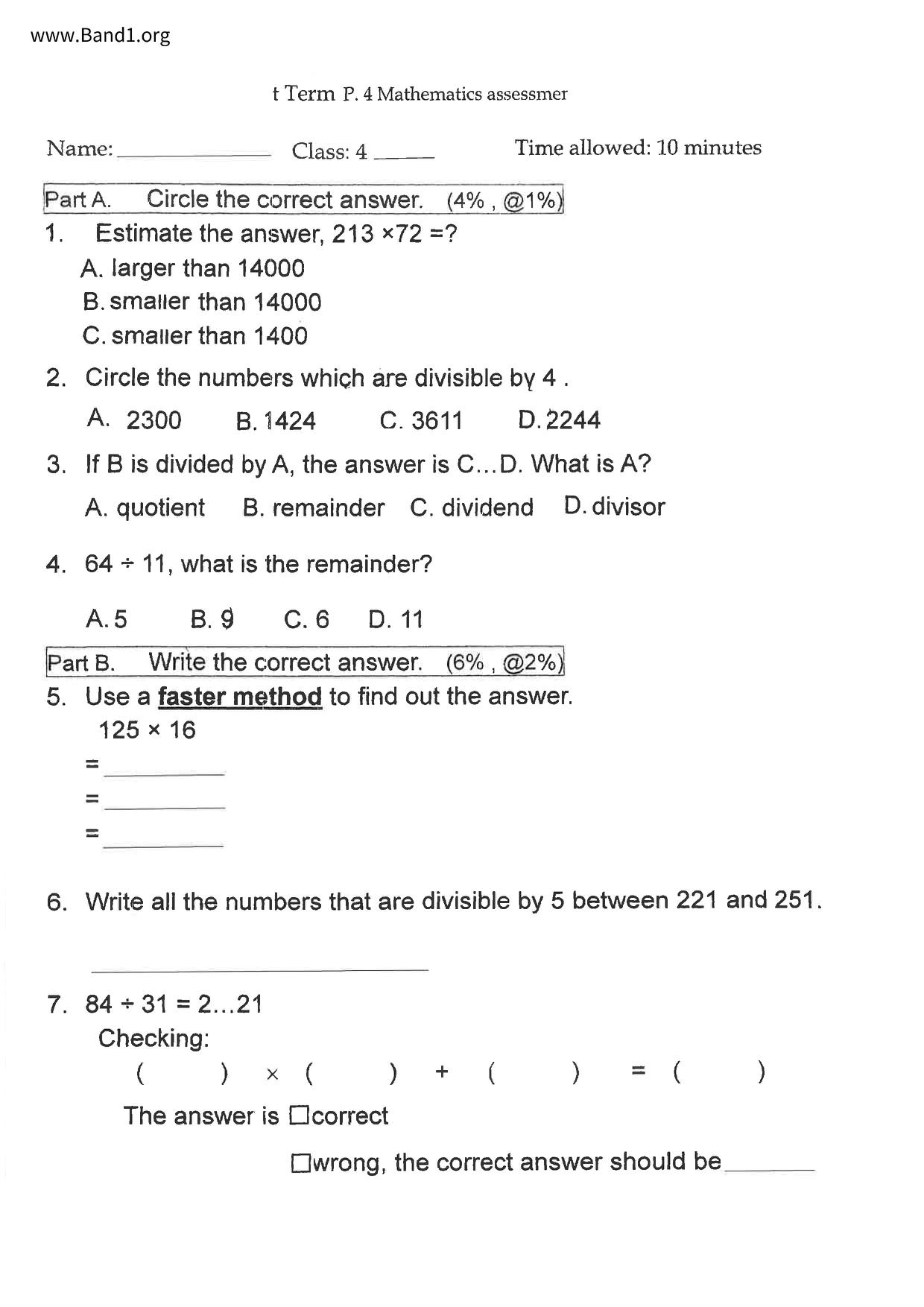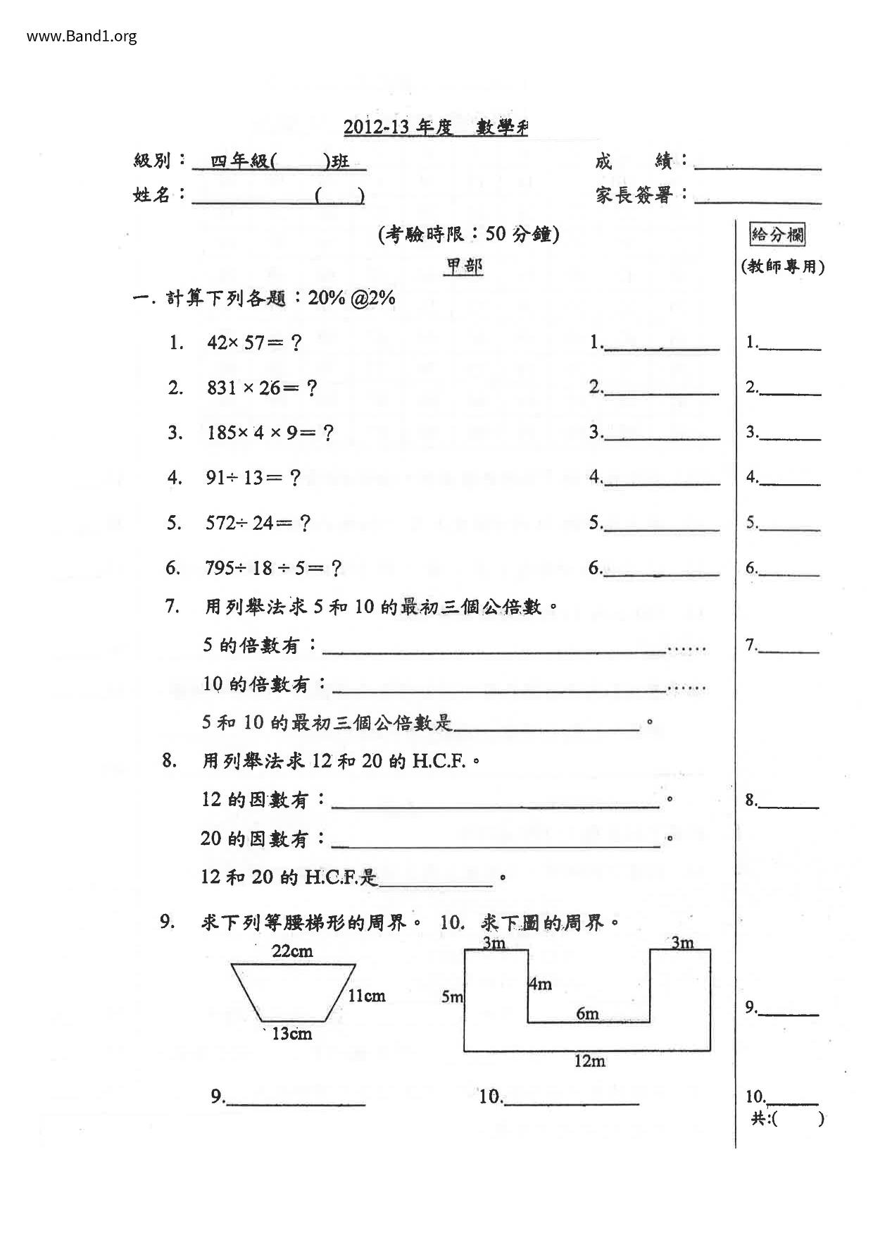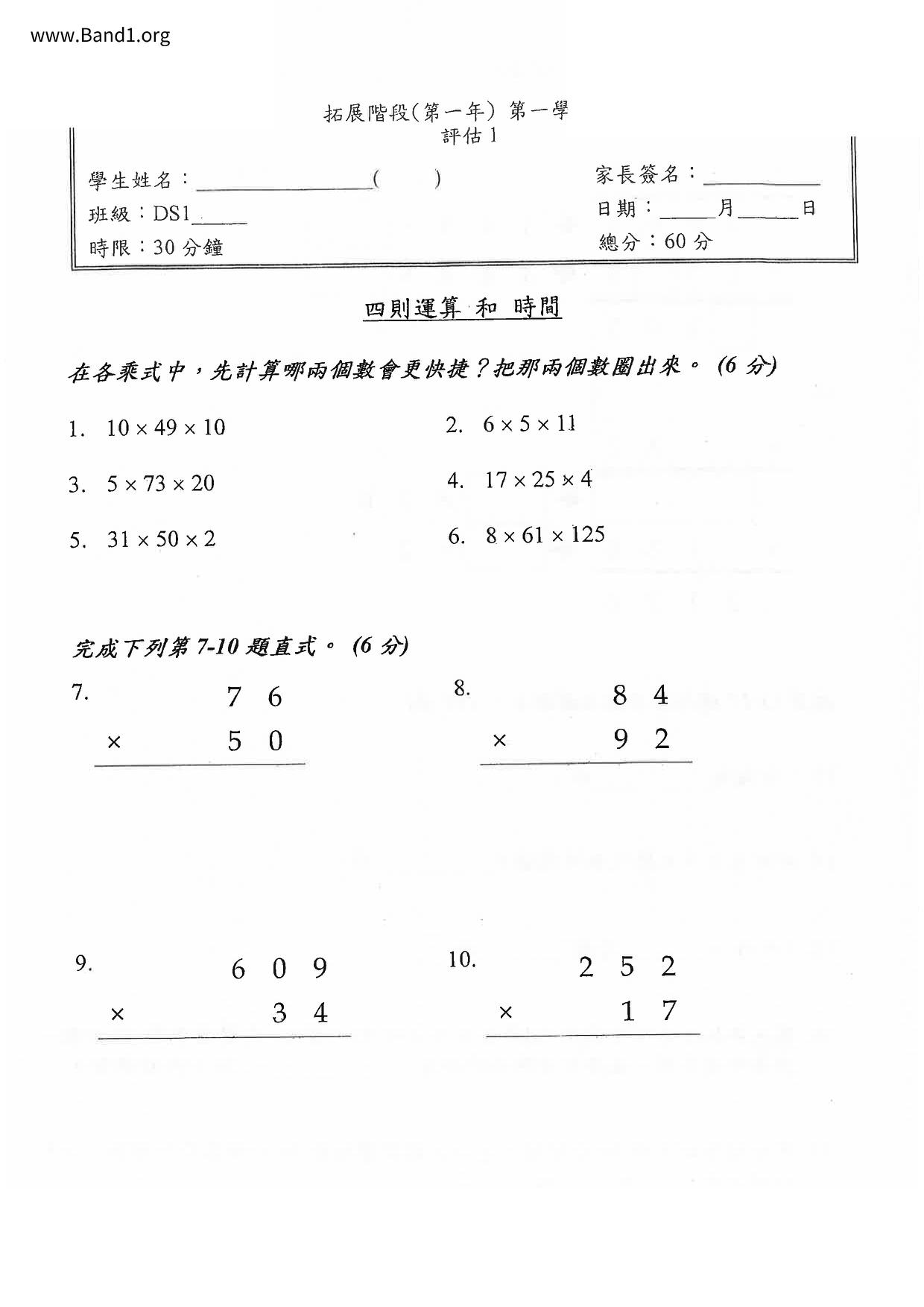 小四 數學 中華基督教會灣仔堂基道小學(九龍城)