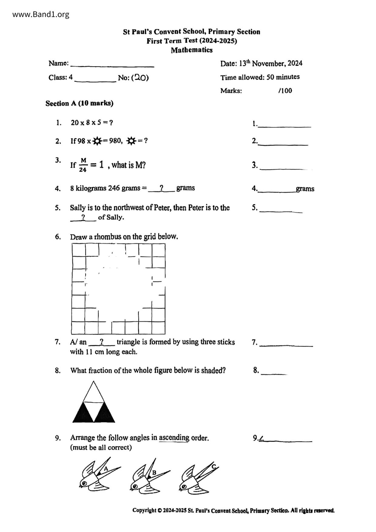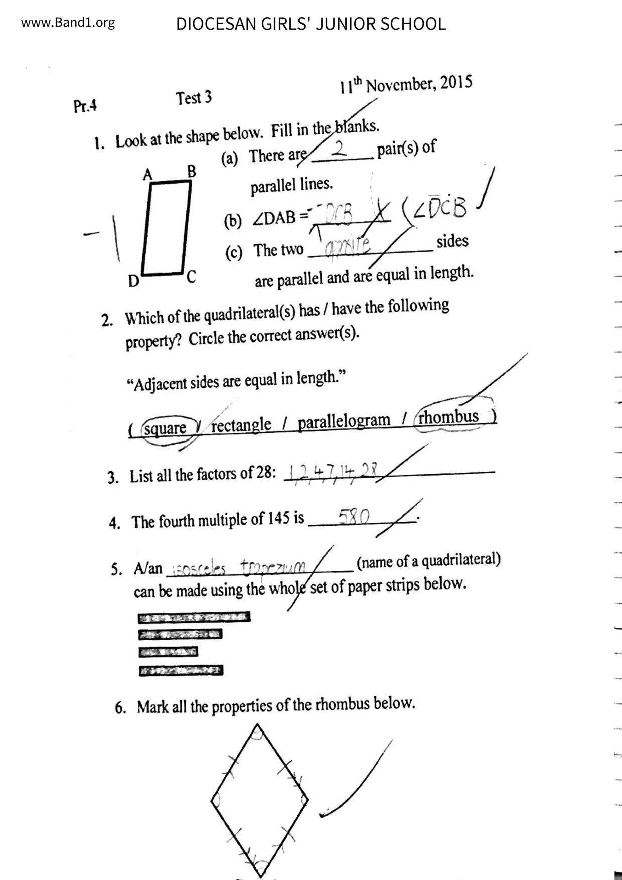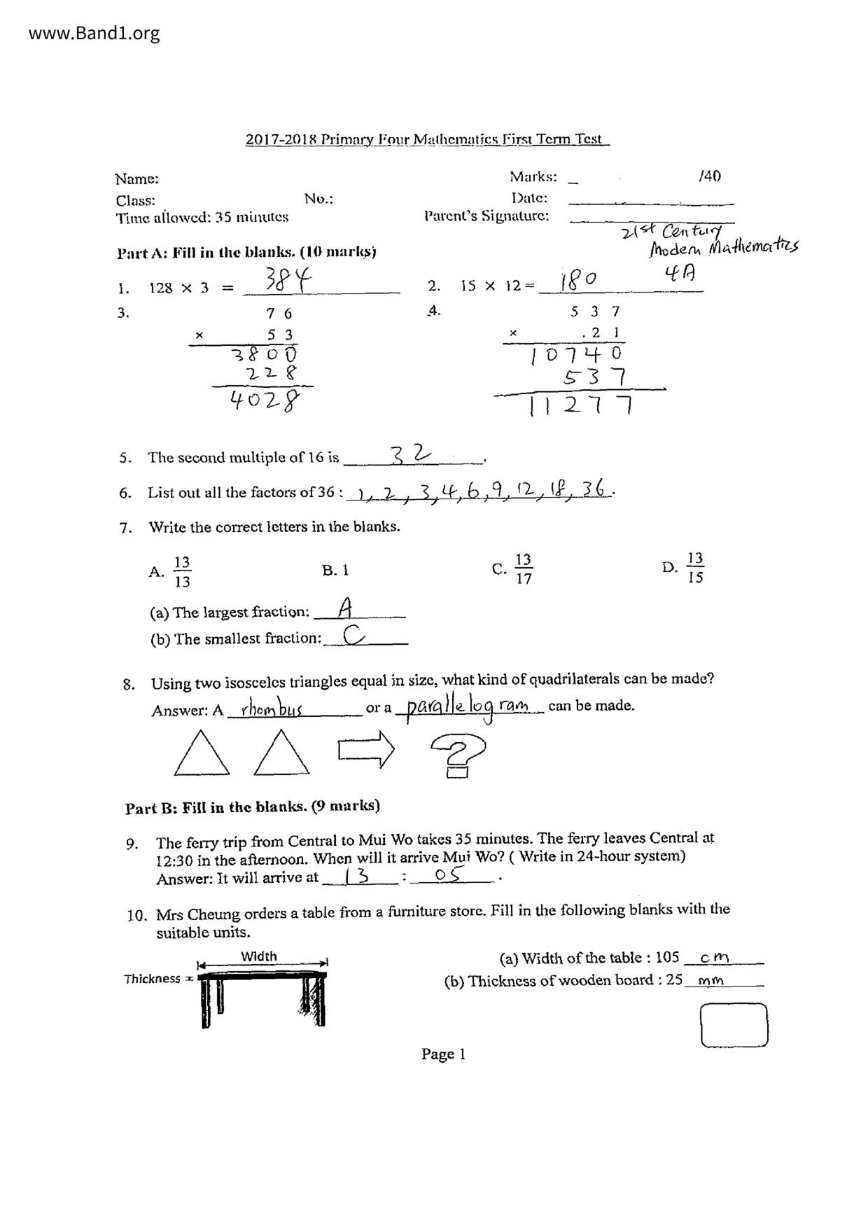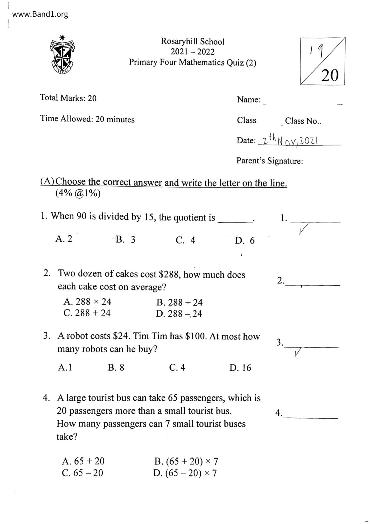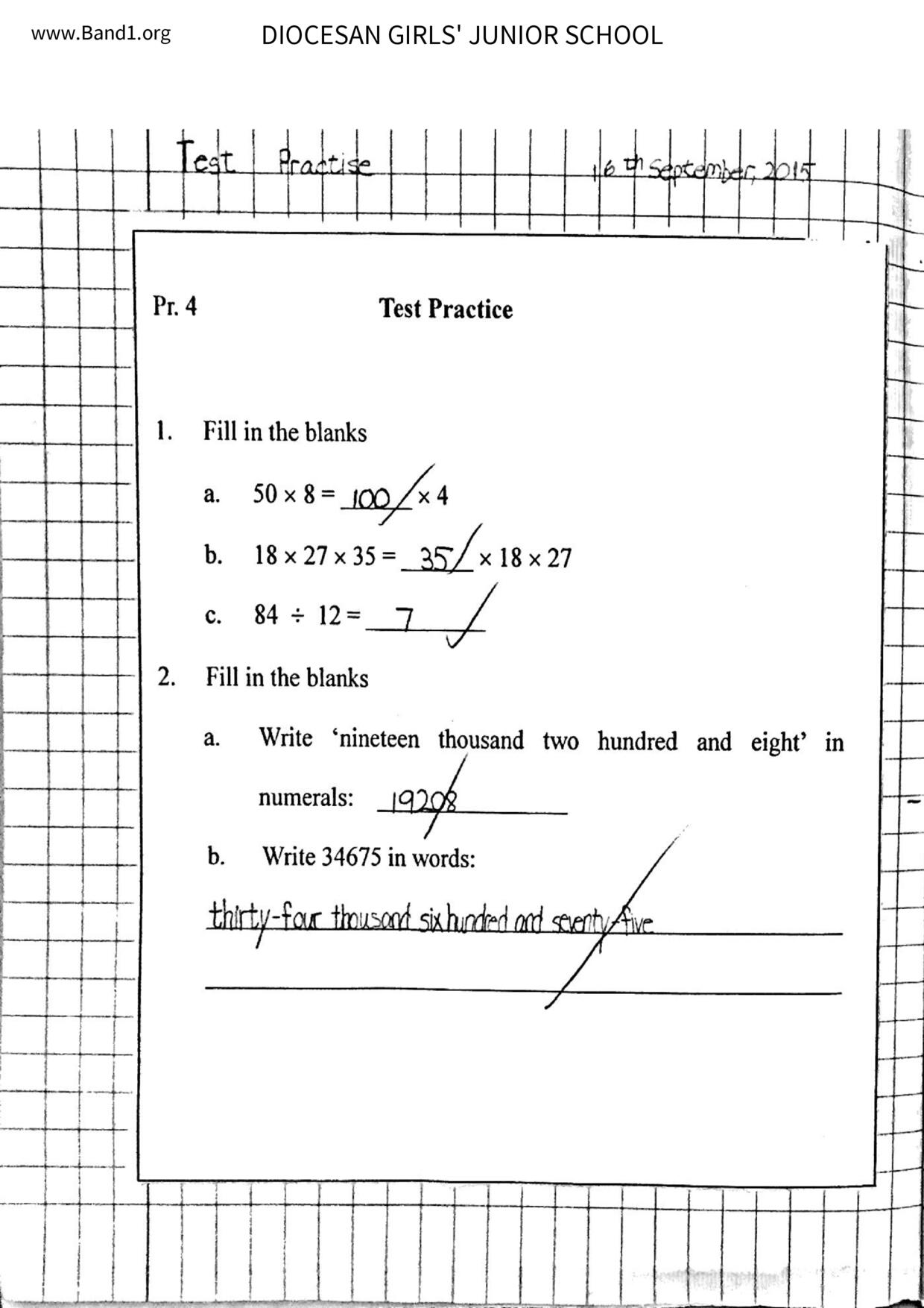 小四 數學 中華基督教會灣仔堂基道小學(九龍城)