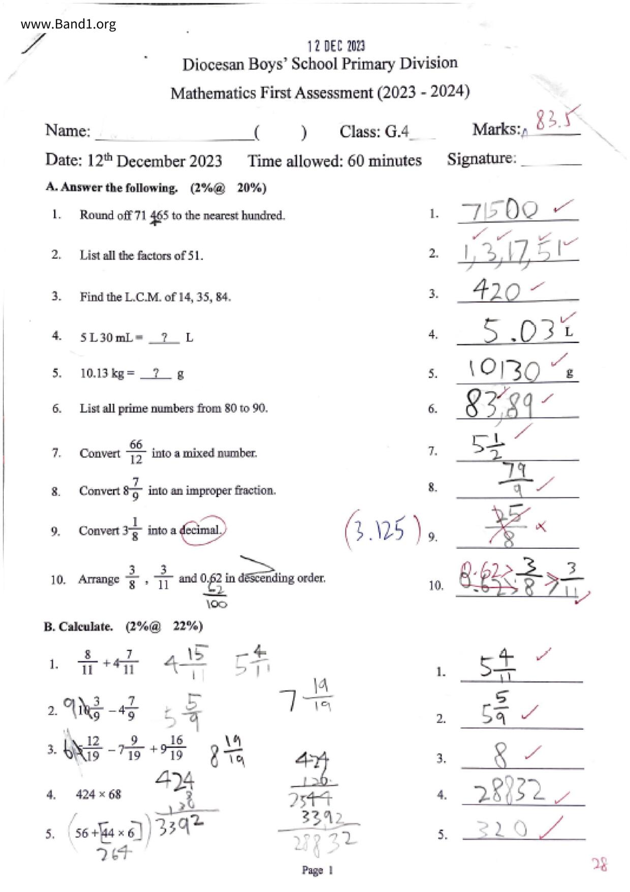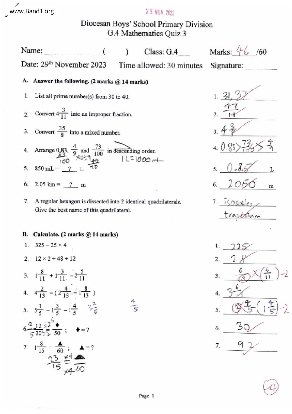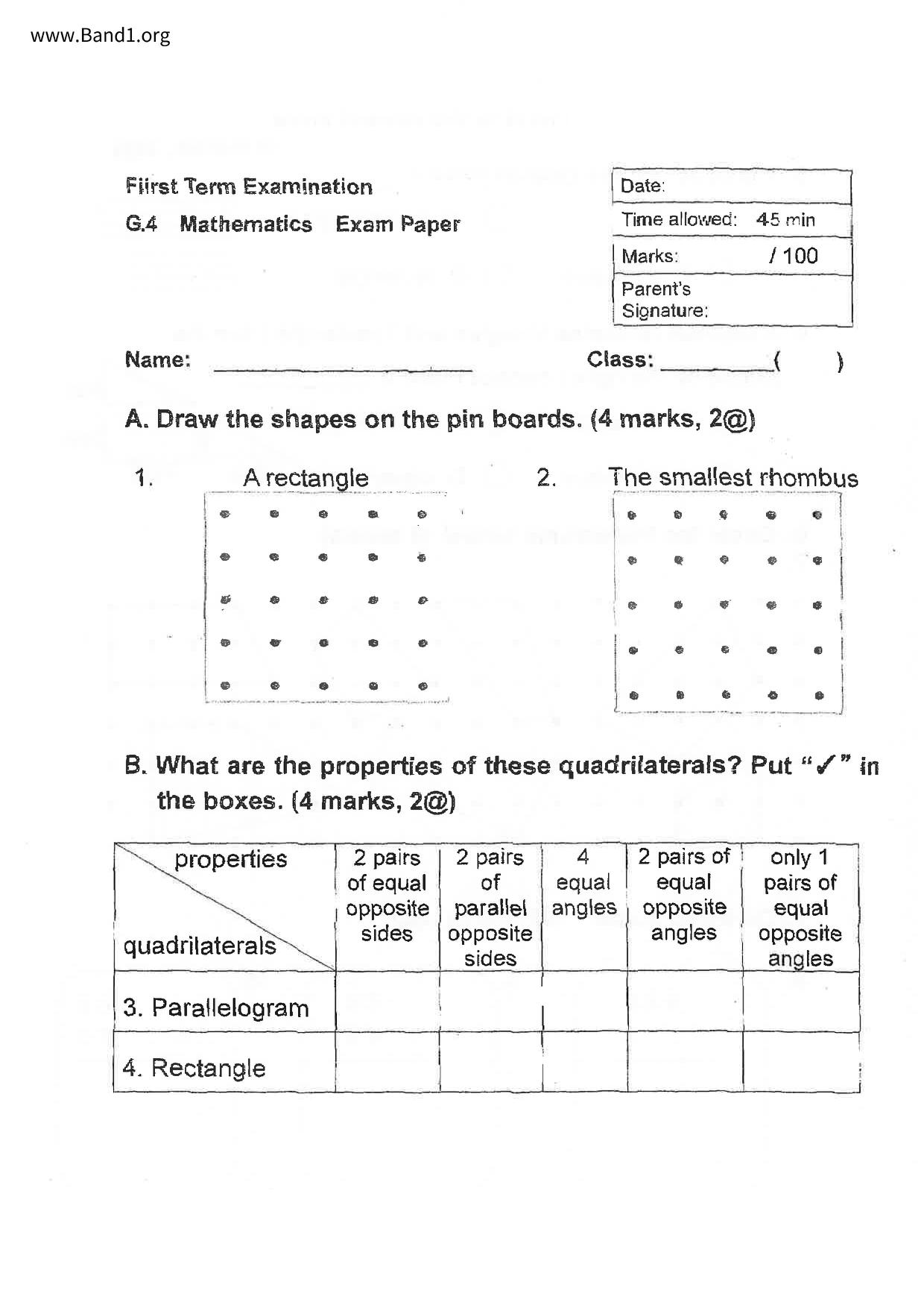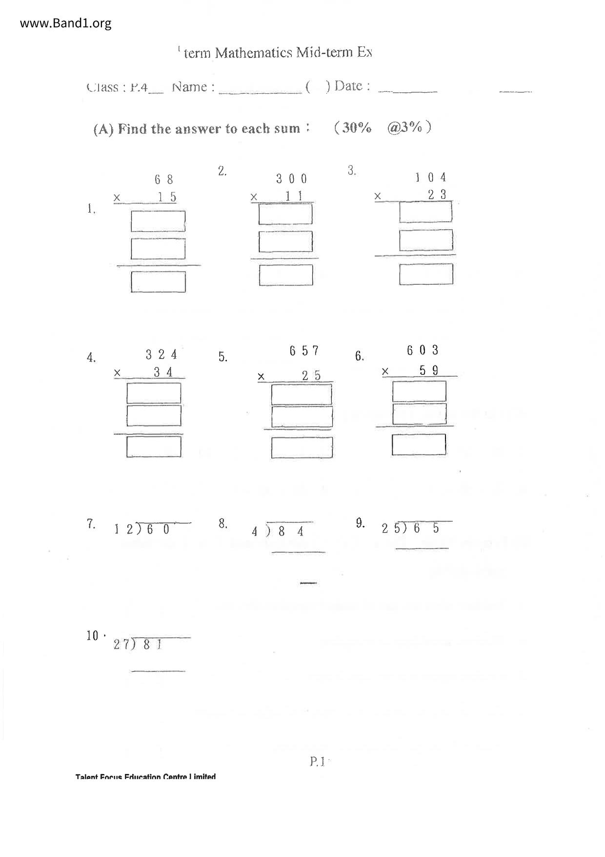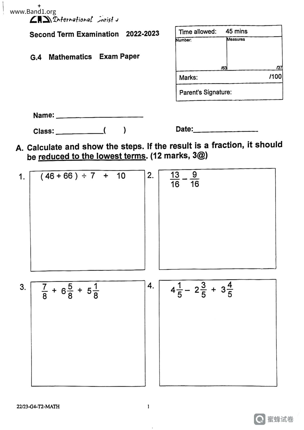 小四 數學 中華基督教會灣仔堂基道小學(九龍城)