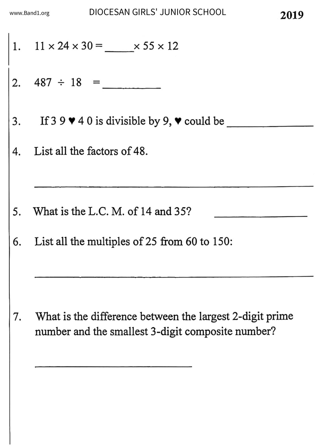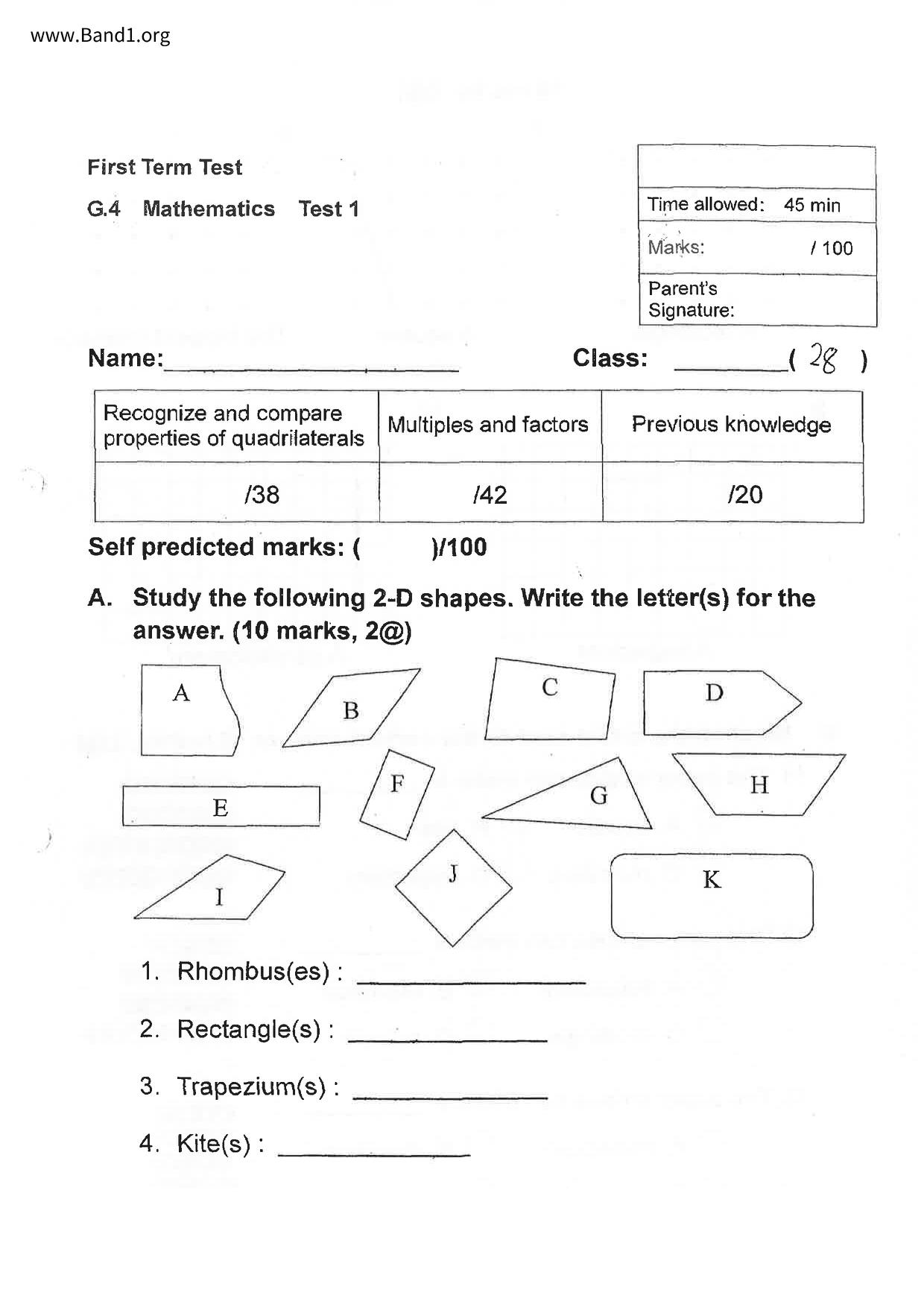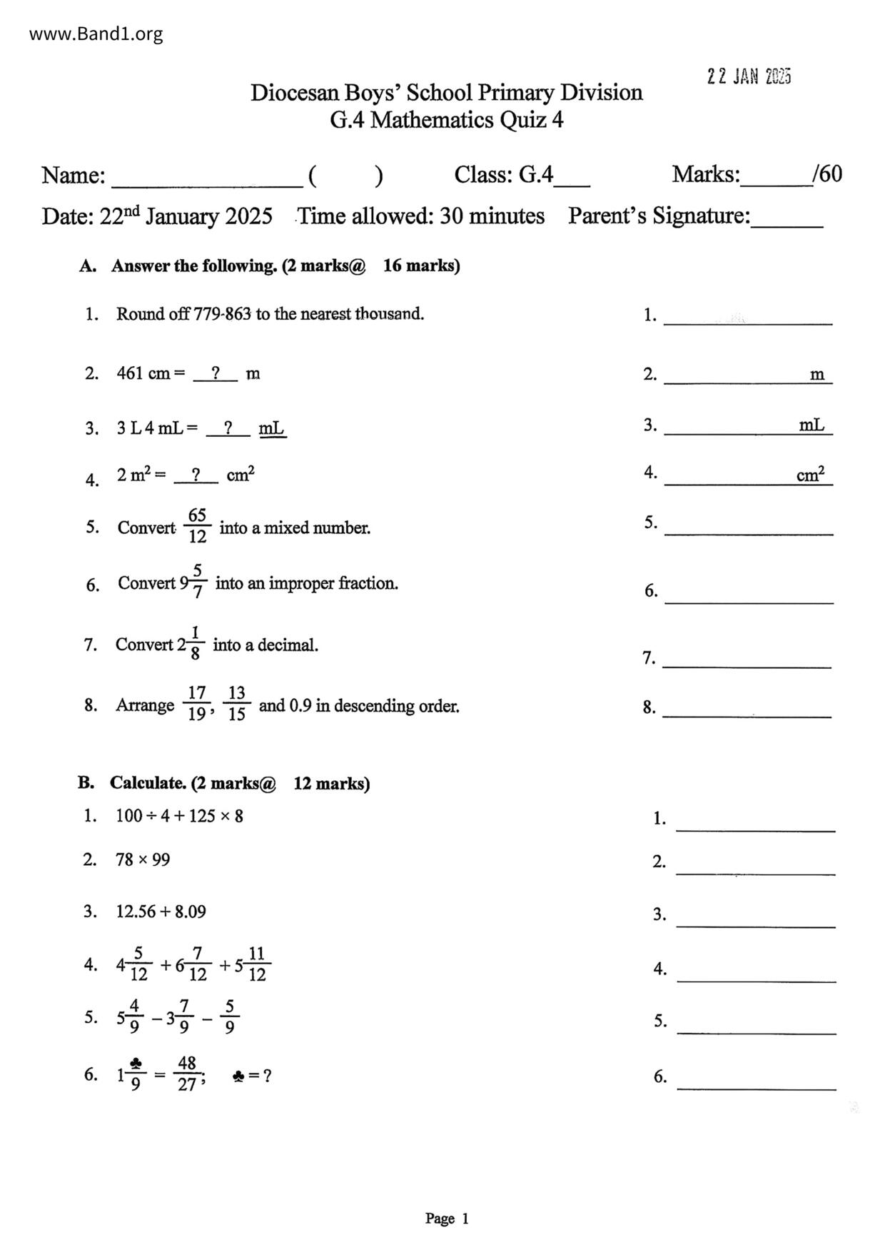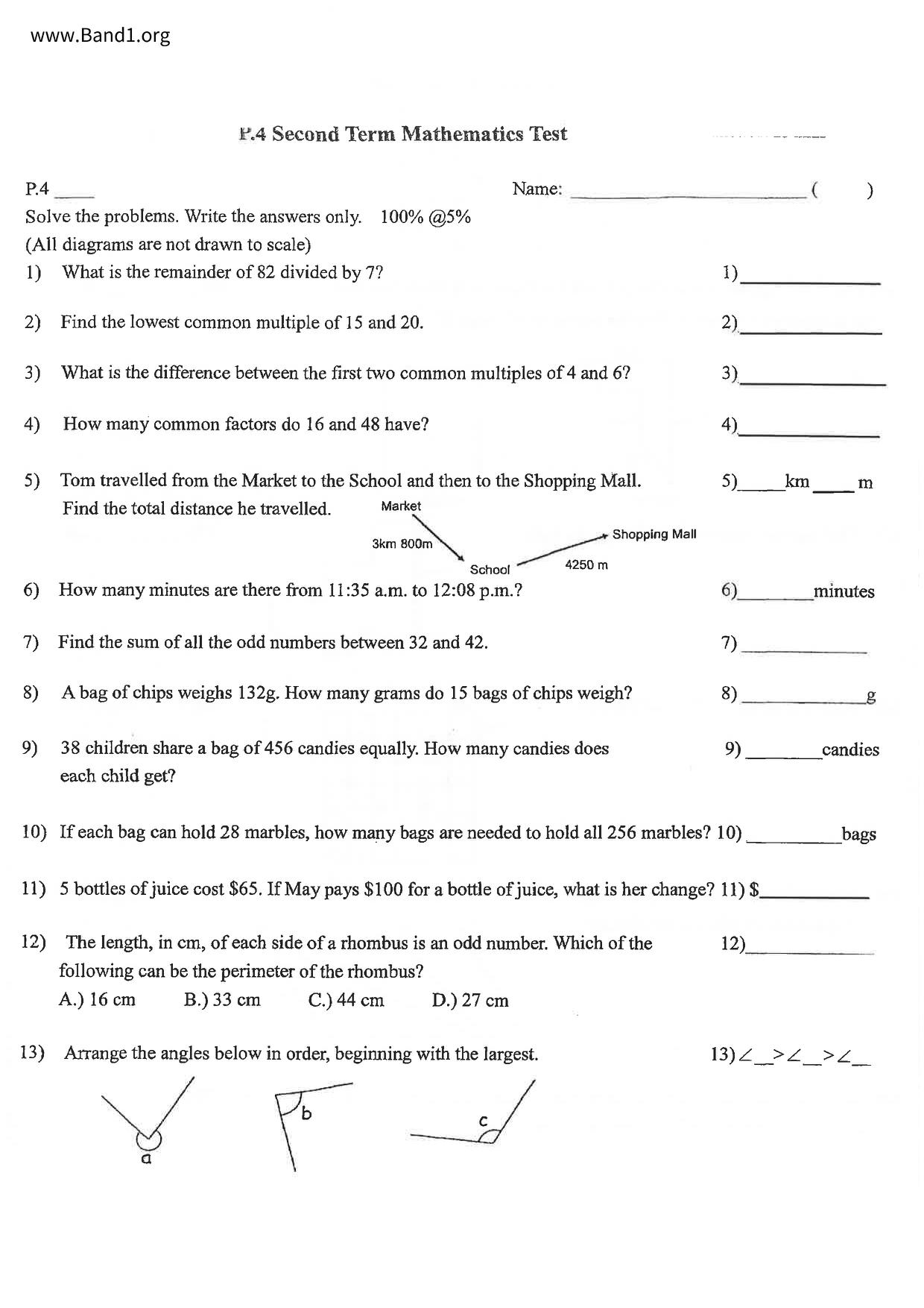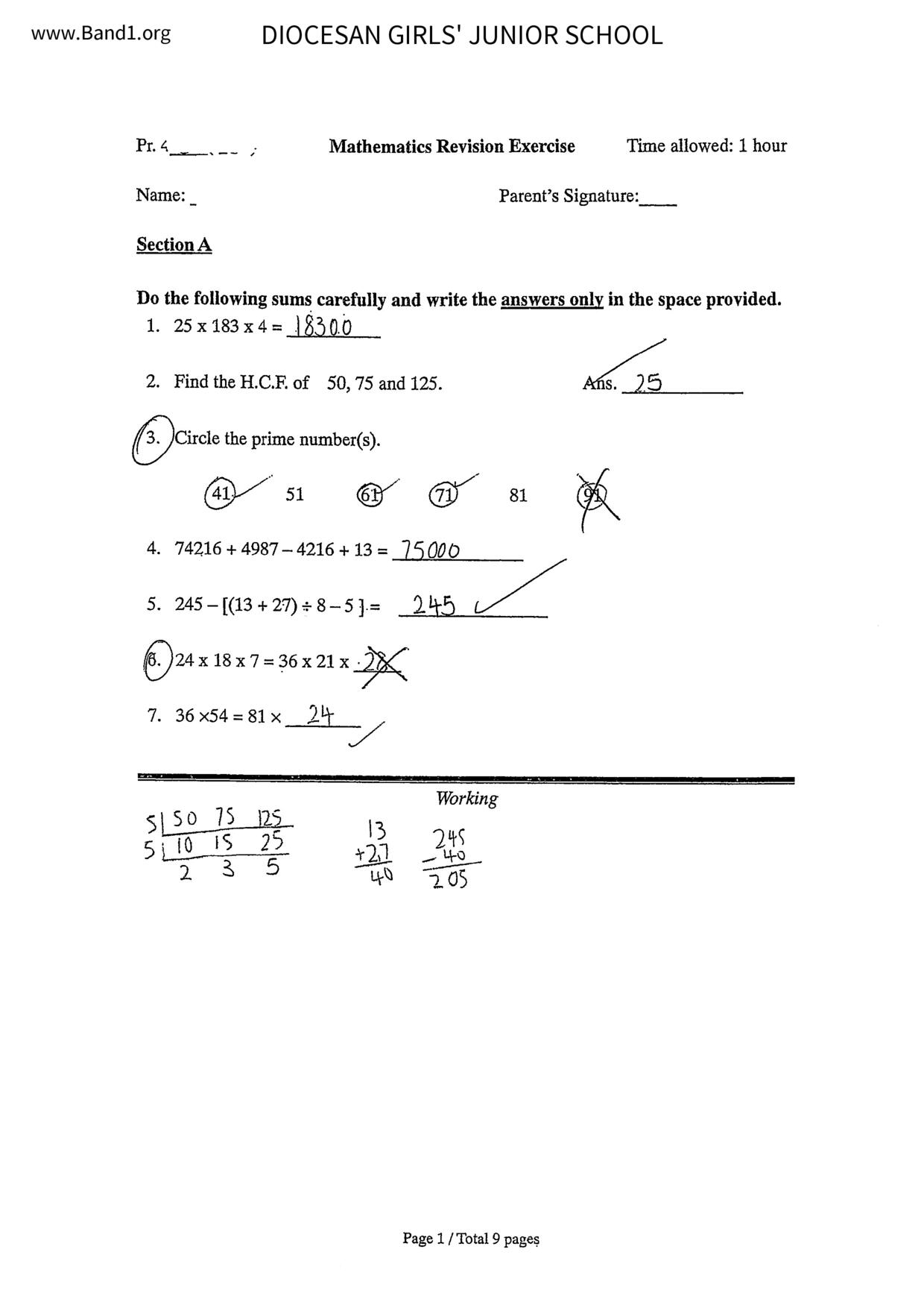 小四 數學 中華基督教會灣仔堂基道小學(九龍城)