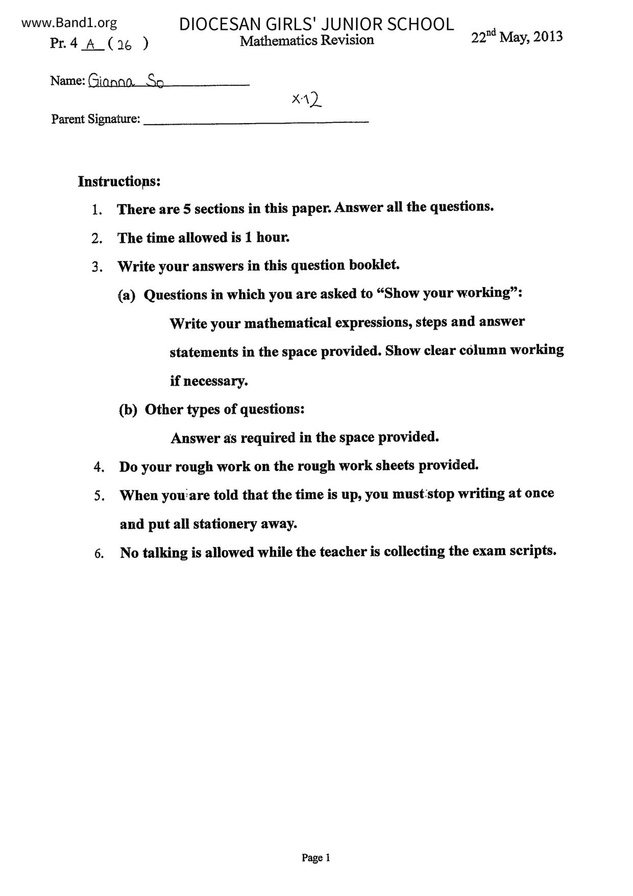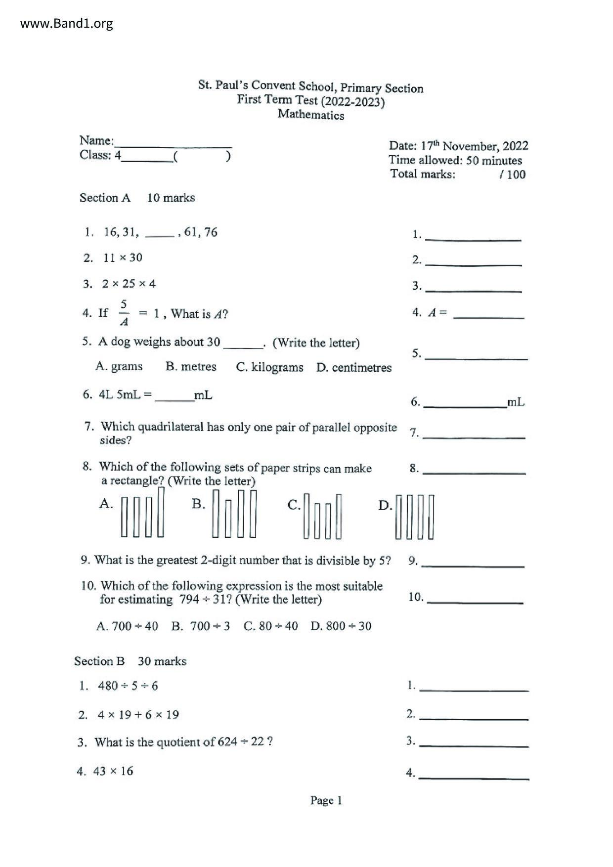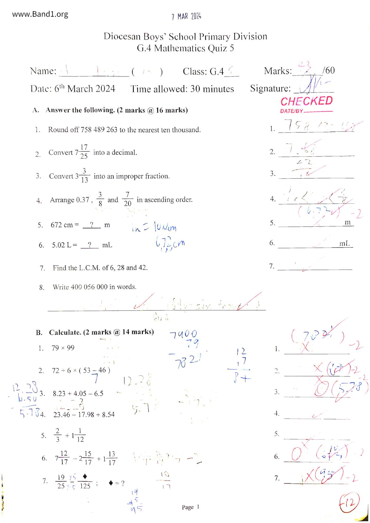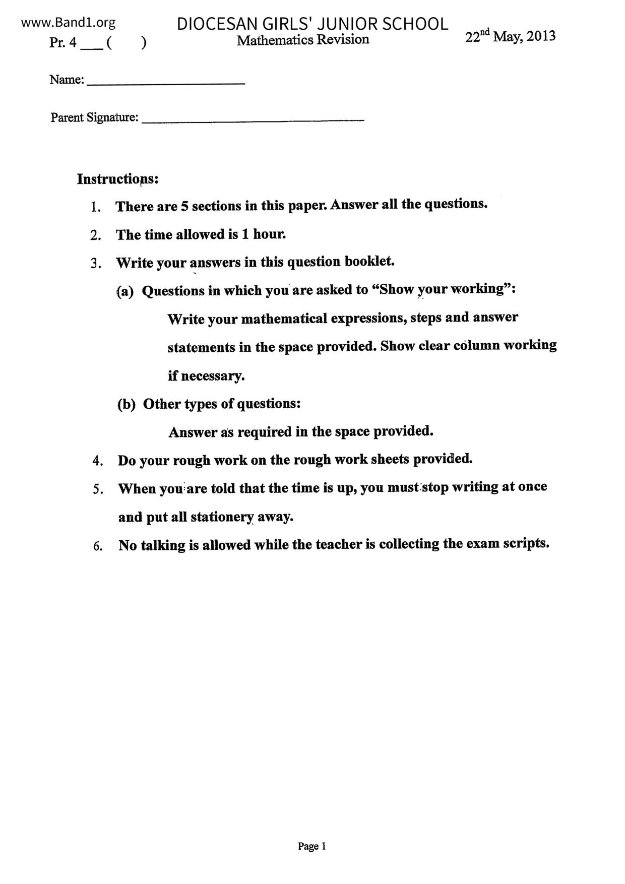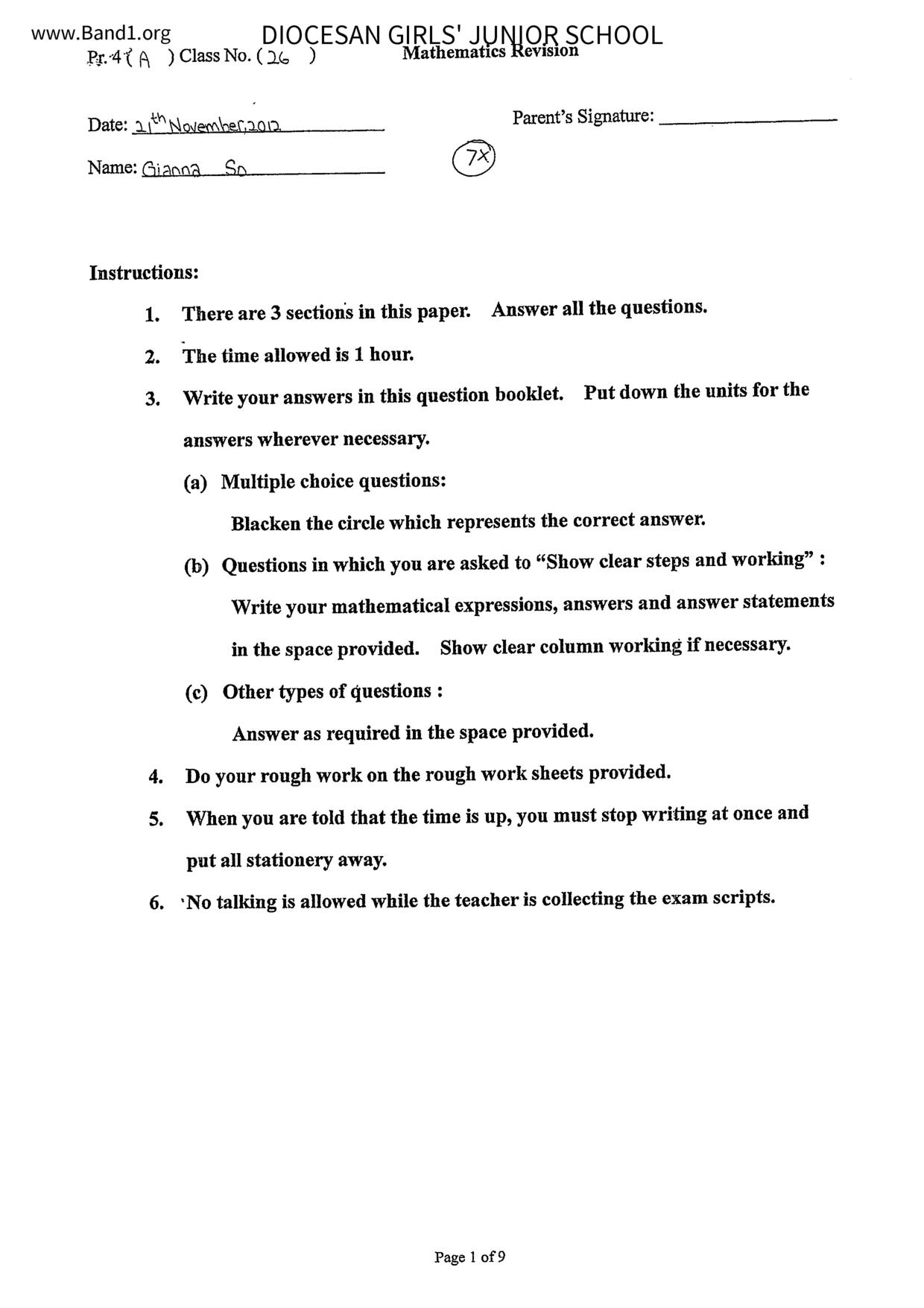 小四 數學 中華基督教會灣仔堂基道小學(九龍城)