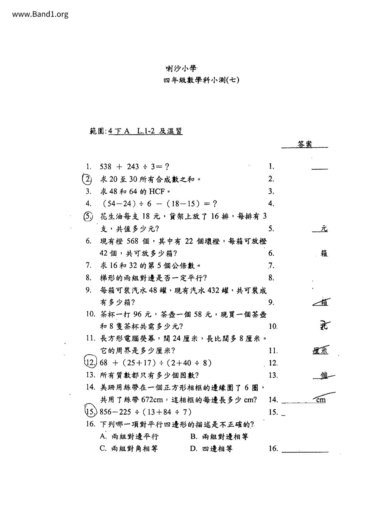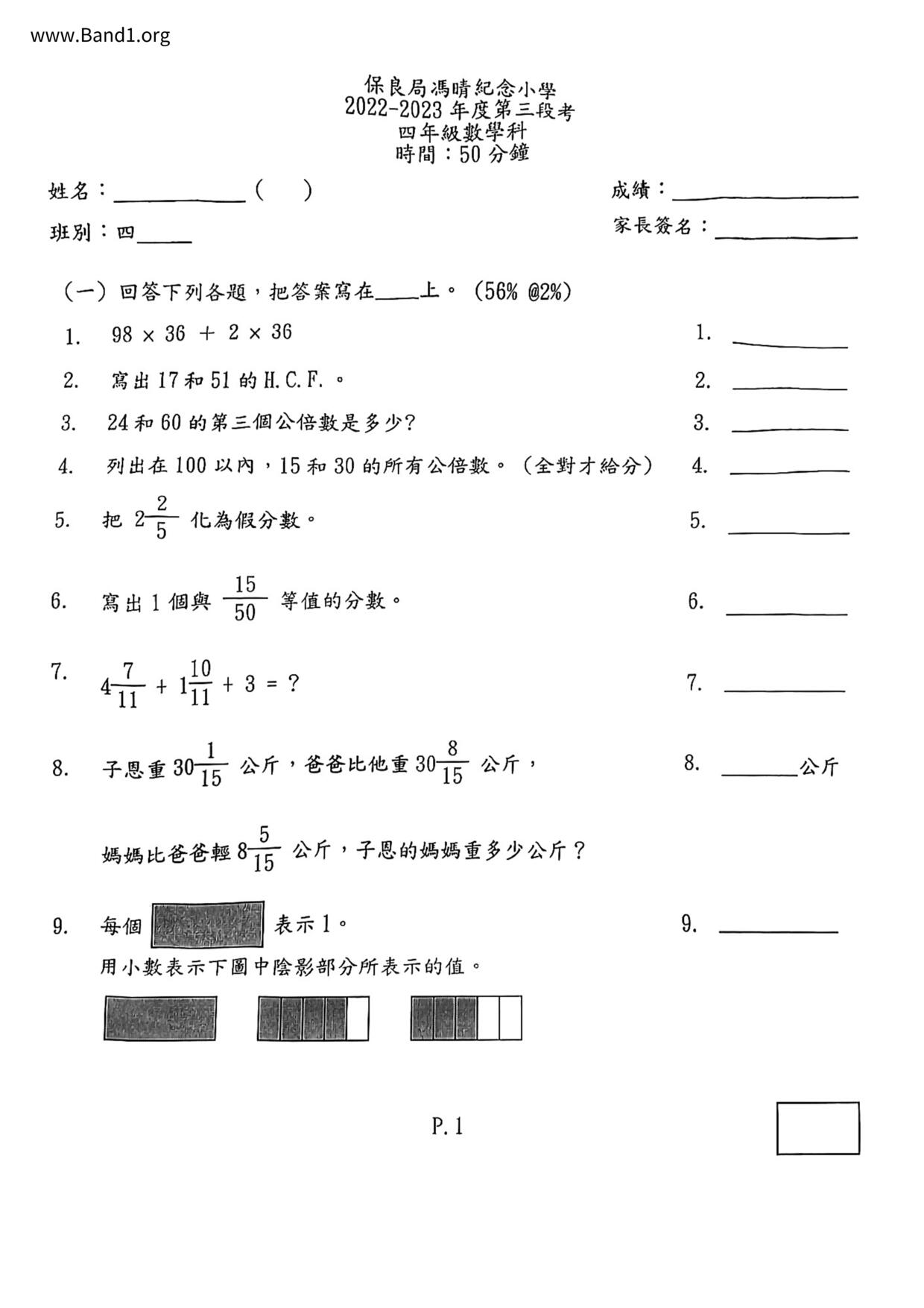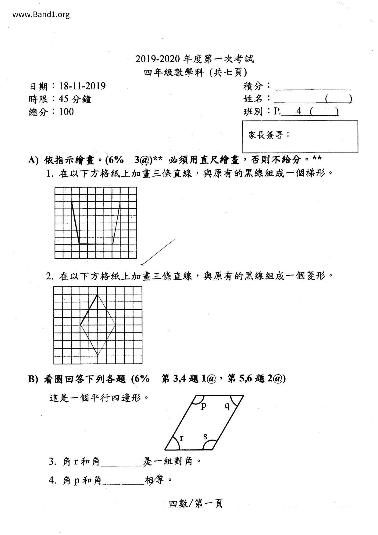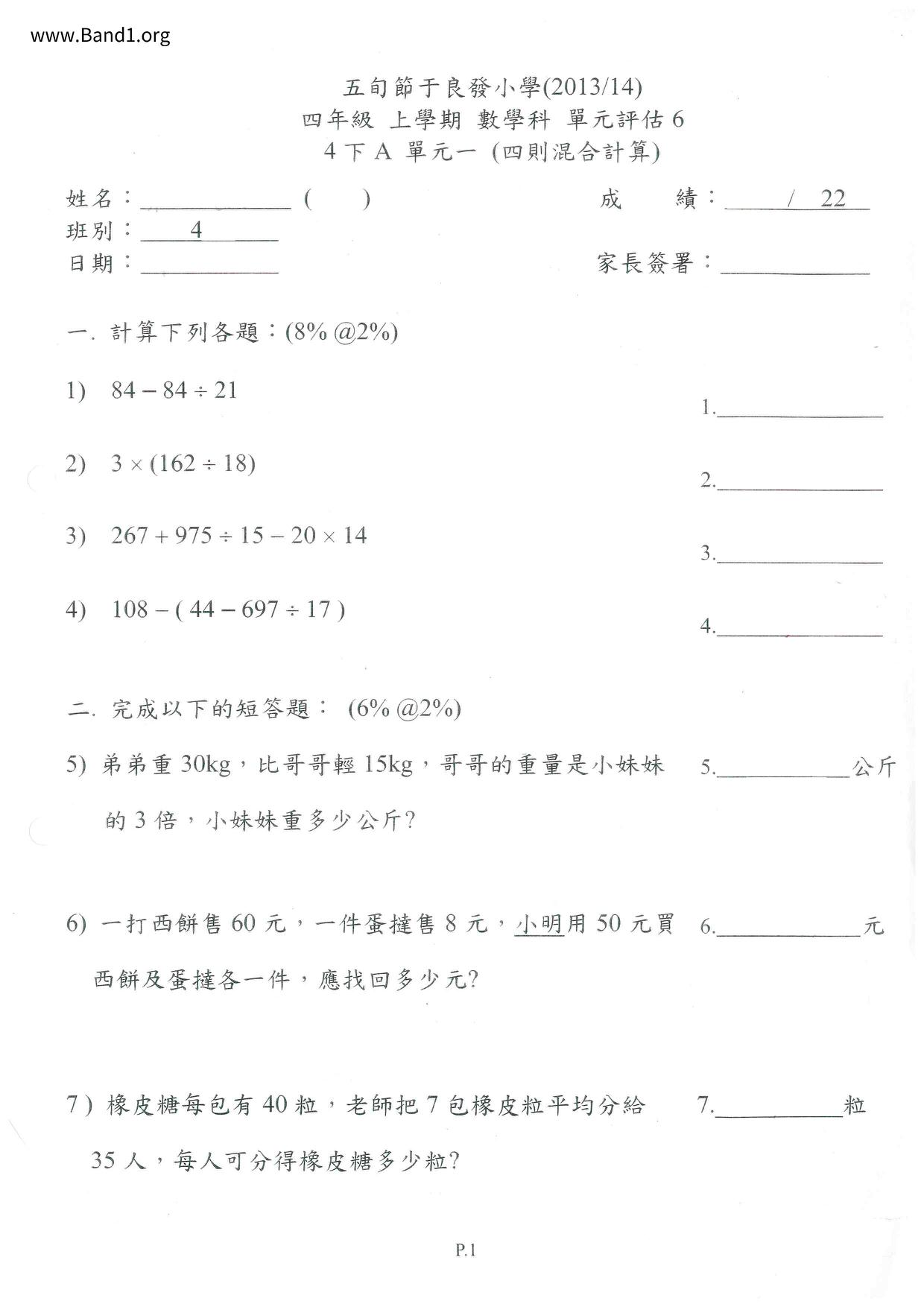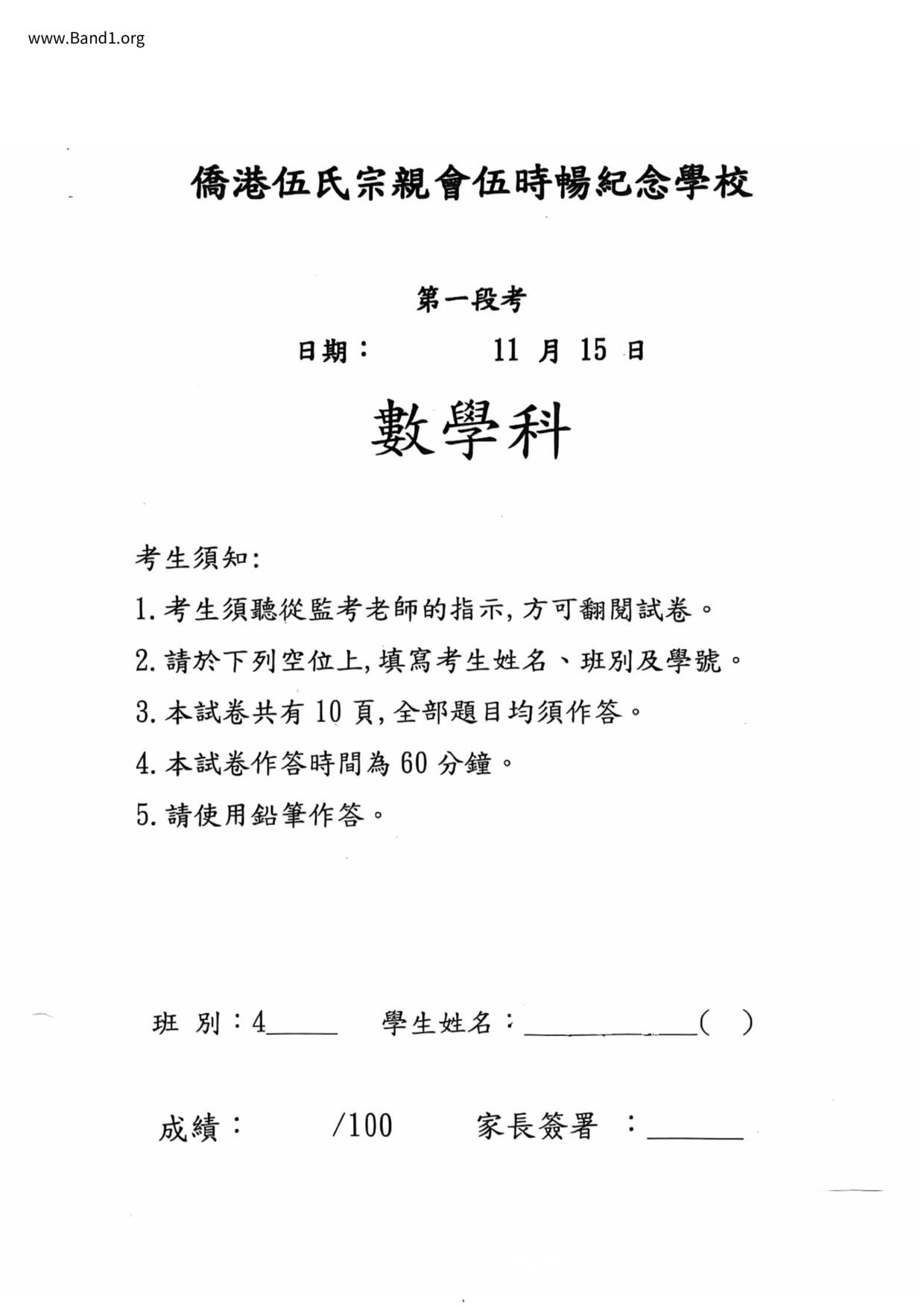小四 數學 僑港伍氏宗親會伍時暢紀念學校