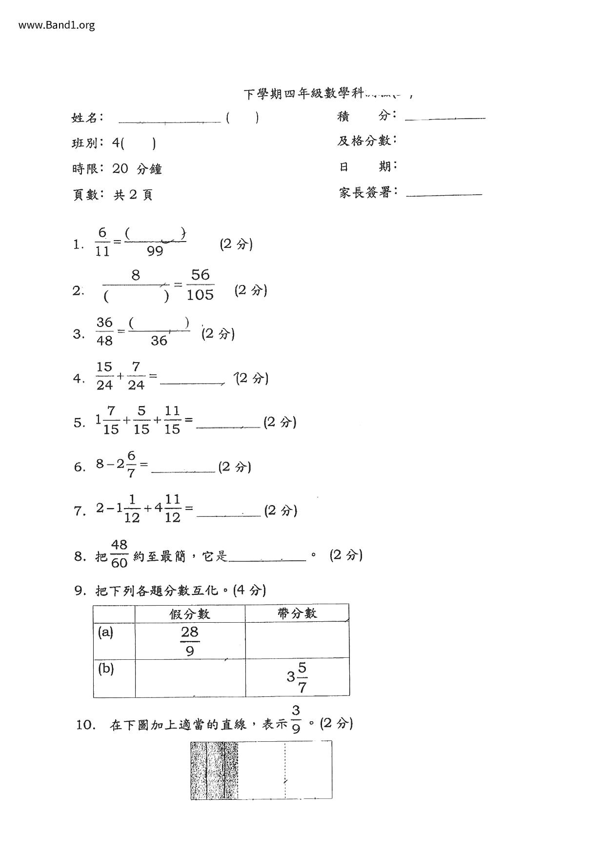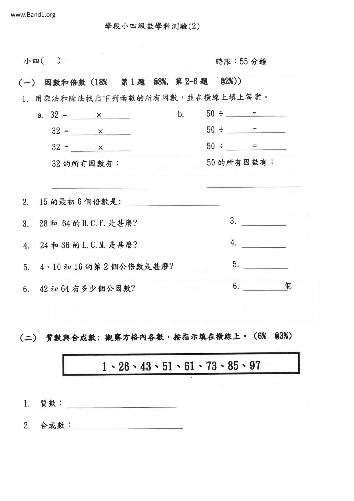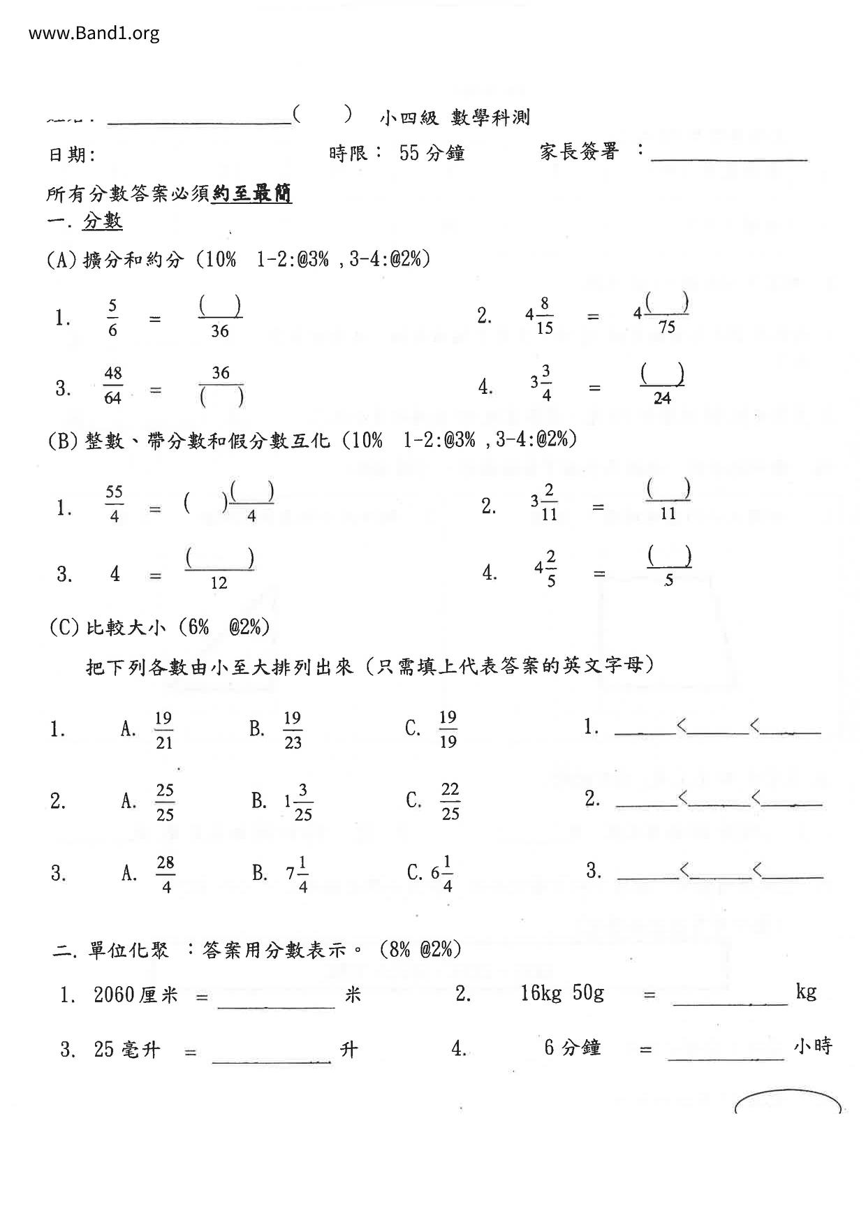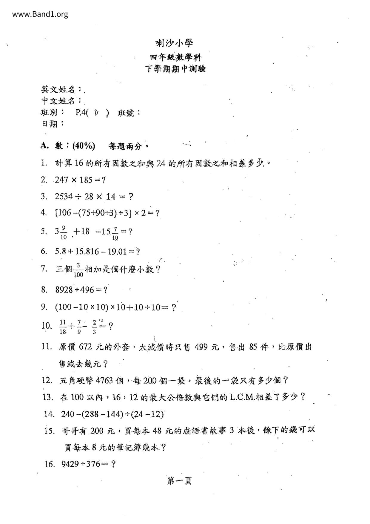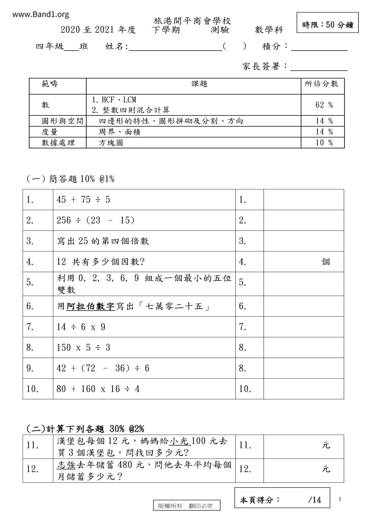 小四 數學 僑港伍氏宗親會伍時暢紀念學校