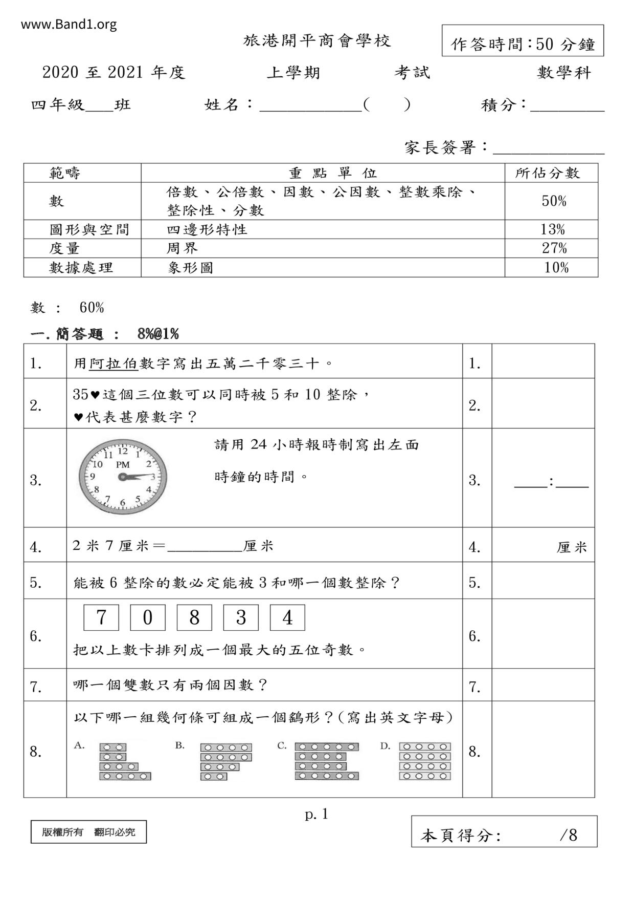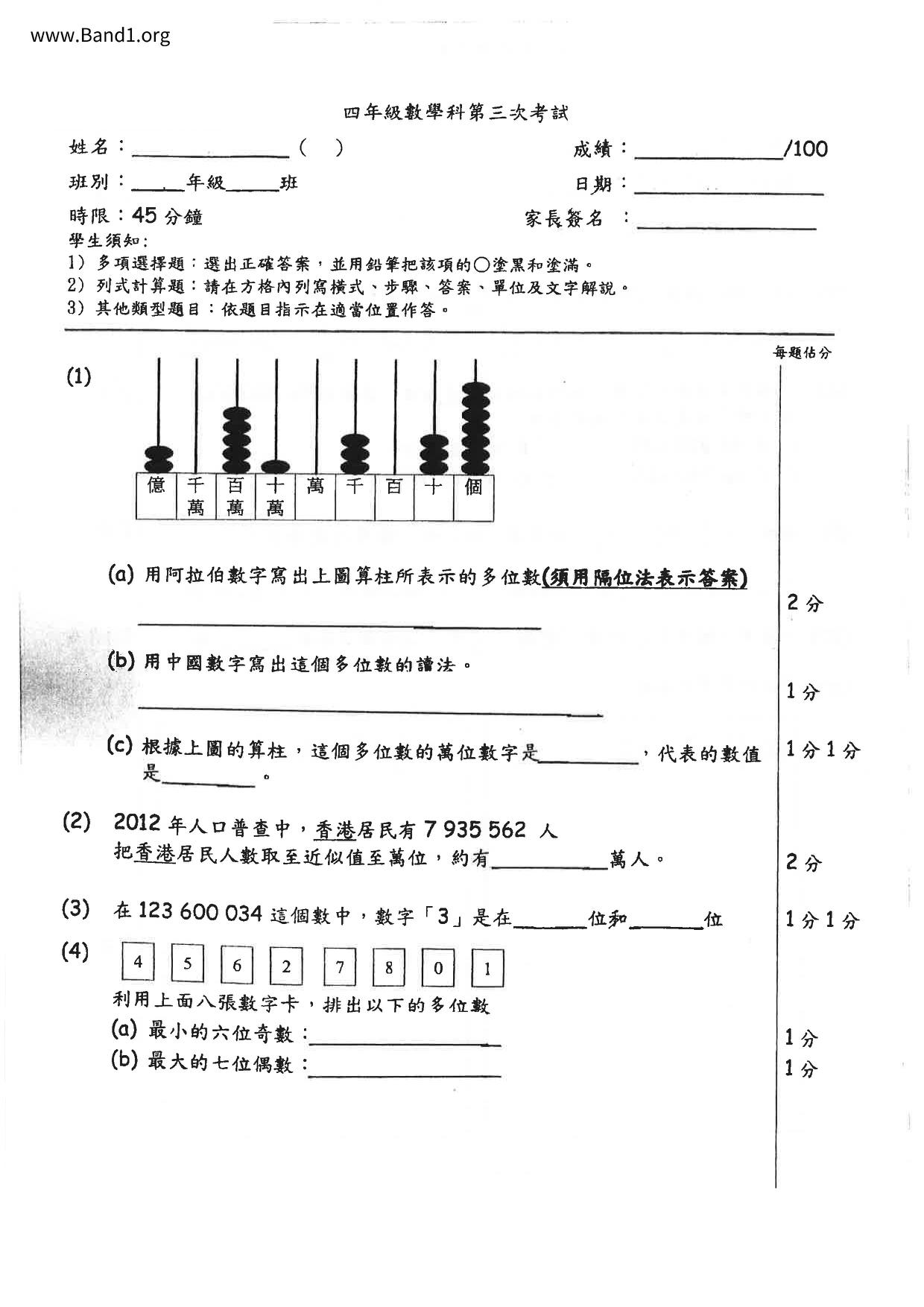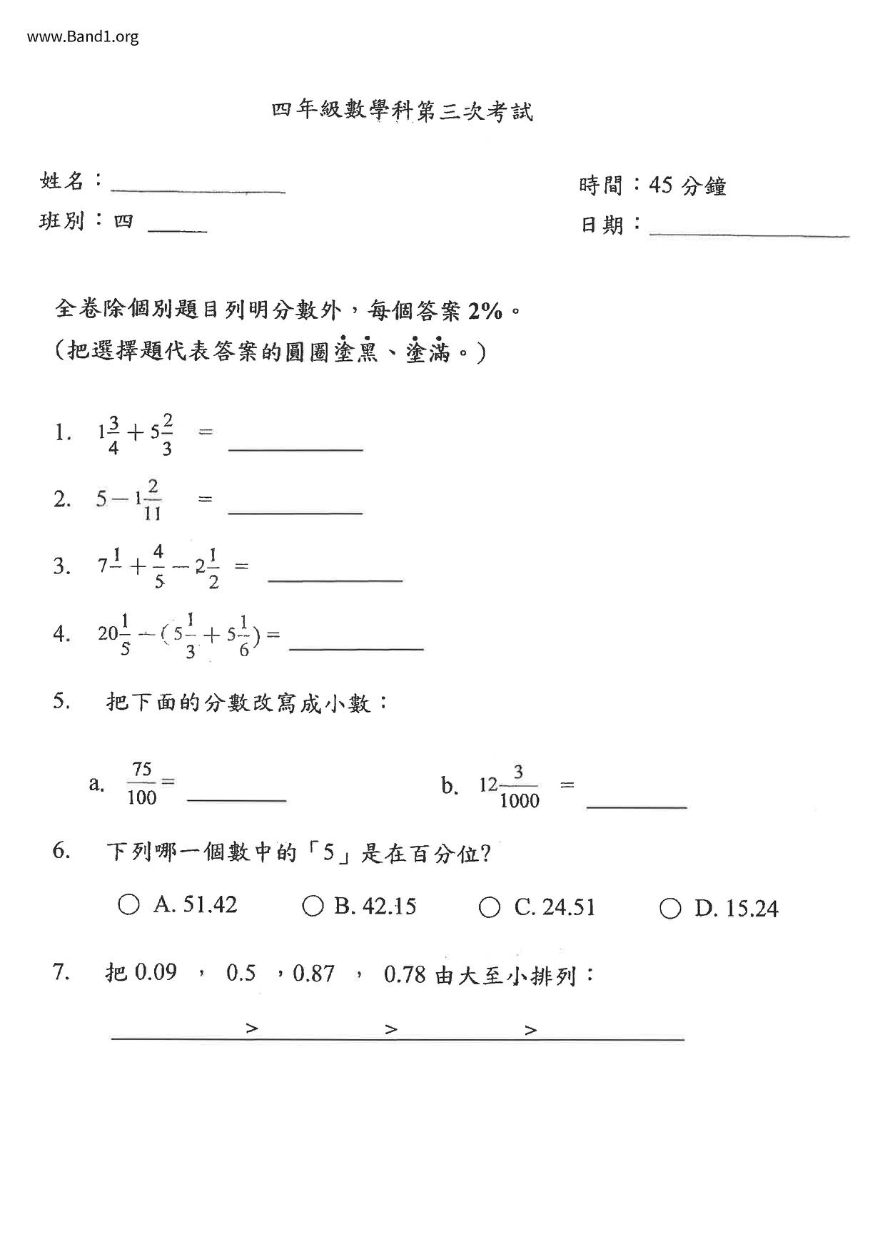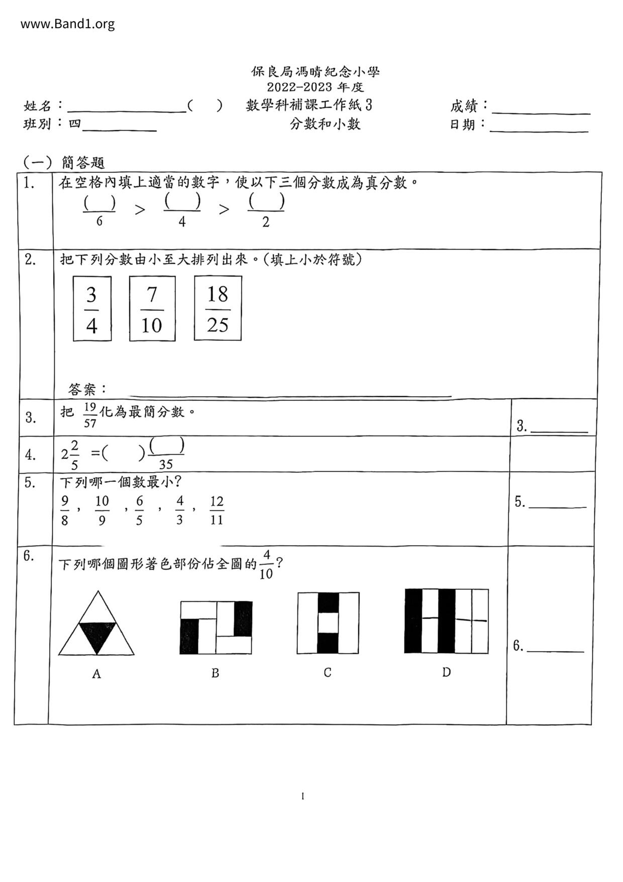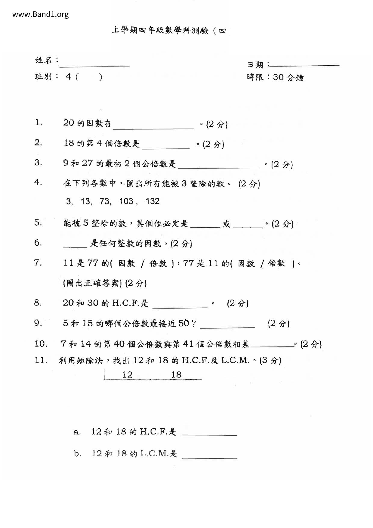 小四 數學 僑港伍氏宗親會伍時暢紀念學校