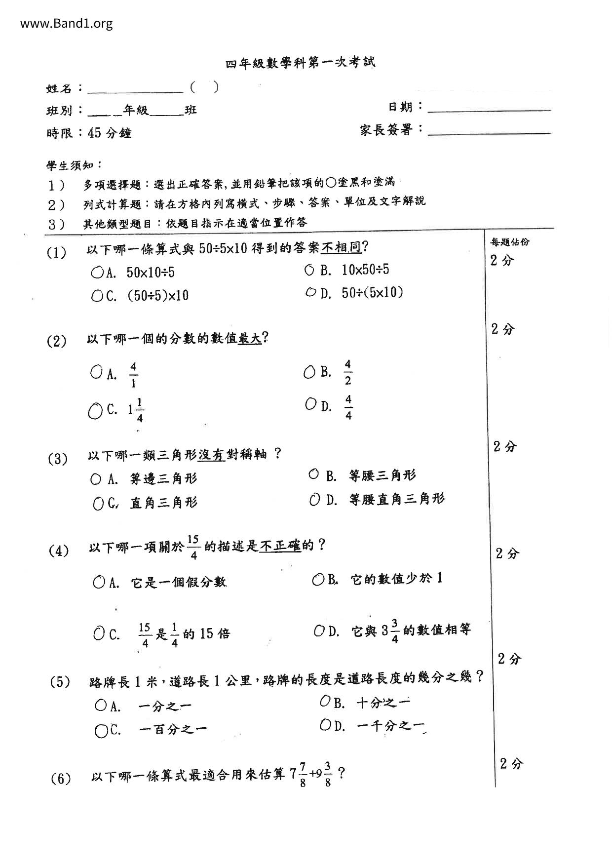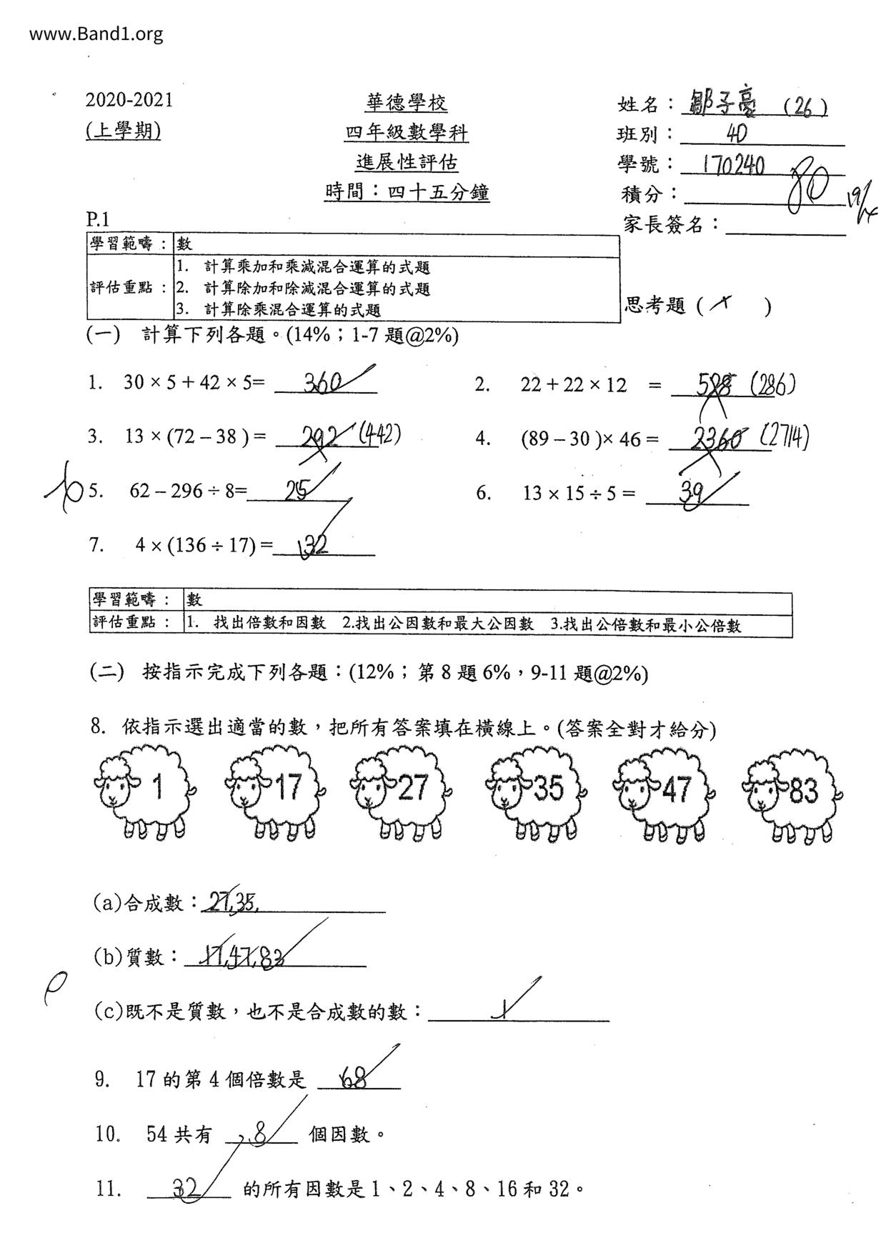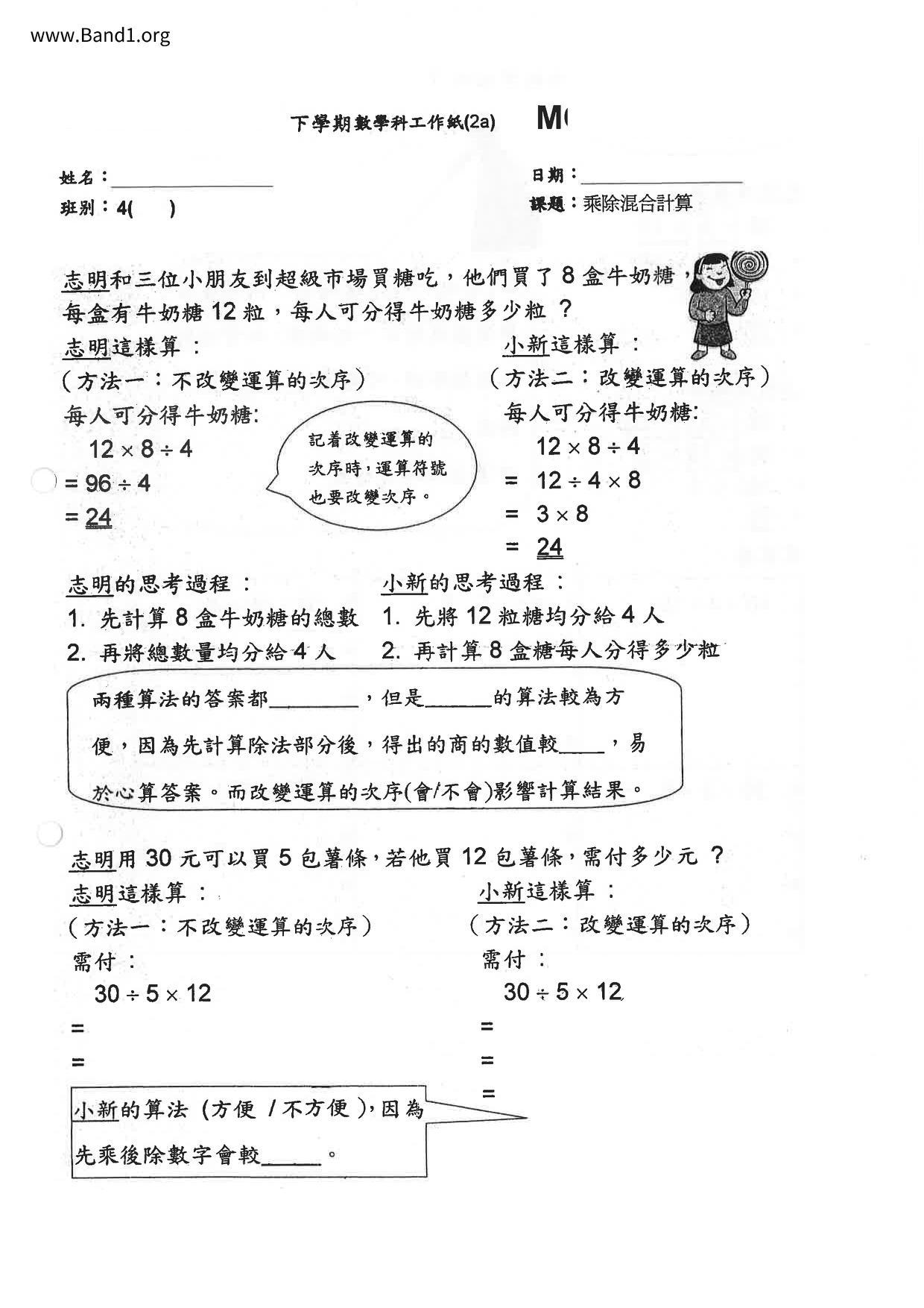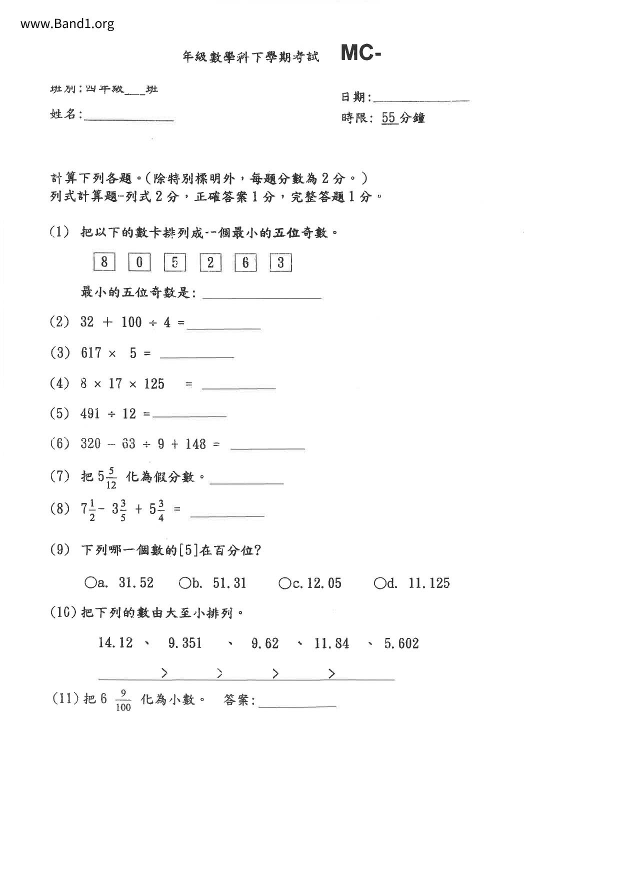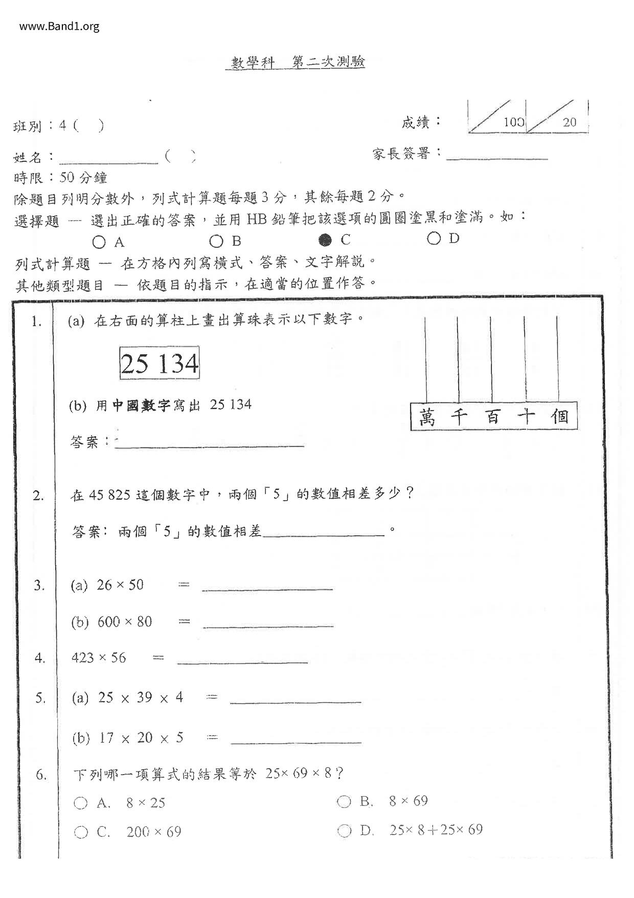 小四 數學 僑港伍氏宗親會伍時暢紀念學校