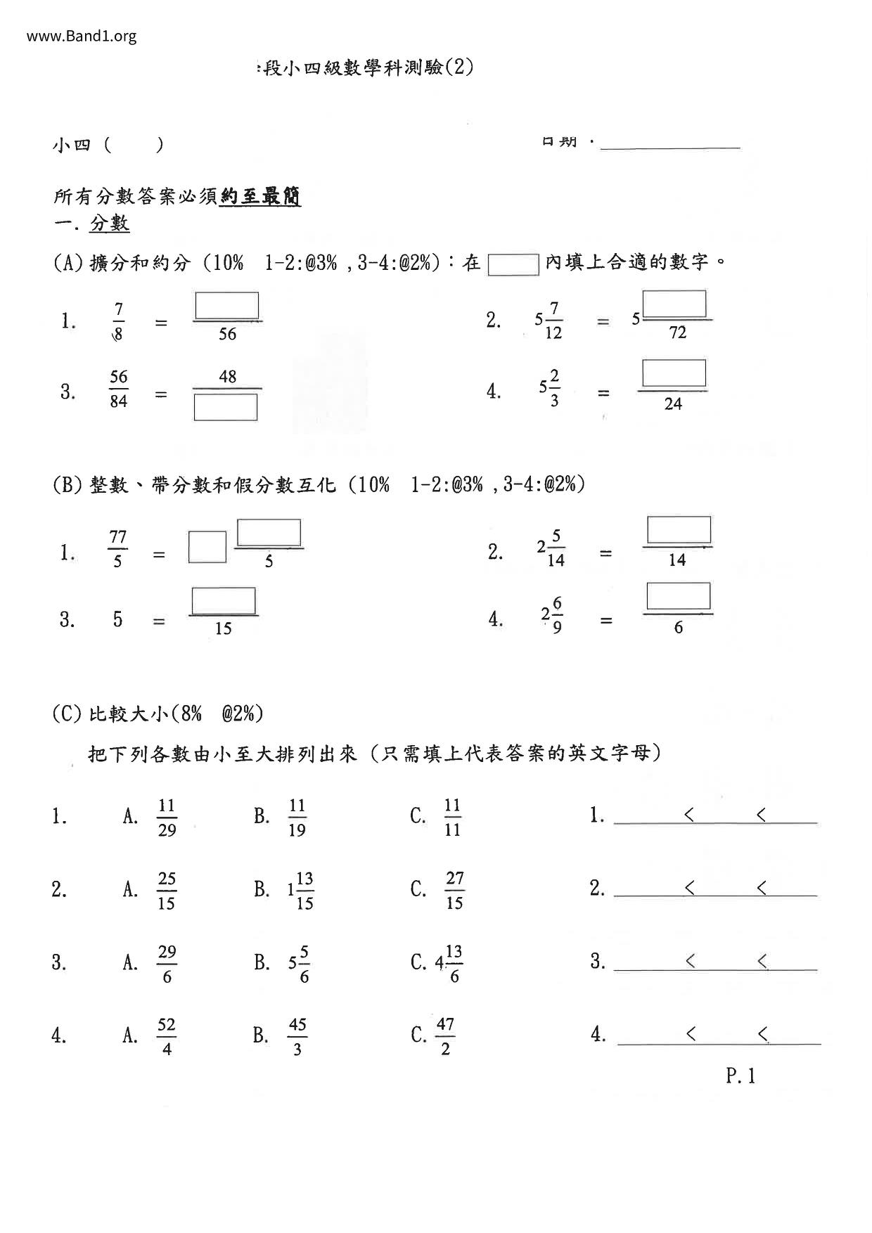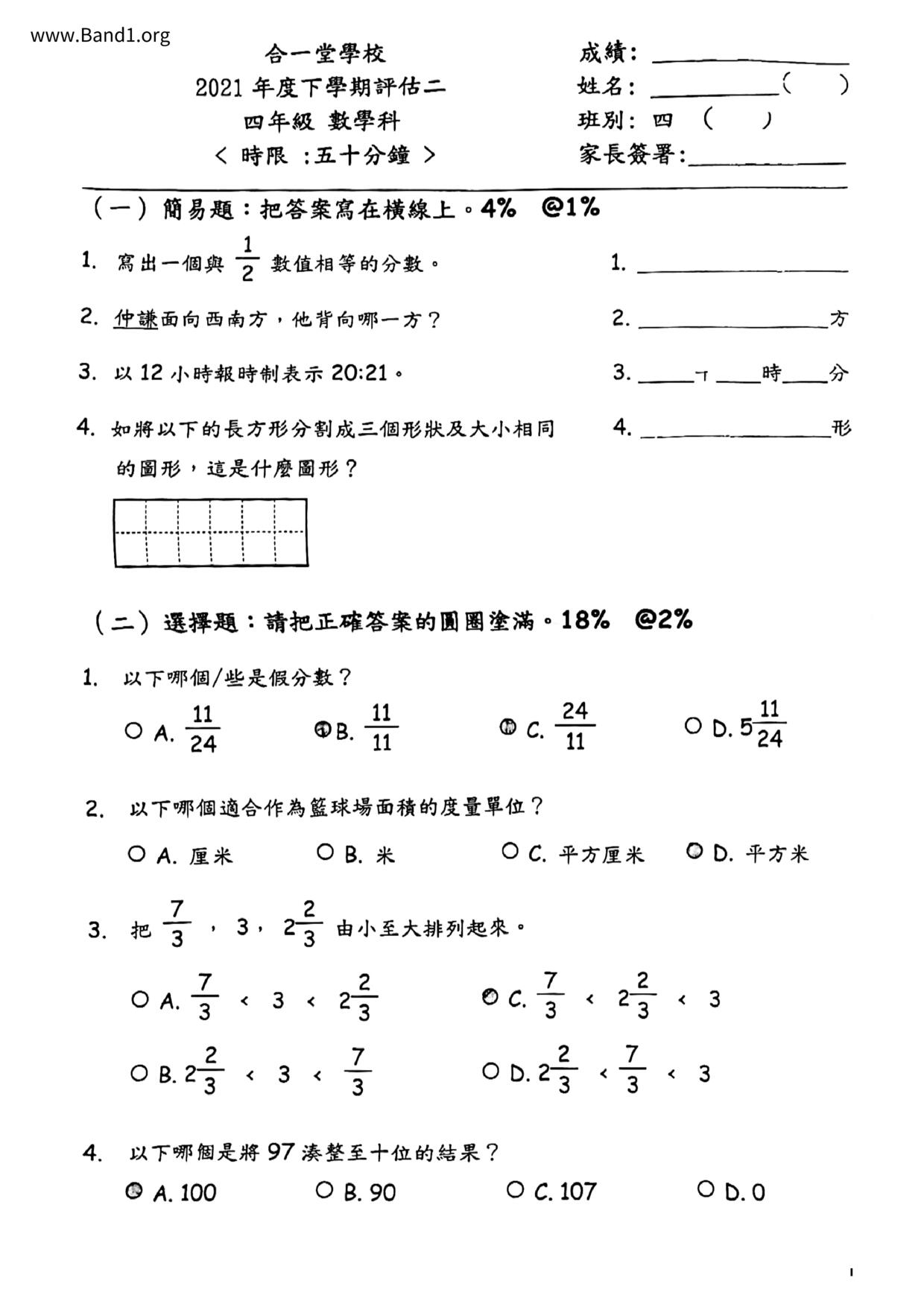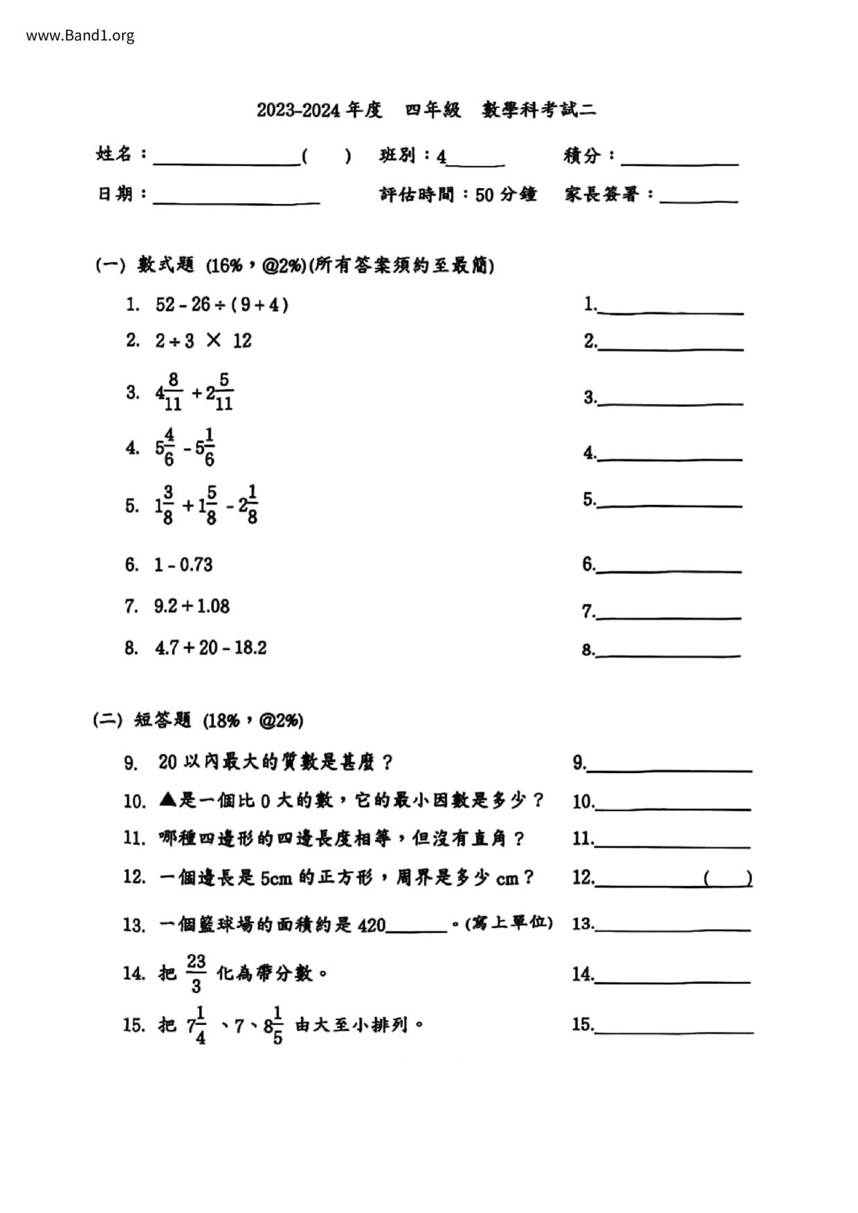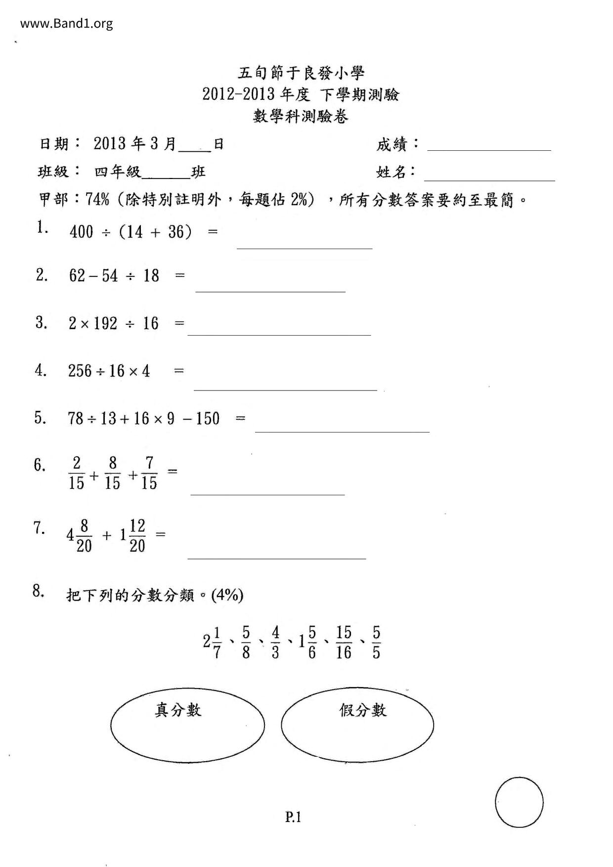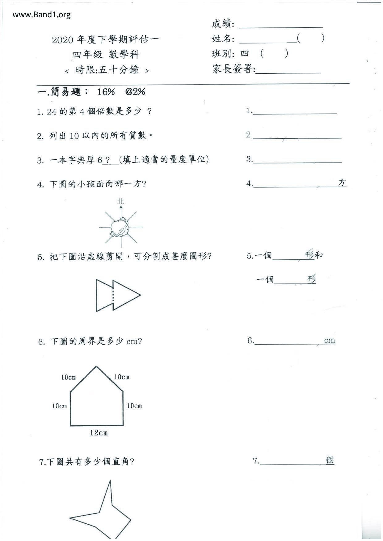 小四 數學 僑港伍氏宗親會伍時暢紀念學校