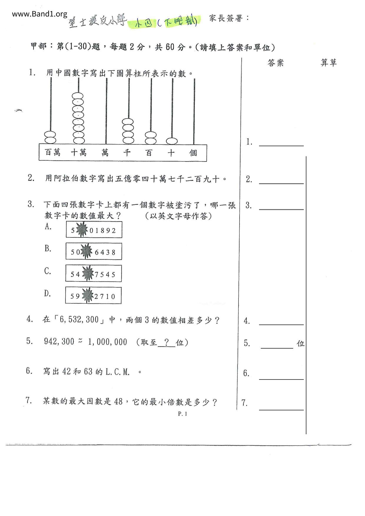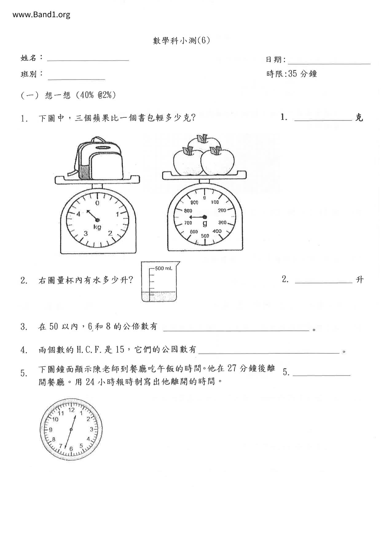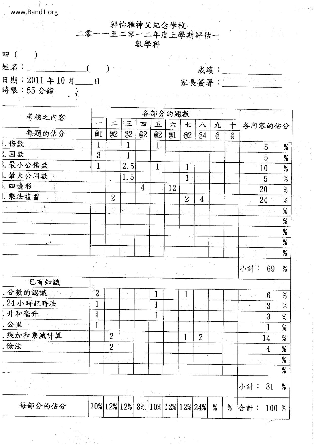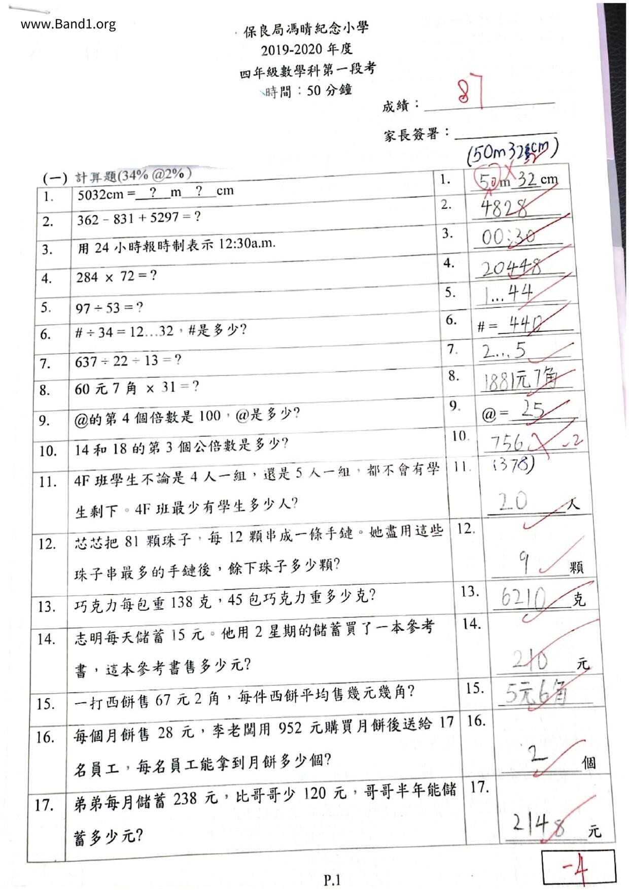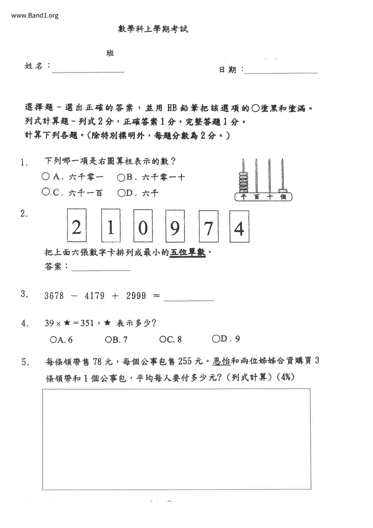 小四 數學 僑港伍氏宗親會伍時暢紀念學校