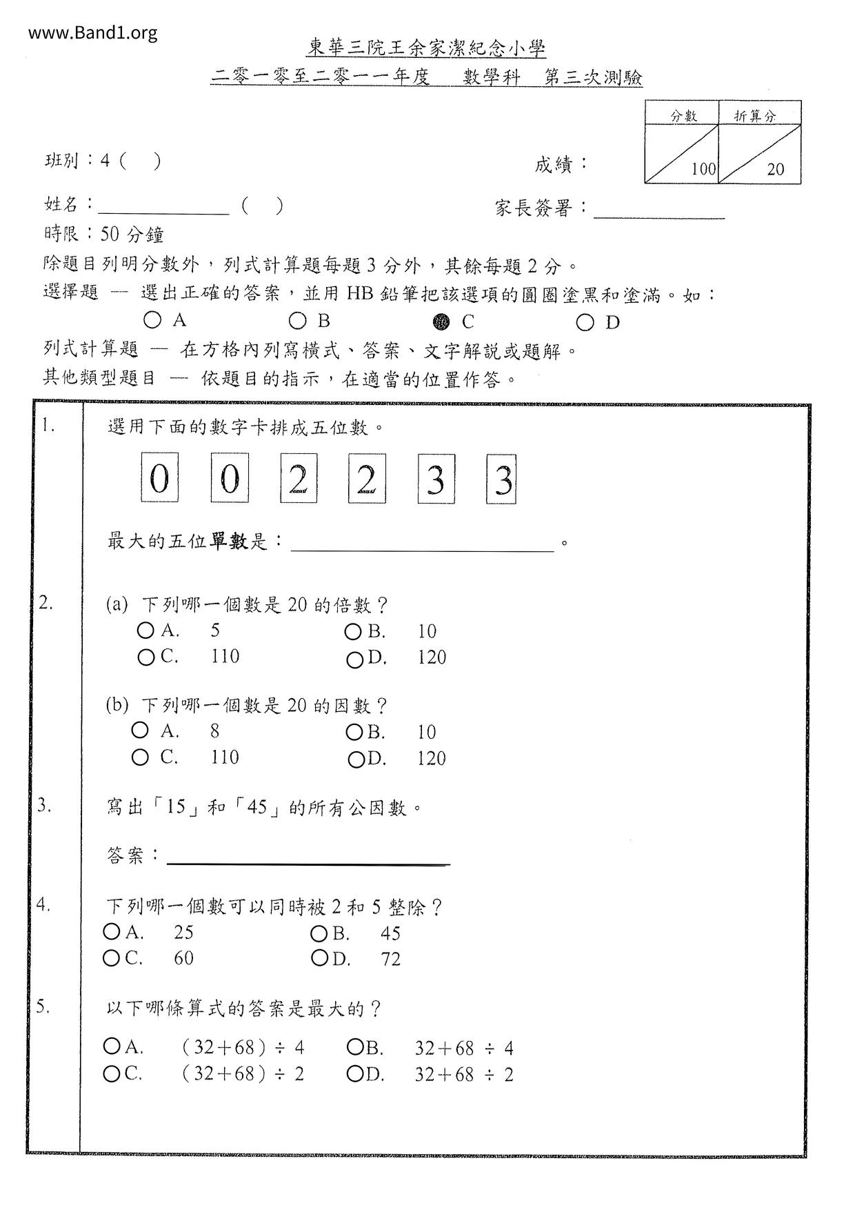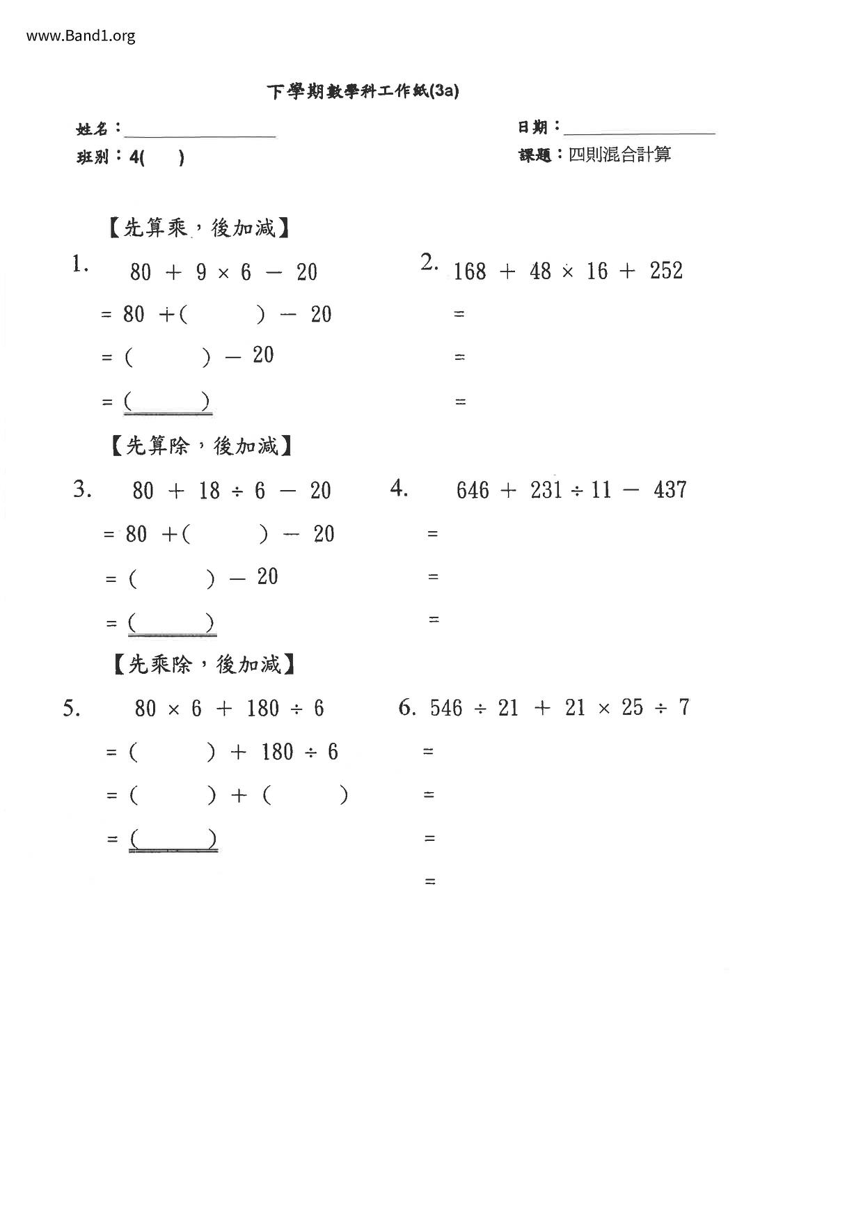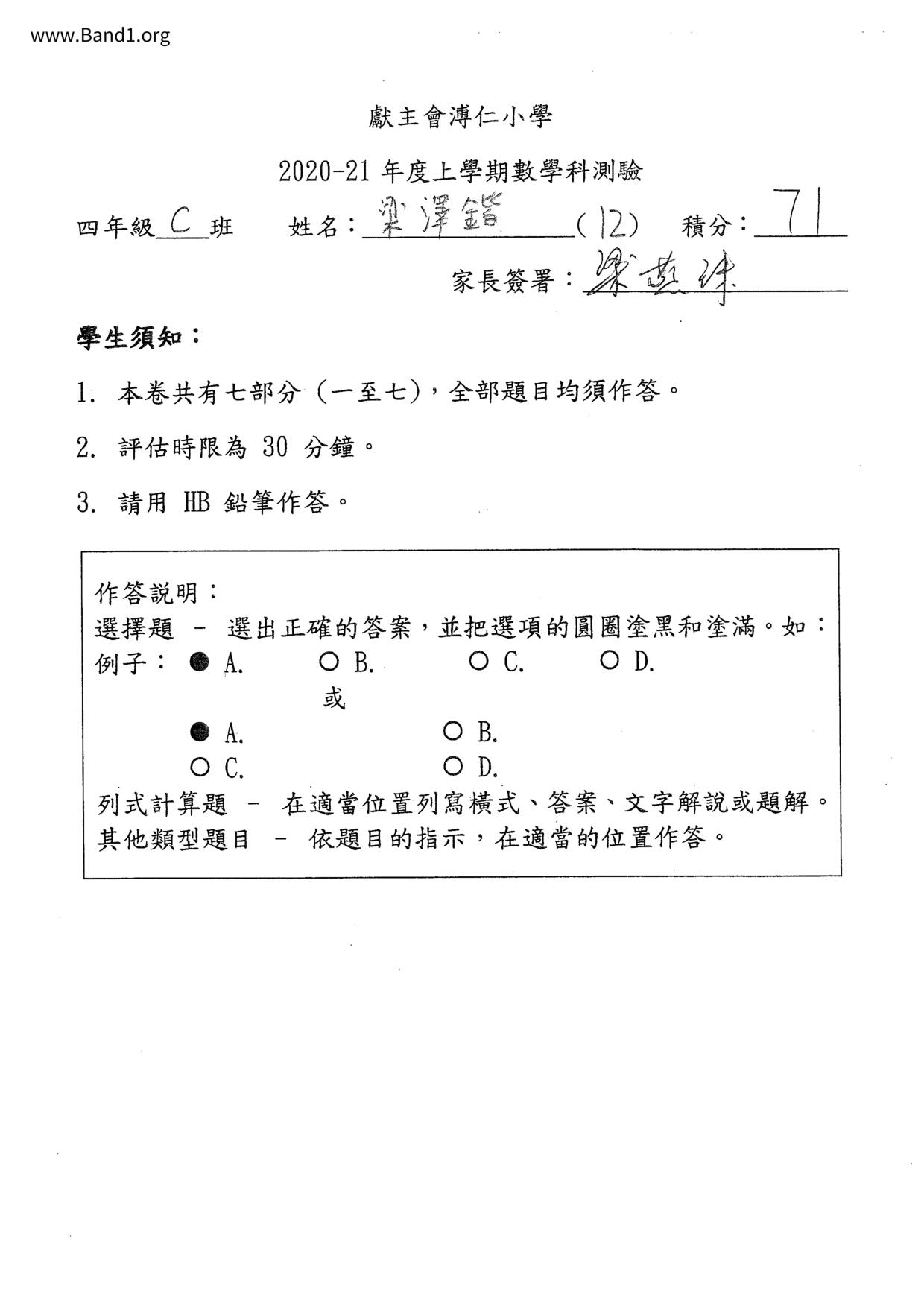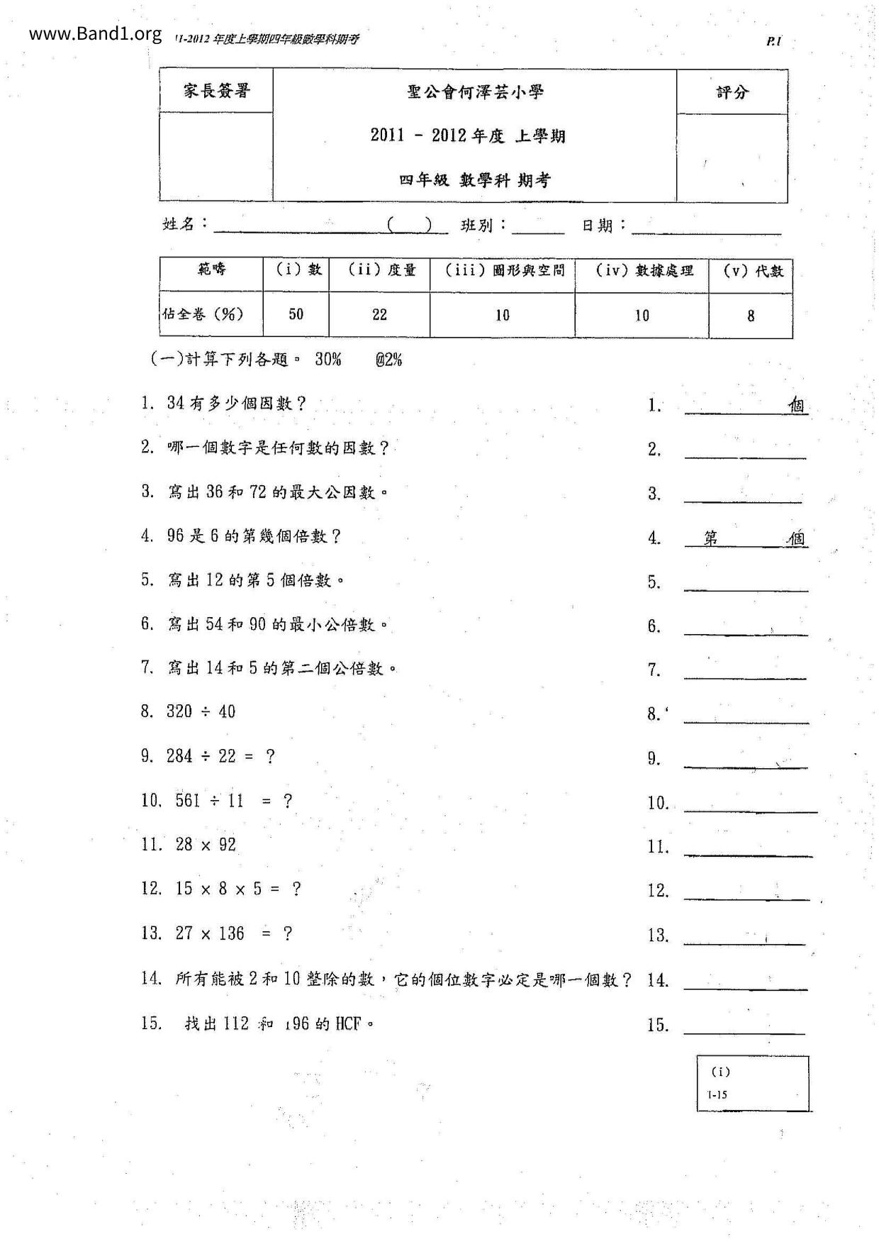 小四 數學 僑港伍氏宗親會伍時暢紀念學校