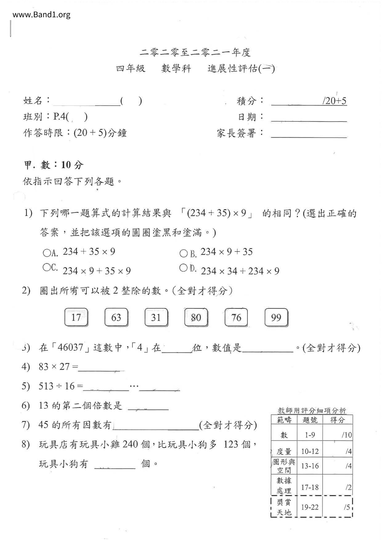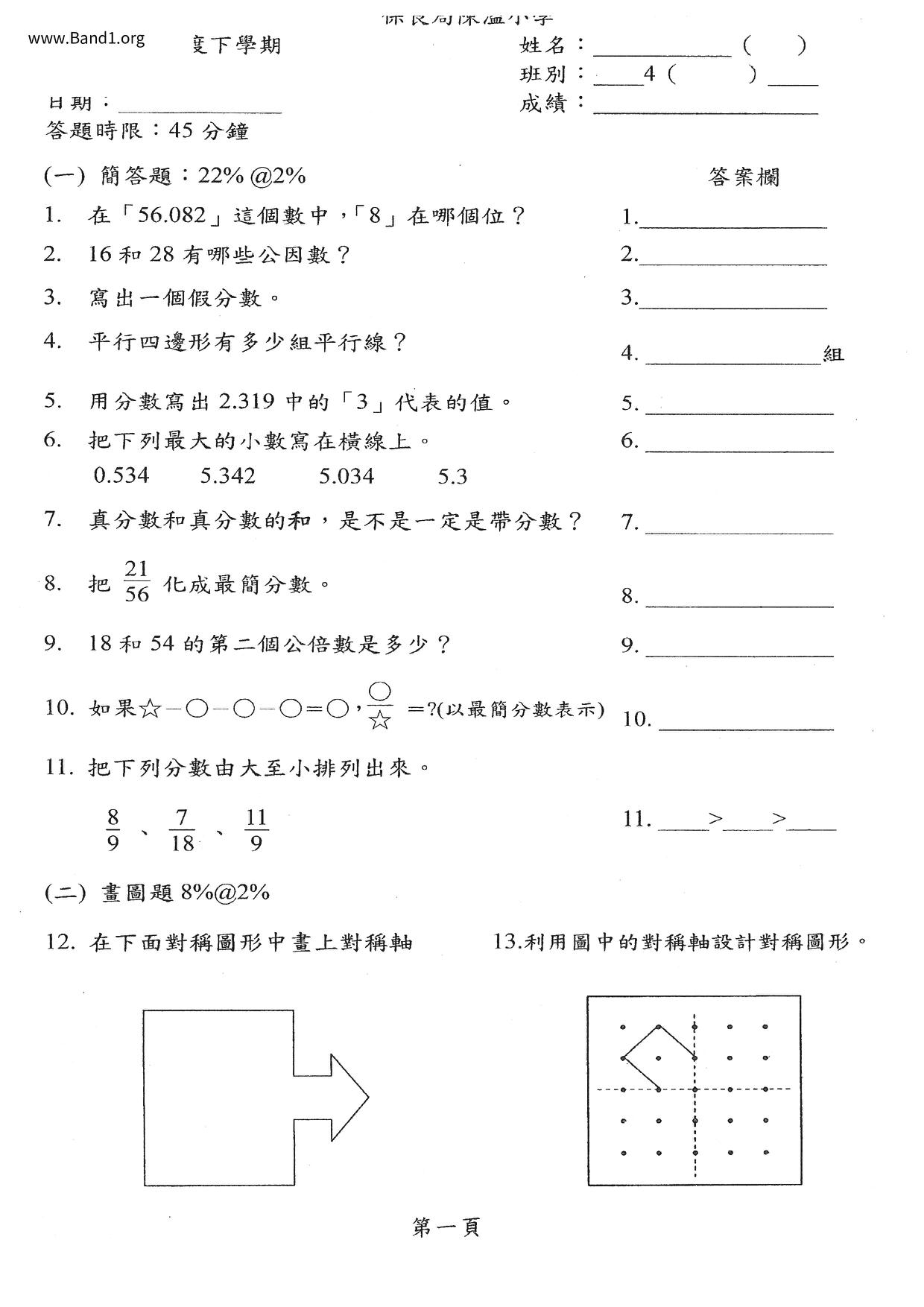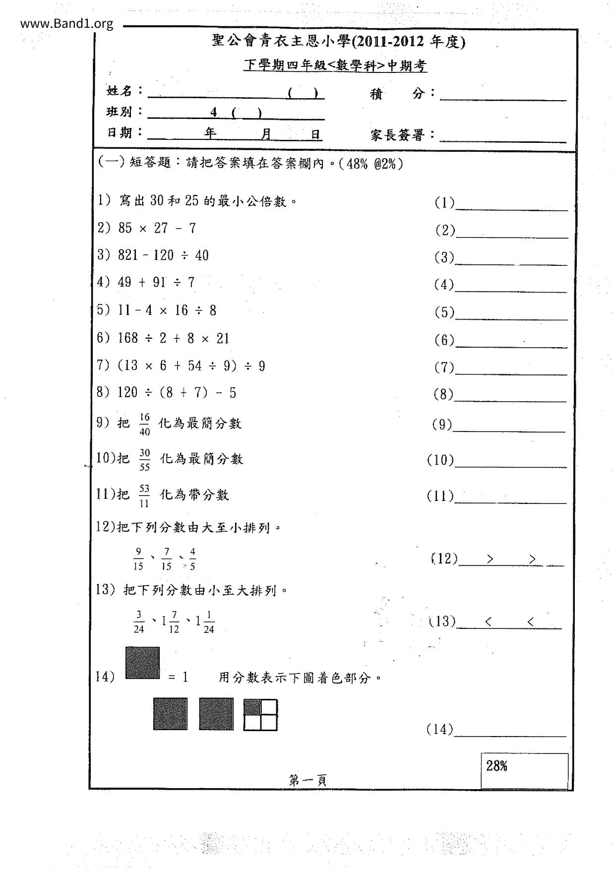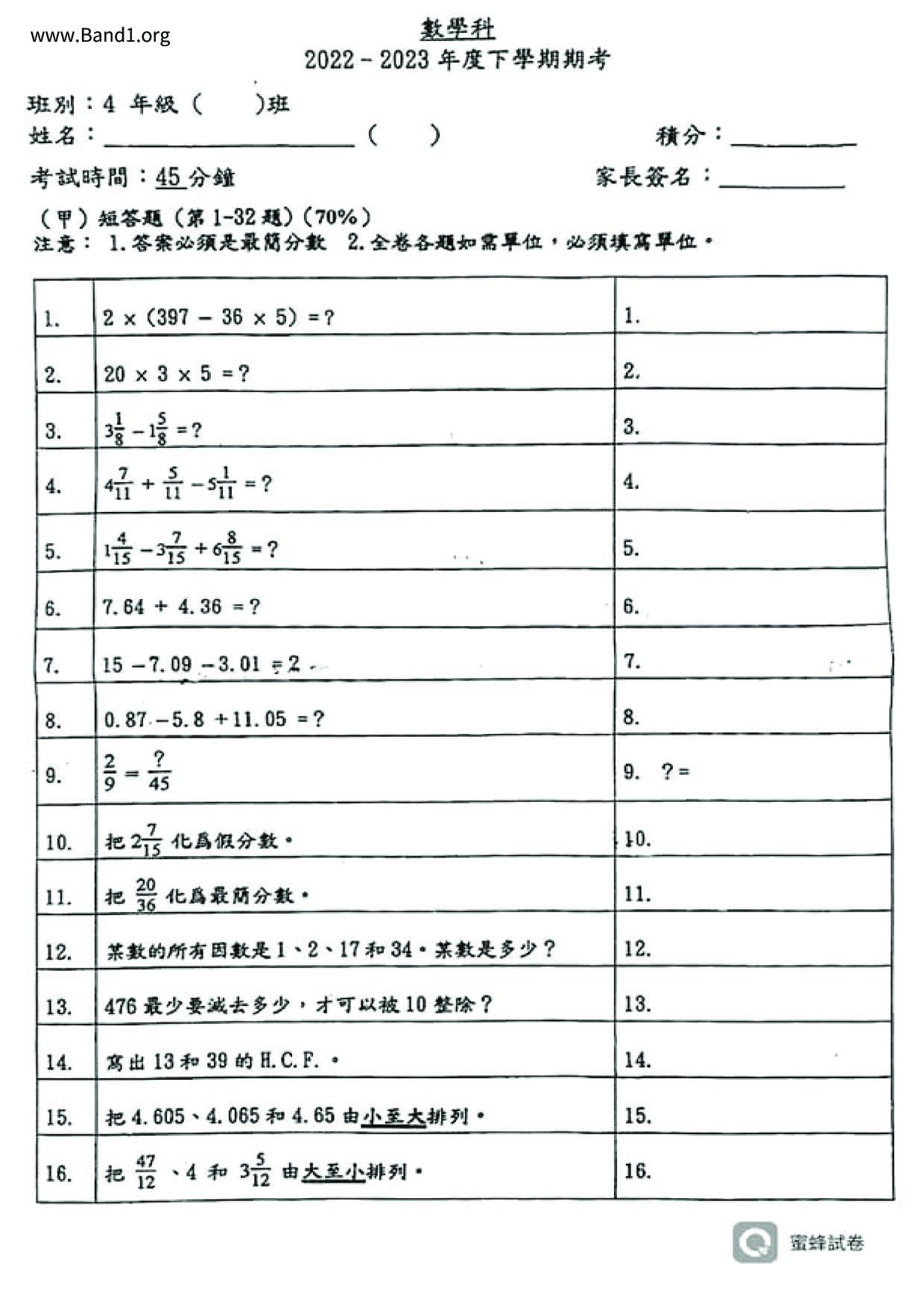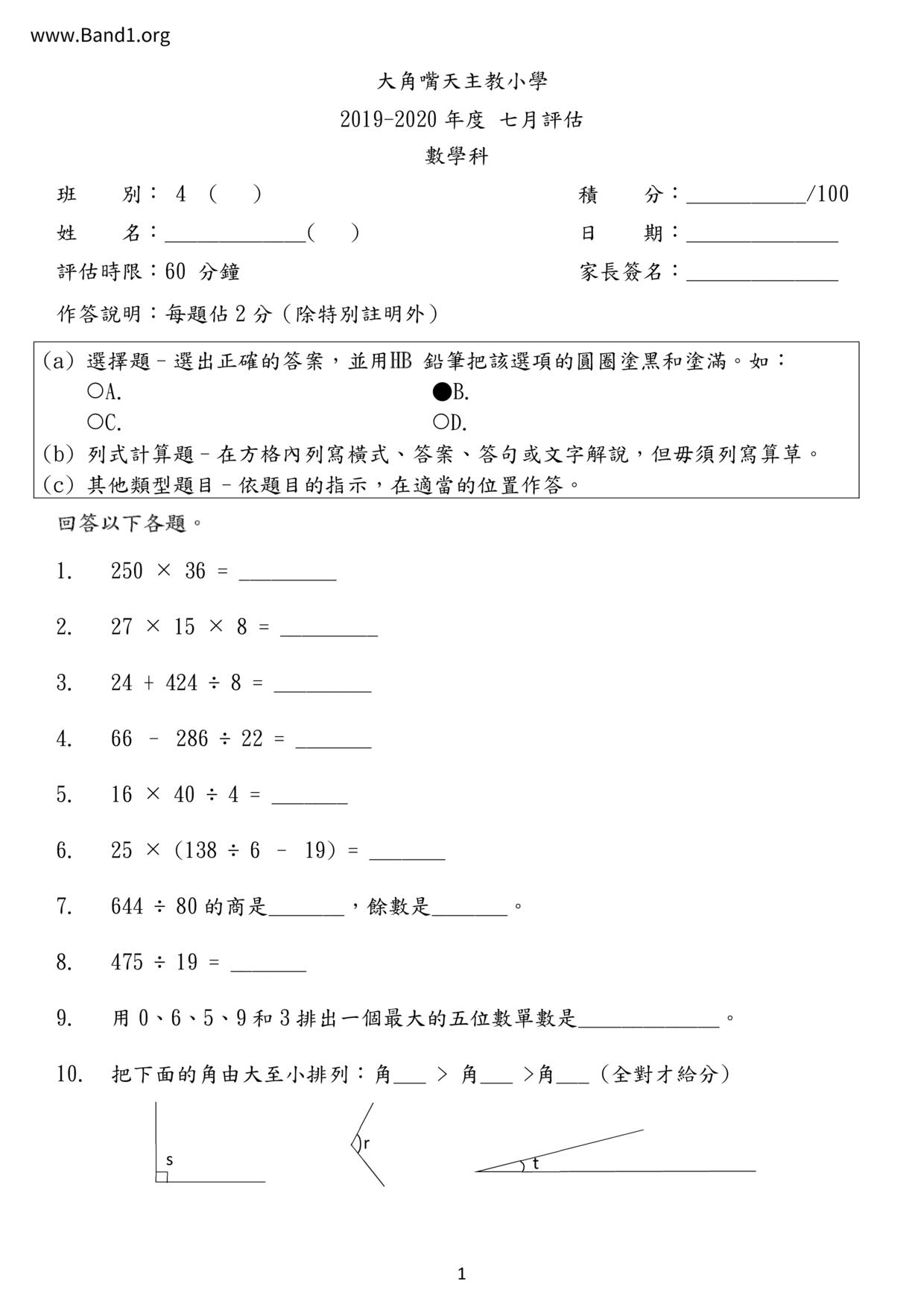 小四 數學 僑港伍氏宗親會伍時暢紀念學校