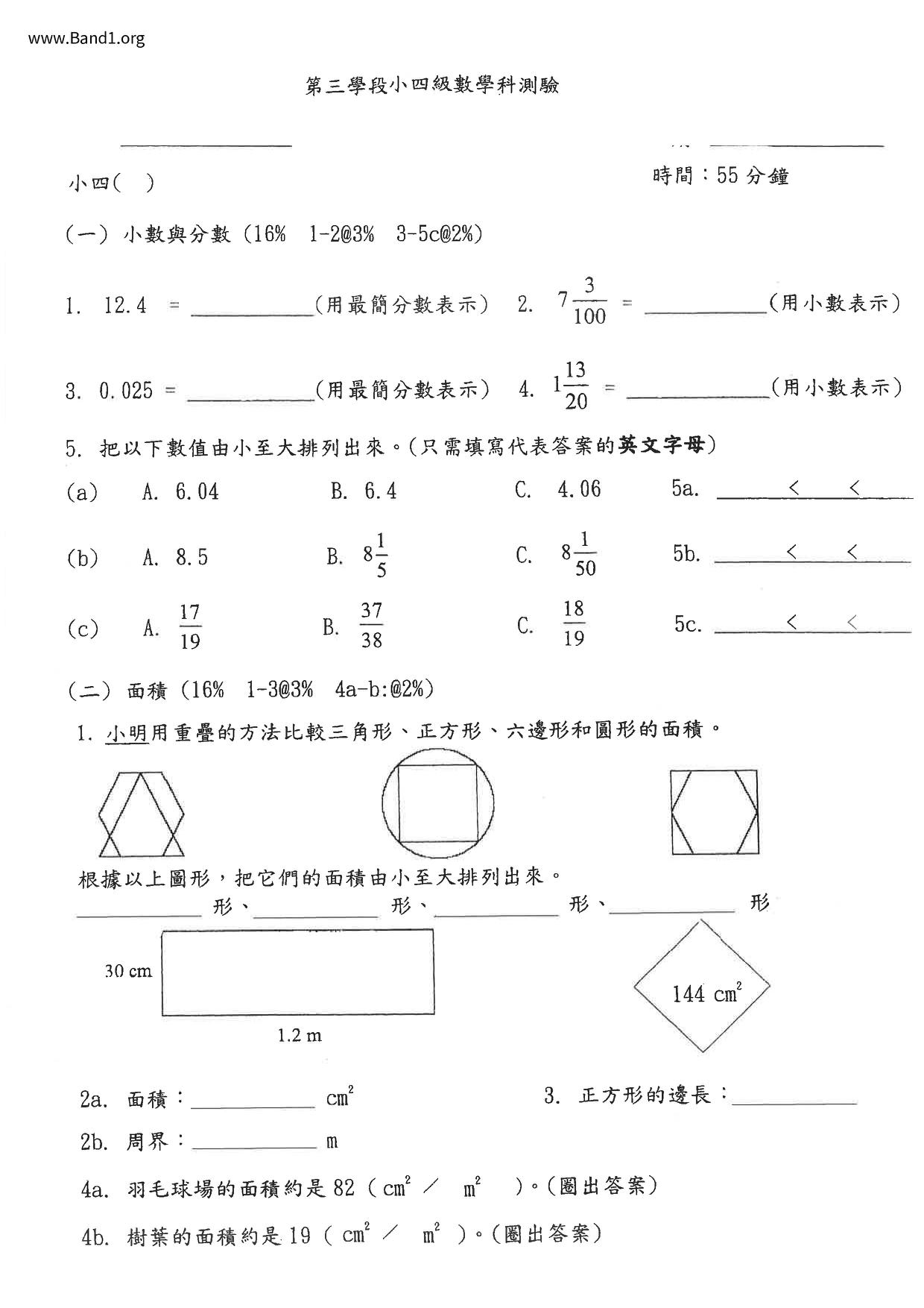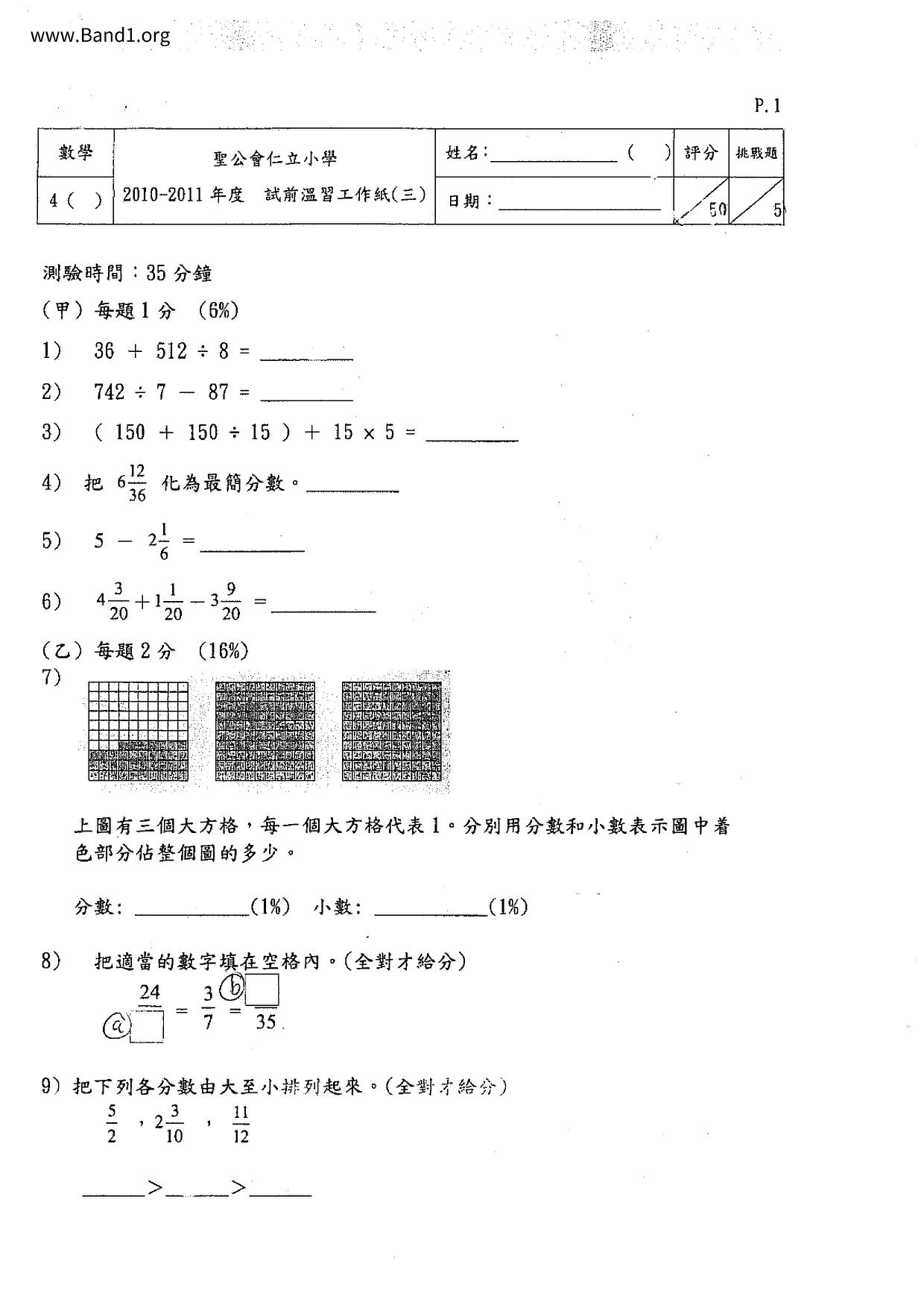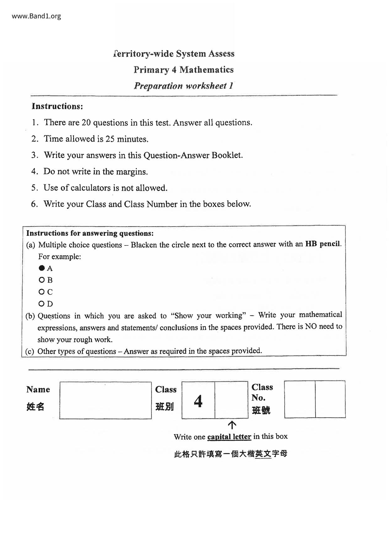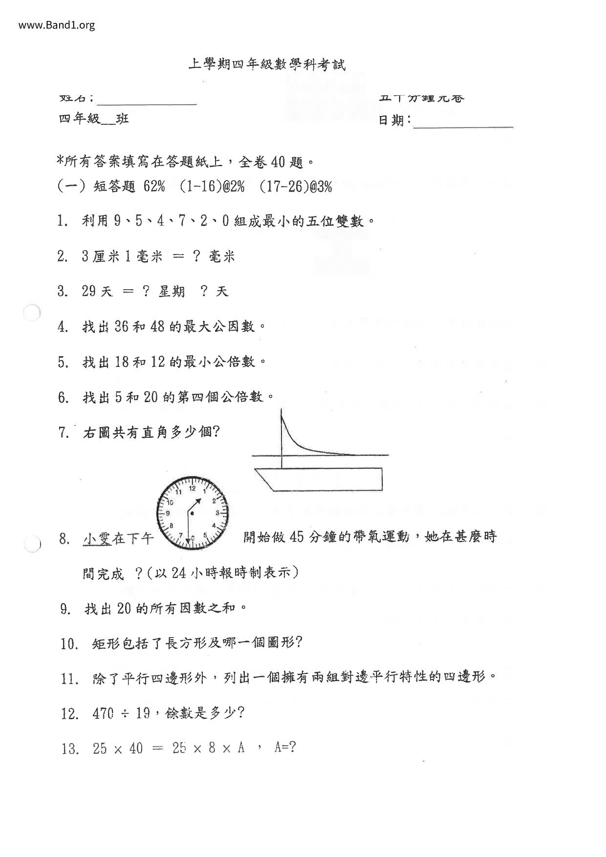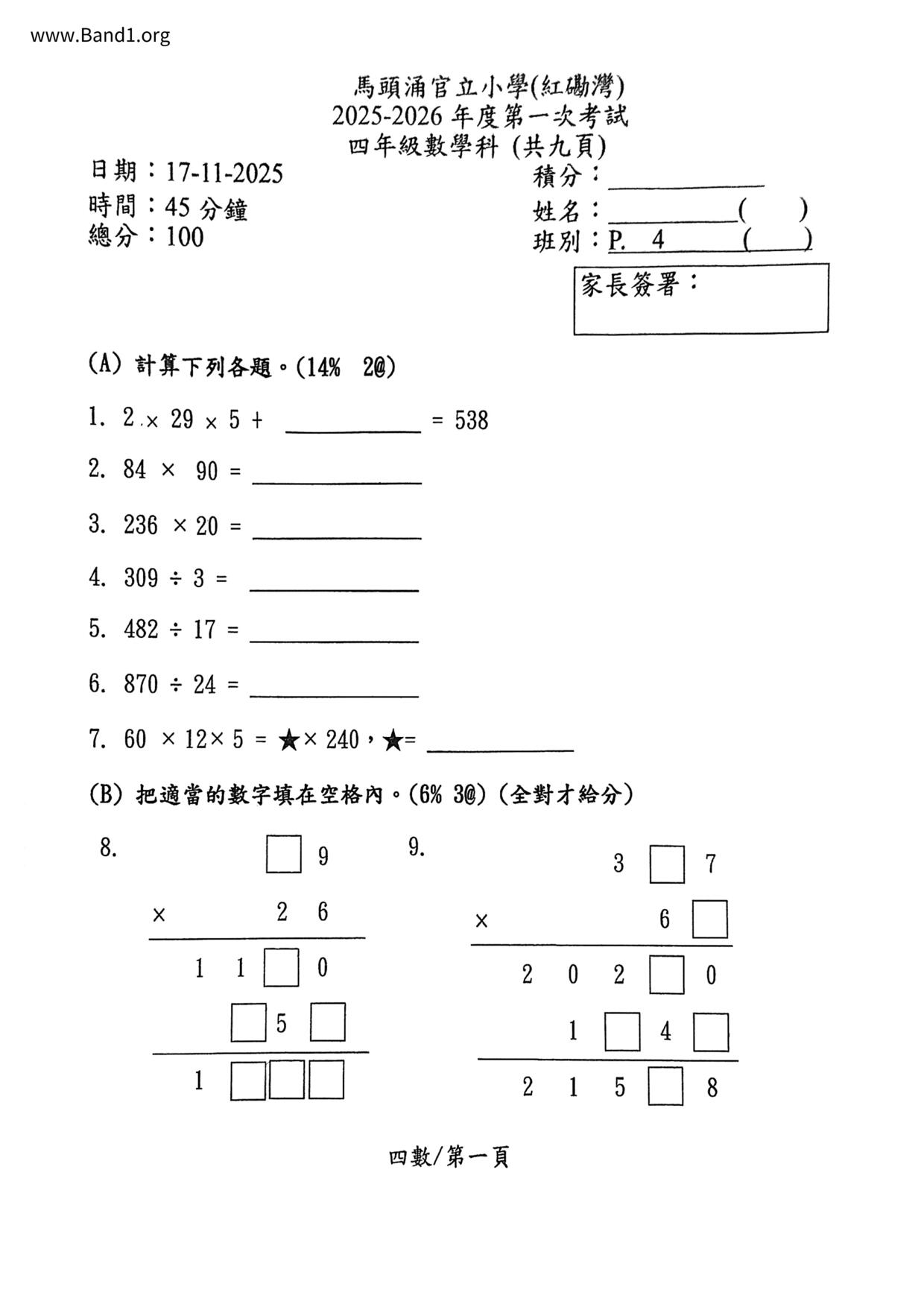 小四 數學 僑港伍氏宗親會伍時暢紀念學校