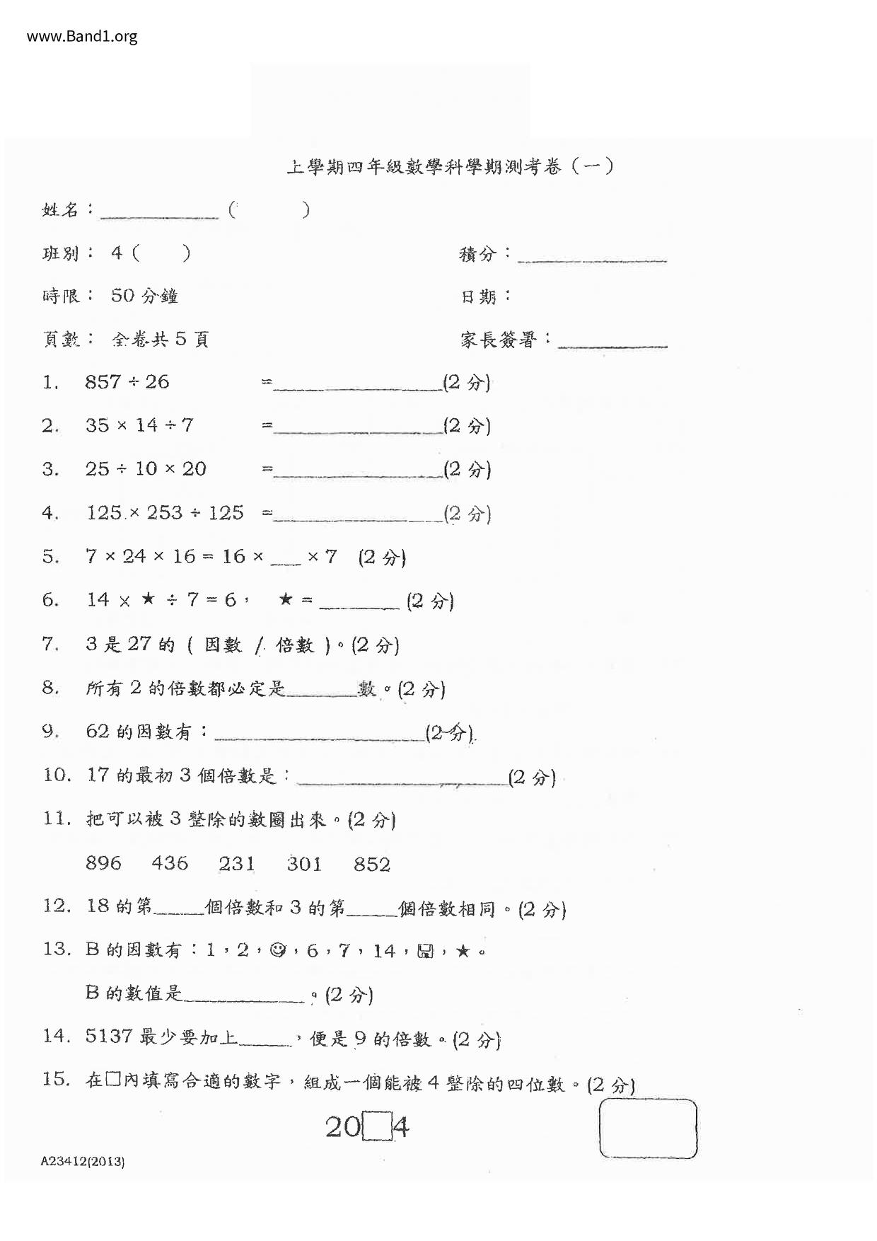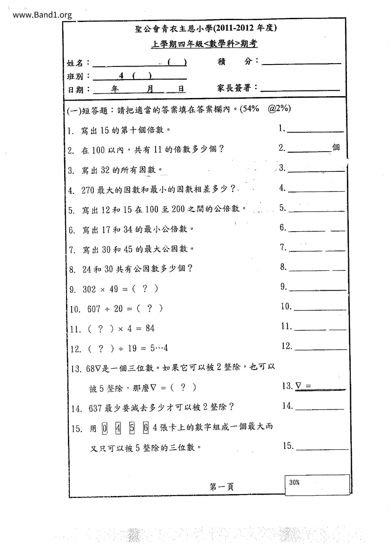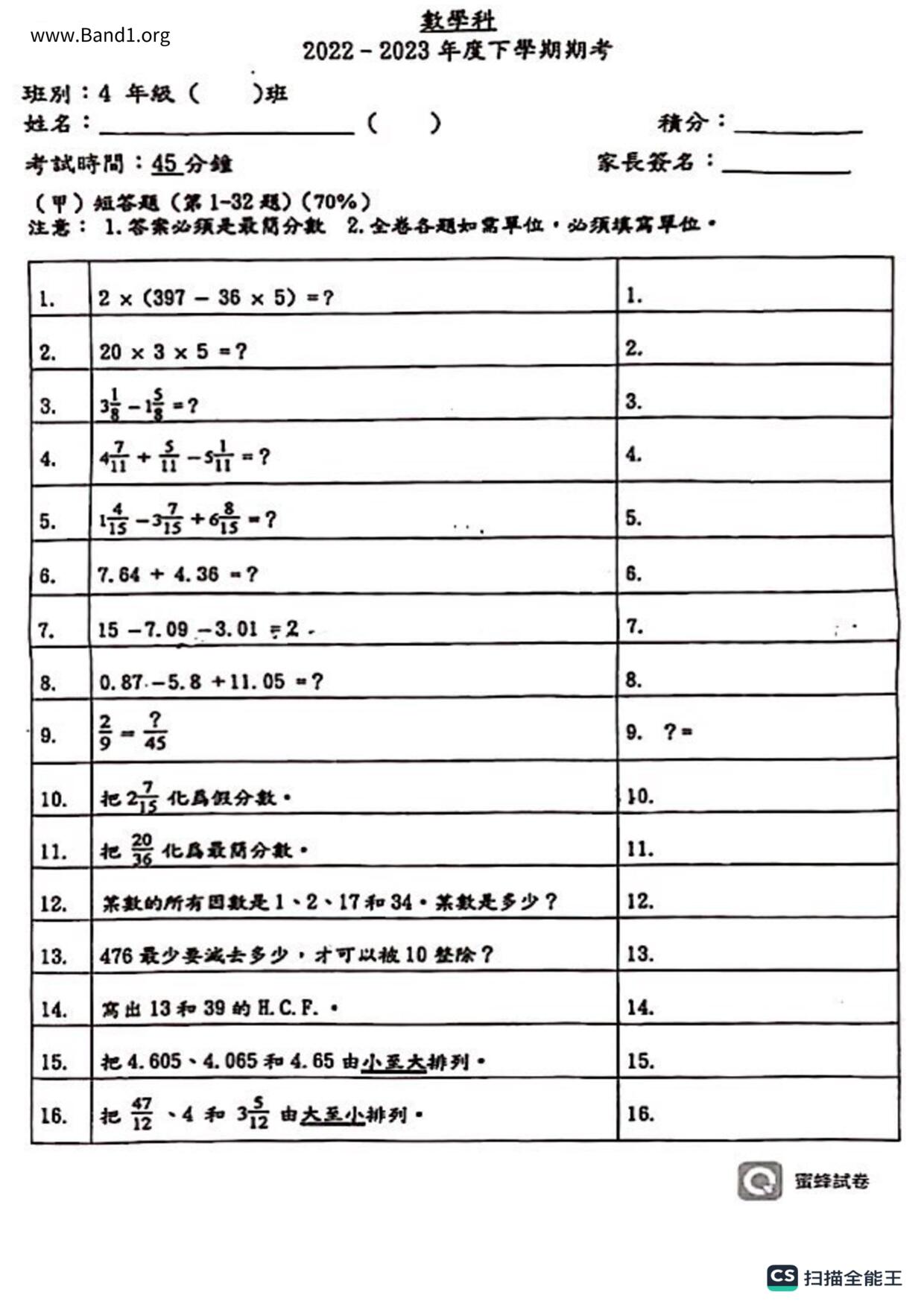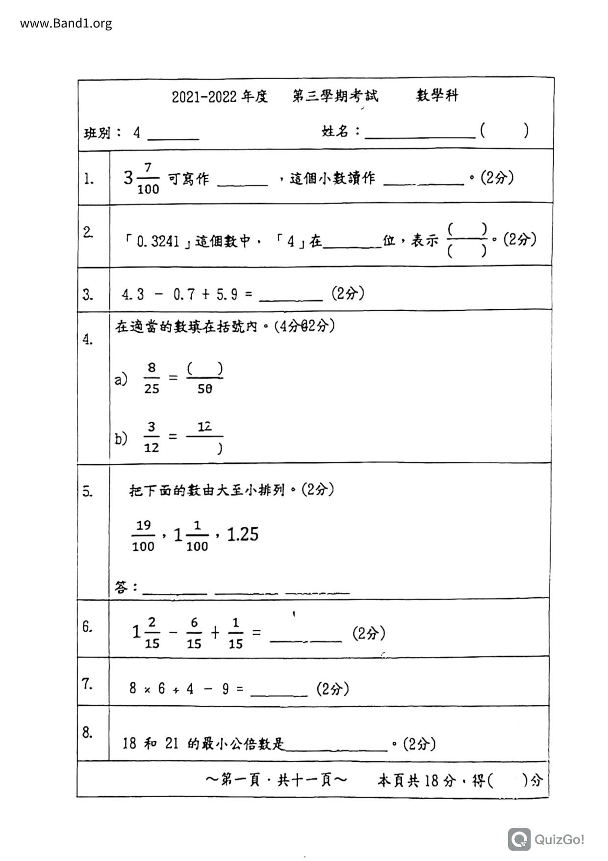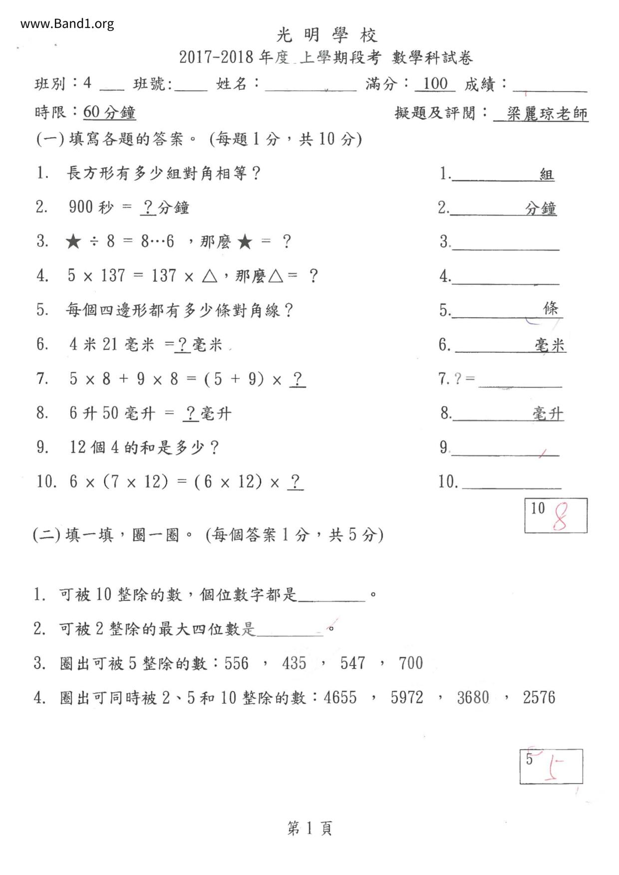 小四 數學 僑港伍氏宗親會伍時暢紀念學校