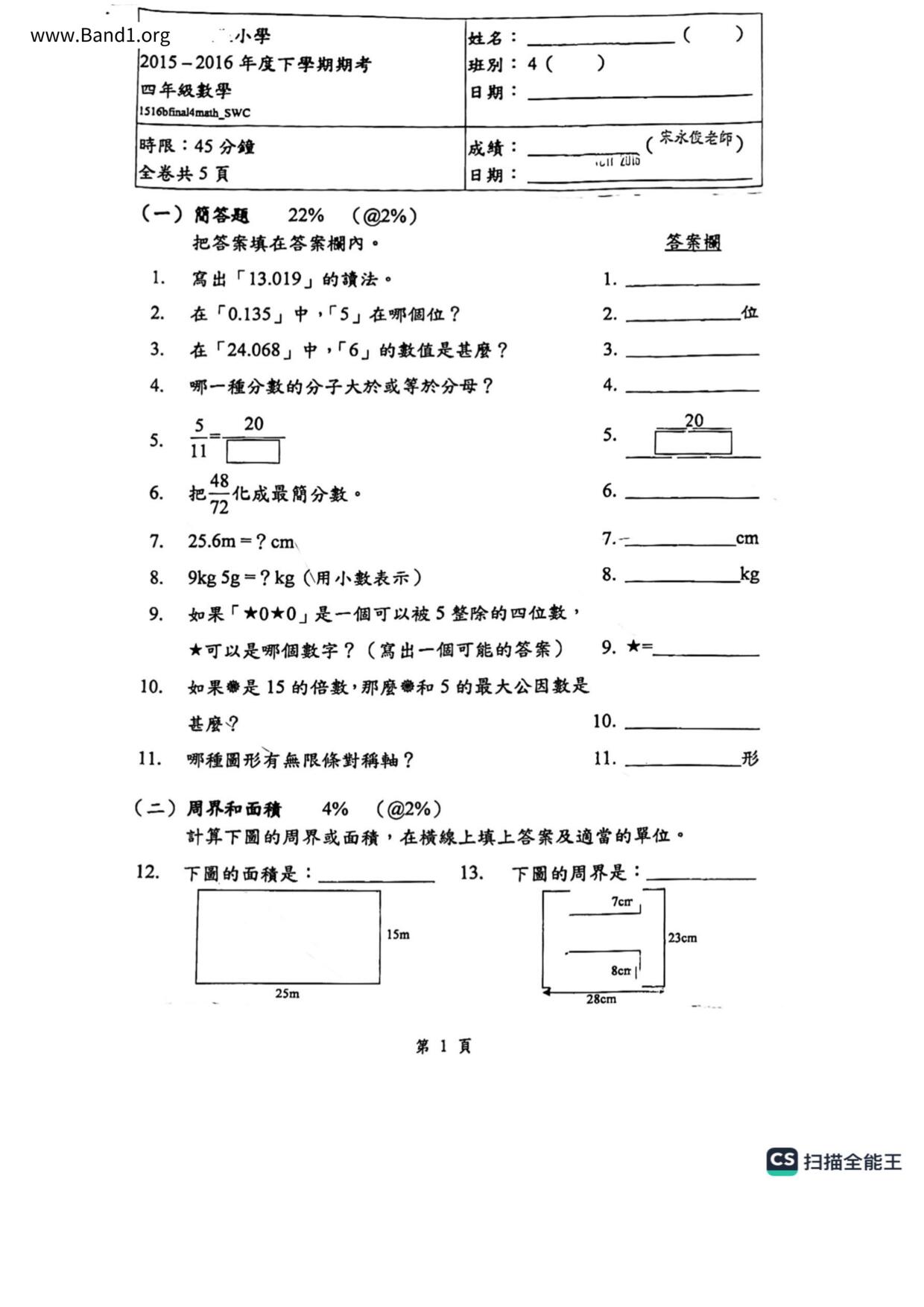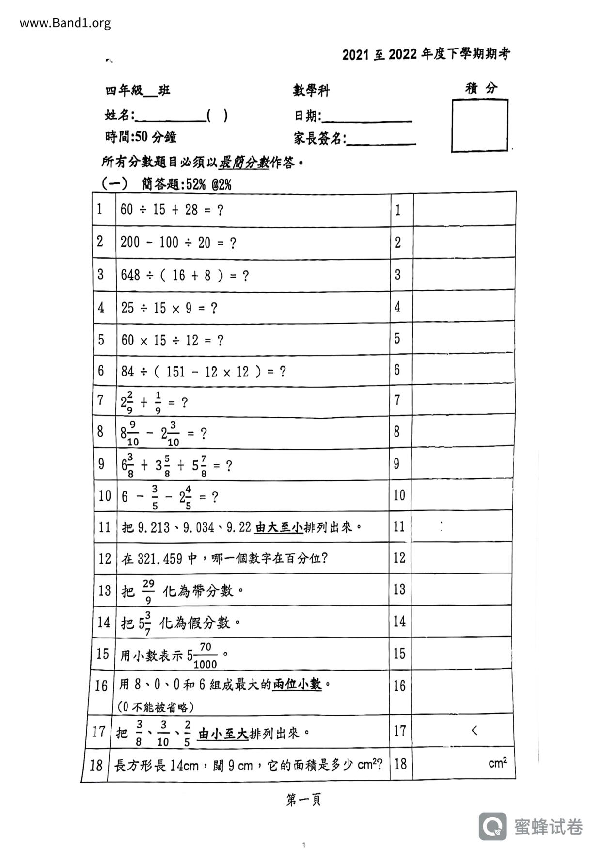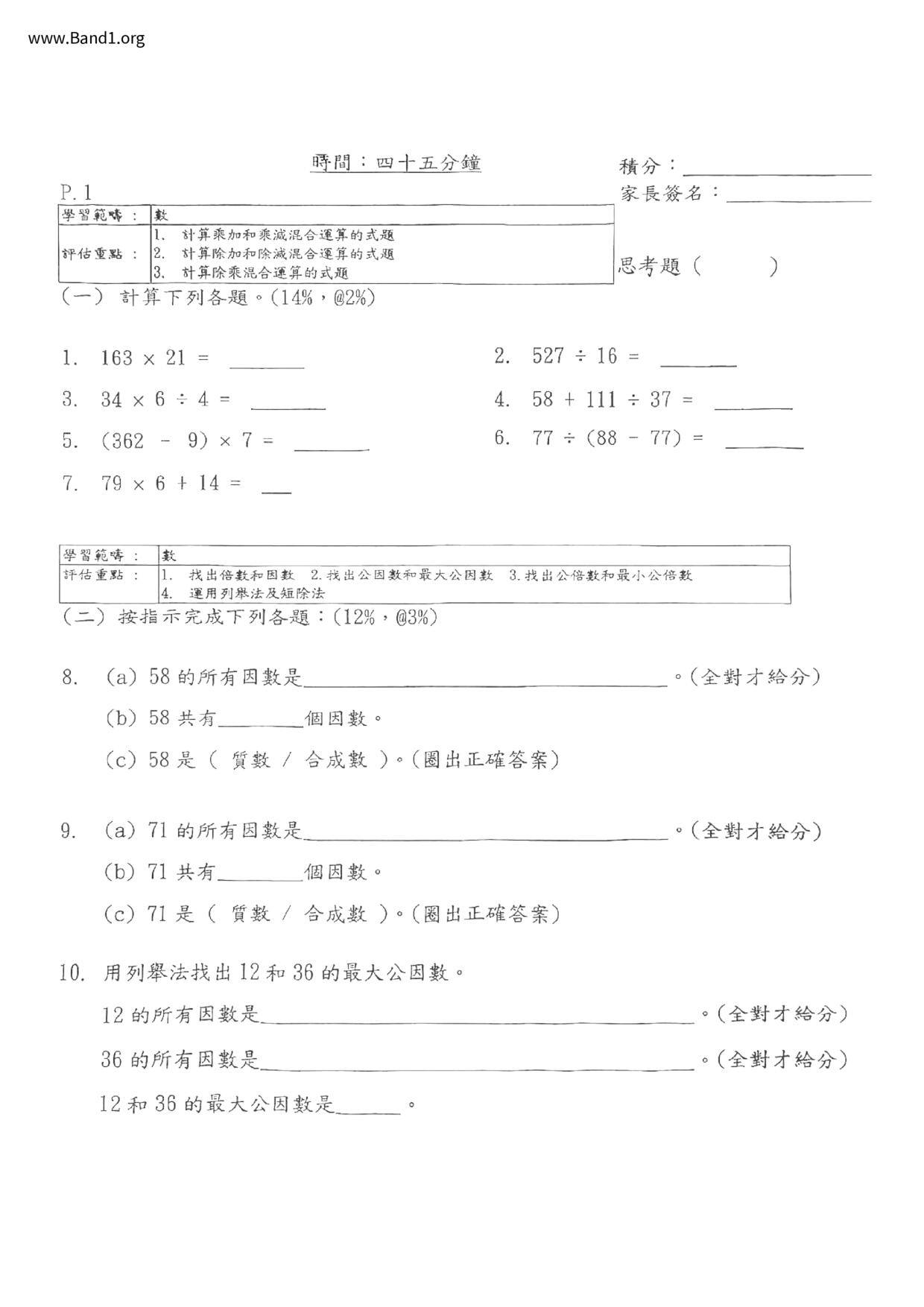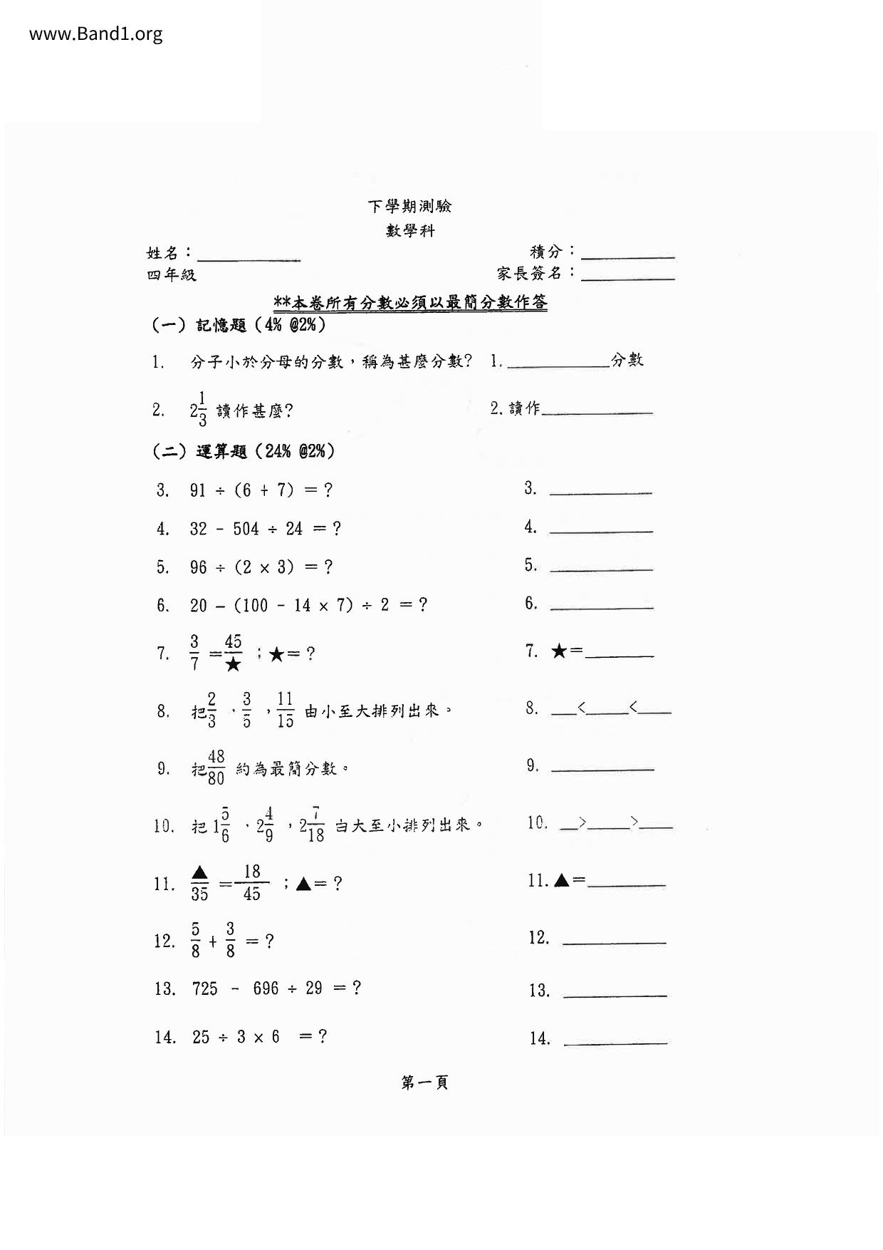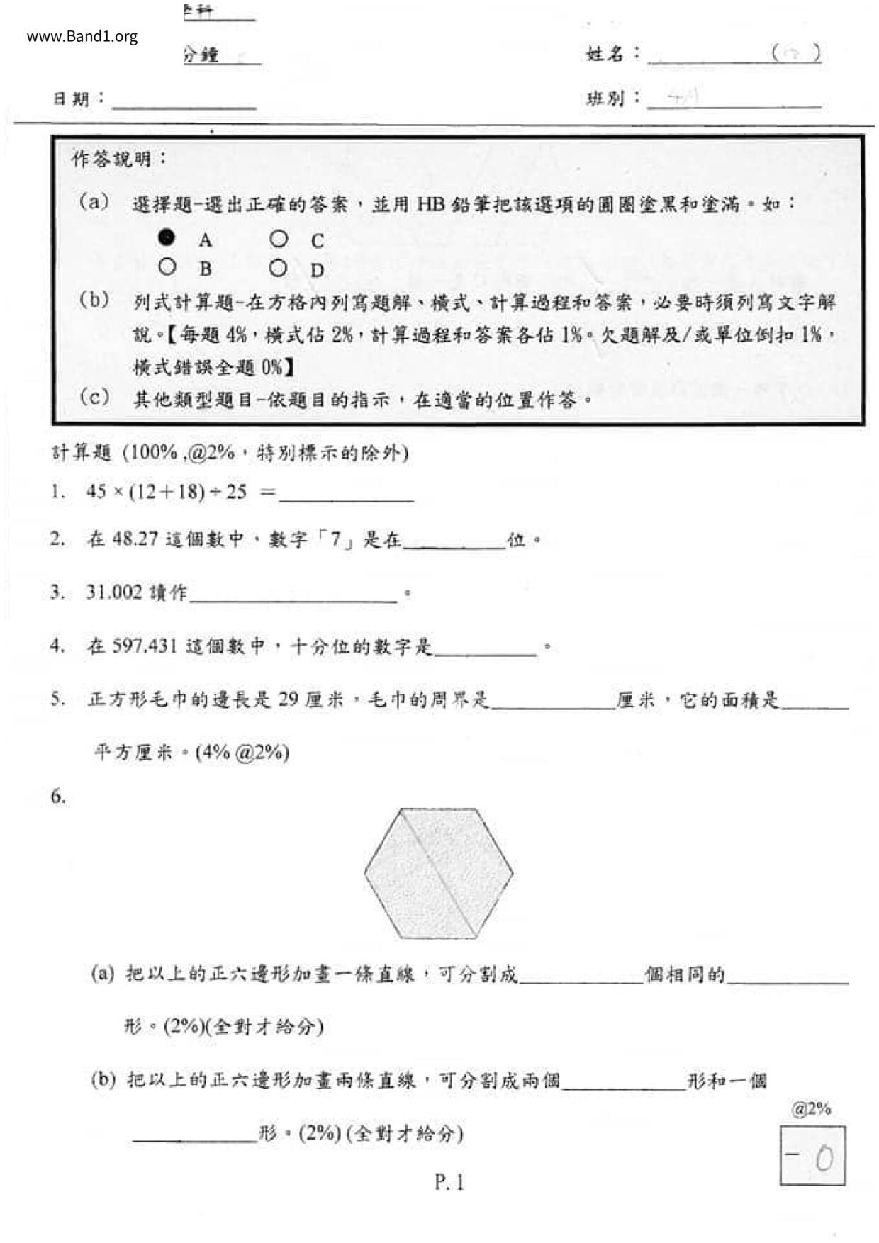 小四 數學 僑港伍氏宗親會伍時暢紀念學校