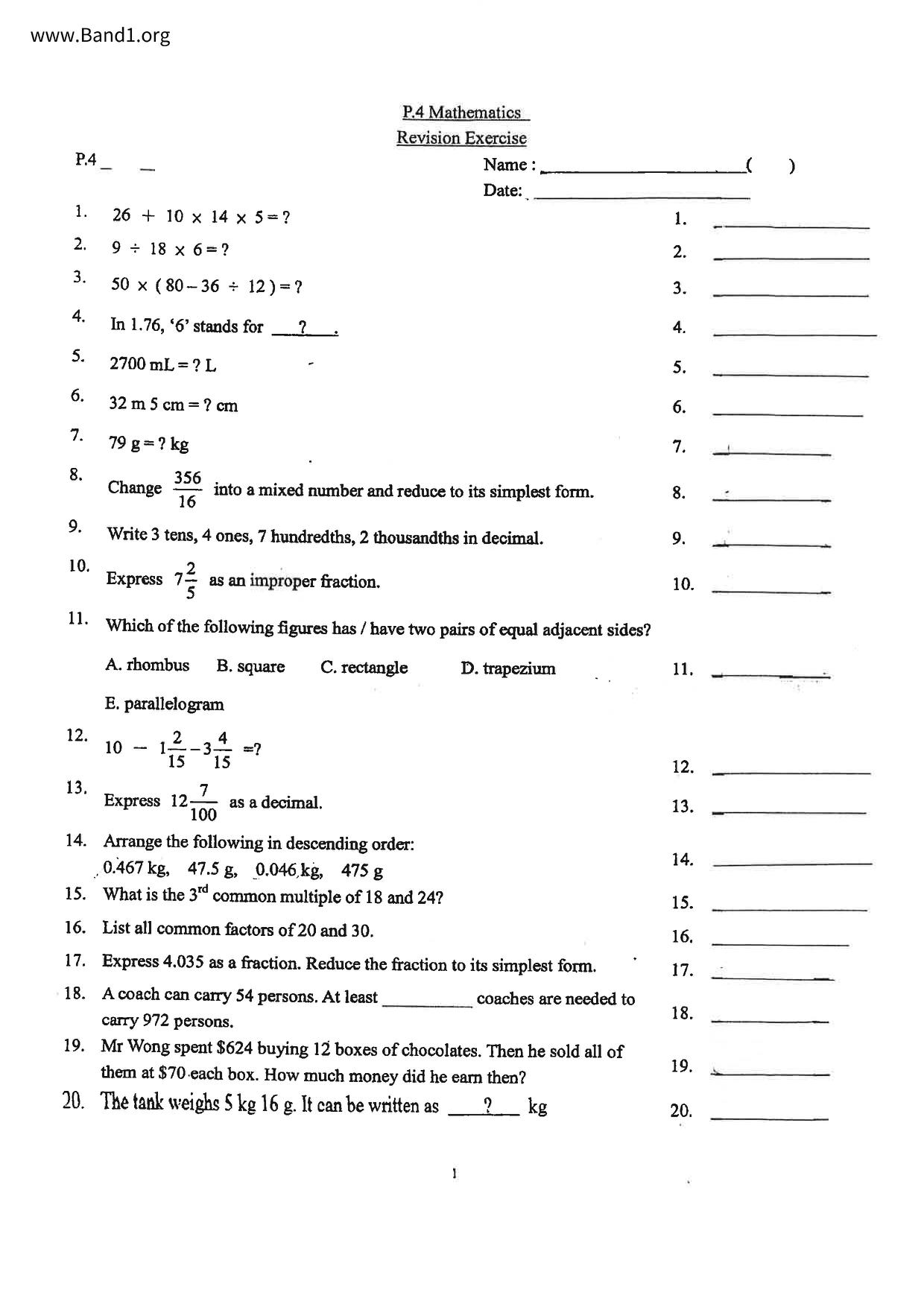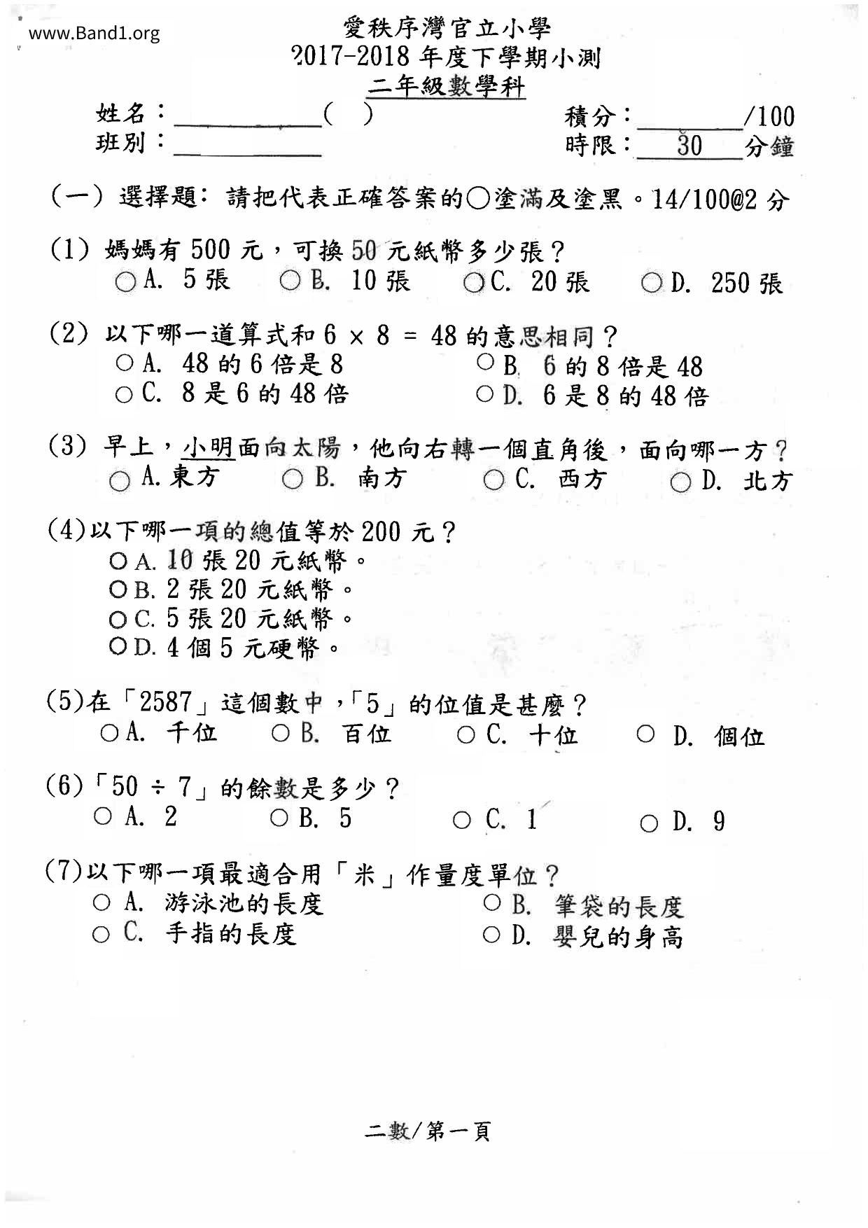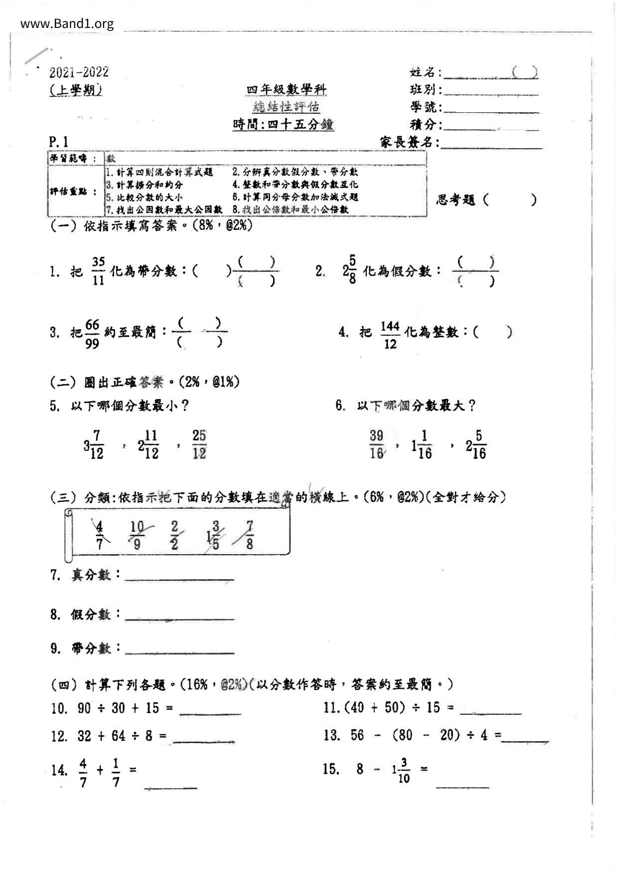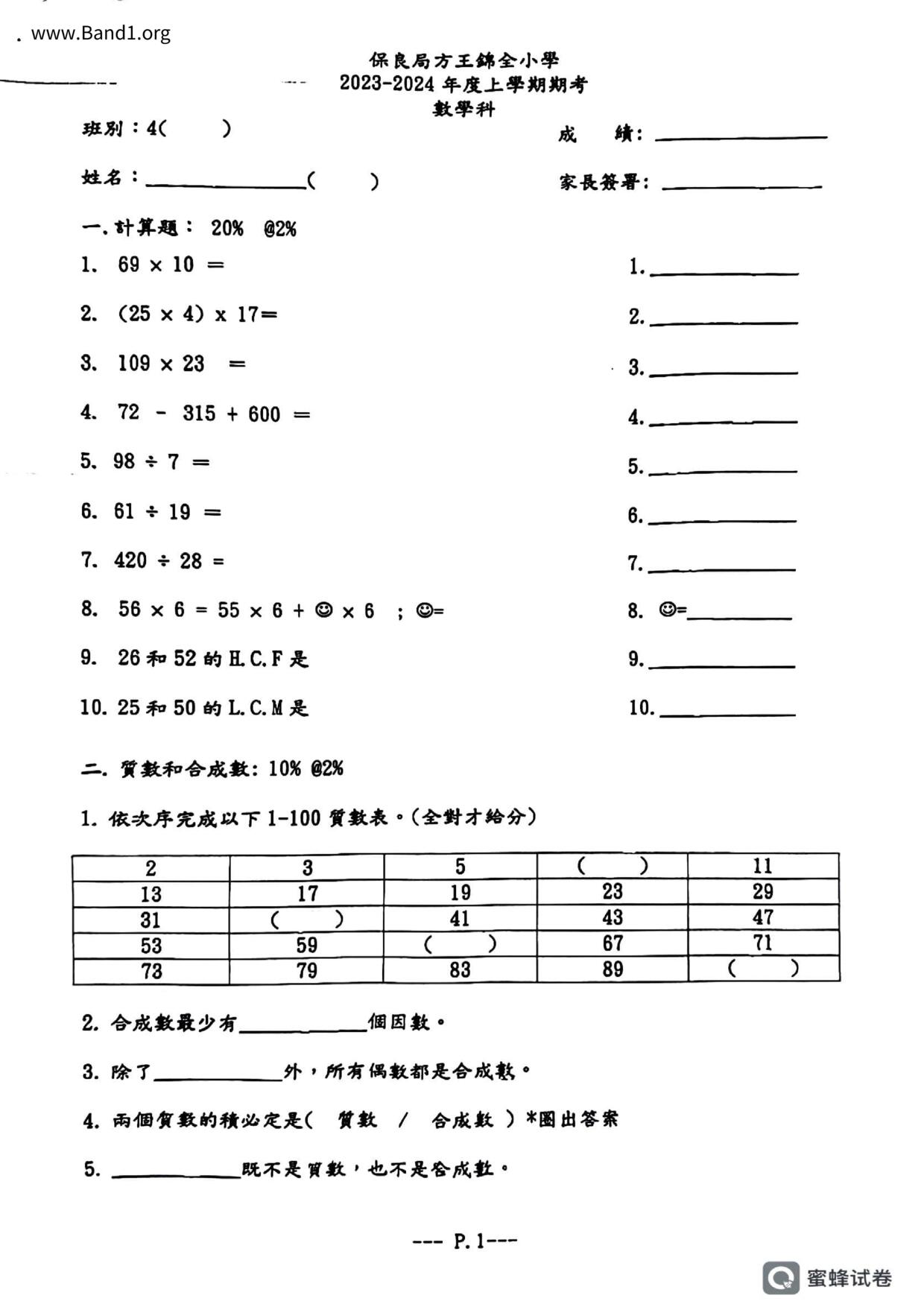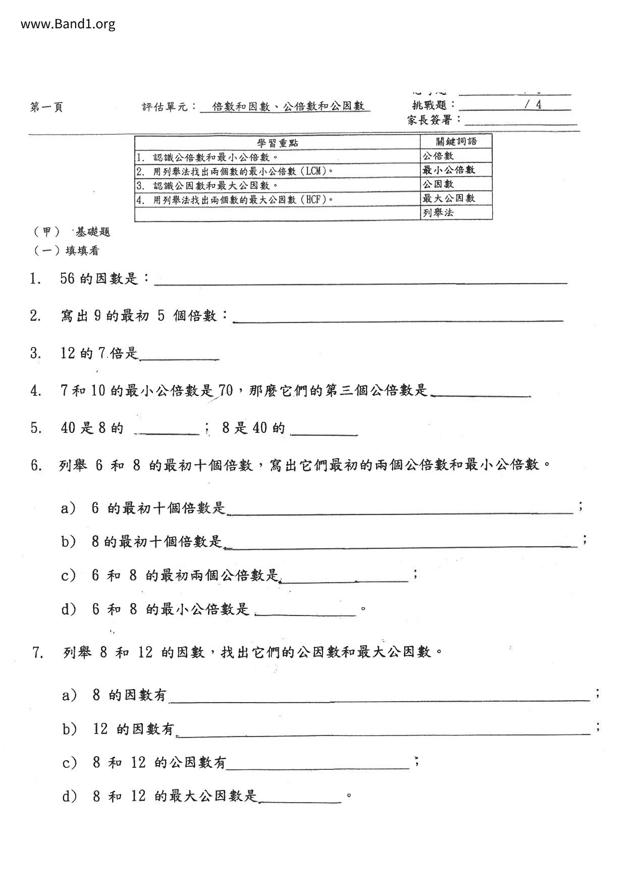 小四 數學 僑港伍氏宗親會伍時暢紀念學校