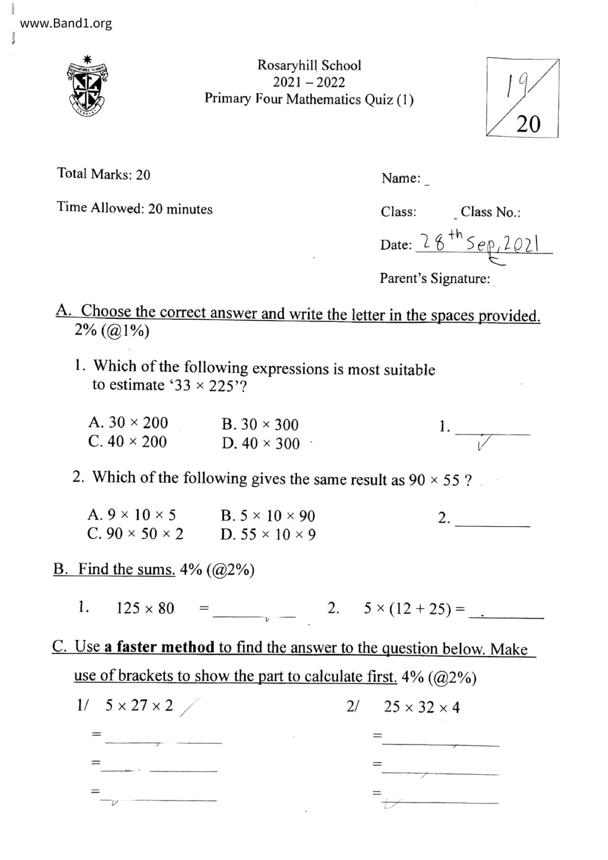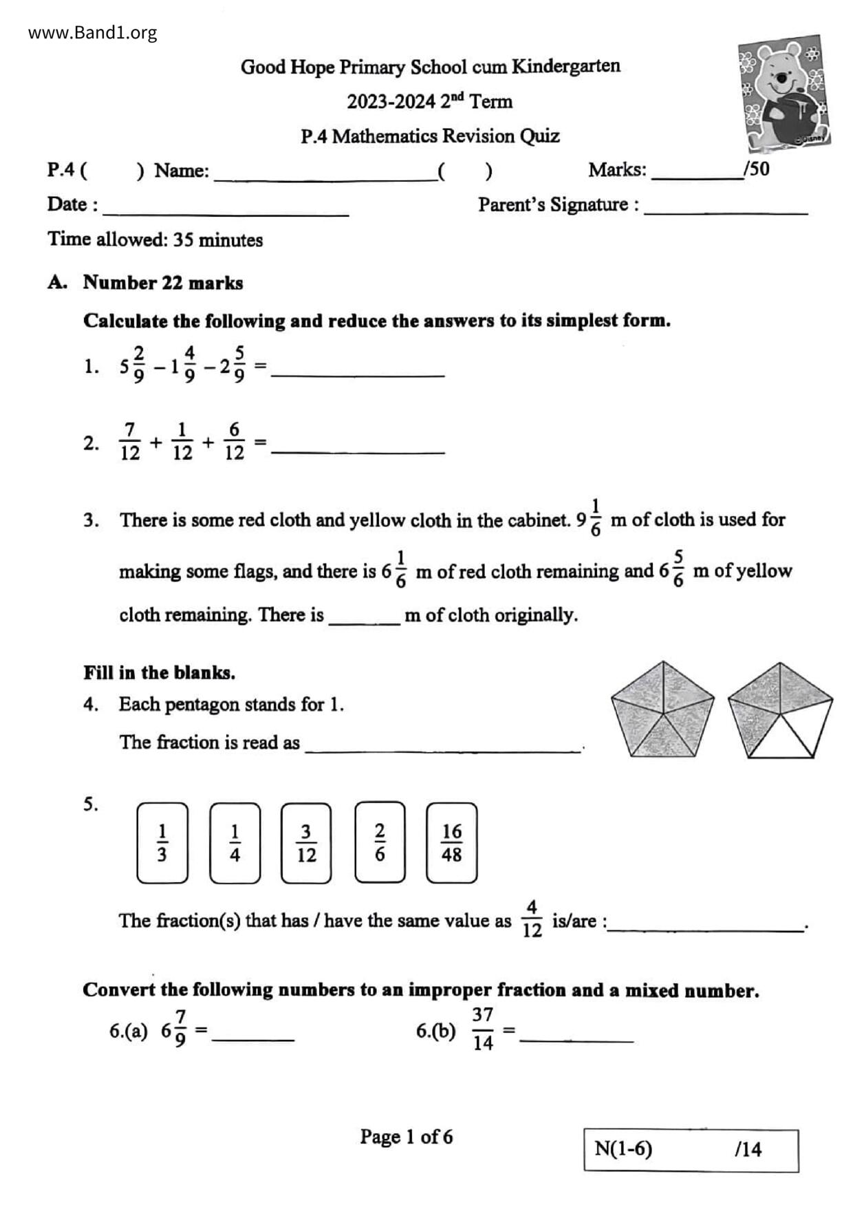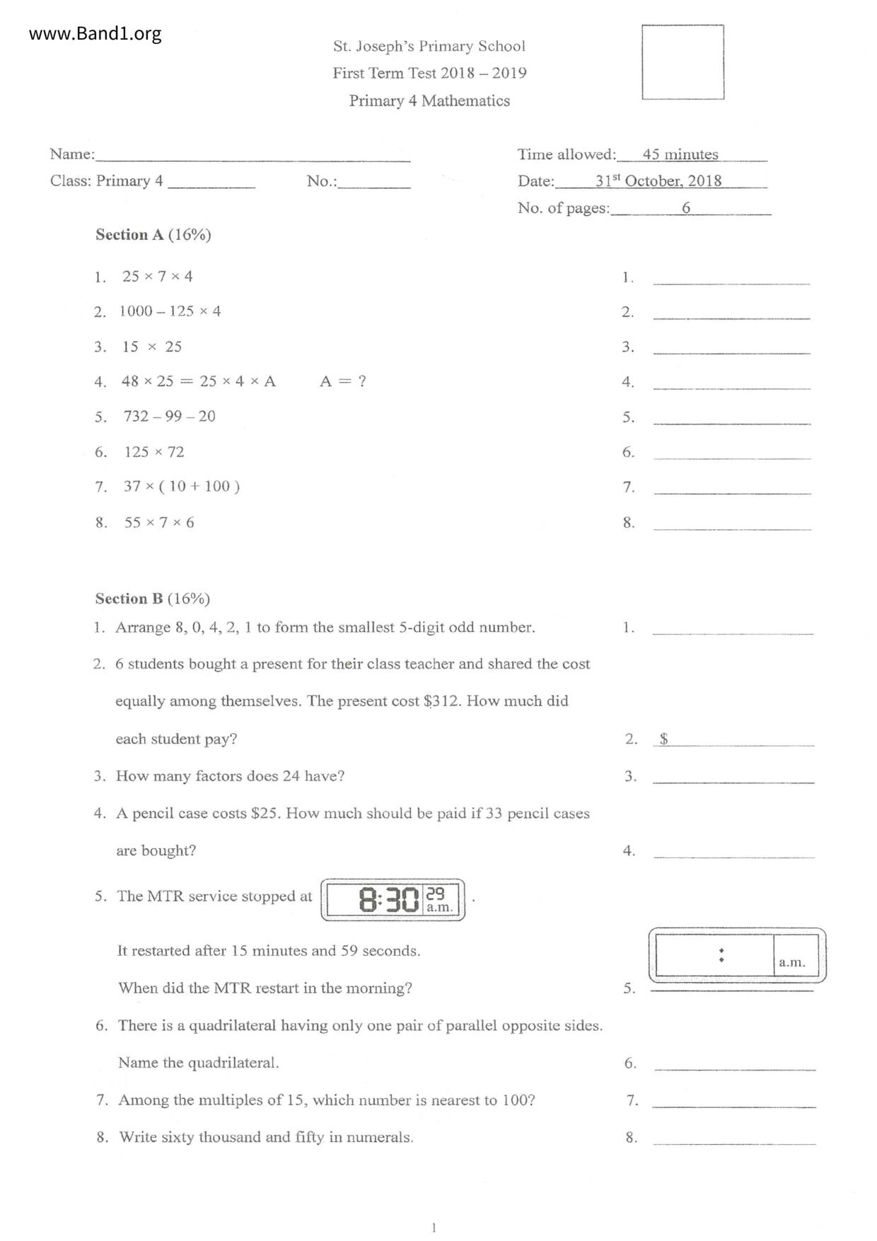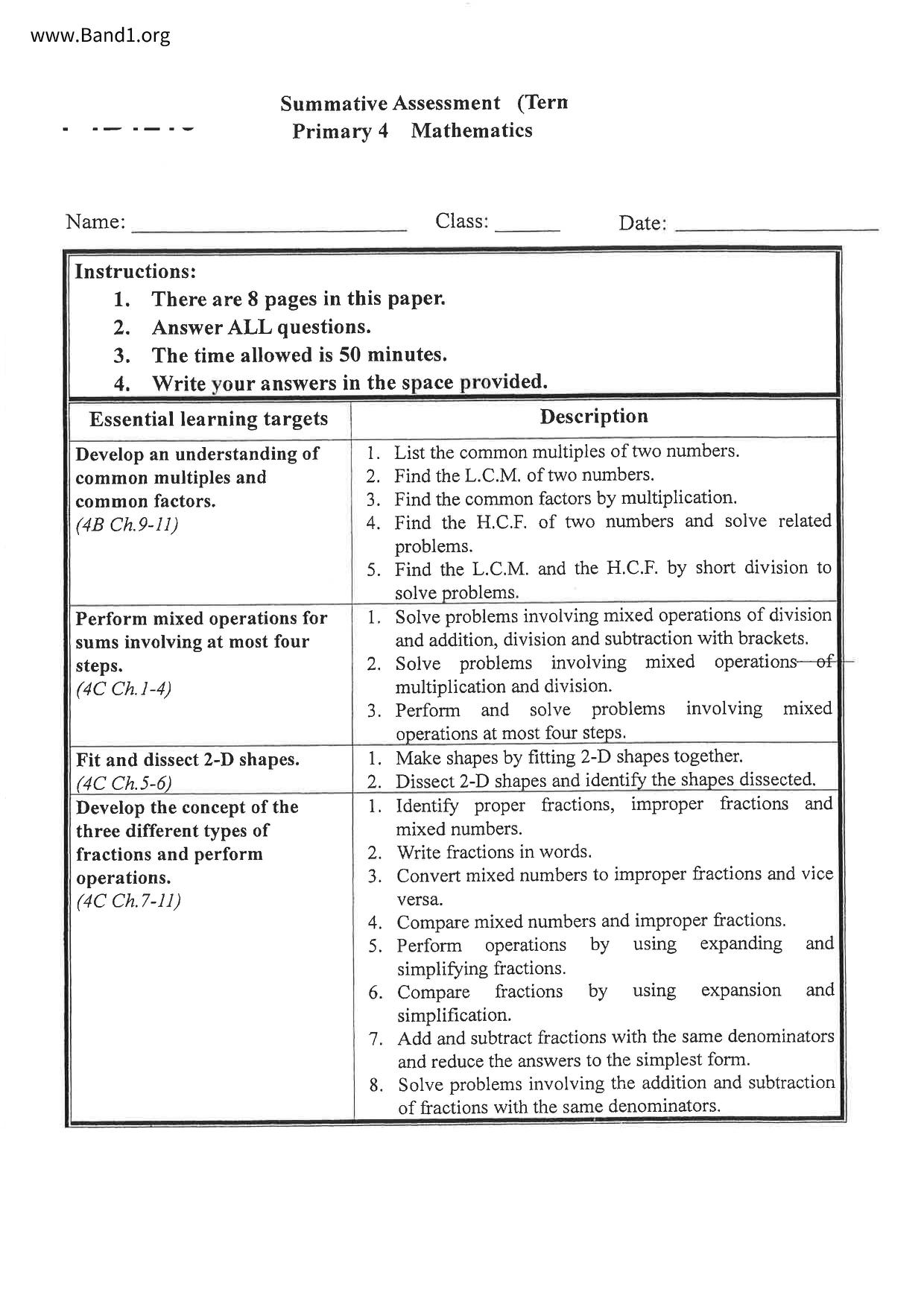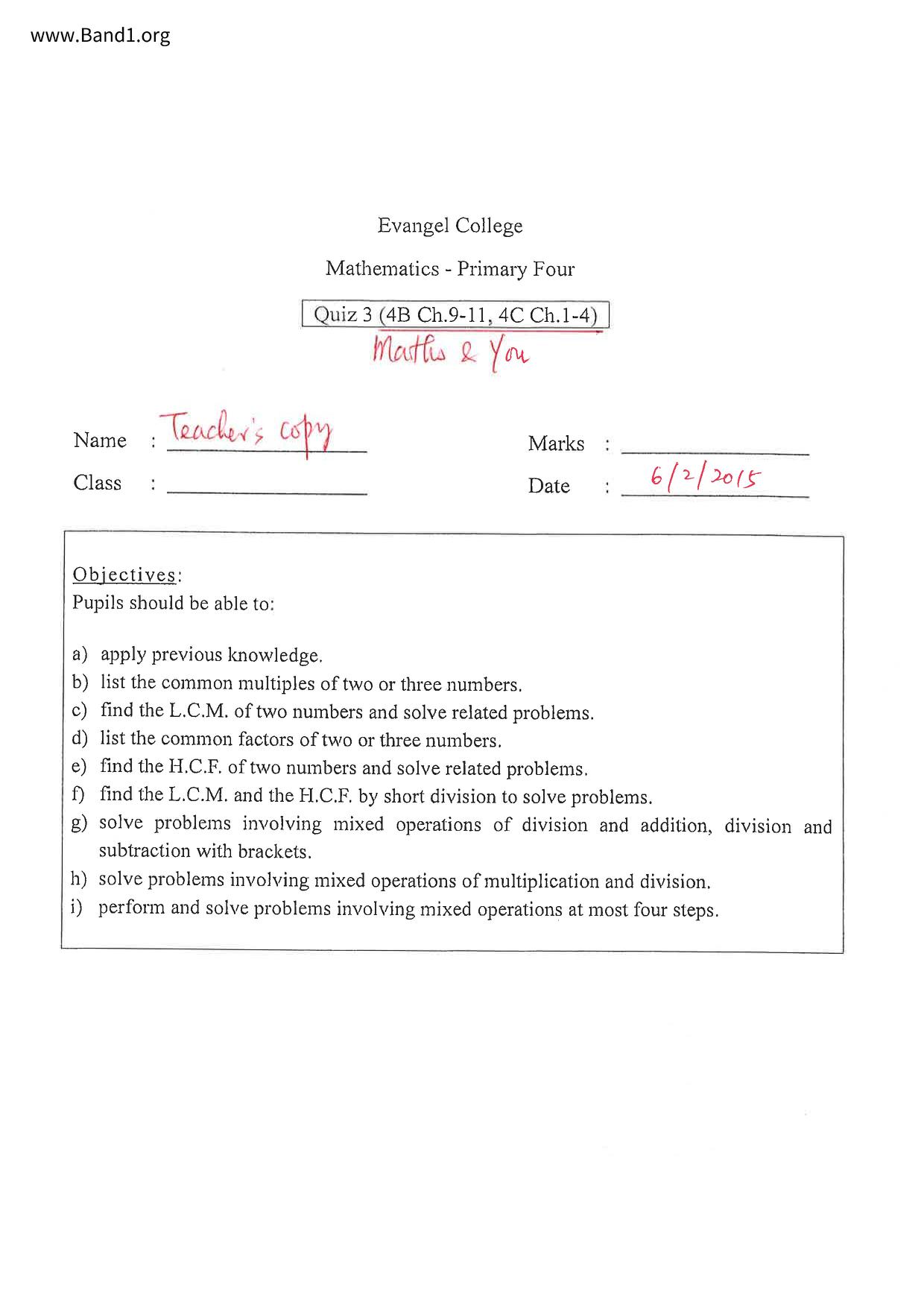 小四 數學 僑港伍氏宗親會伍時暢紀念學校