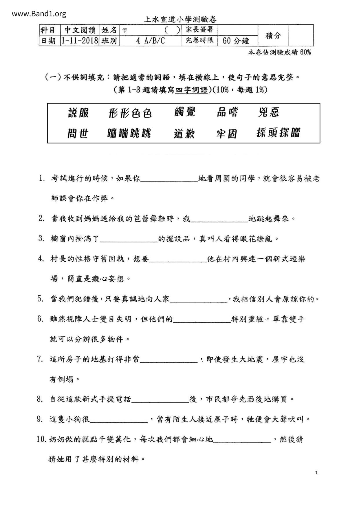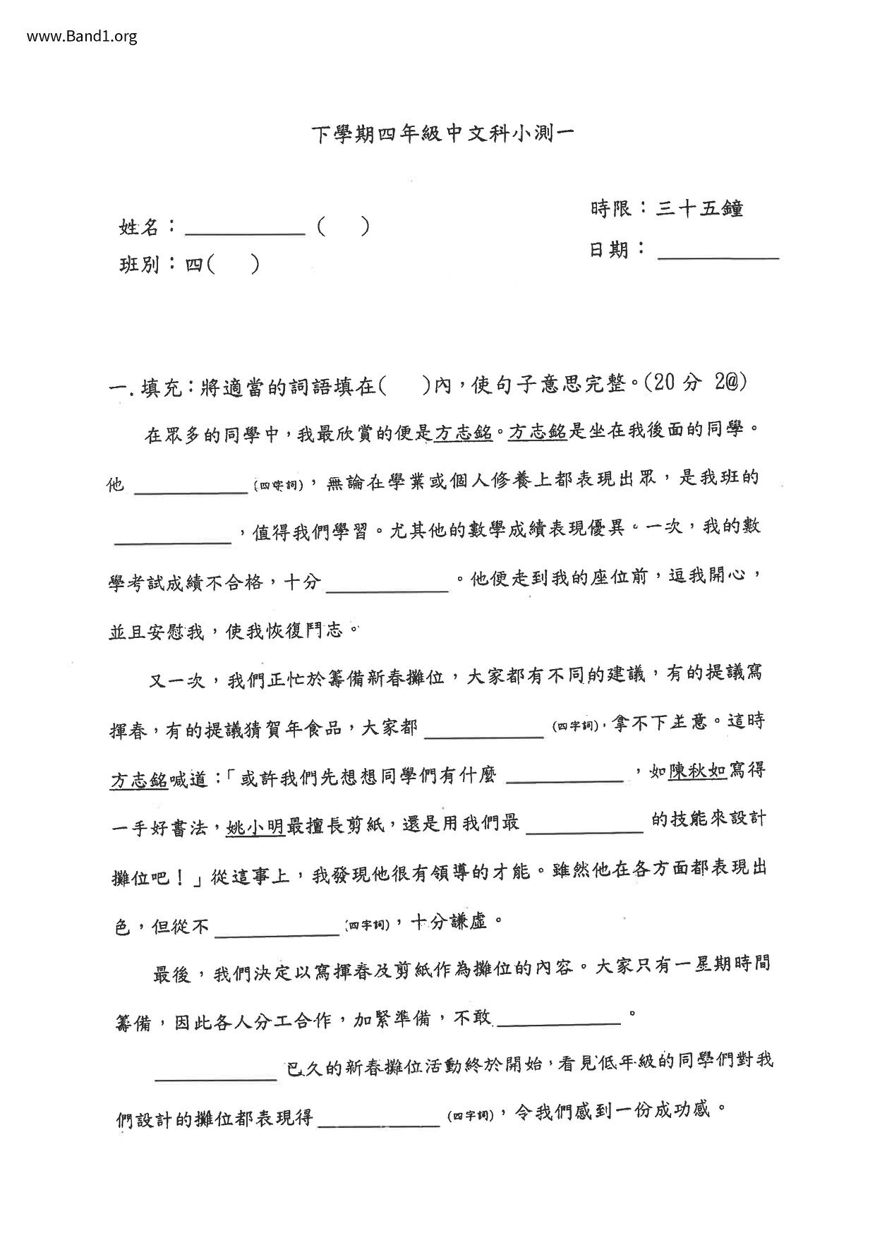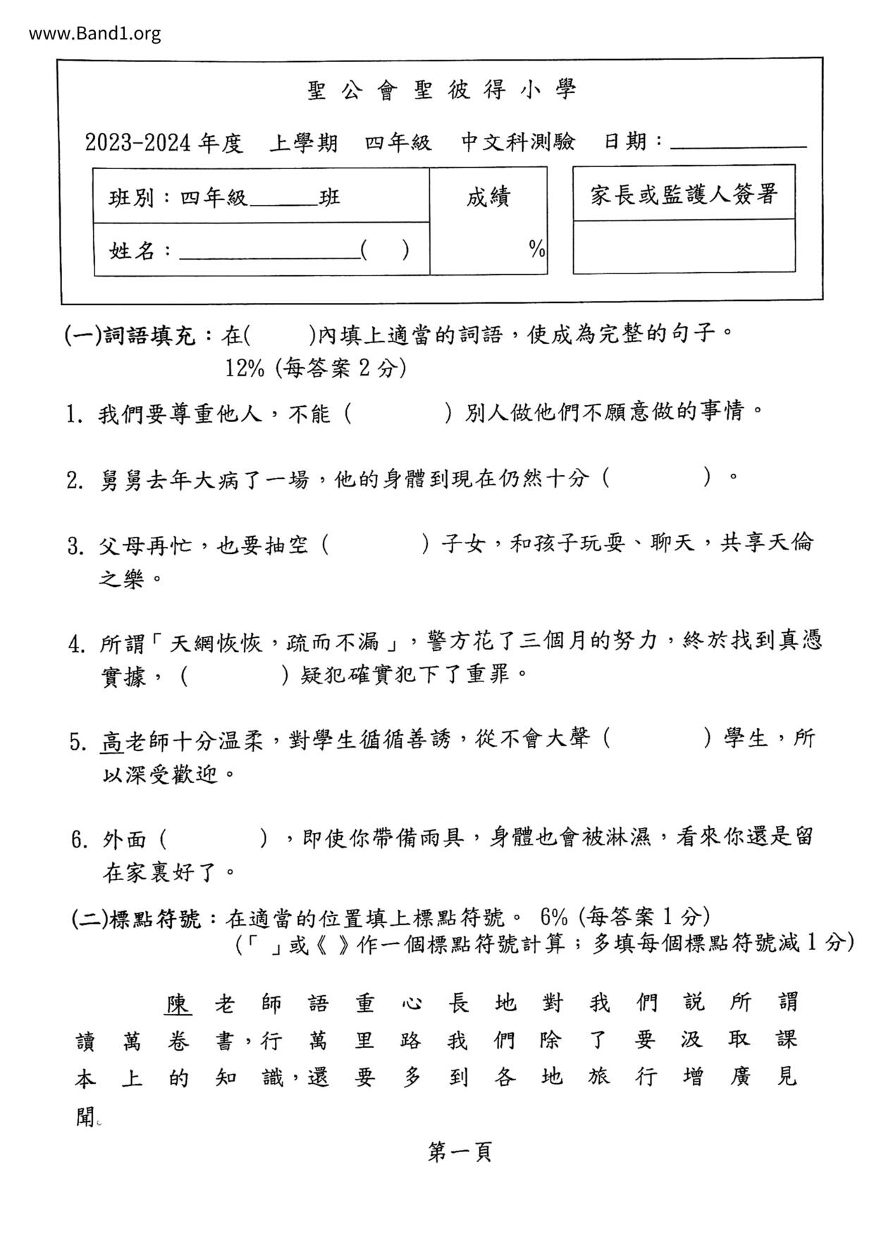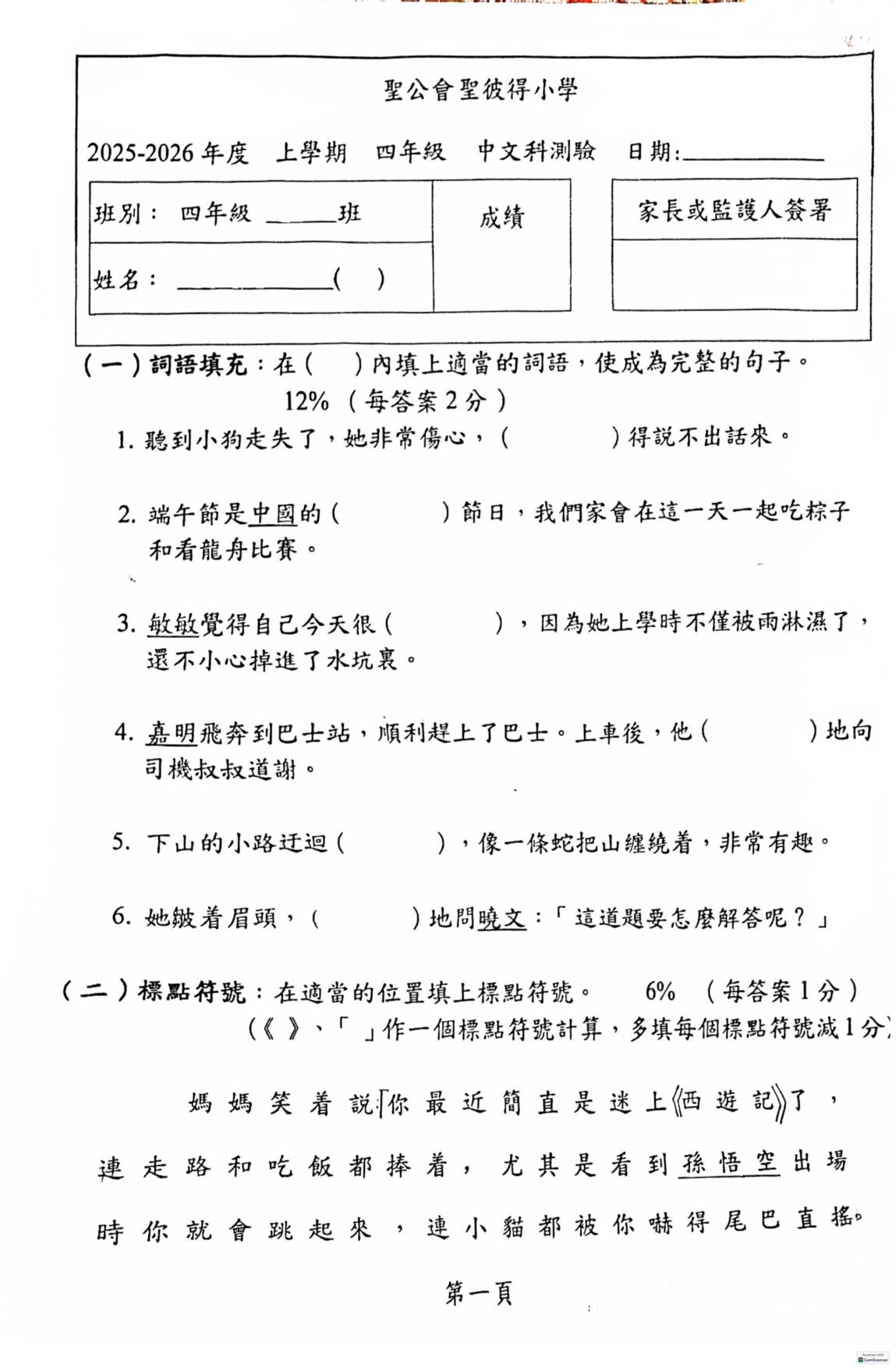 小四 中文 香港九龍塘基督教中華宣道會陳元喜小學