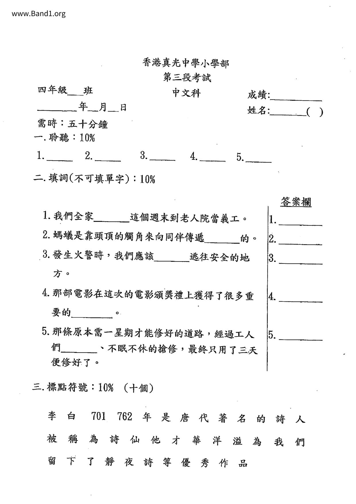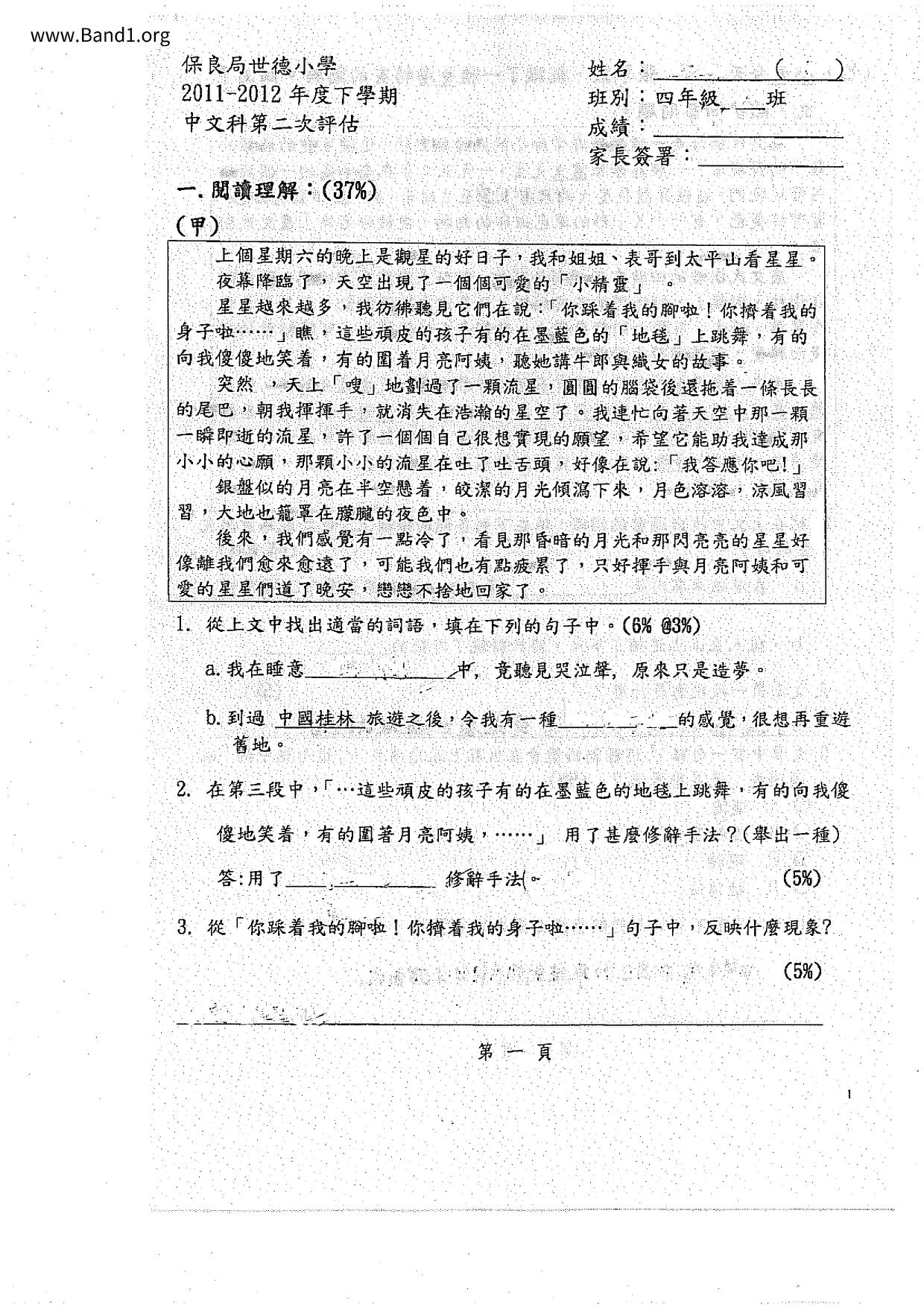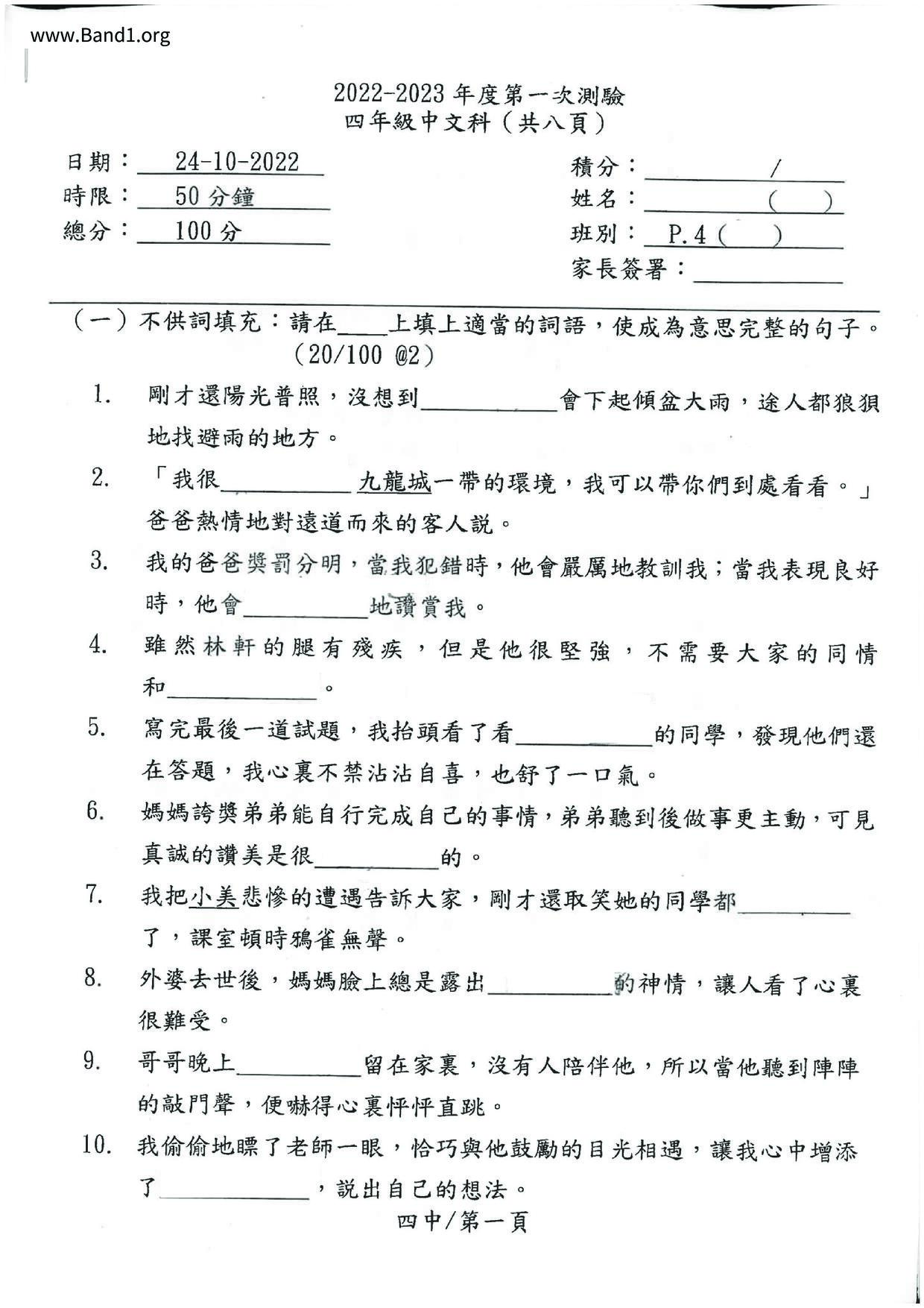 小四 中文 香港九龍塘基督教中華宣道會陳元喜小學
